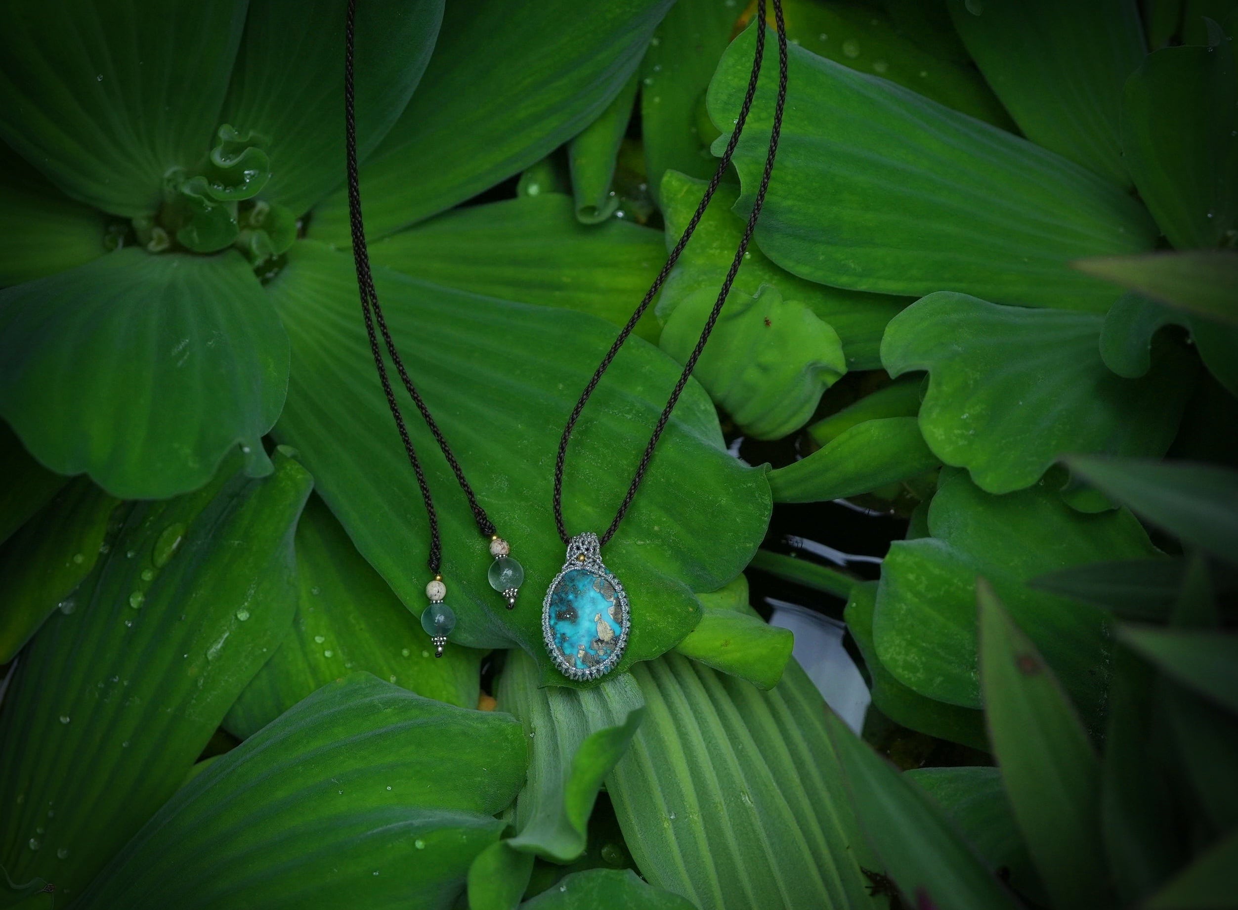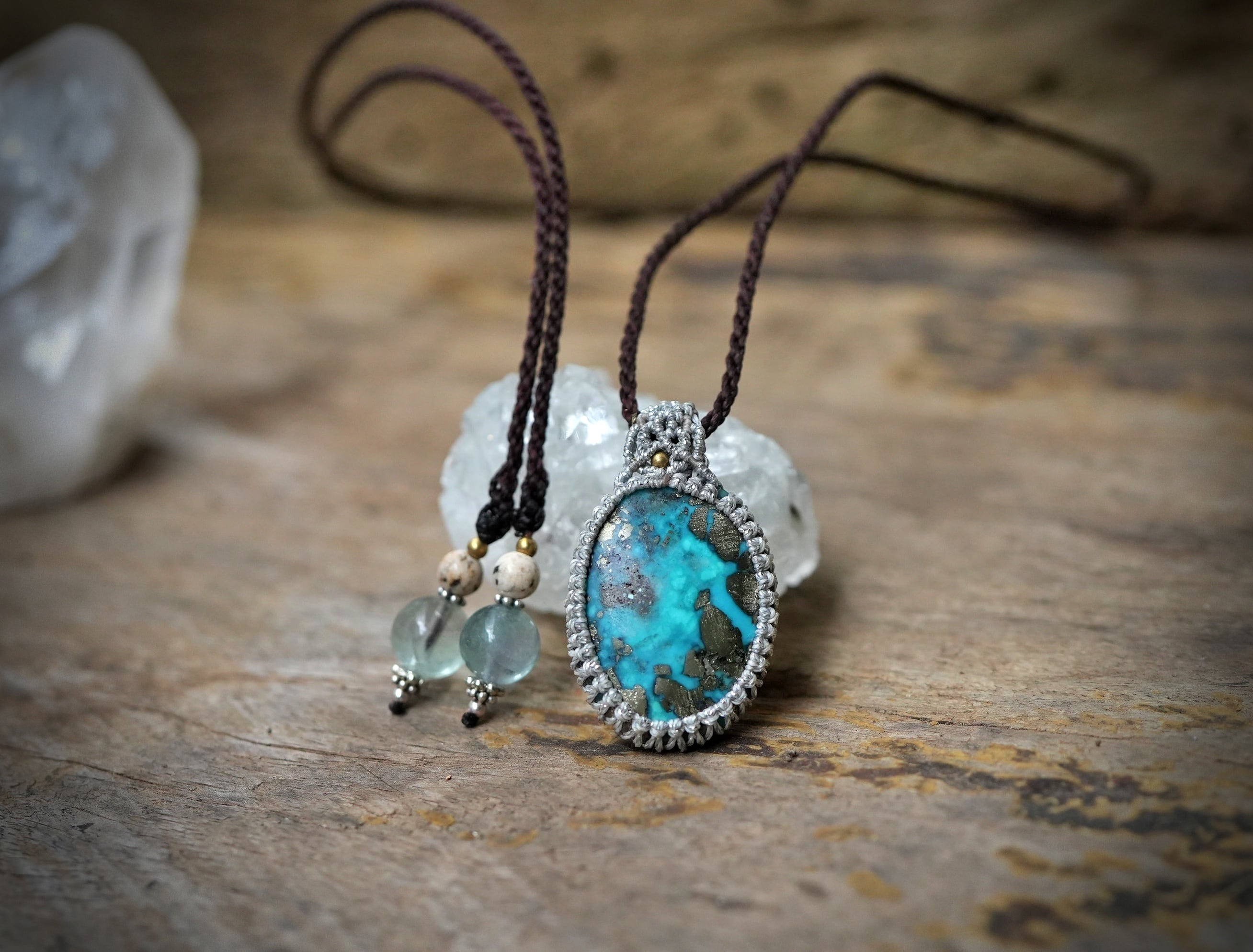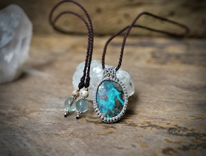 銀の地図★パイライト★ターコイズ マクラメネックレス1328
