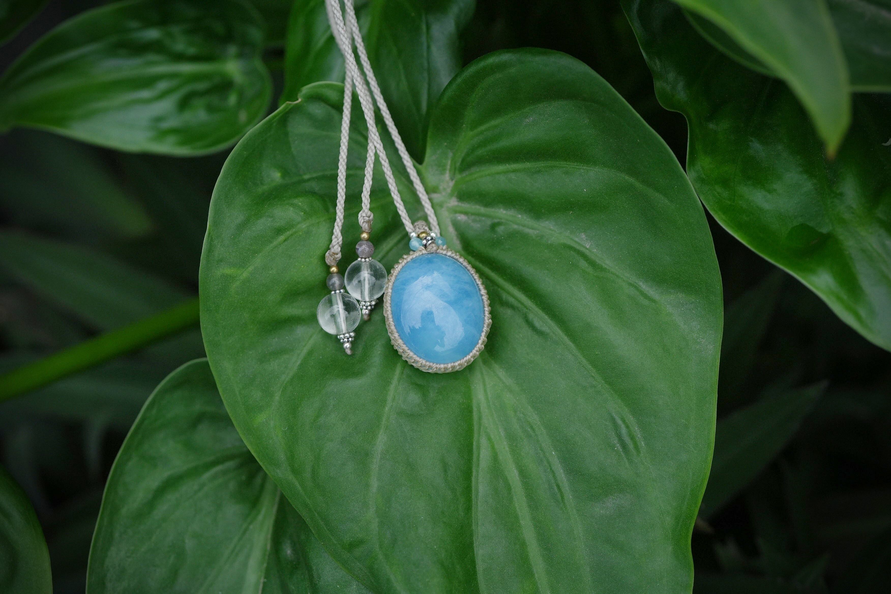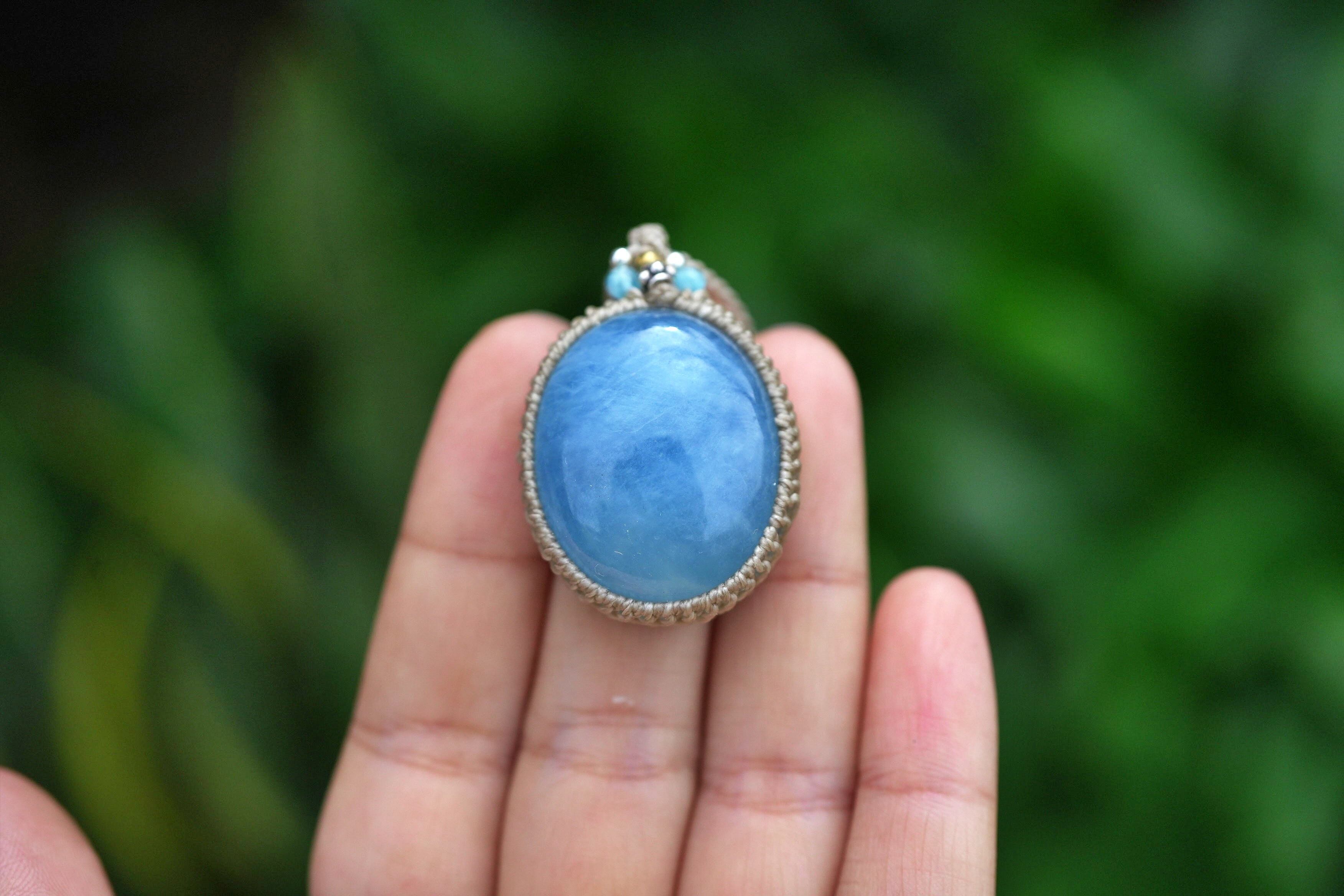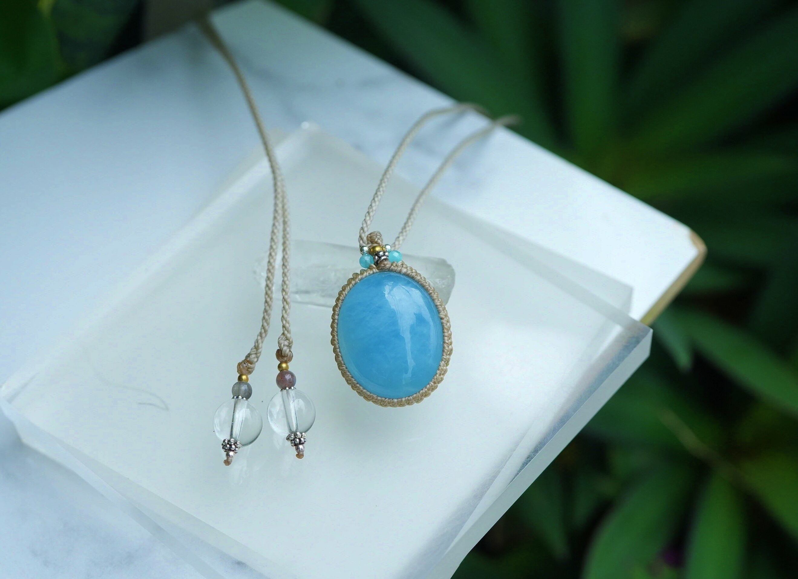 ミルキーブルー★高品質★アクアマリン マクラメネックレス1331