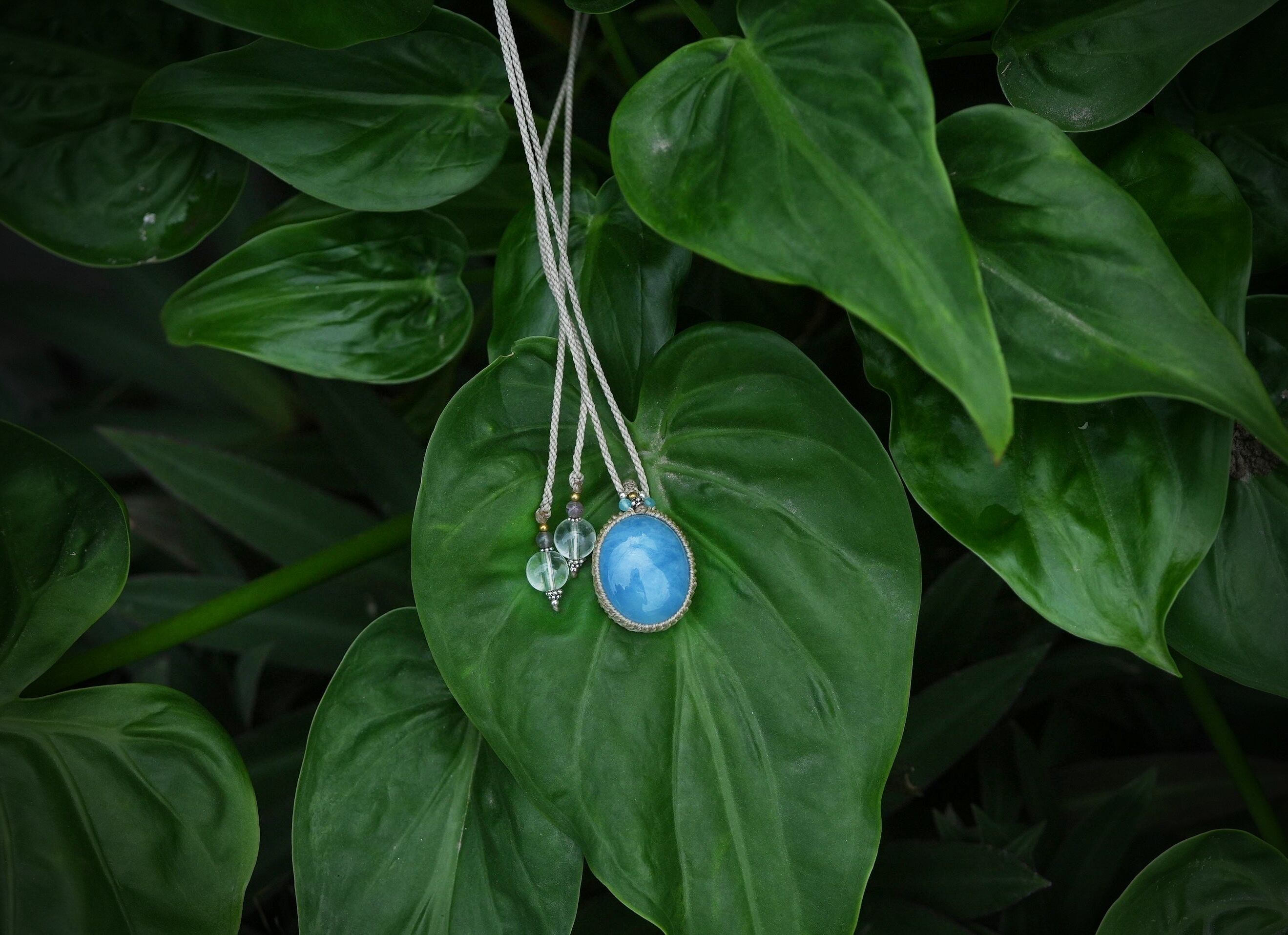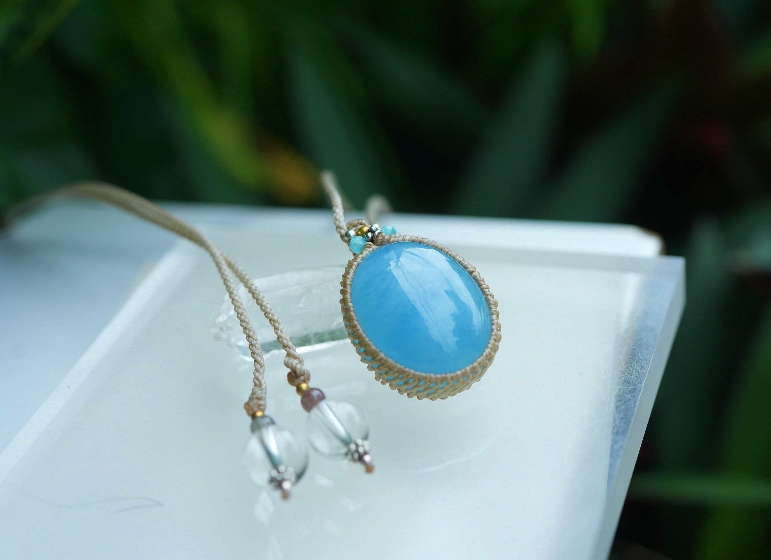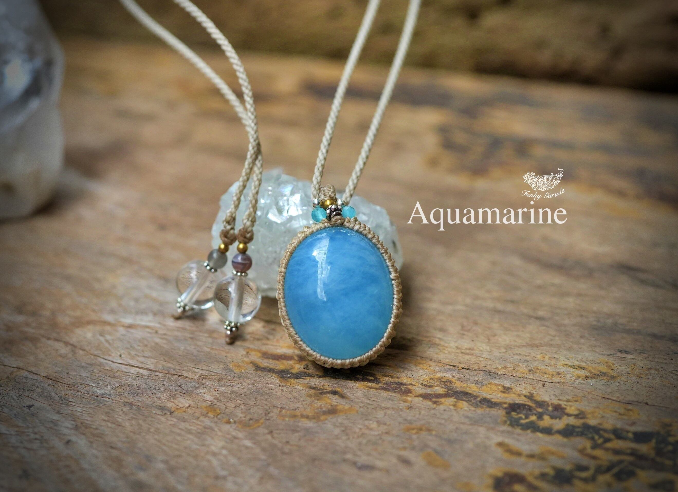 ミルキーブルー★高品質★アクアマリン マクラメネックレス1331