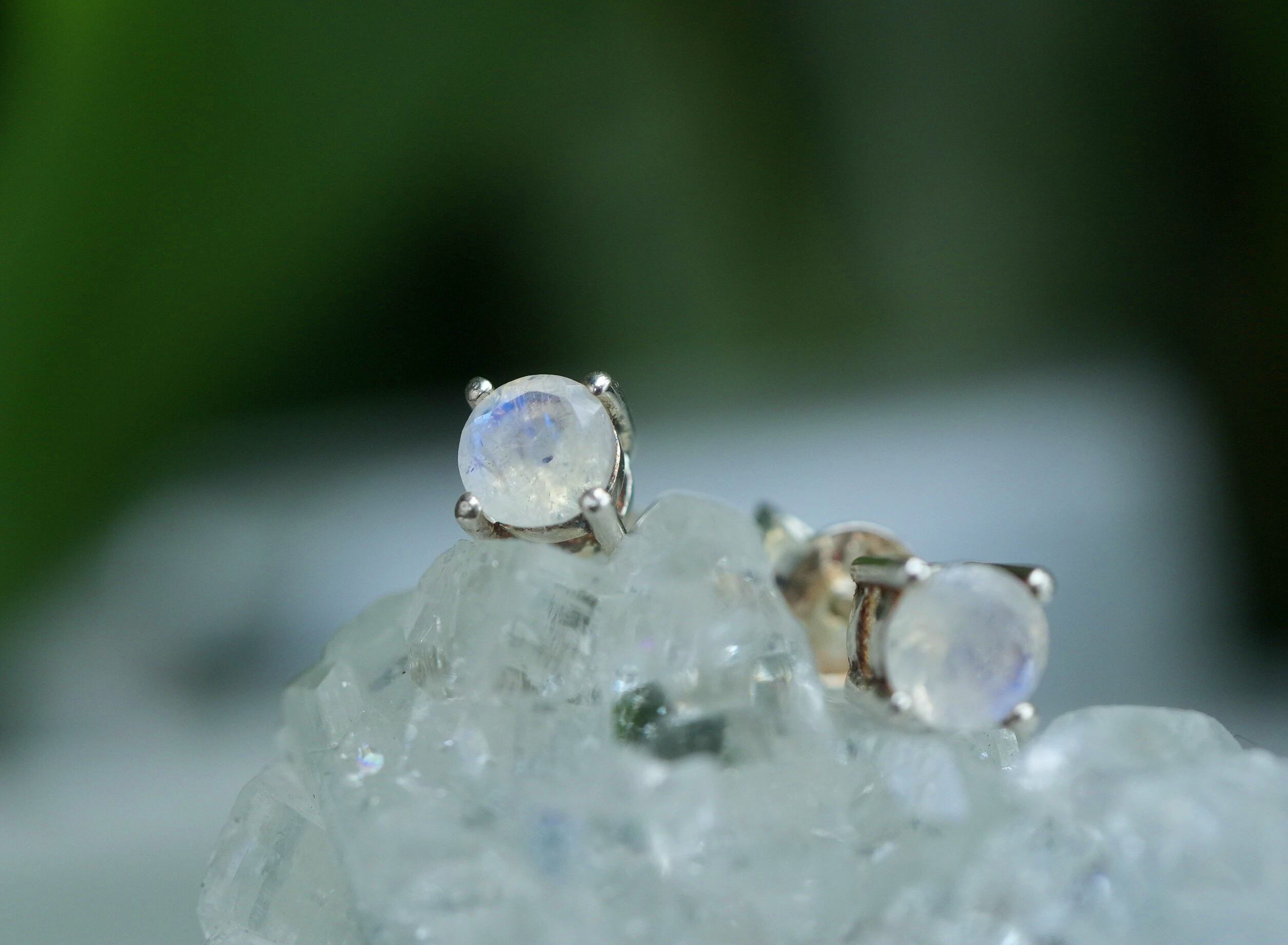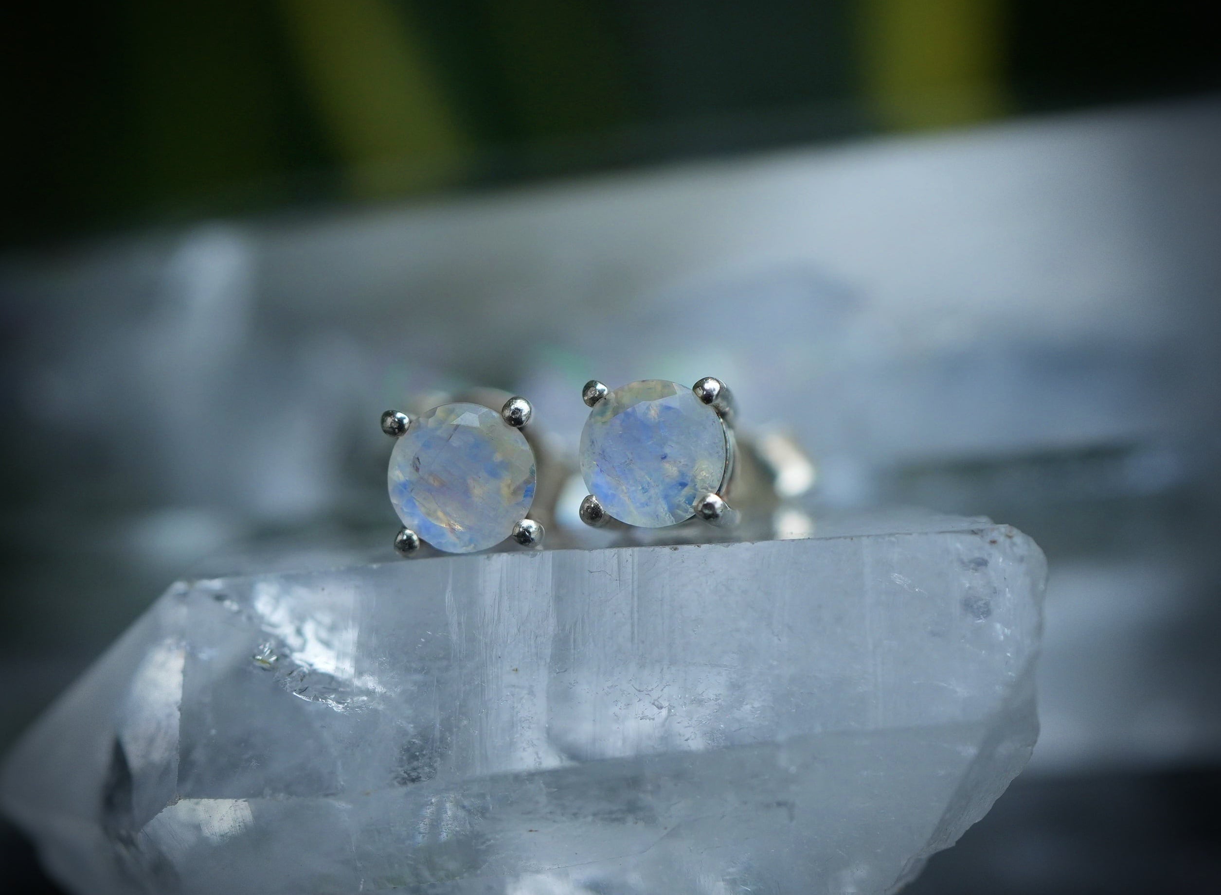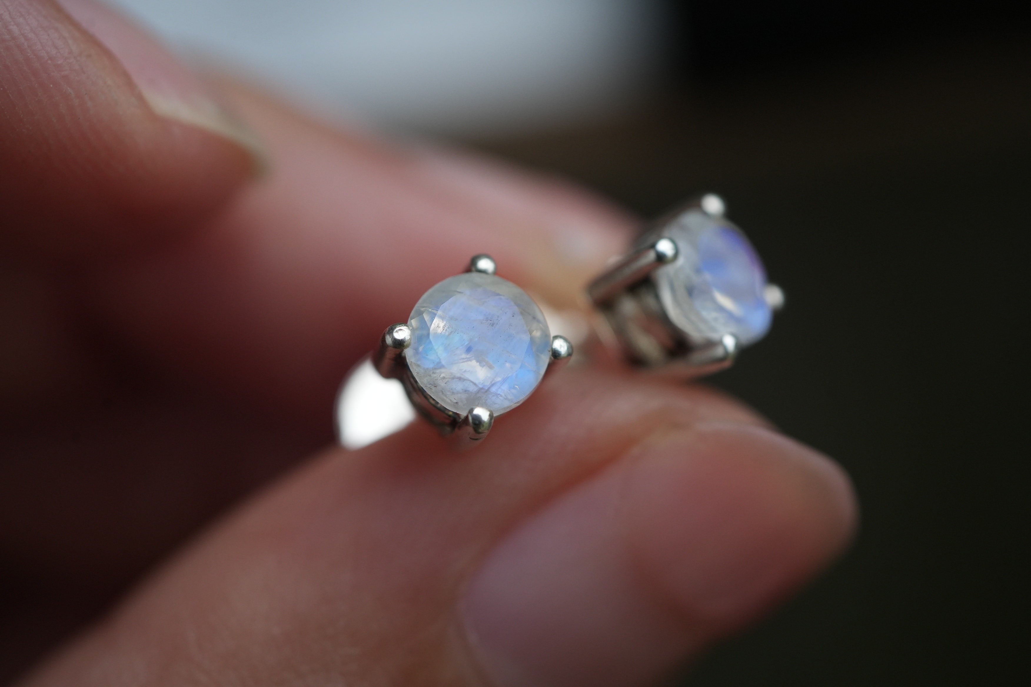 宝石カット★blueレインボームーンストーン シルバーピアス1340