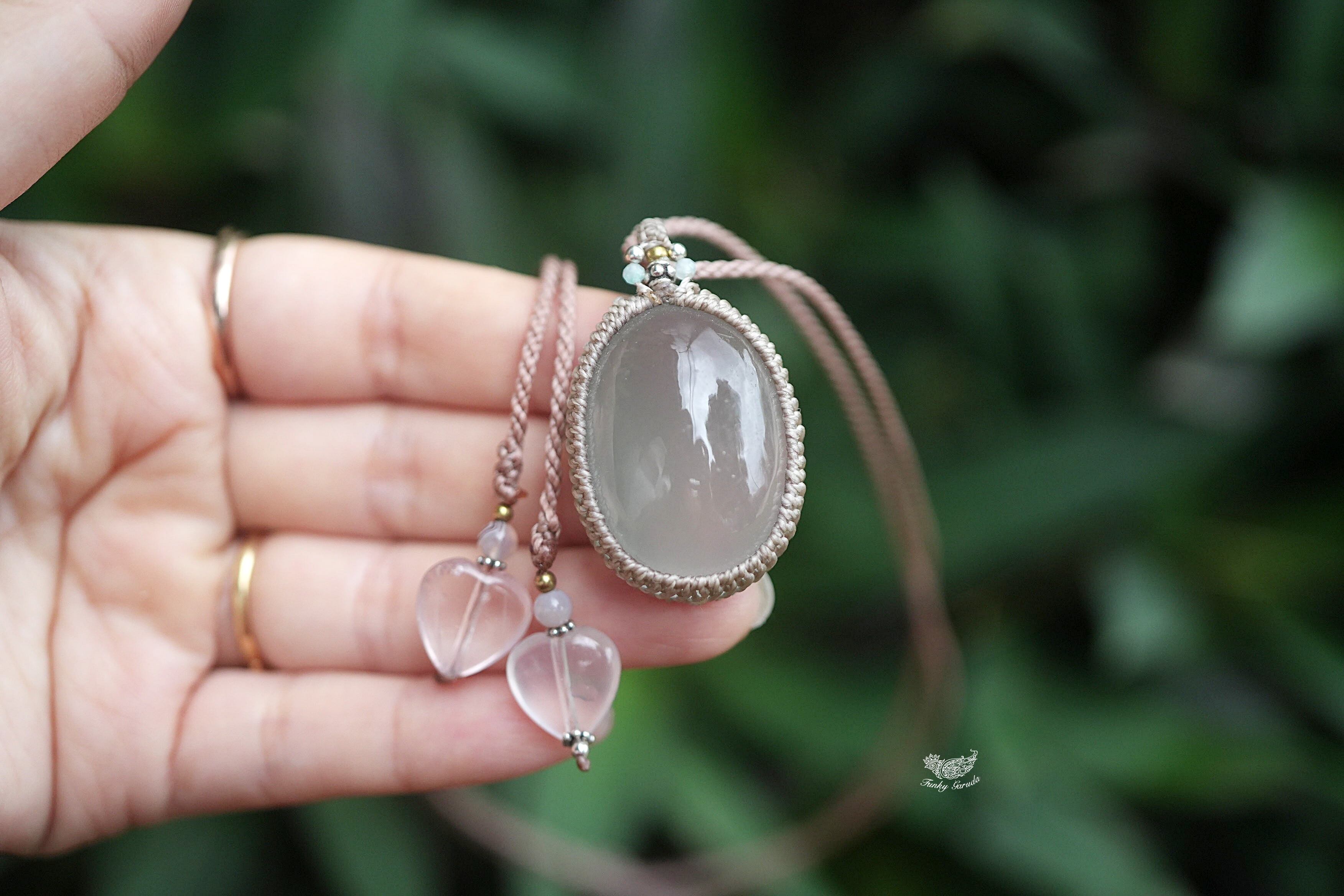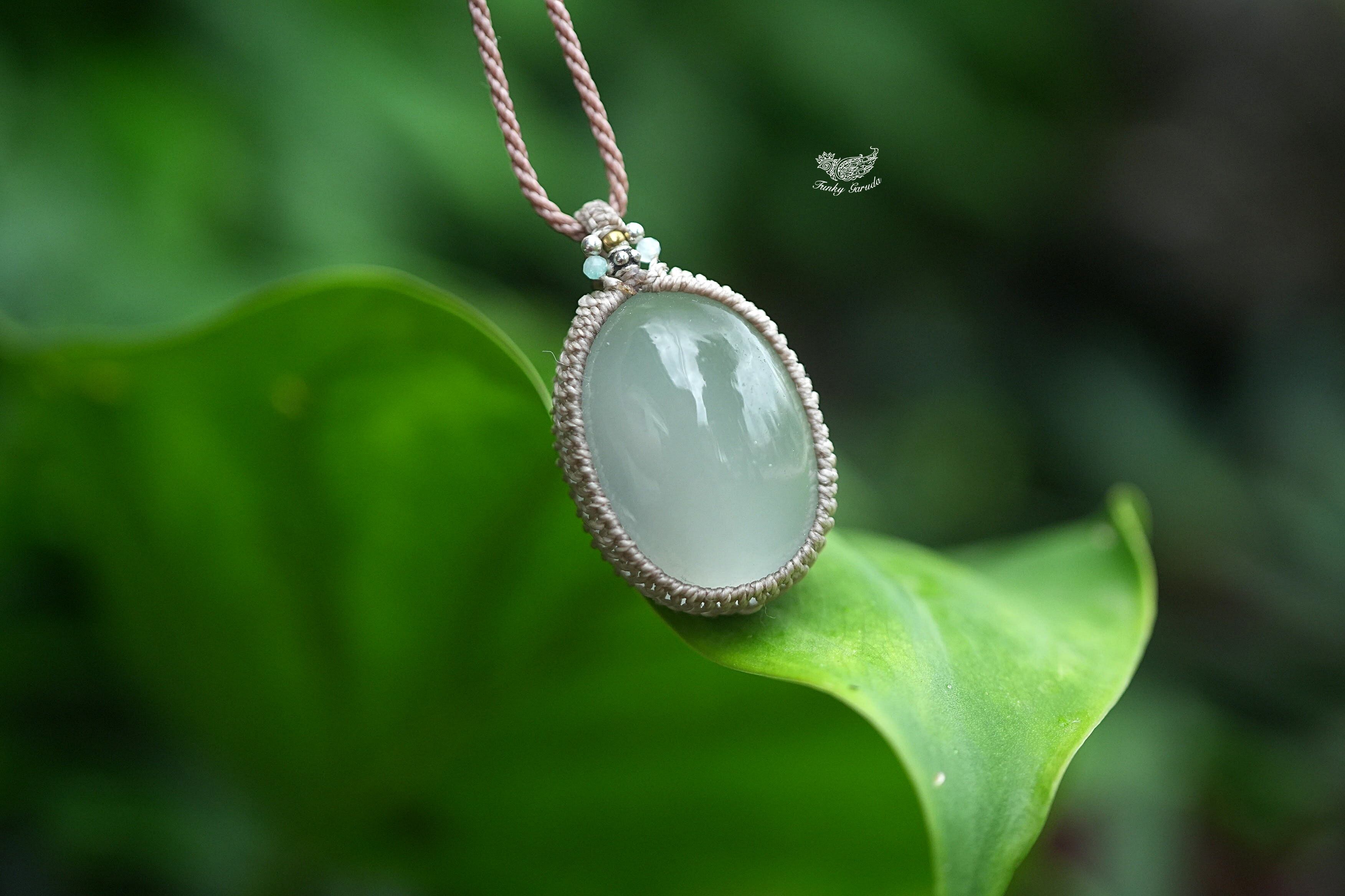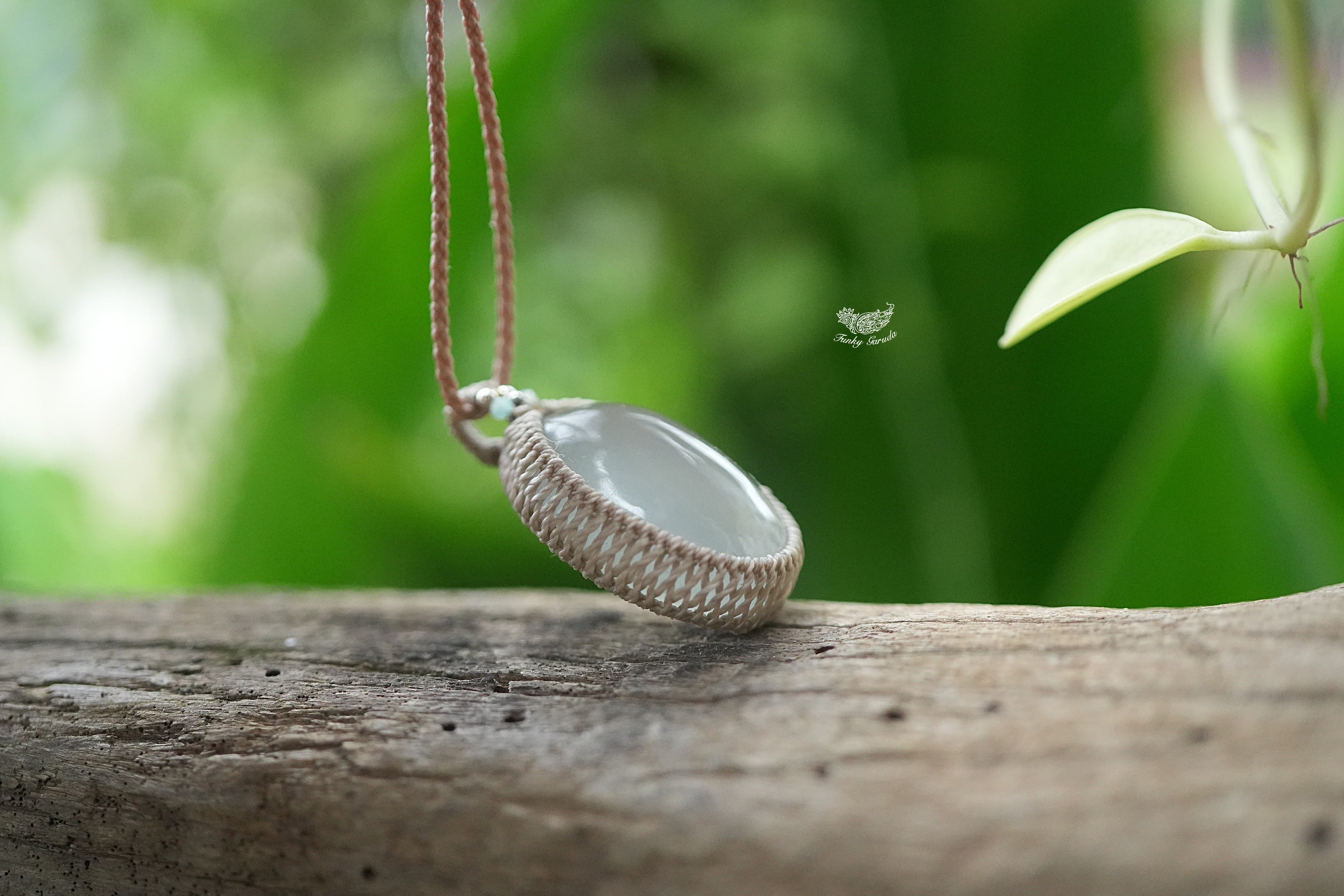 ◆このたびはミルクココア、カフェオレ色の蝋引き糸を使用しマクラメ編み装飾を施しました。