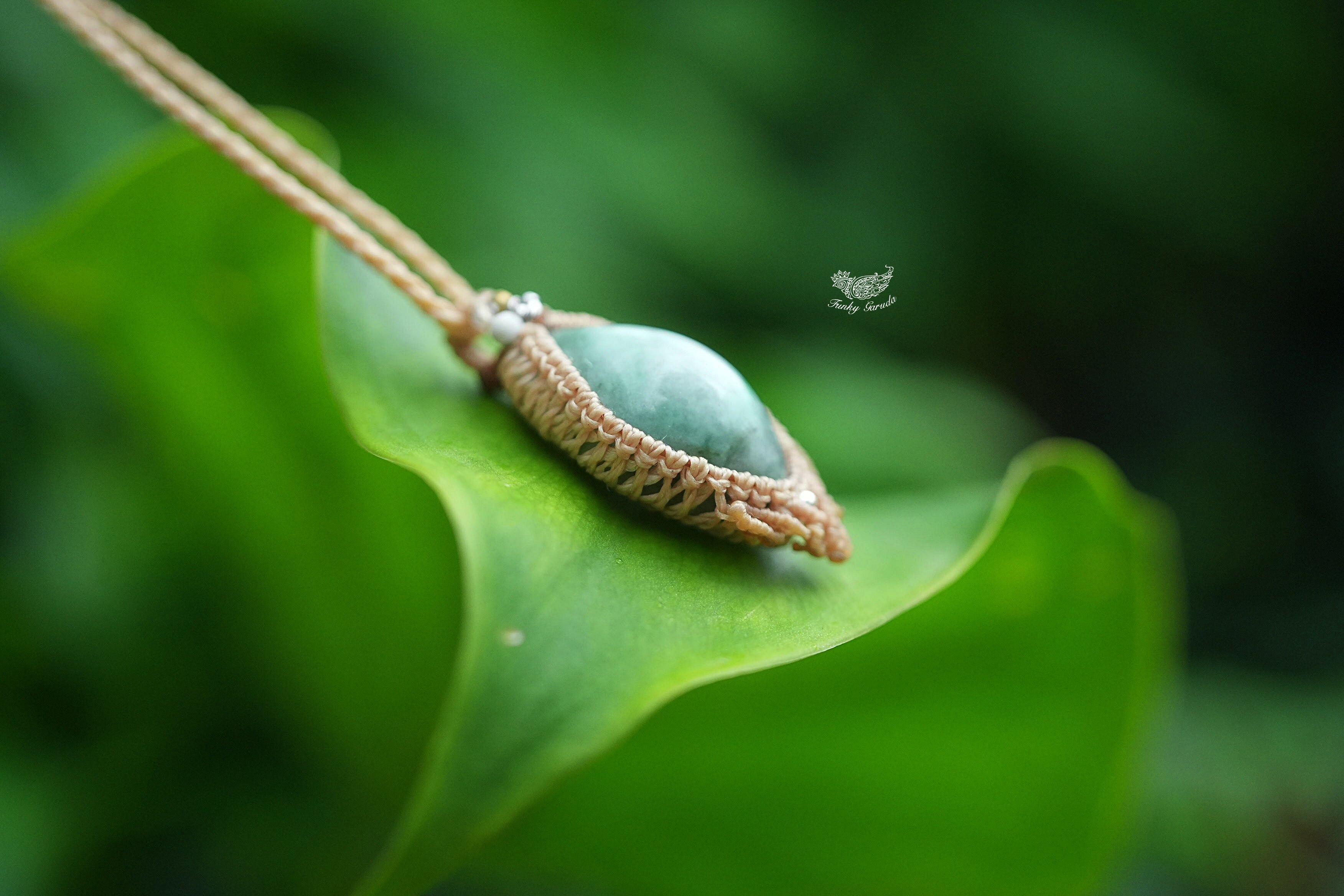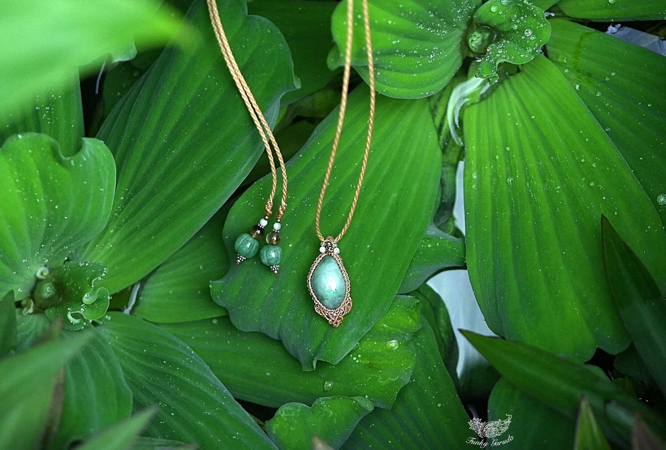 緑の星屑★翡翠 マクラメネックレス1346