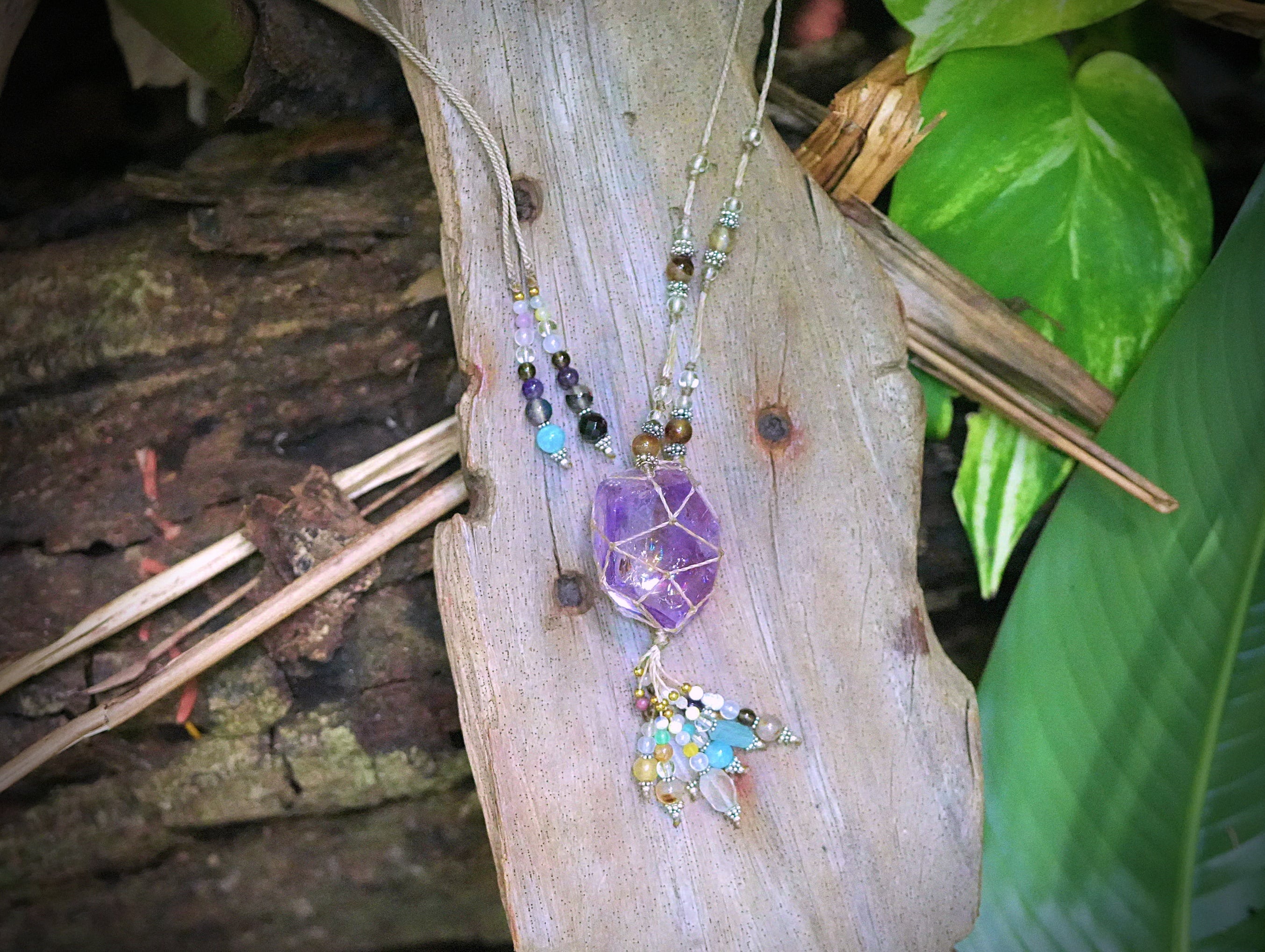大きな透明感★虹入り★アメシスト ネックレス 1410