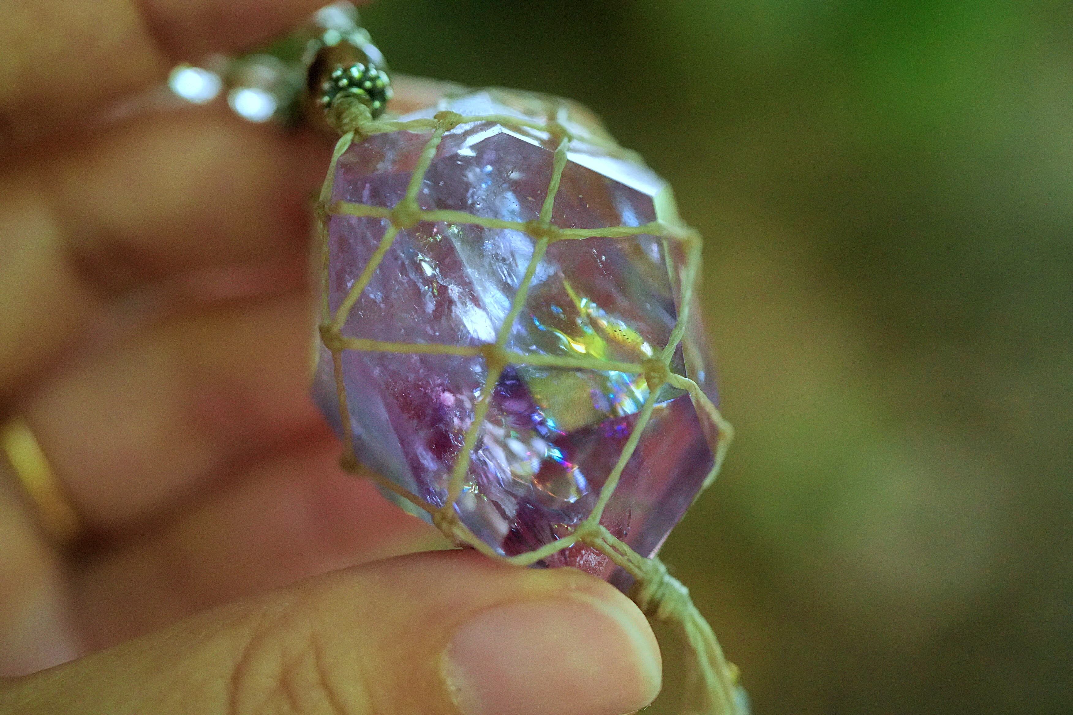虹がしっかりと見てとれるクリアなアメシスト原石