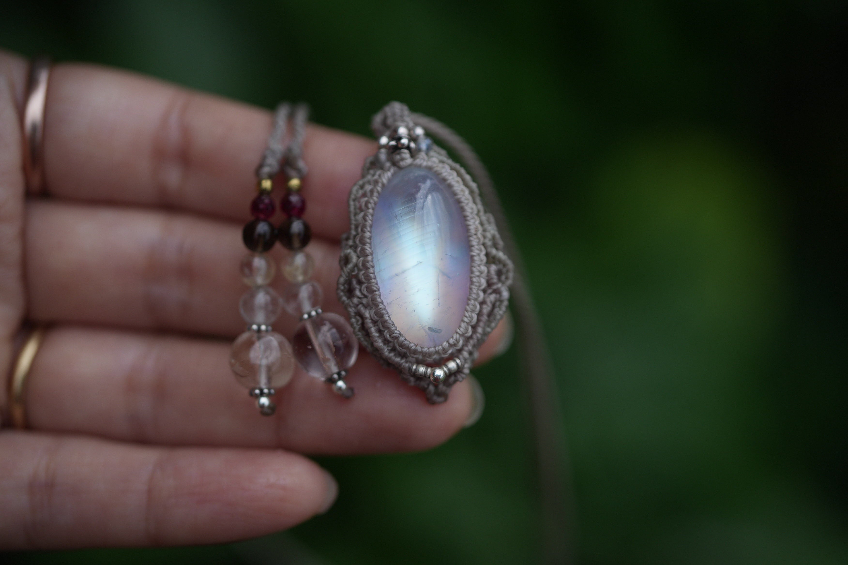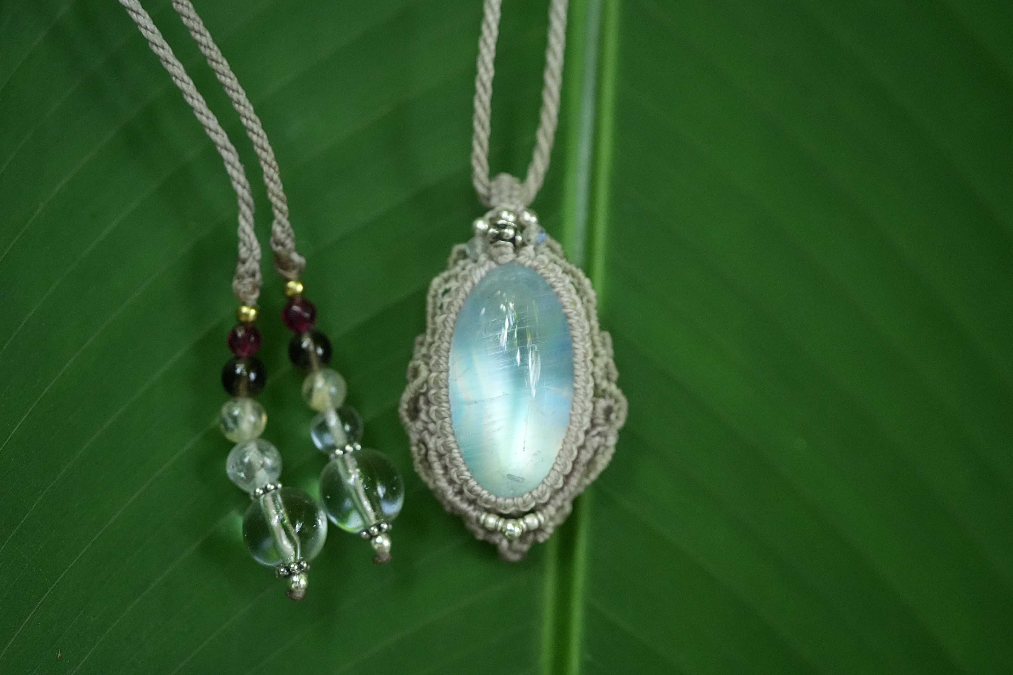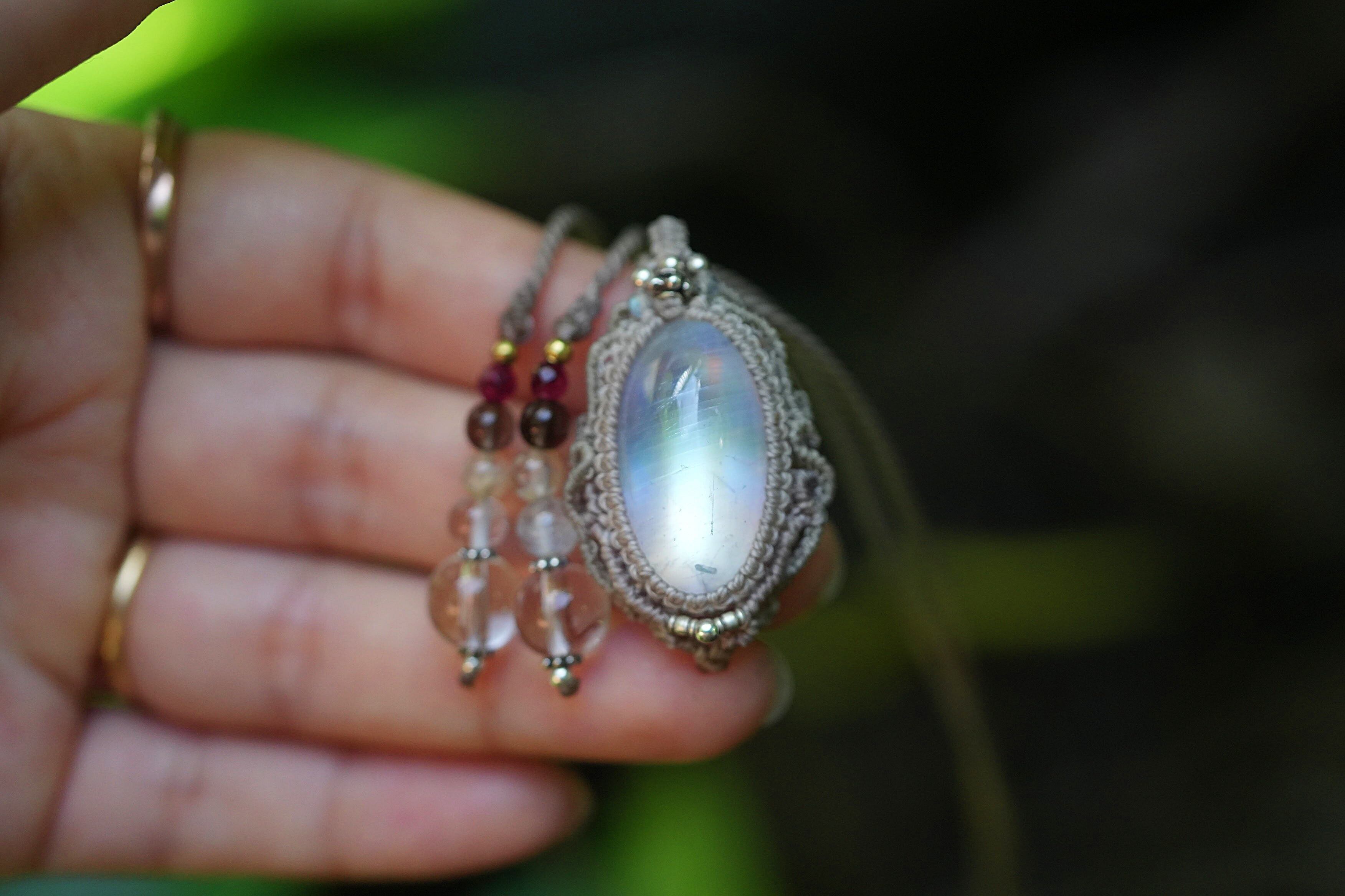 虹色天国★ロイヤルレインボームーンストーン マクラメネックレス1411