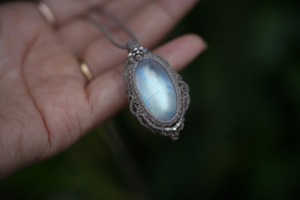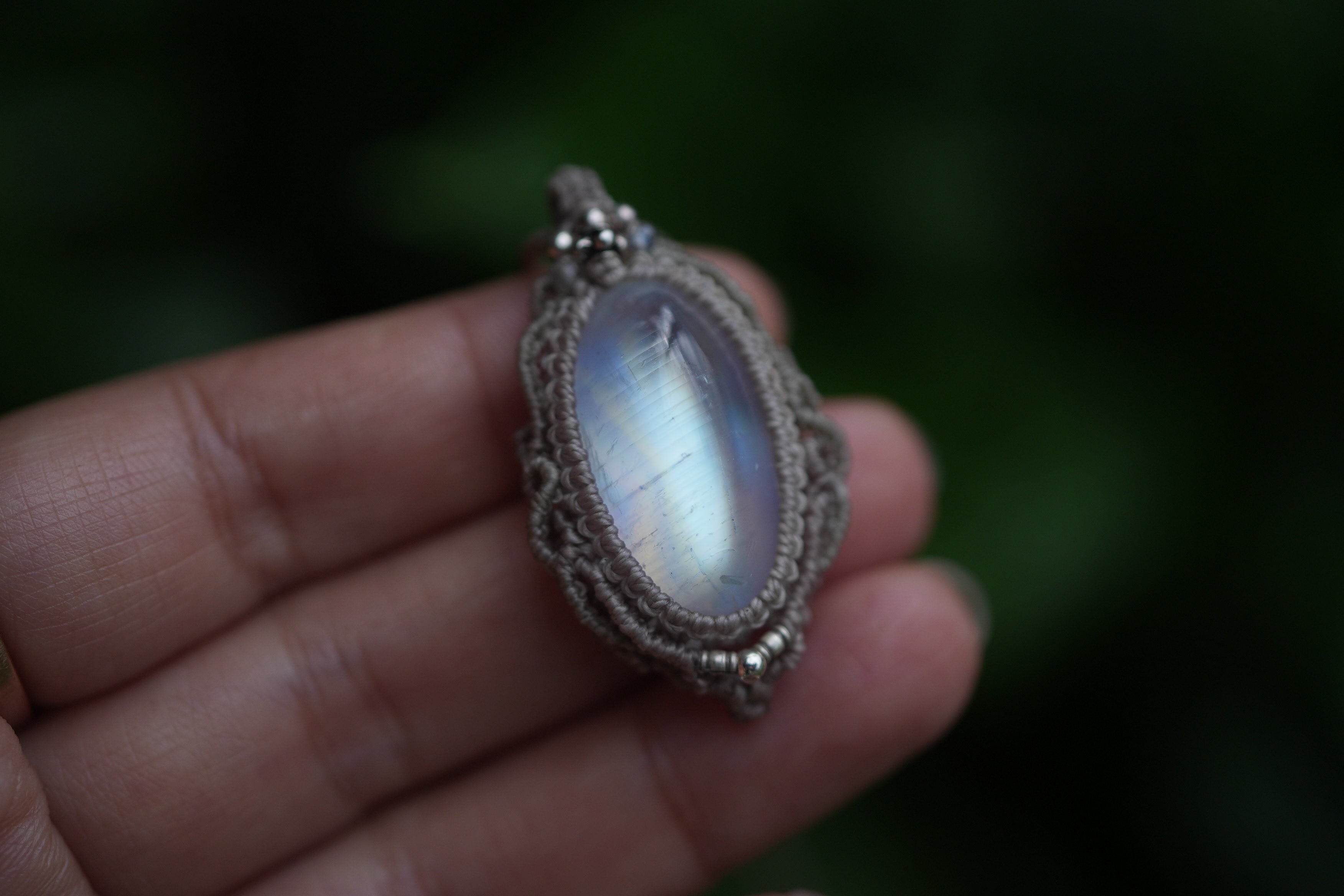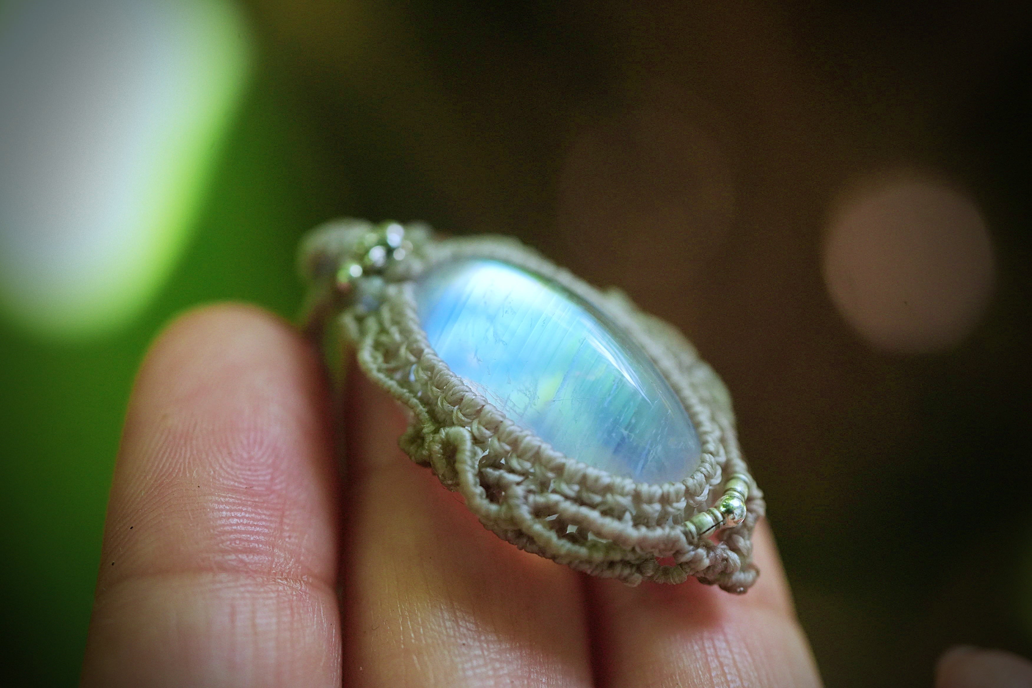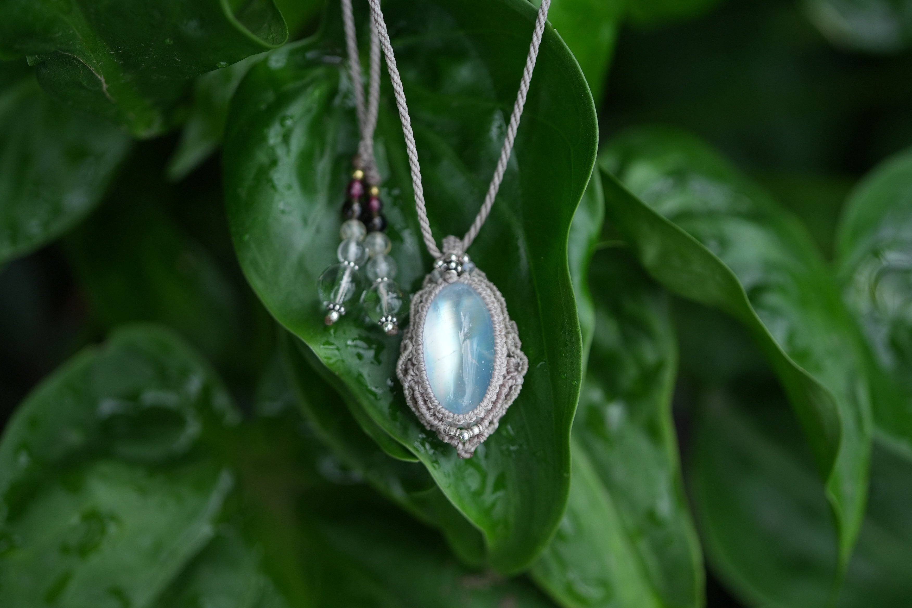 虹色天国★ロイヤルレインボームーンストーン マクラメネックレス1411