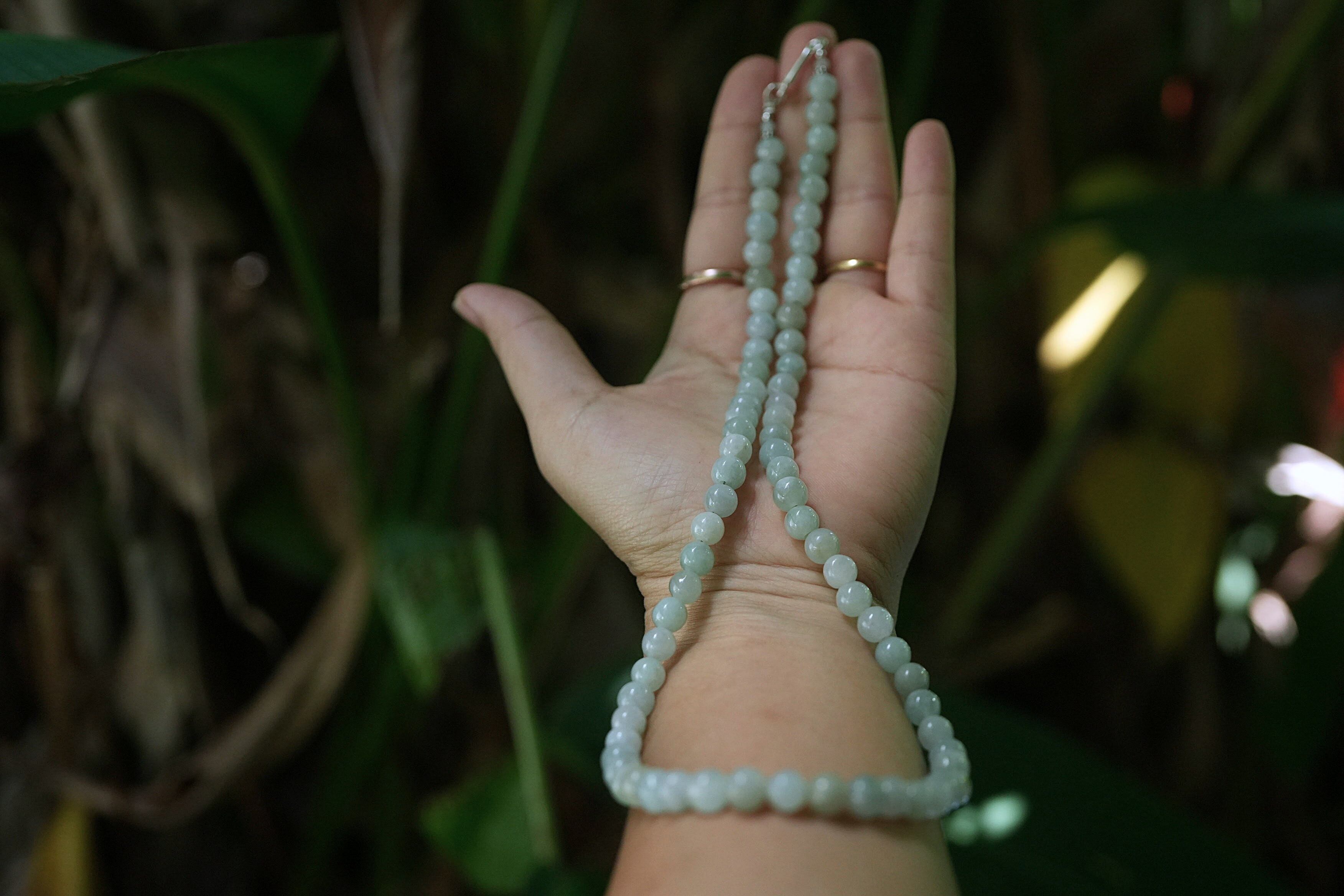 透け感抜群★良質★ミャンマー翡翠★ビーズネックレス1401