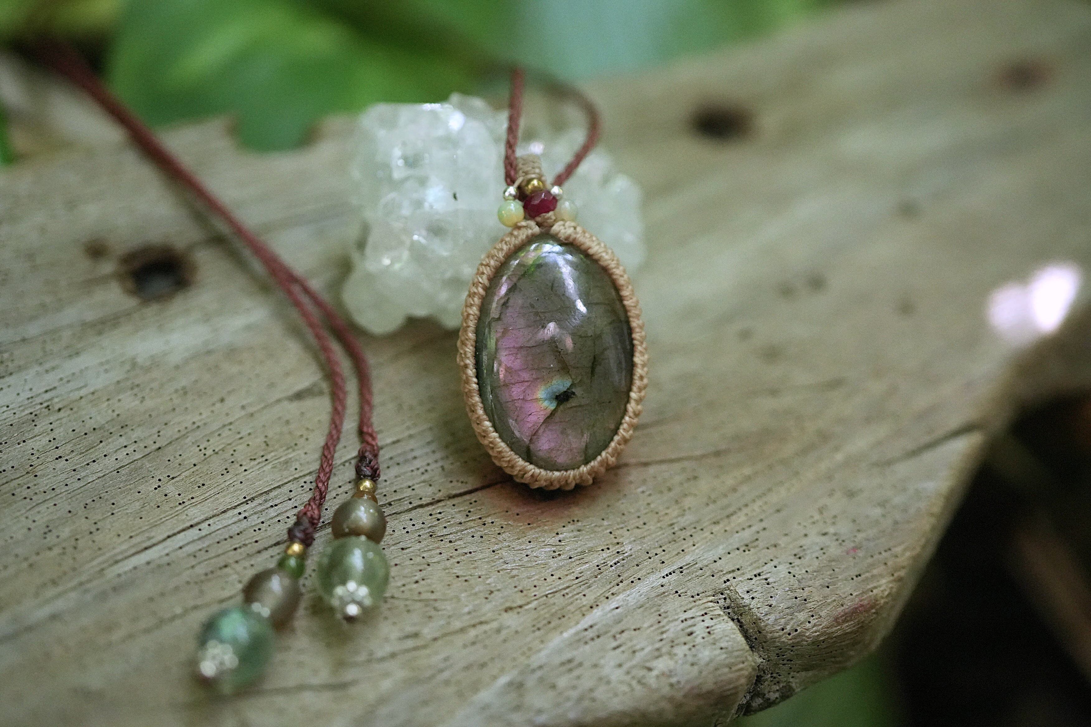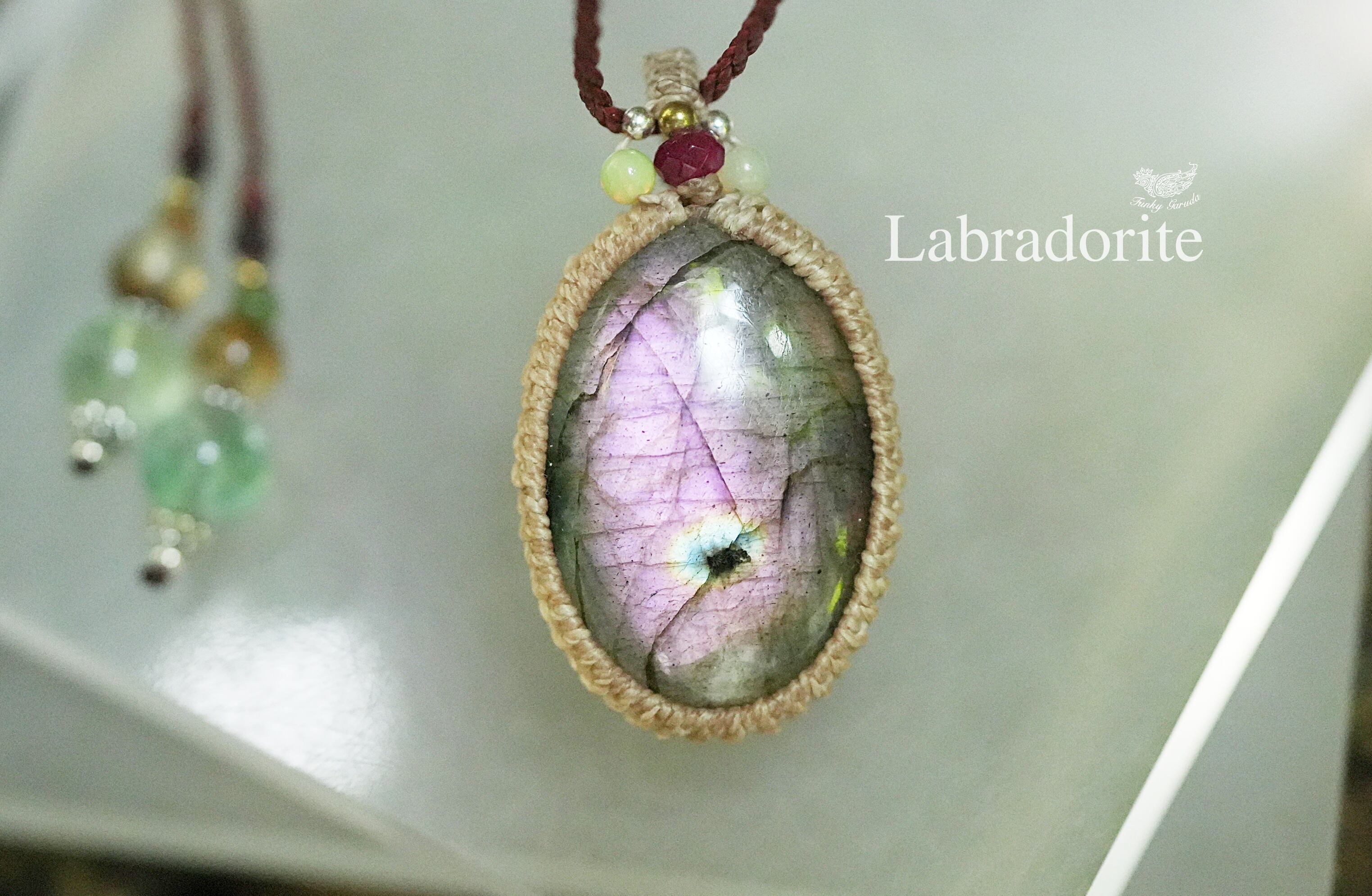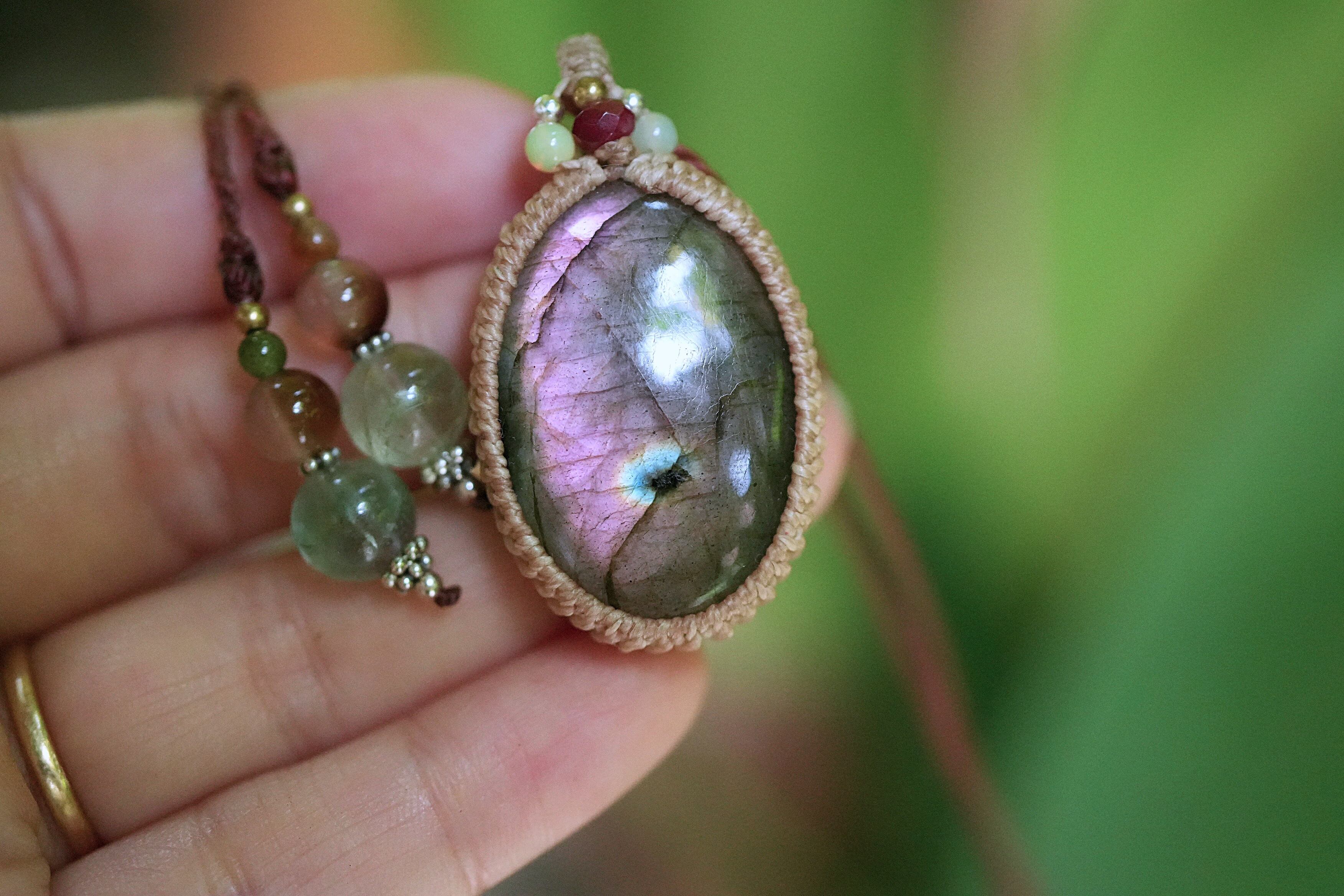ピンクの愛らしさ★パープルラブラドライト マクラメネックレス1404