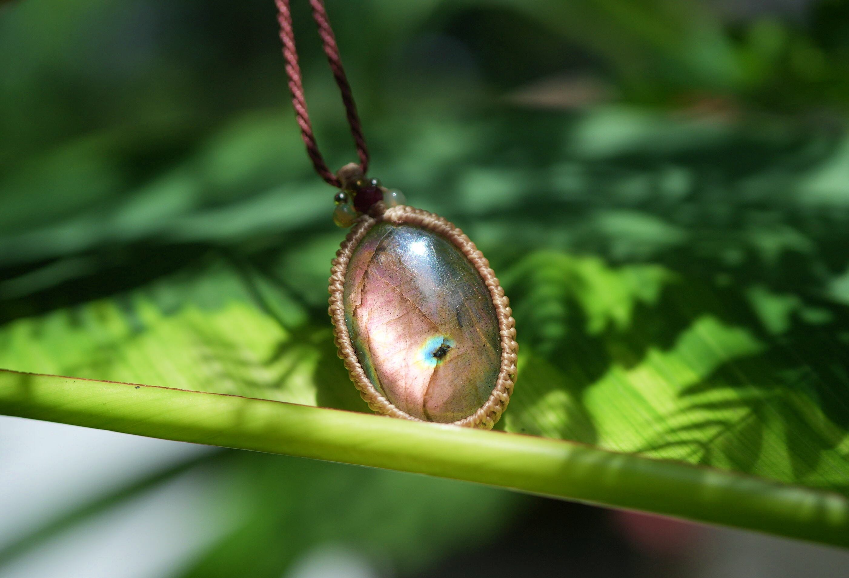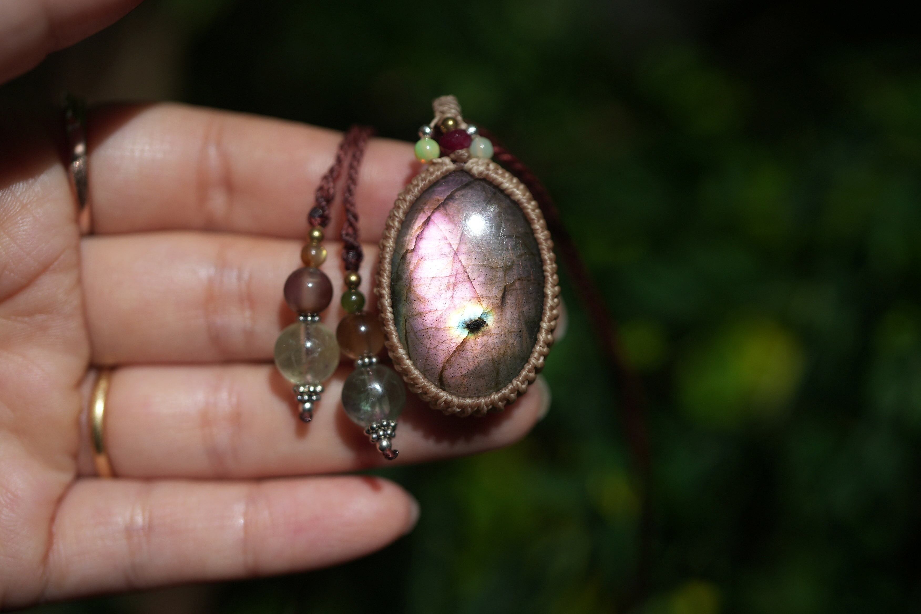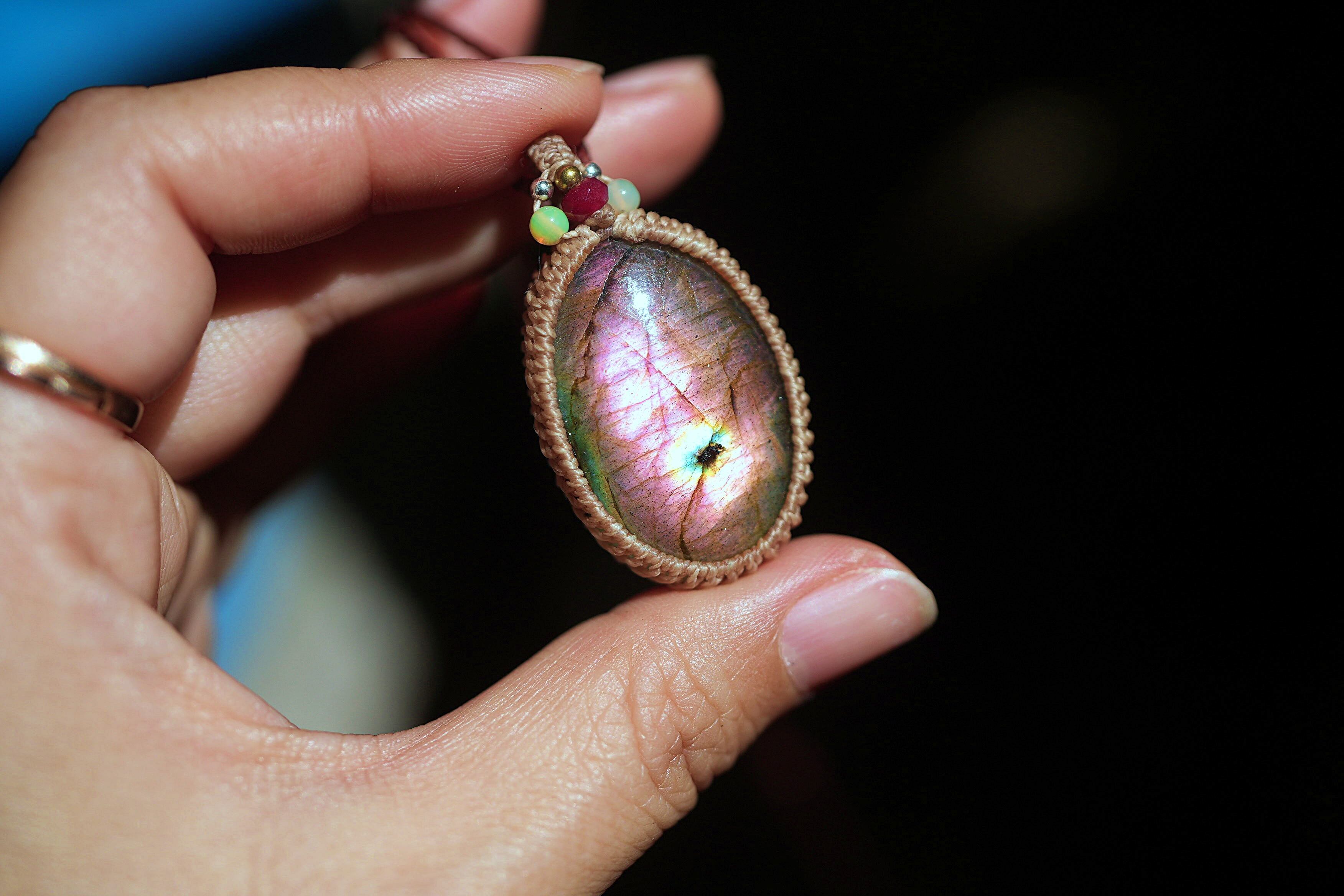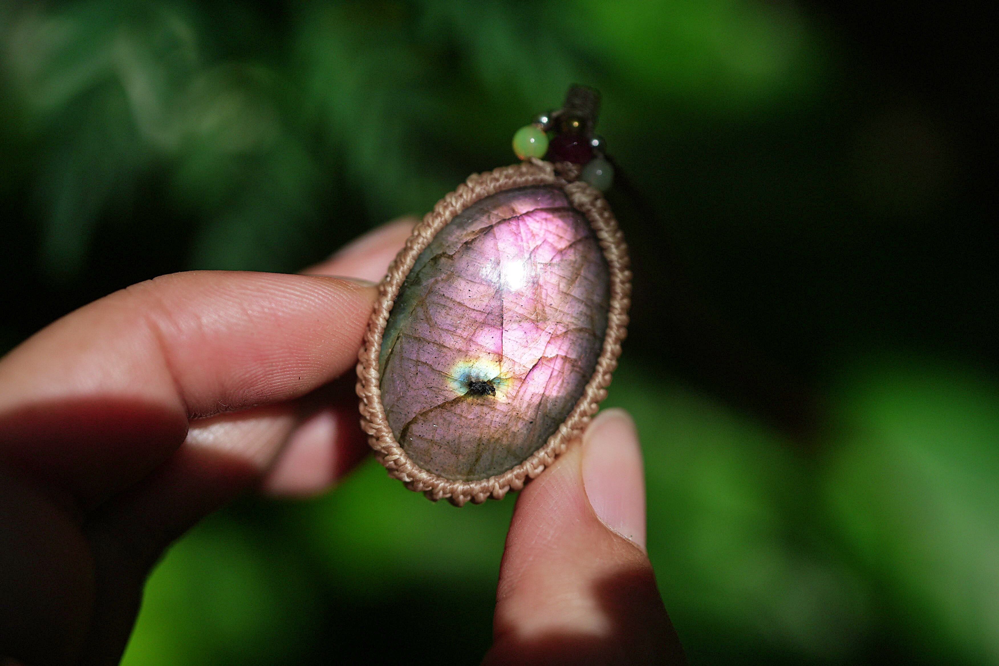 ピンクの愛らしさ★パープルラブラドライト マクラメネックレス1404