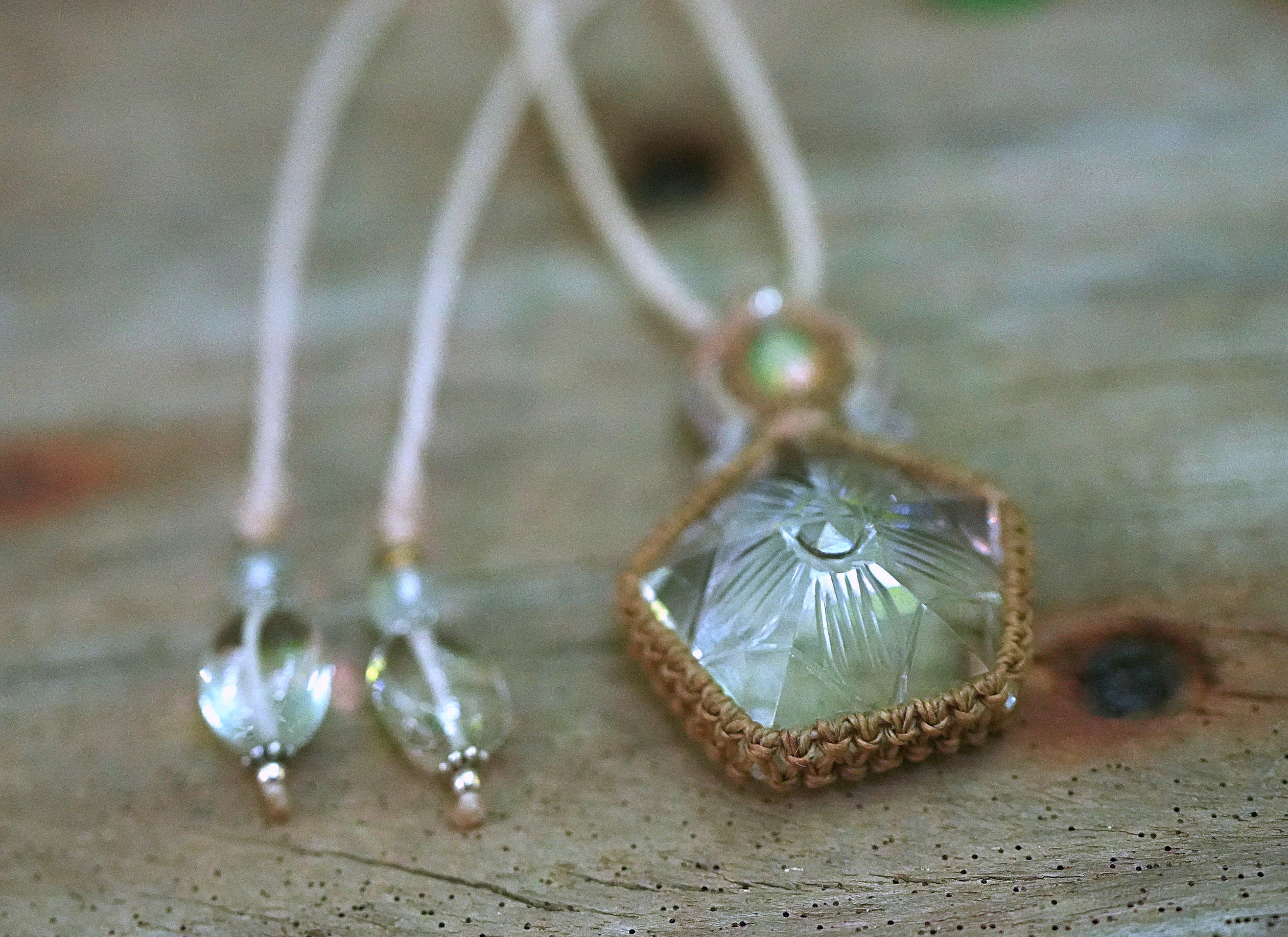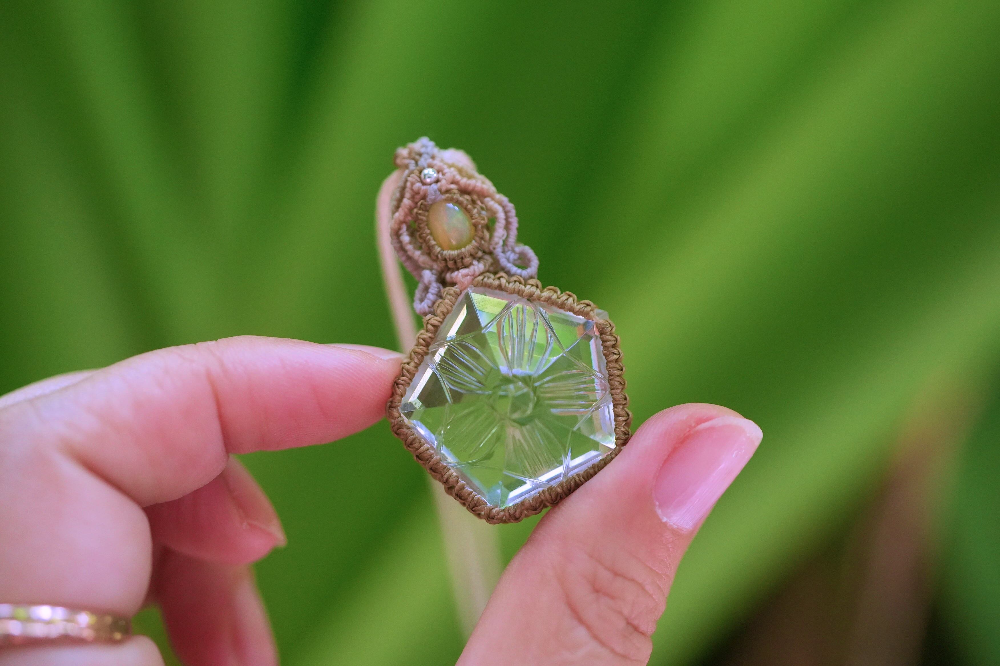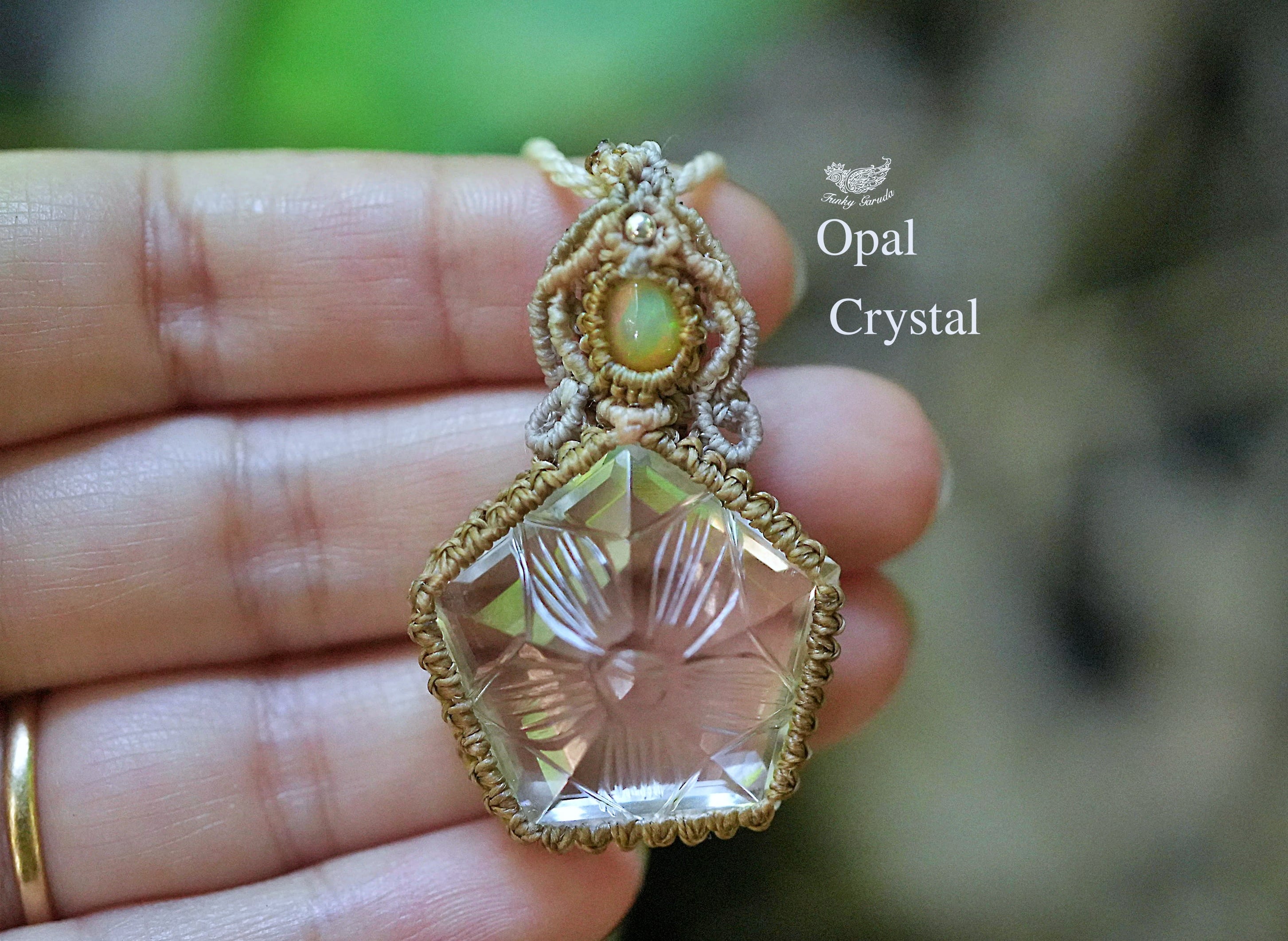 花と水晶★エチオピアオパール クリスタル マクラメネックレス1407