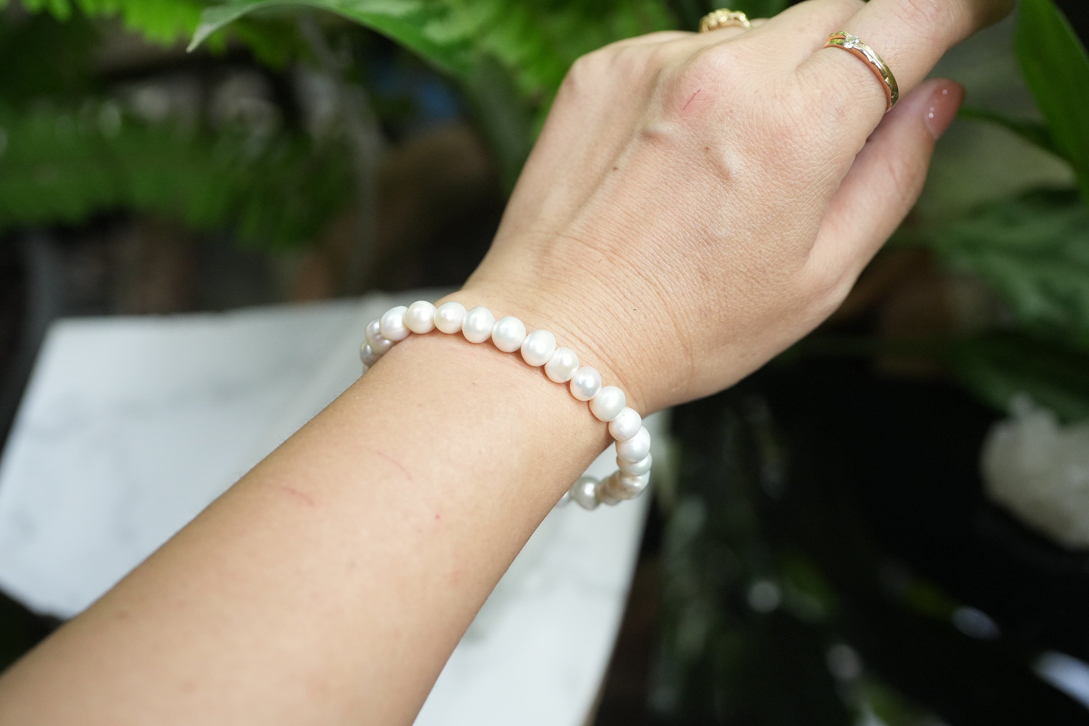 貝が育てた命の賜物です。シルキーな色合いは手首を美しく見立ててくれます。
