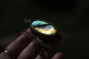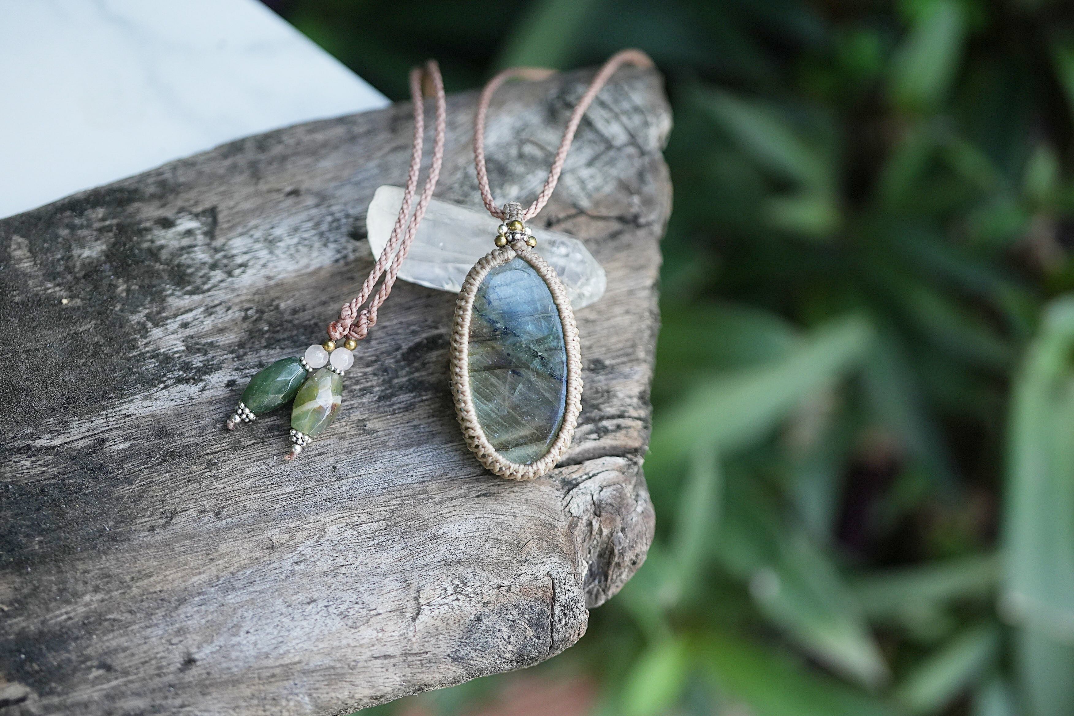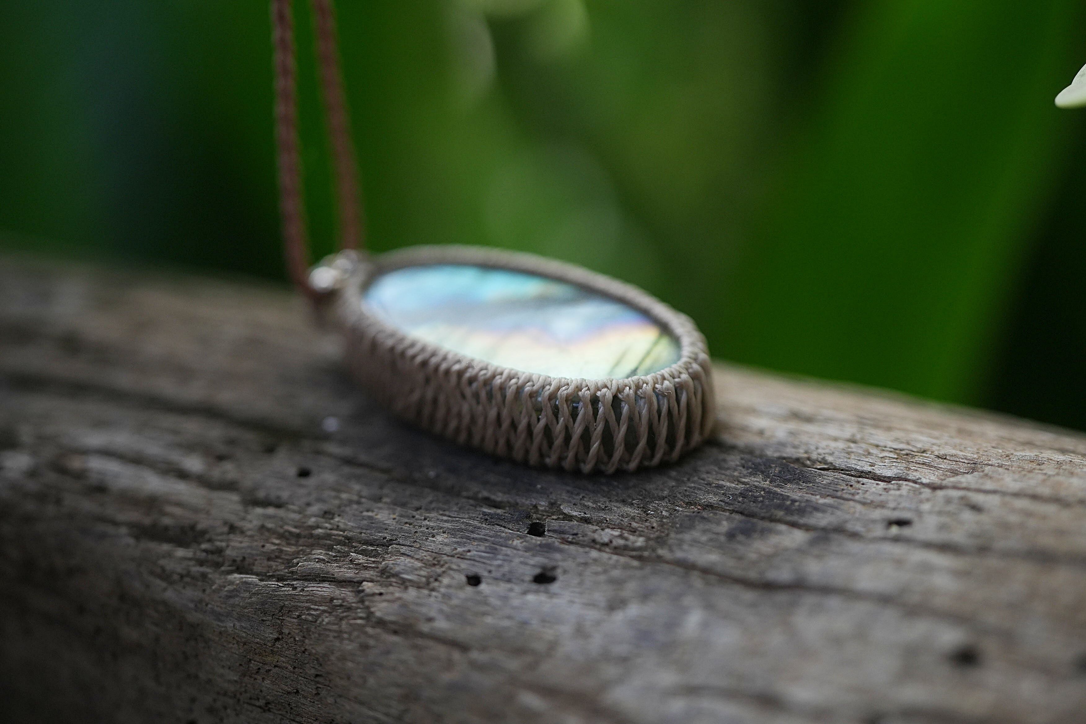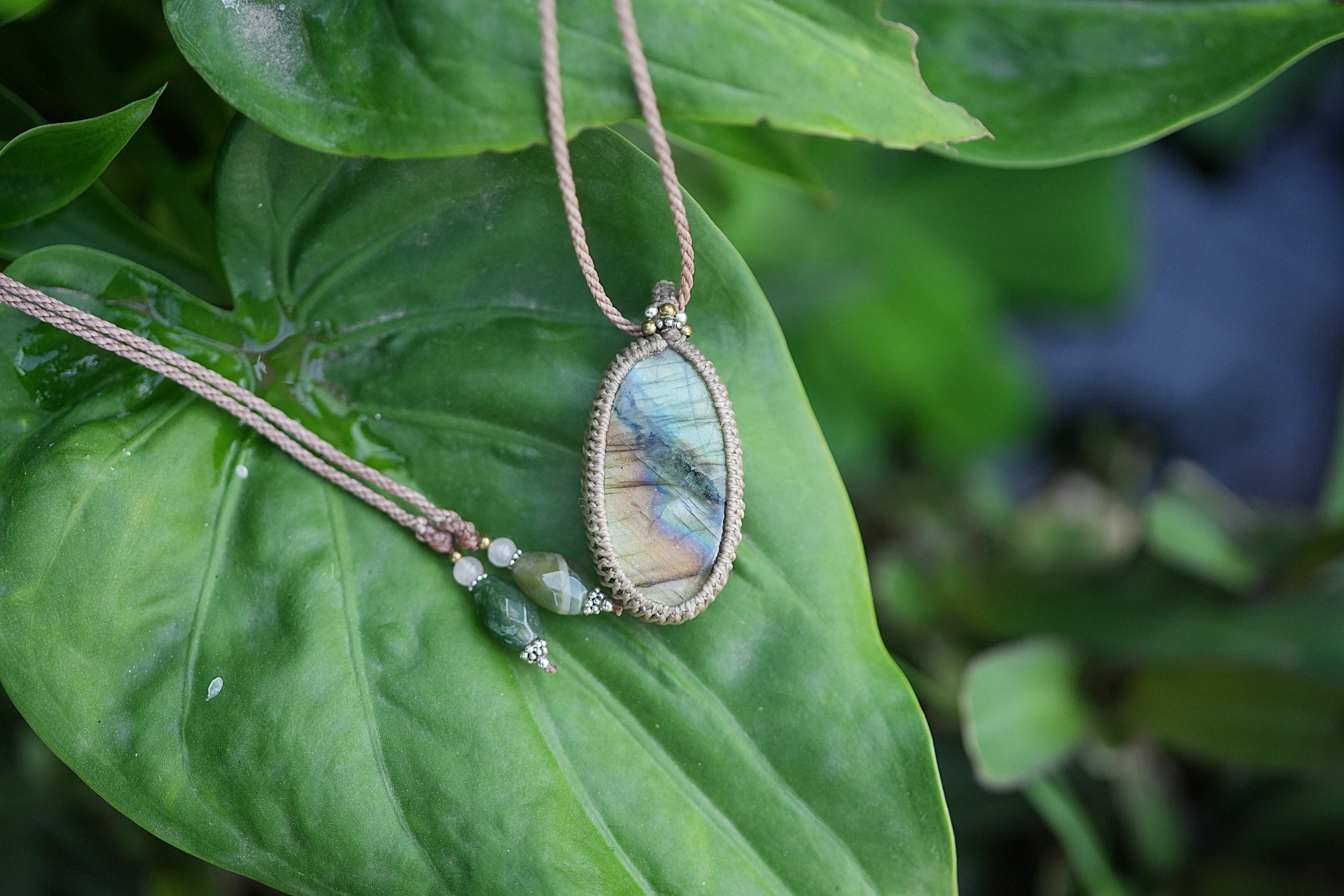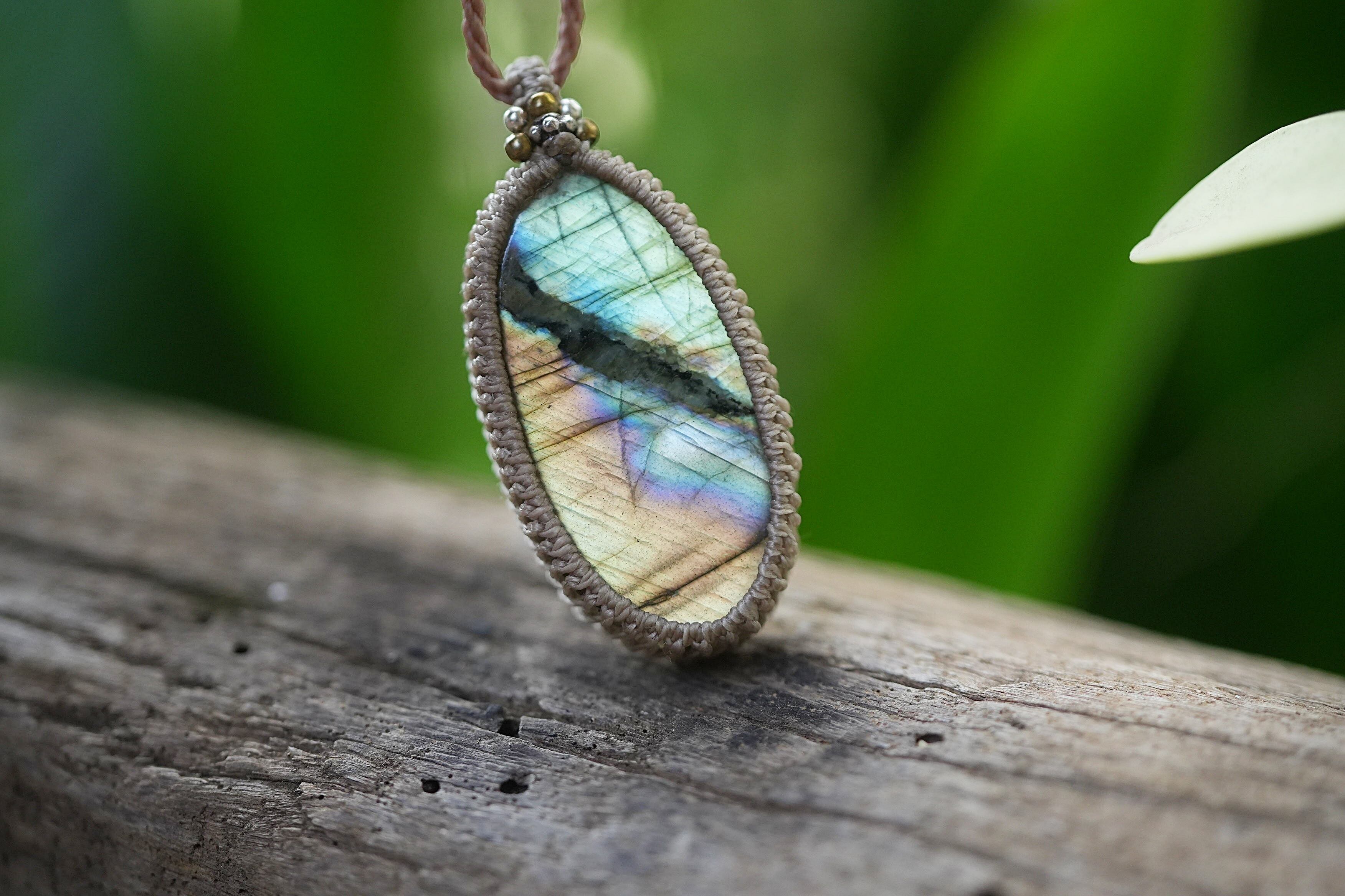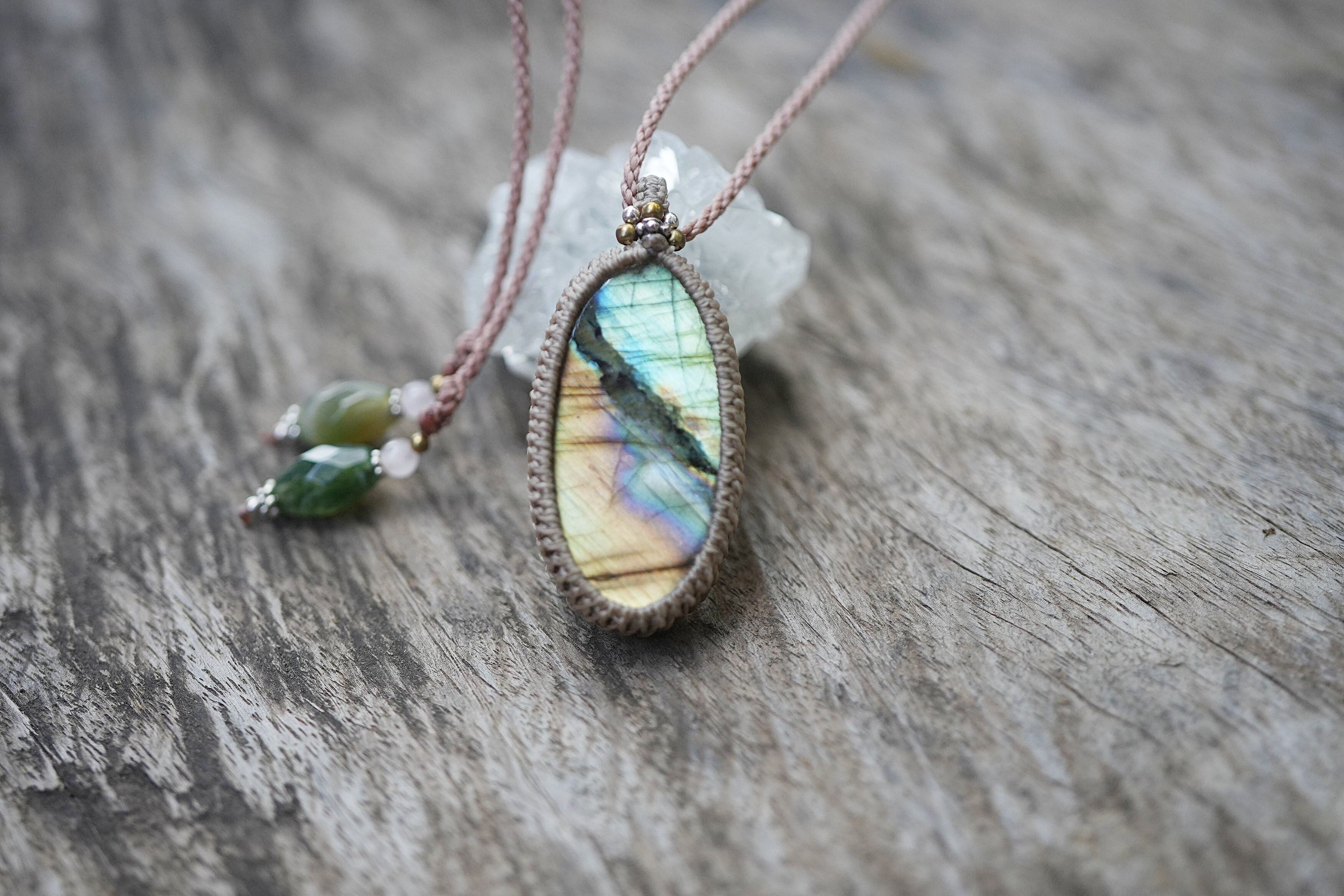 虹の誘惑★マルチカラーラブラドライト マクラメネックレス1435