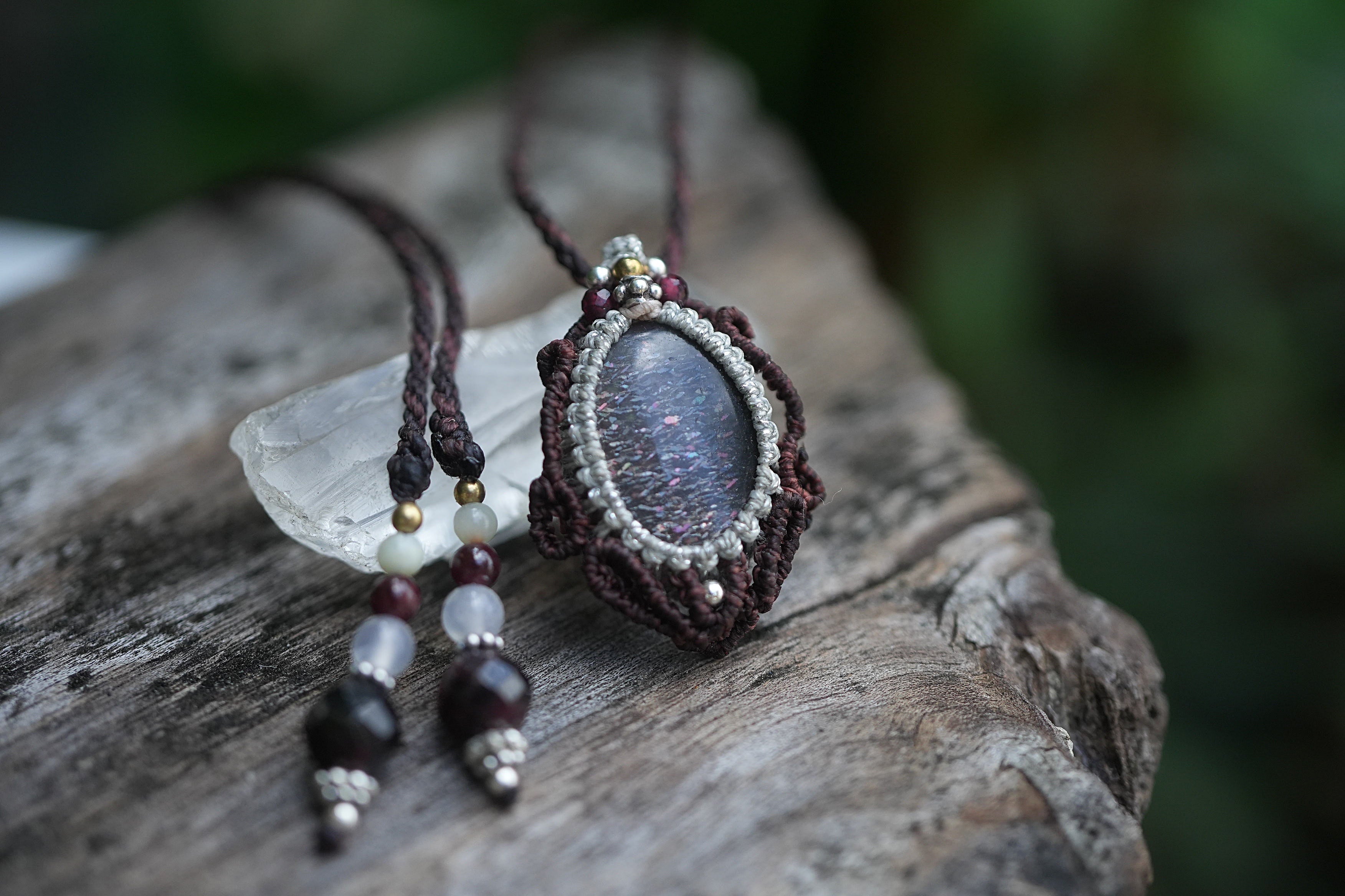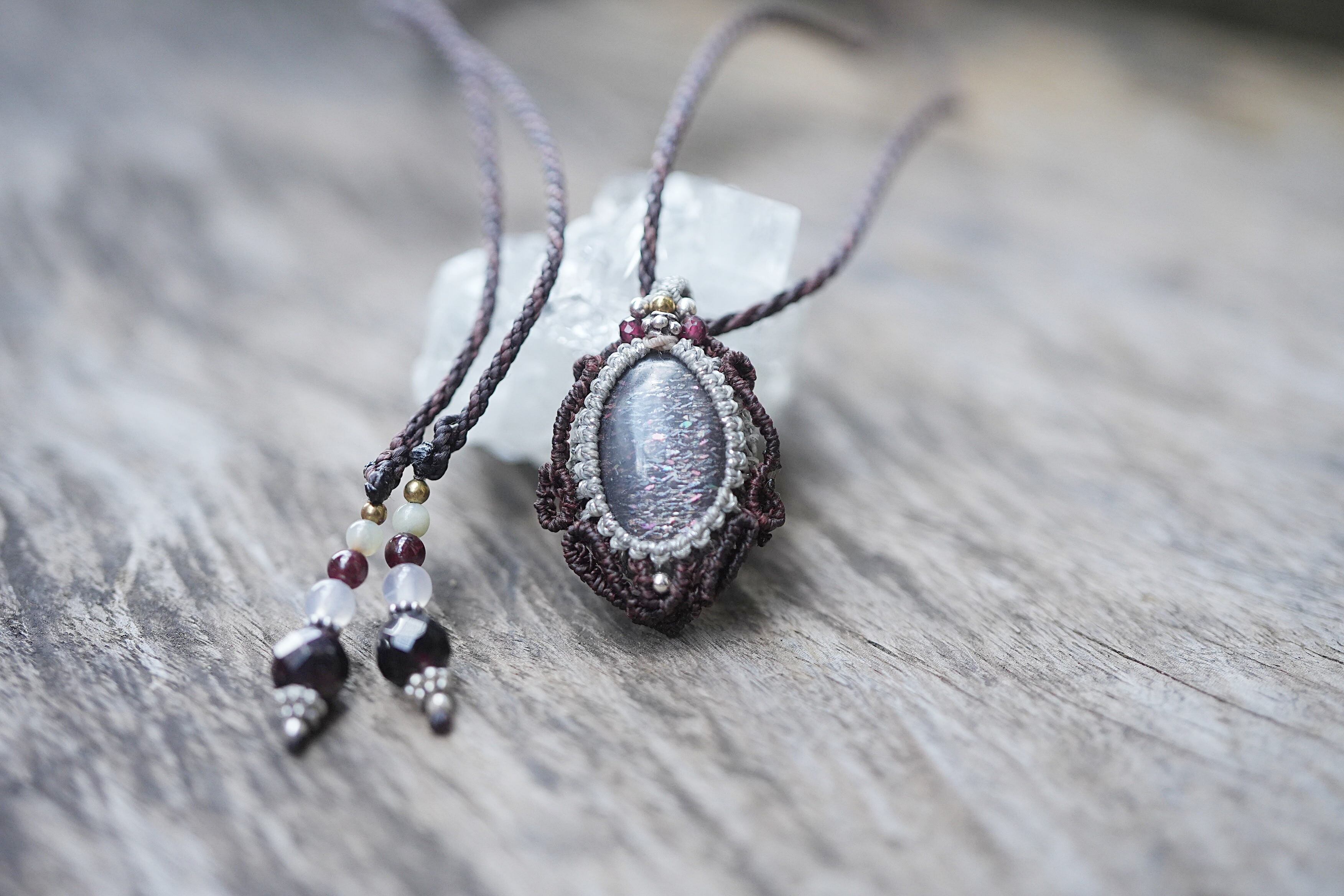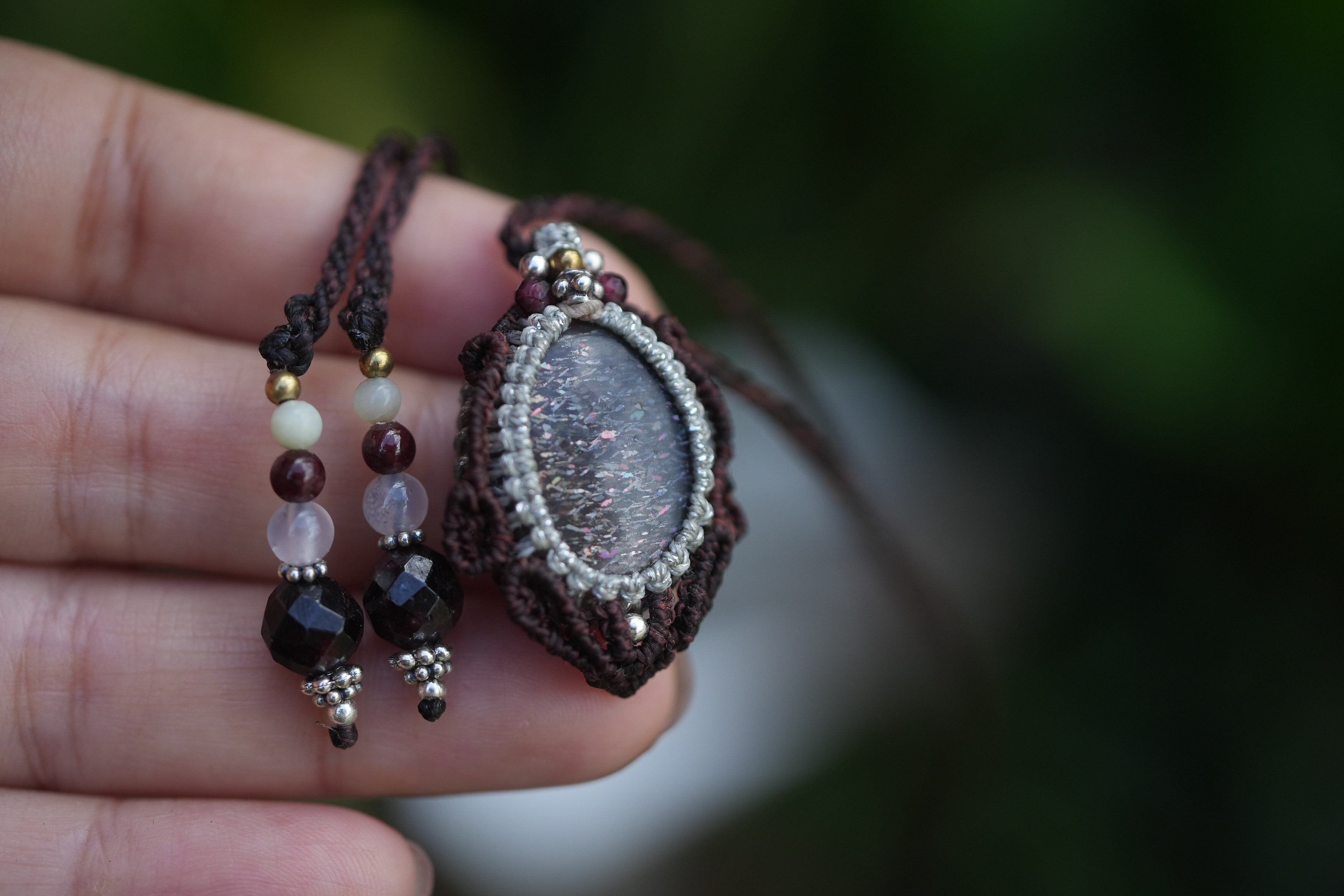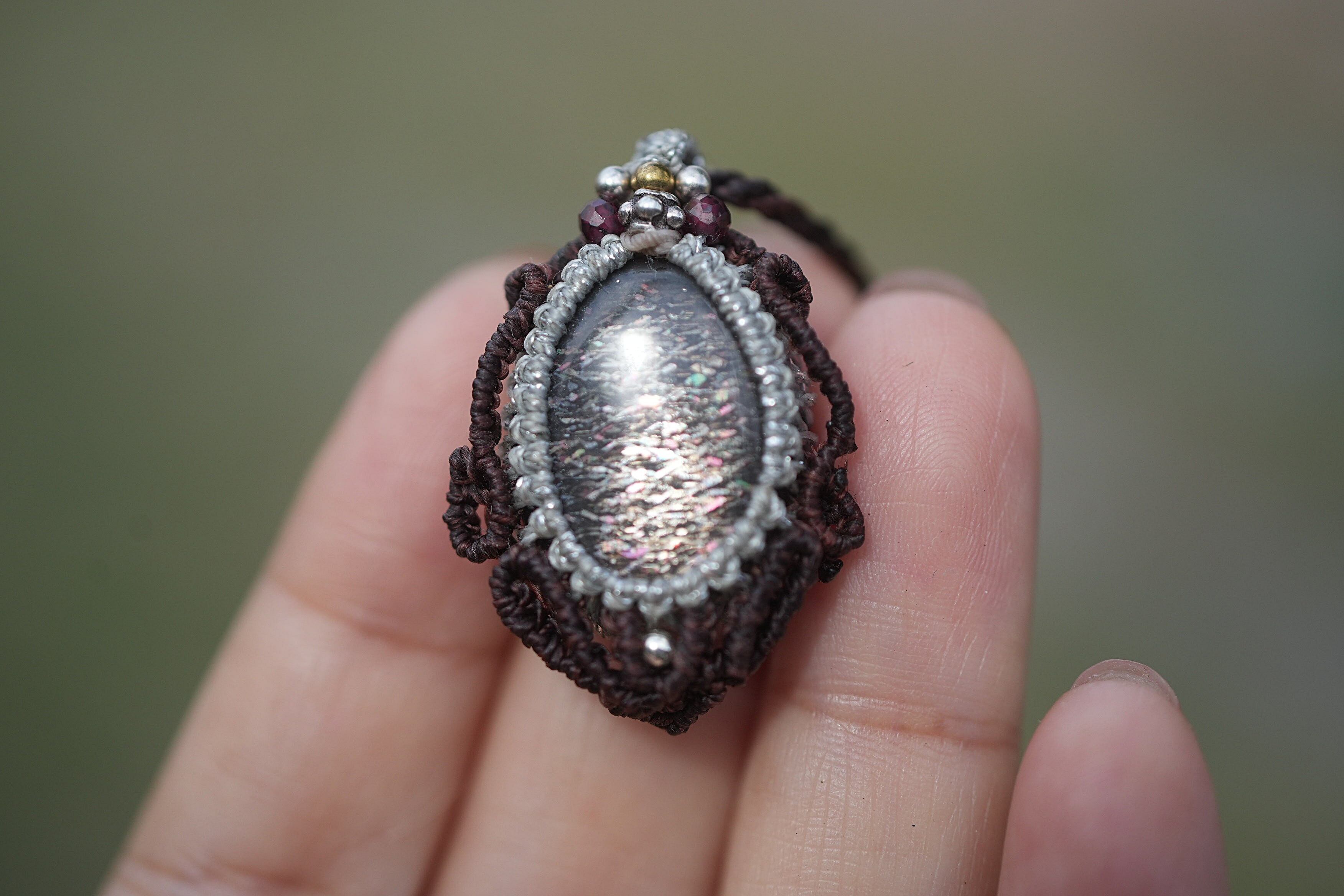 マクラメ編みペンダントにできる大きなサイズに装飾を施し