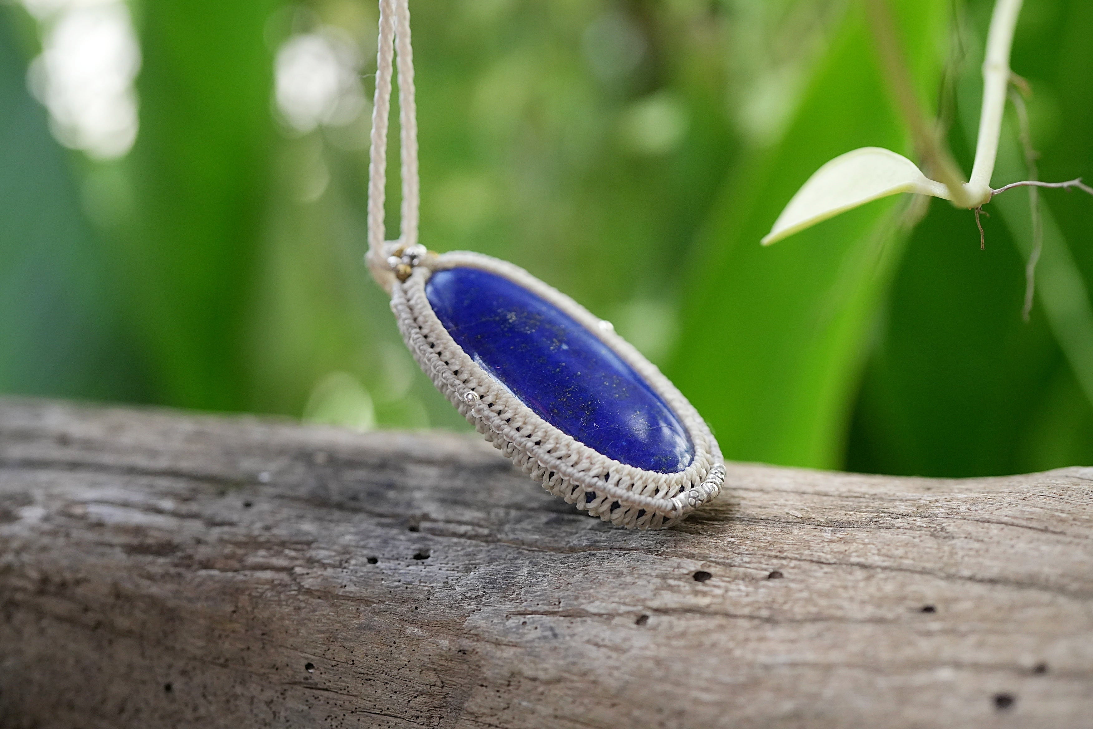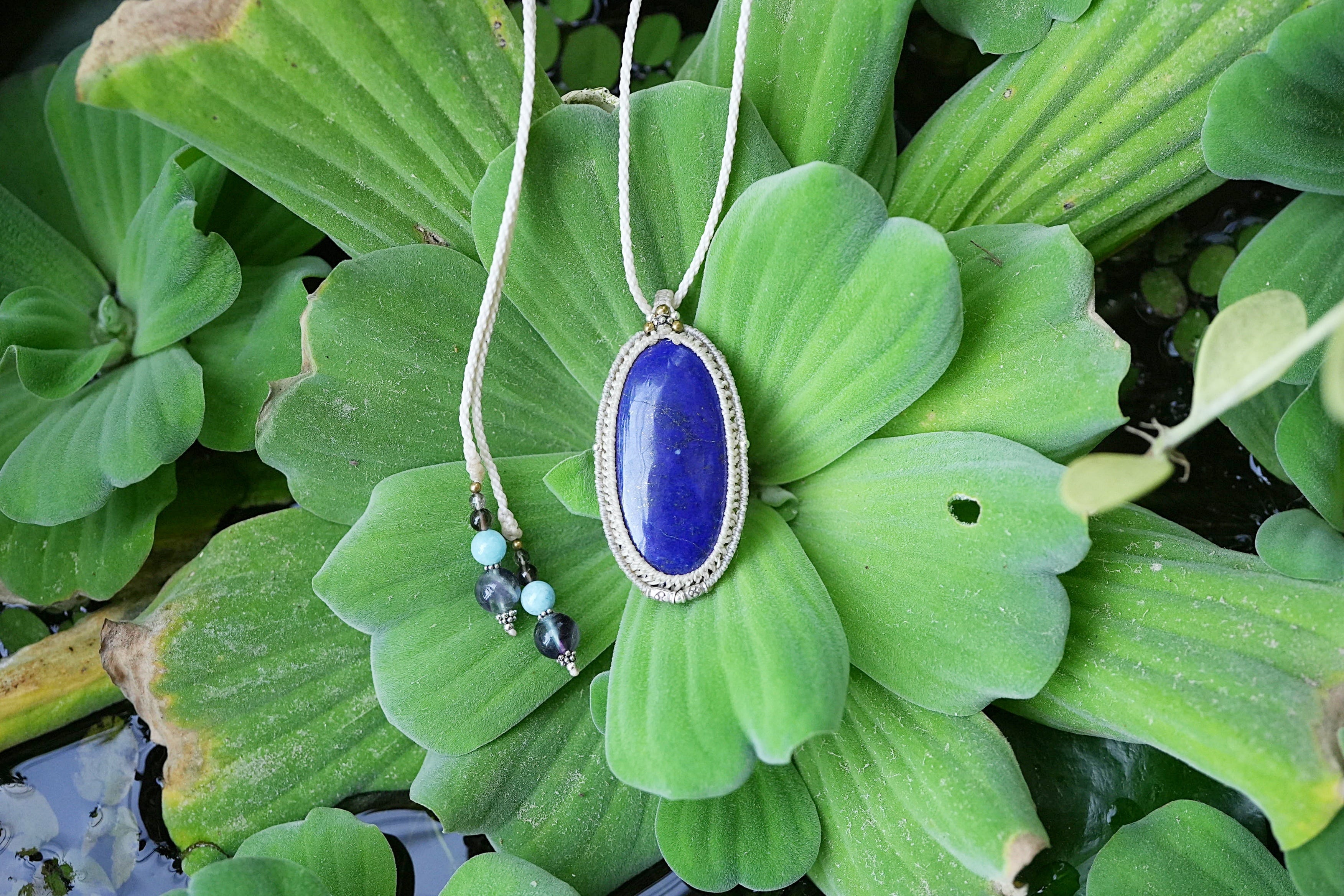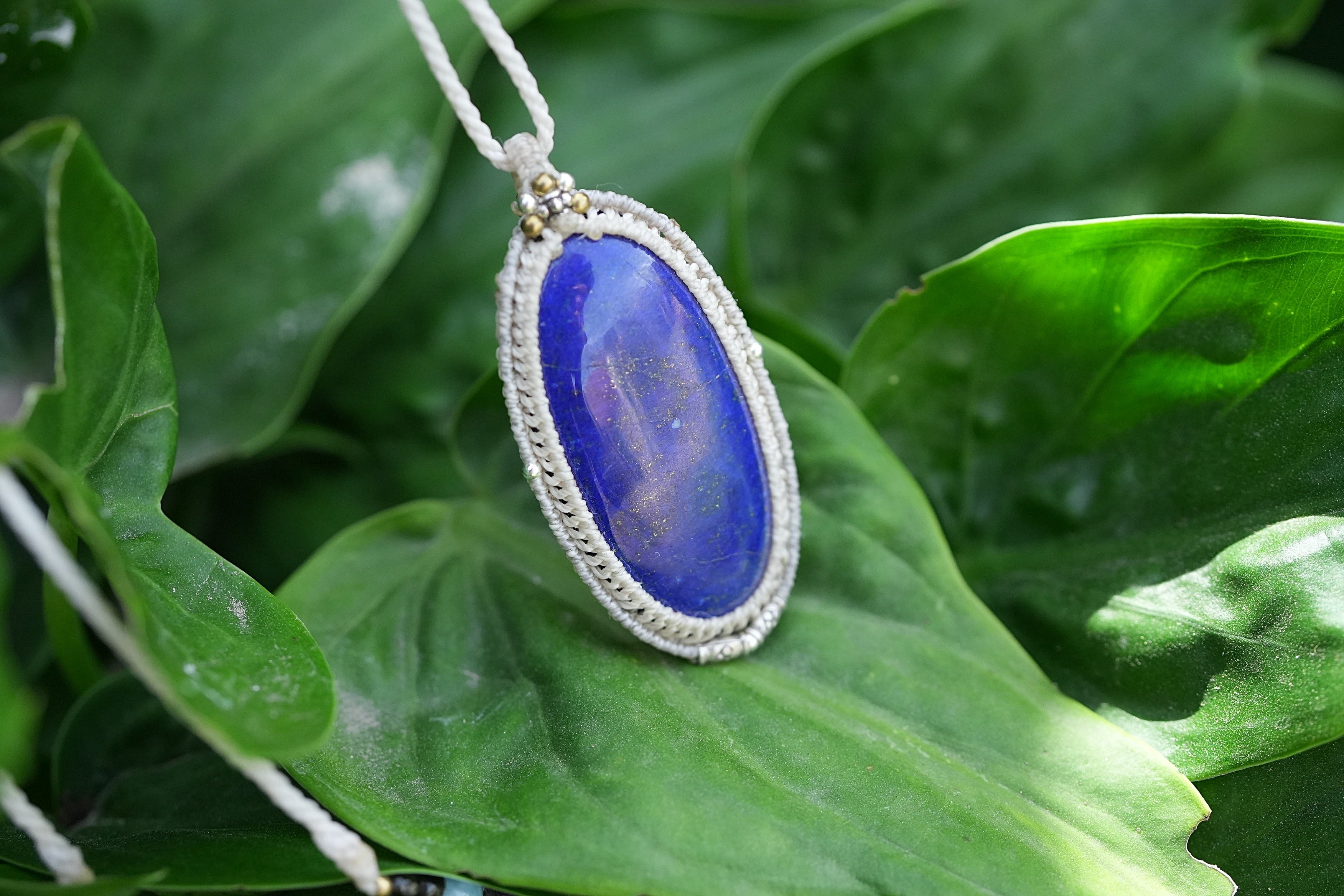 鮮やかブルー★大粒★ラピスラズリ マクラメペンダントネックレス1448