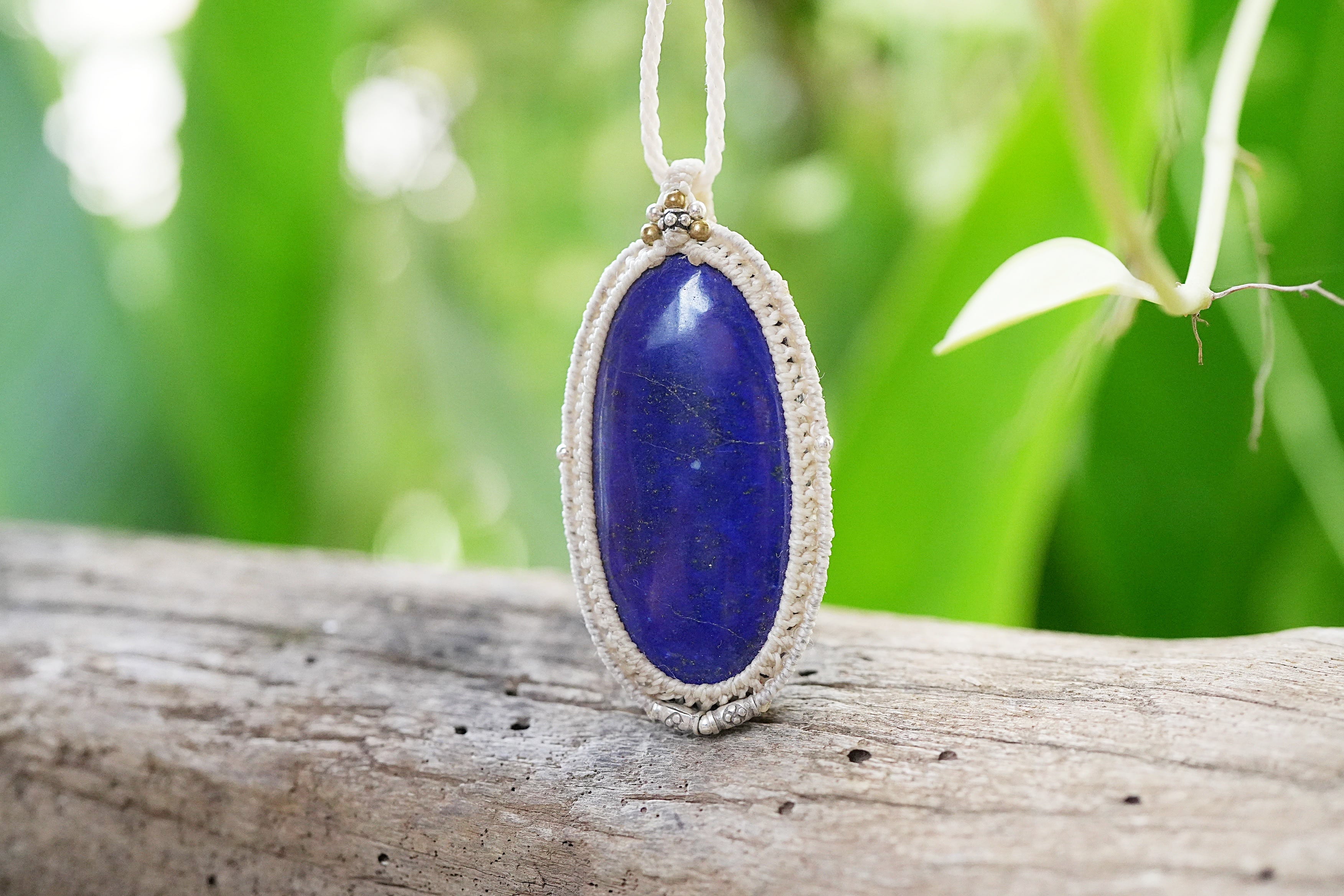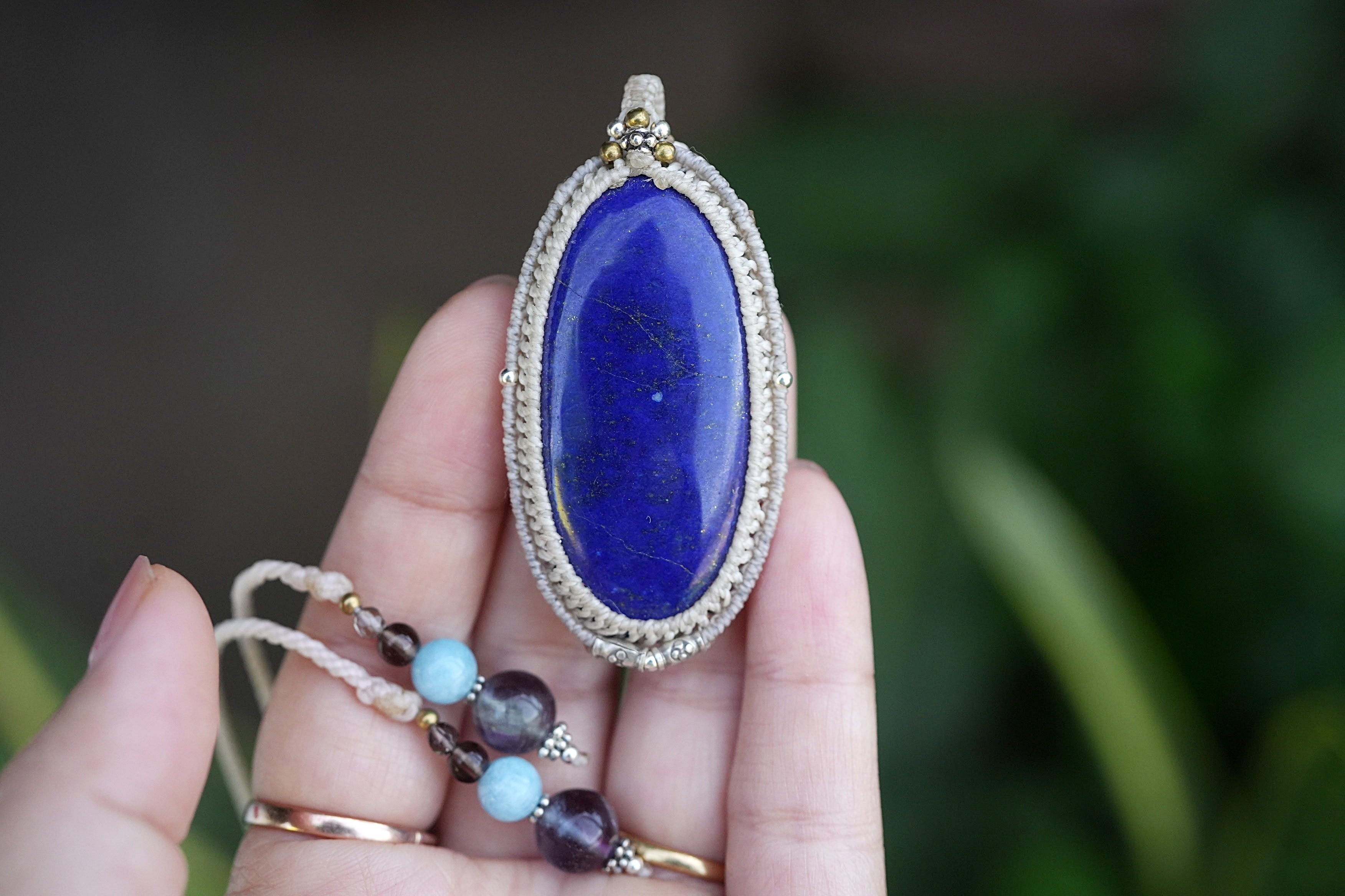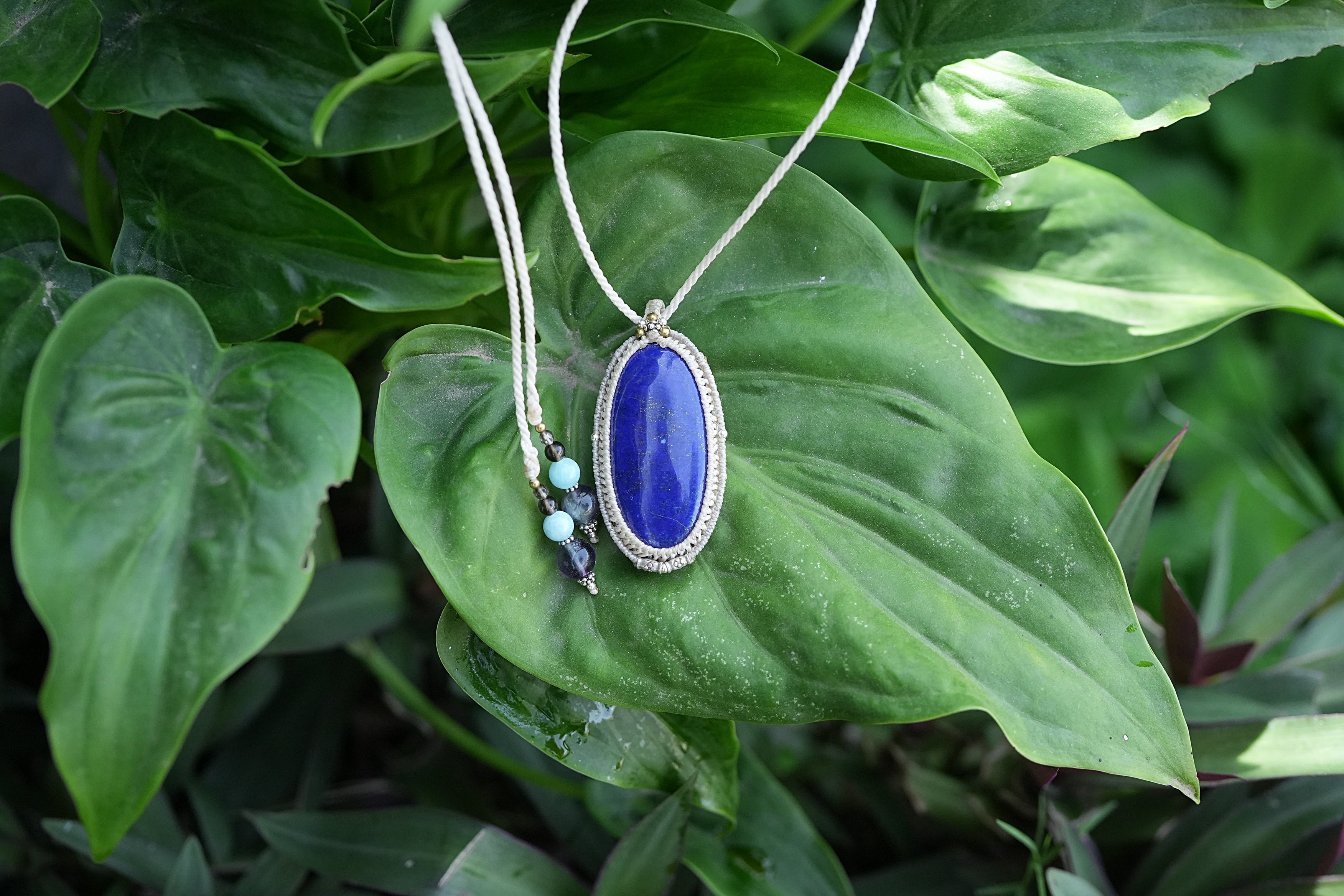 鮮やかブルー★大粒★ラピスラズリ マクラメペンダントネックレス1448