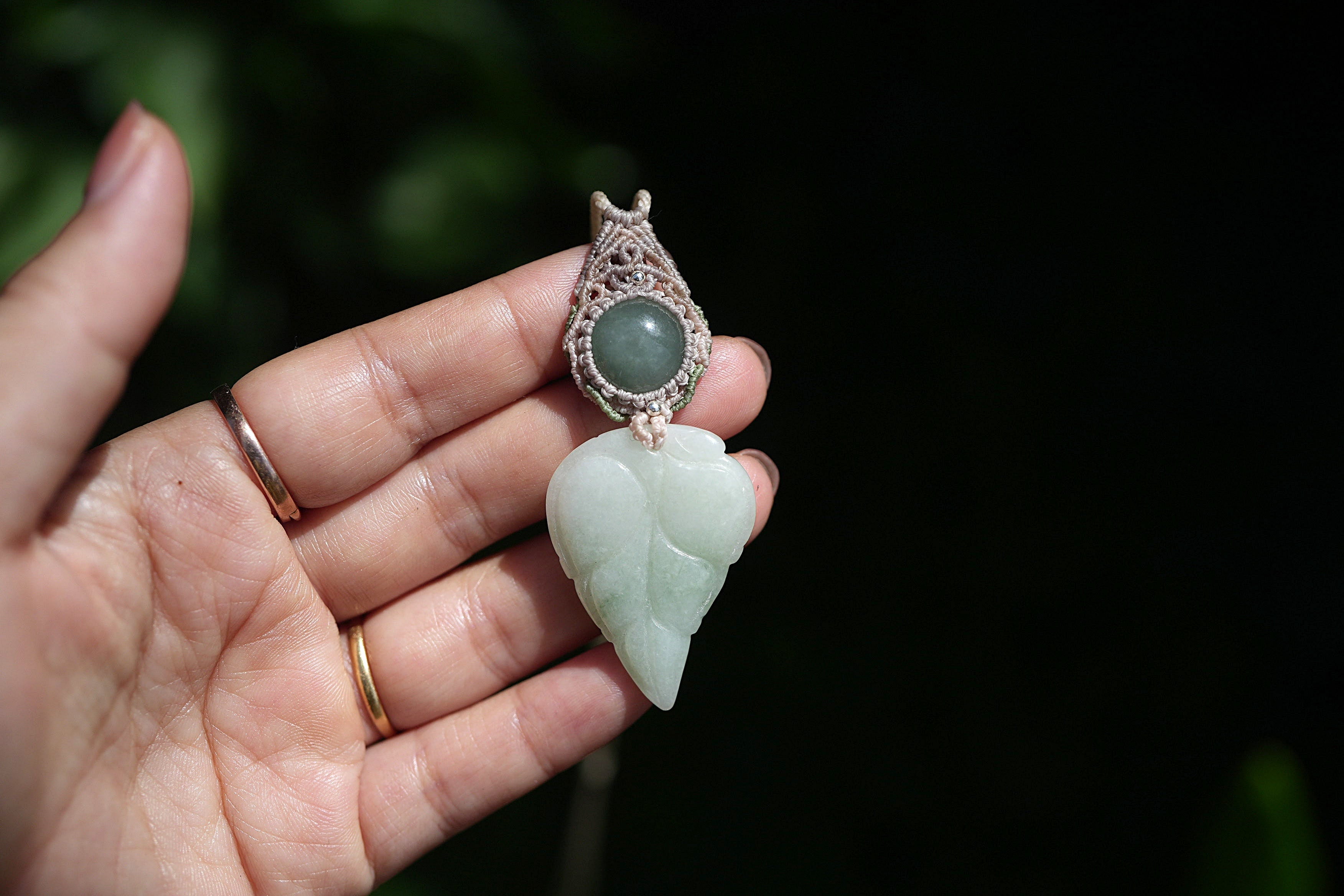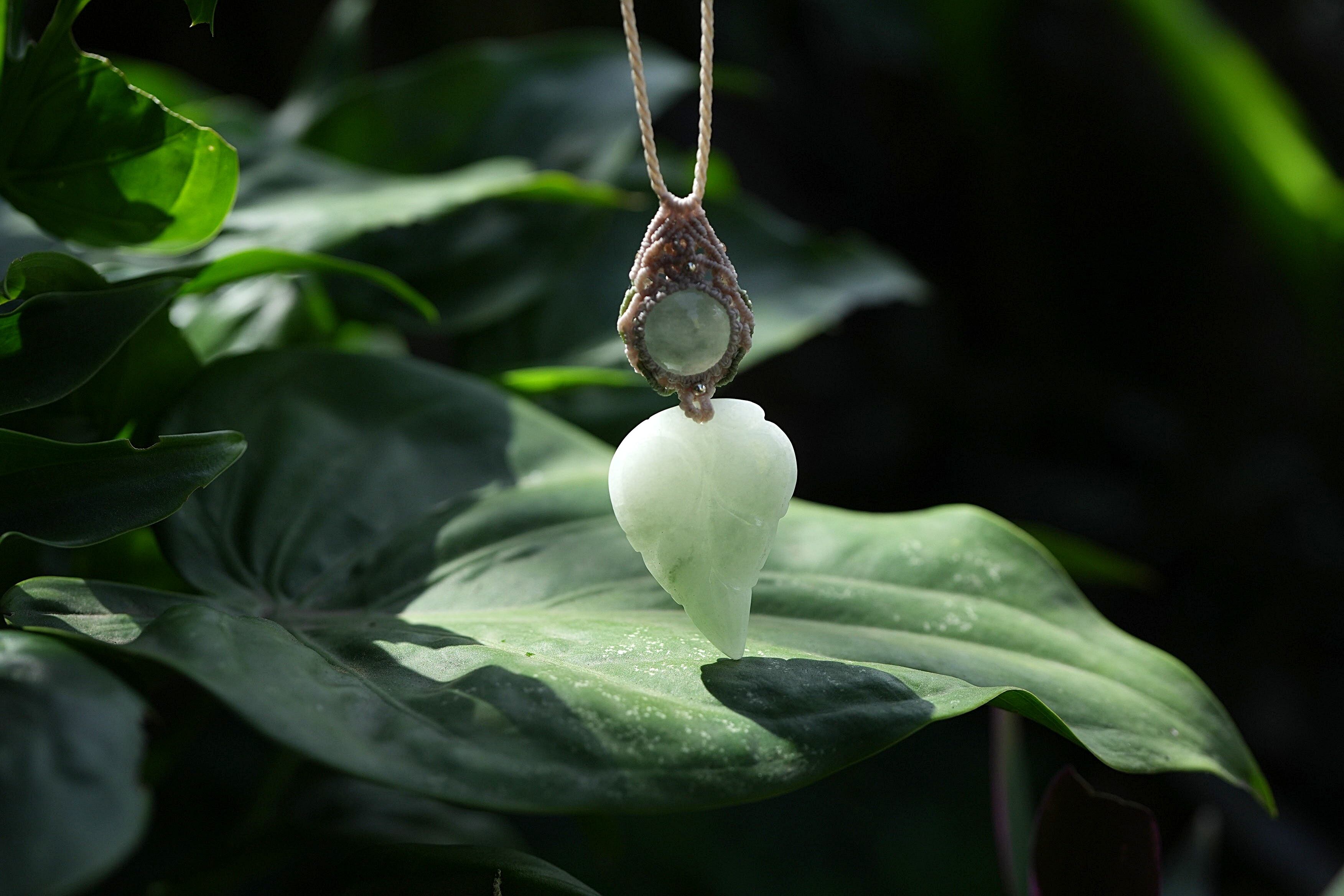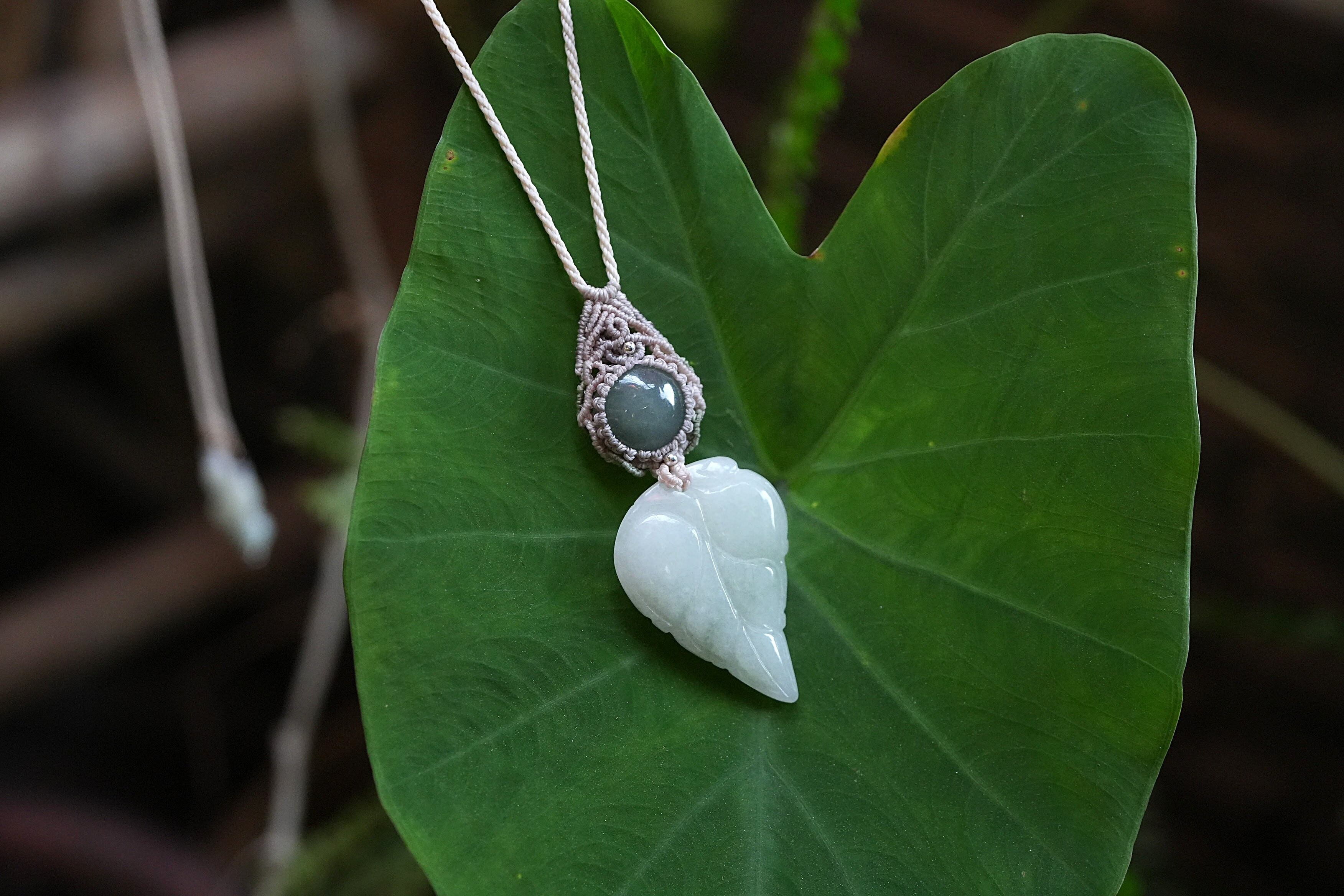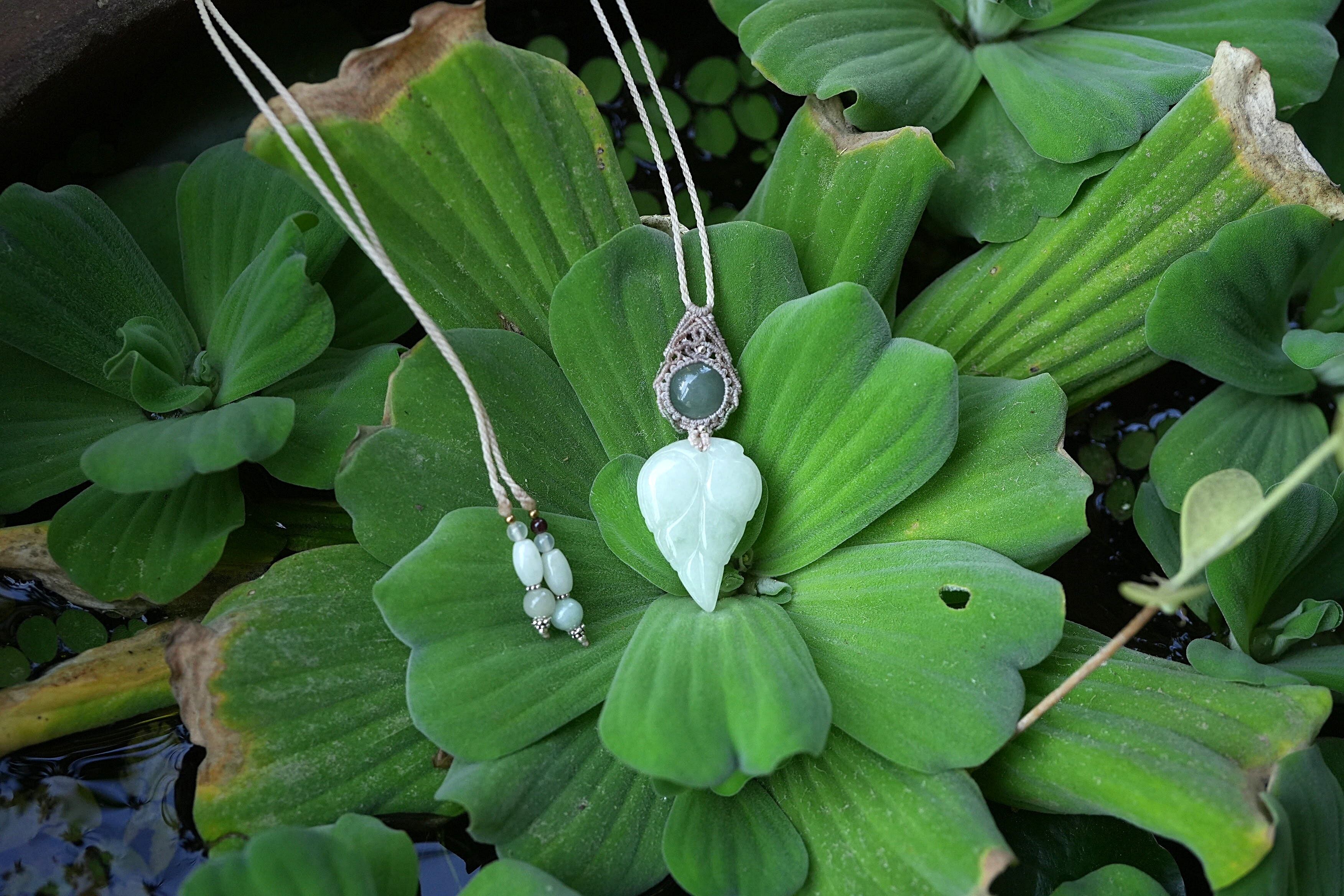 高品質ダブル★ミャンマー本翡翠★マクラメネックレス1452