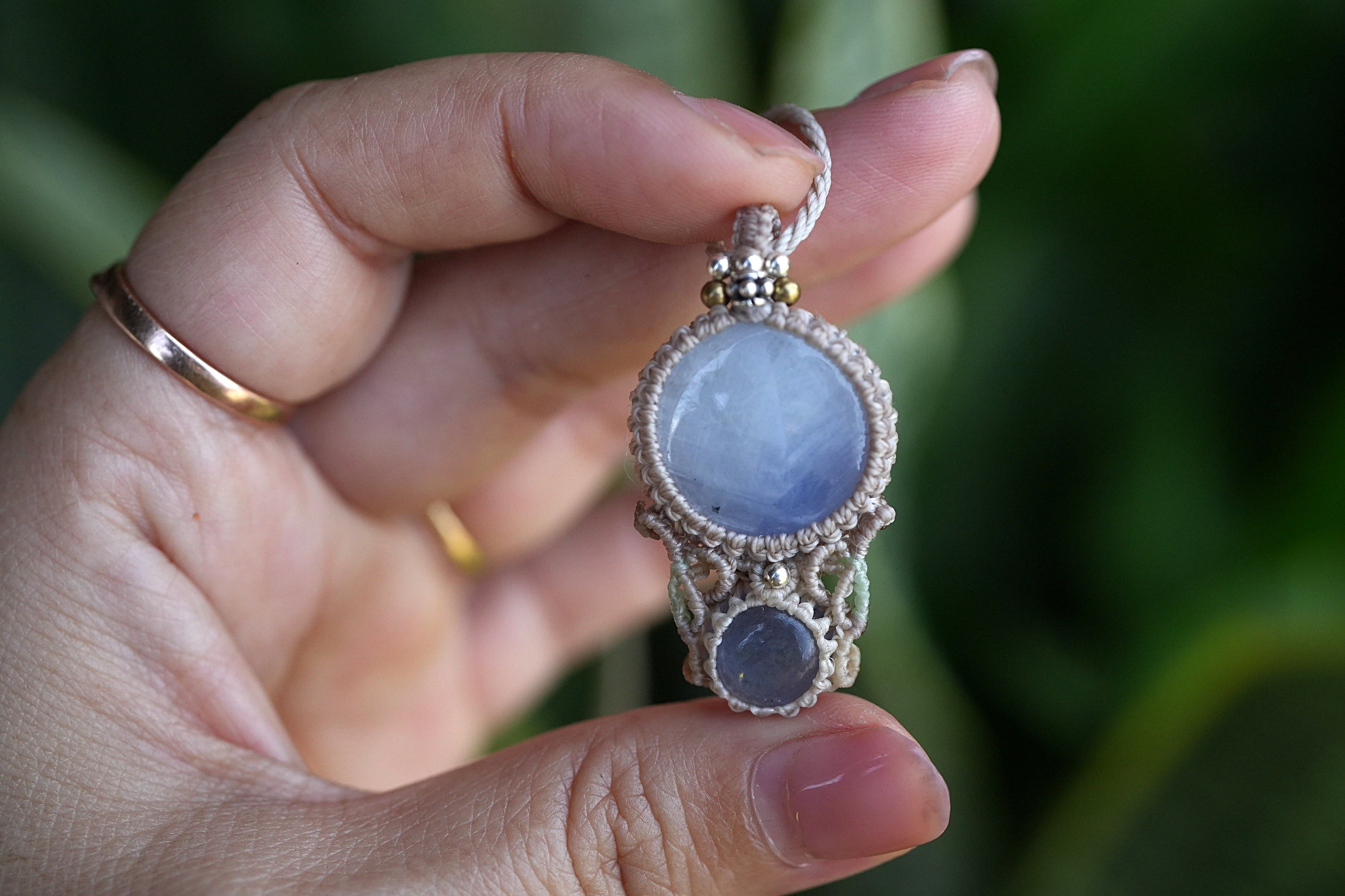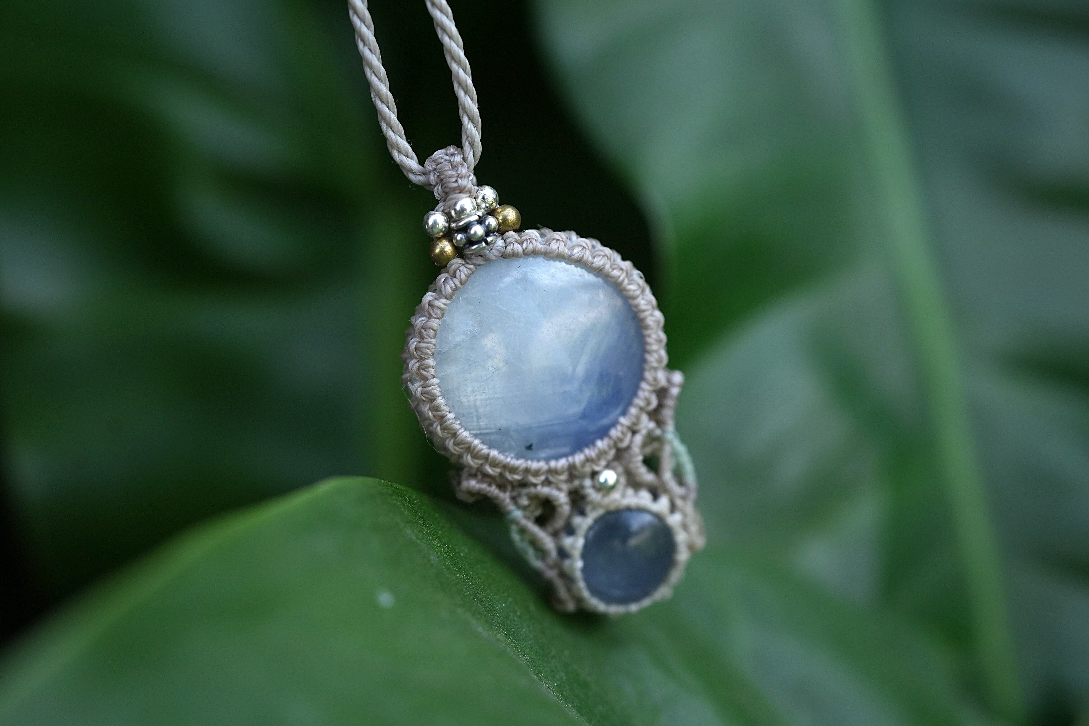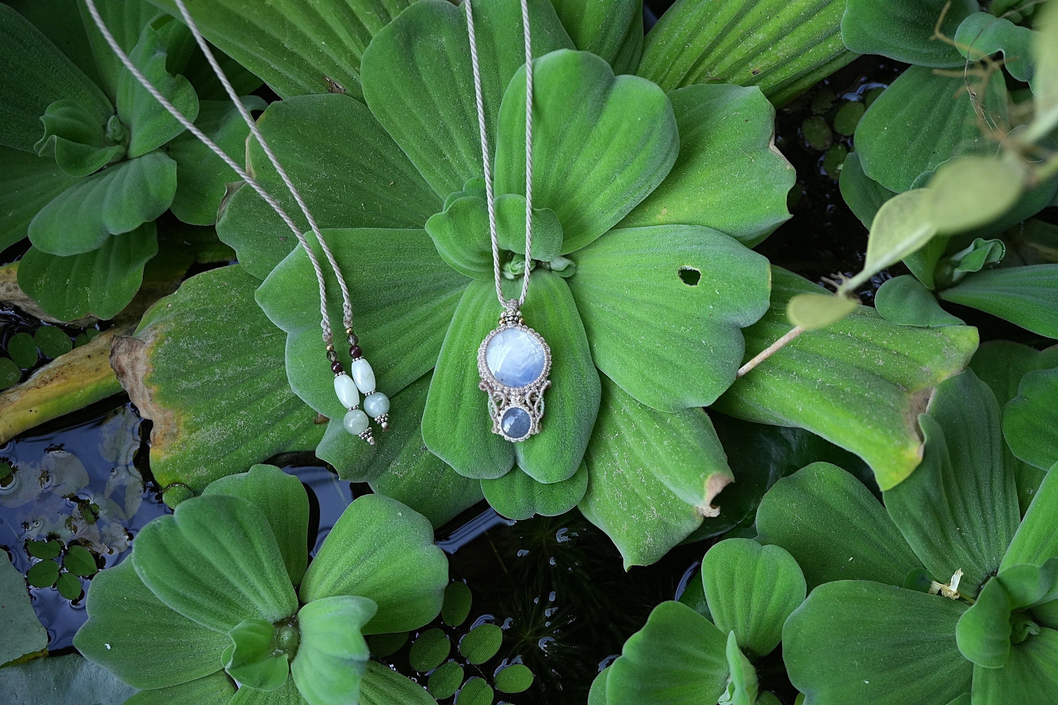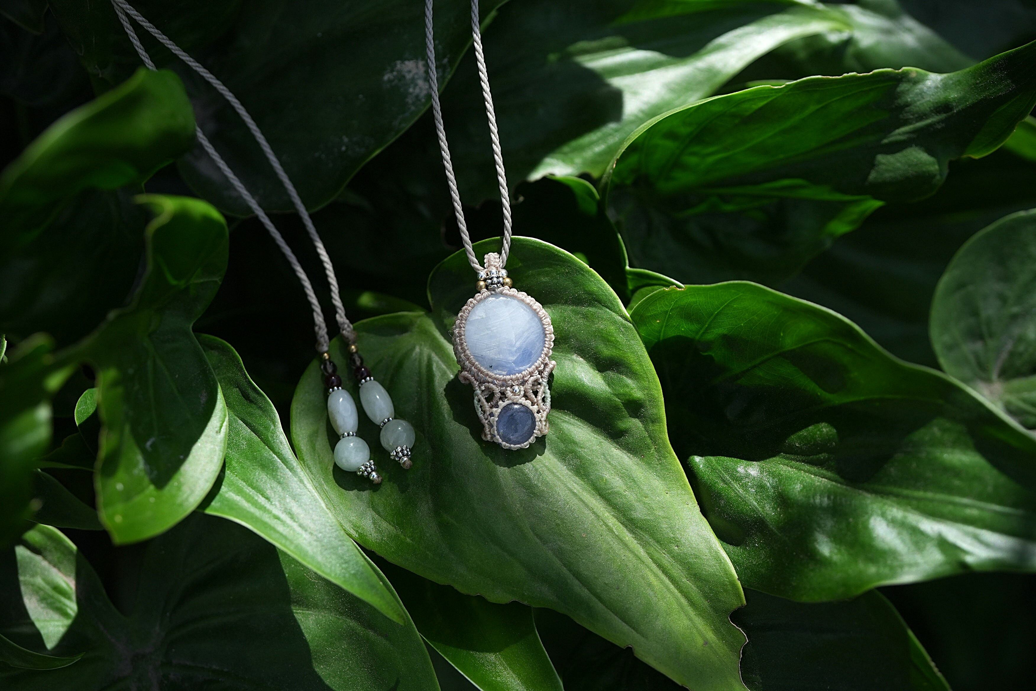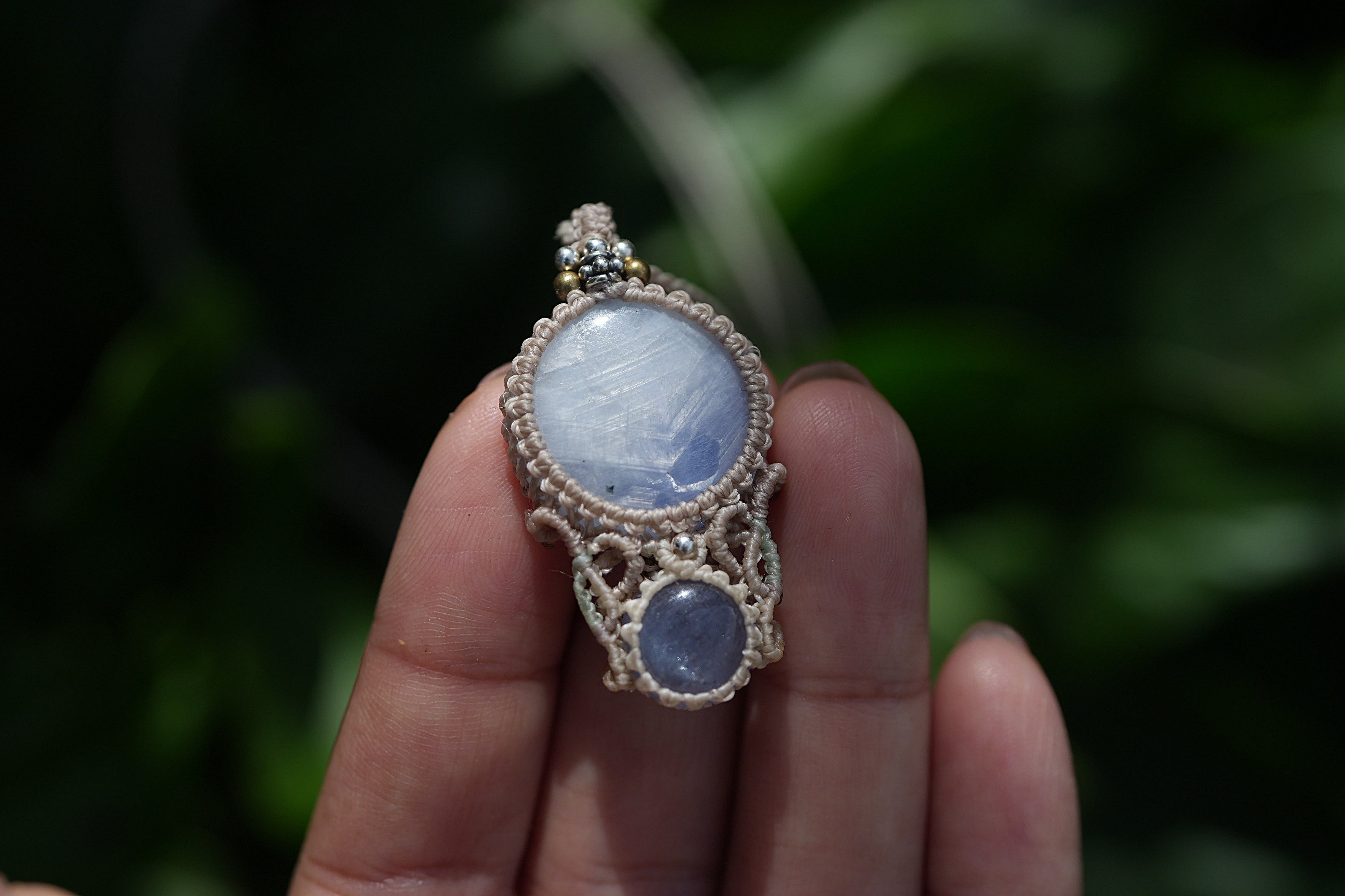2石を小さく、繊細にマクラメ編み装飾にてコネクトしました。