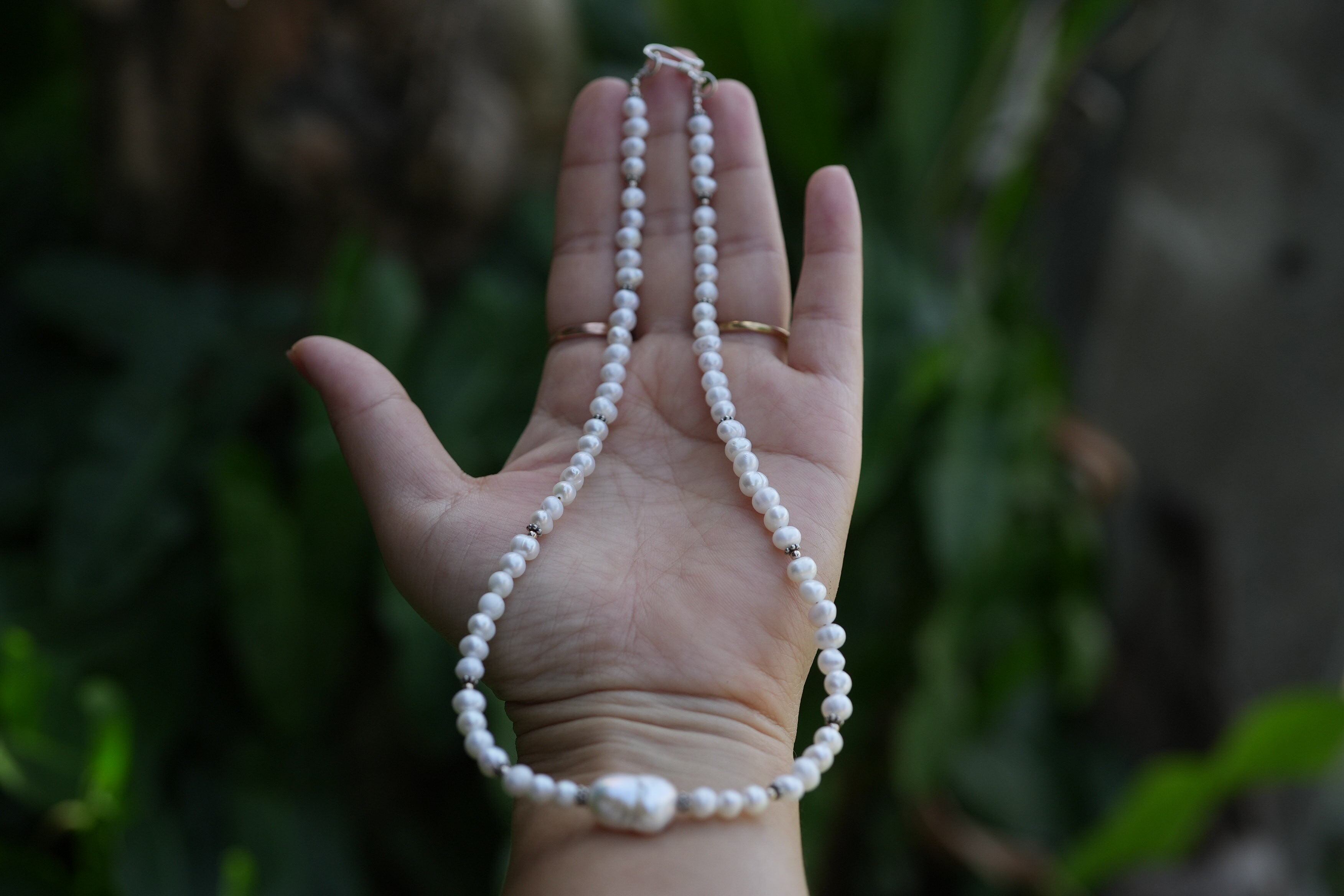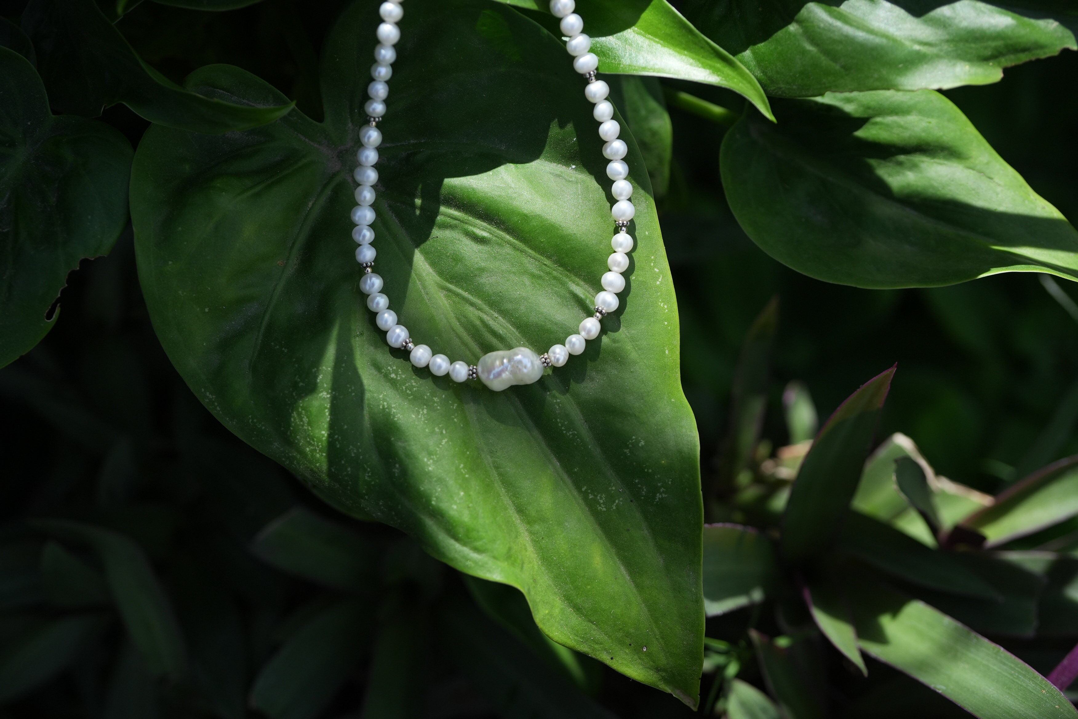 大きな真珠とSv.92.5★真珠パール ネックレス1456
