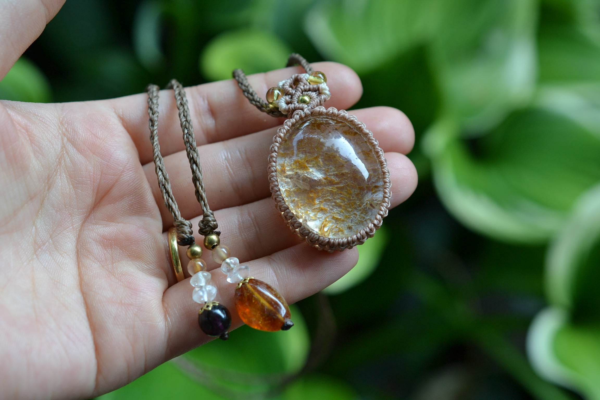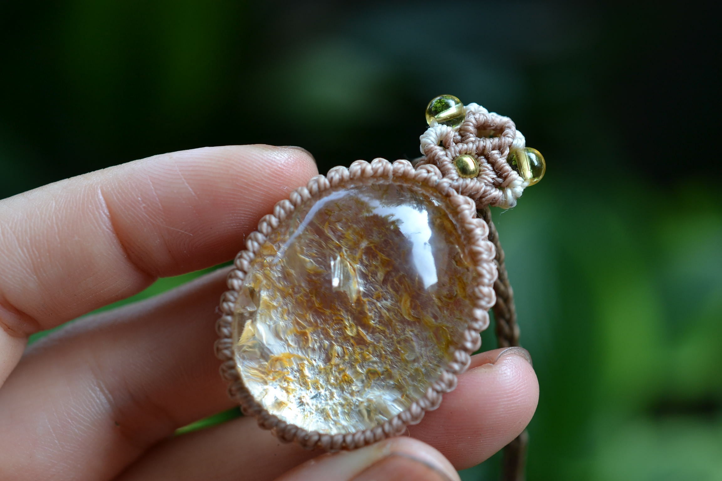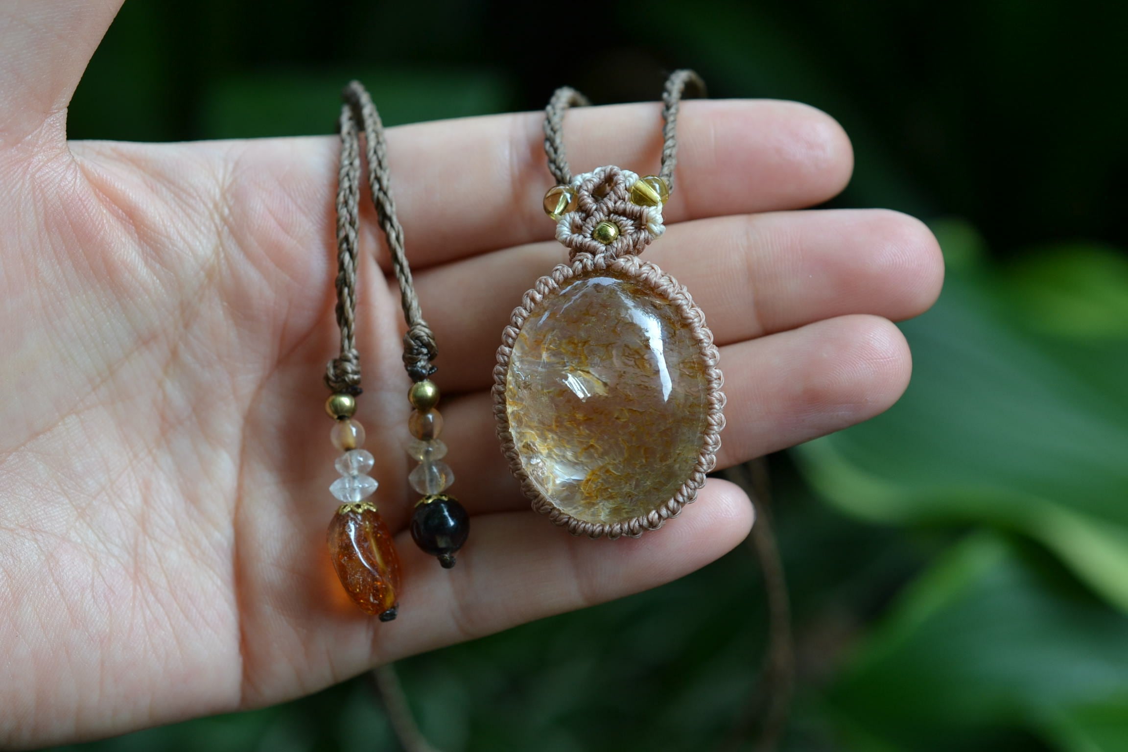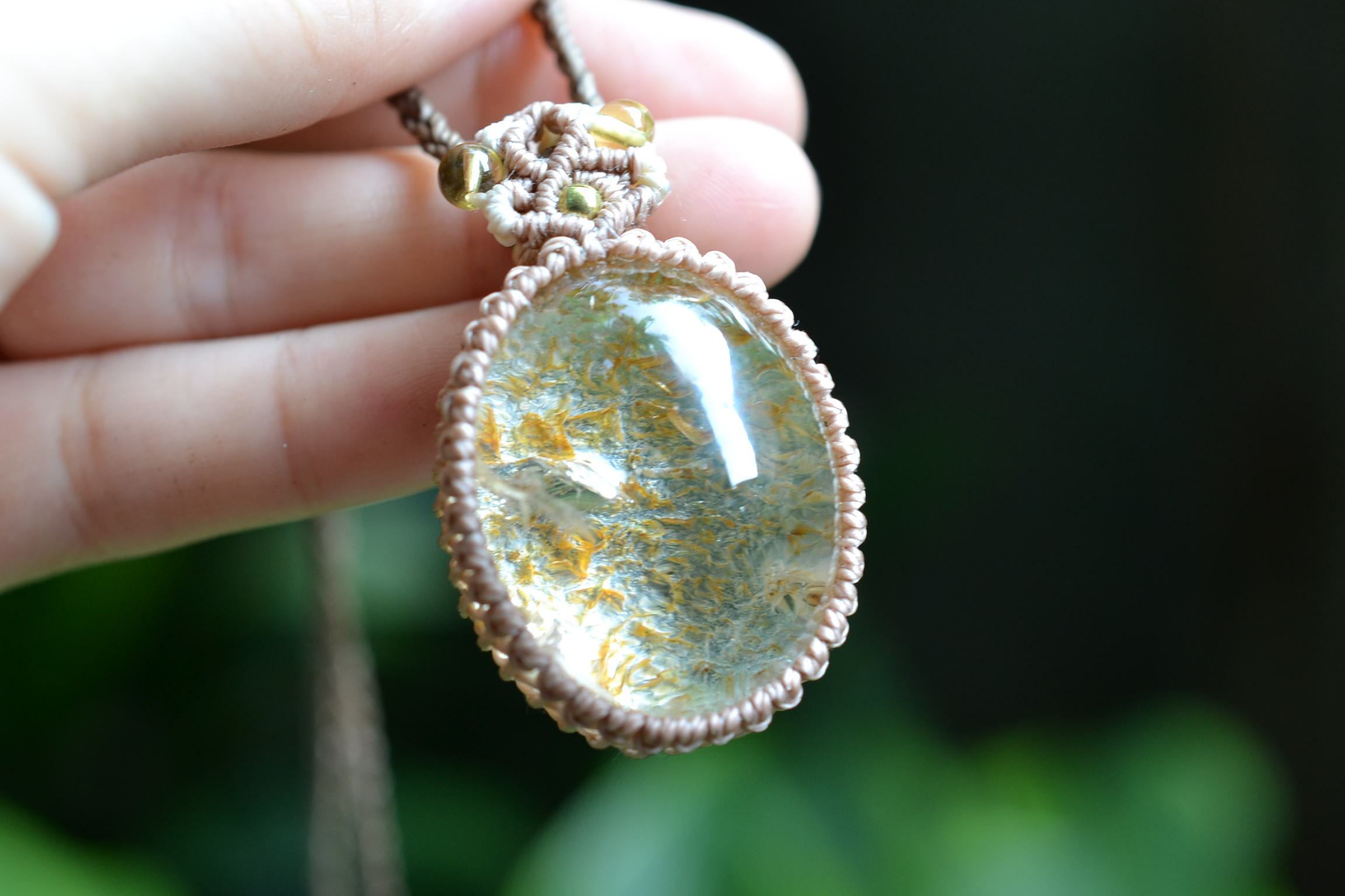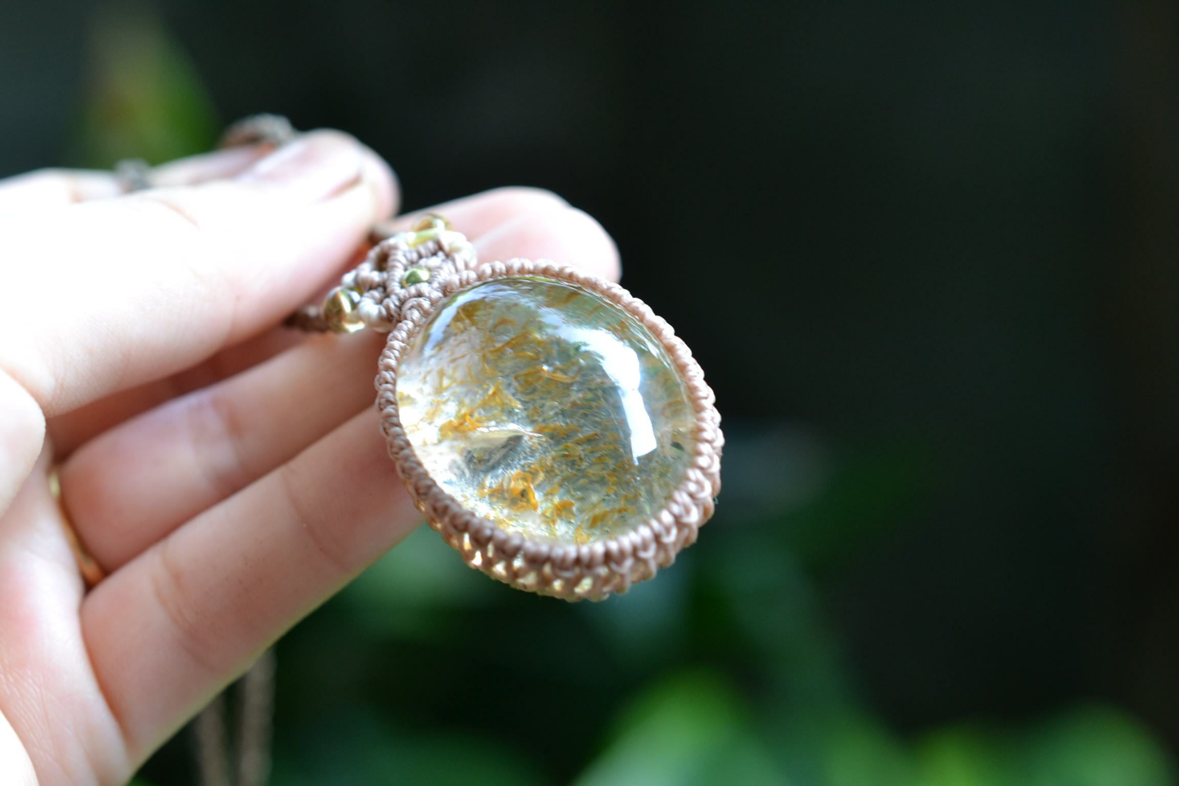 イエローピンク運河★ガーデンクォーツ マクラメペンダント
