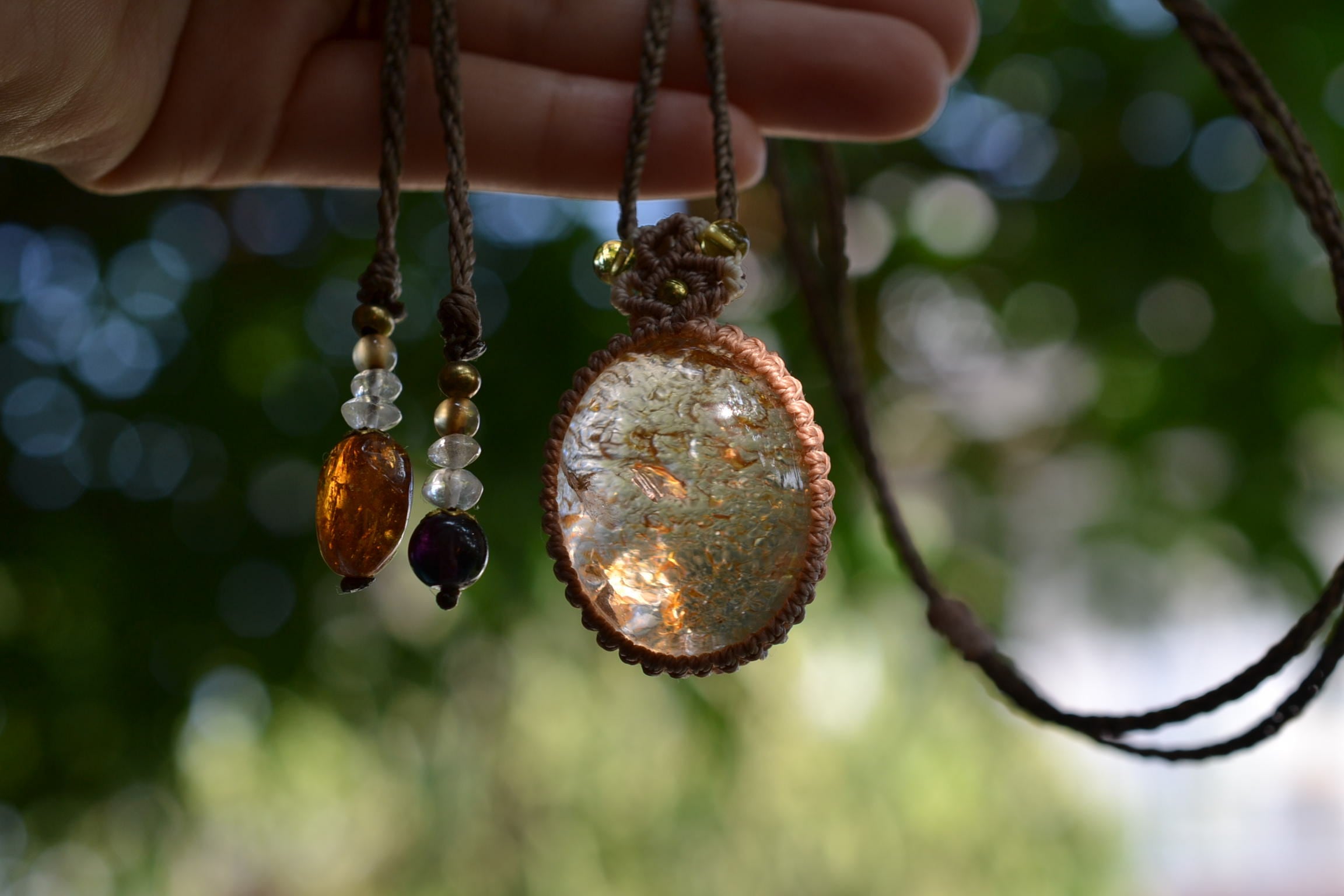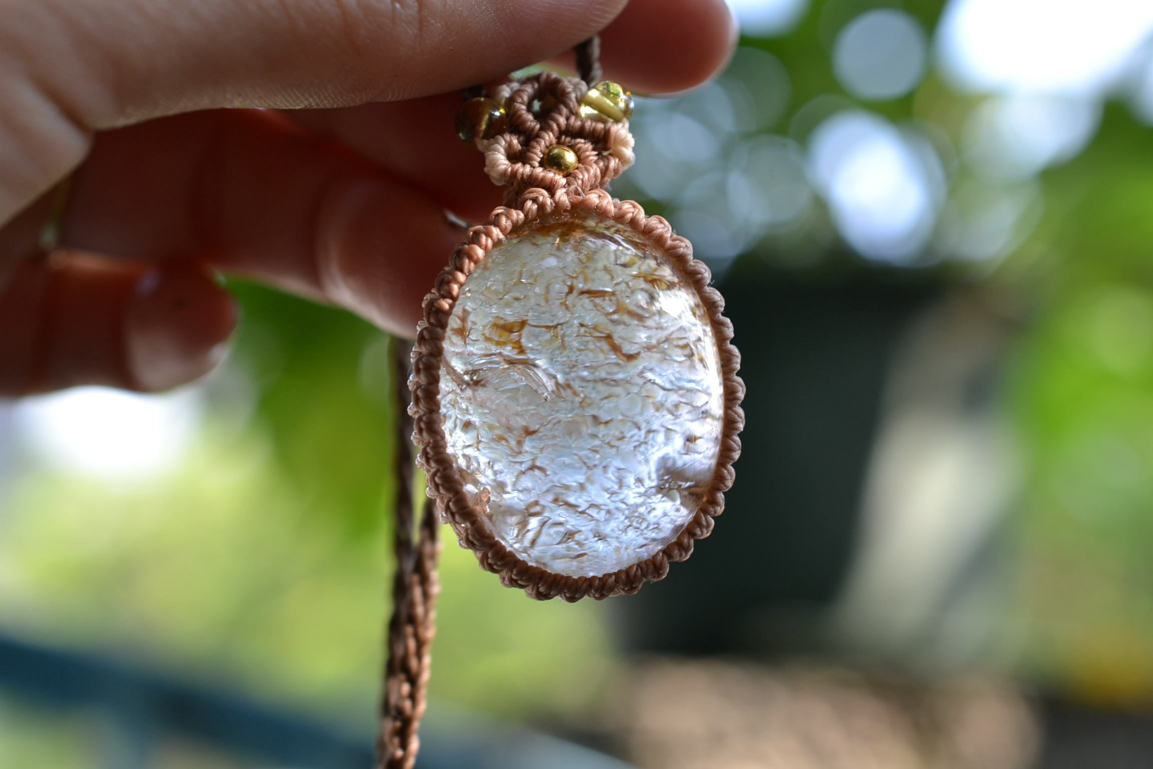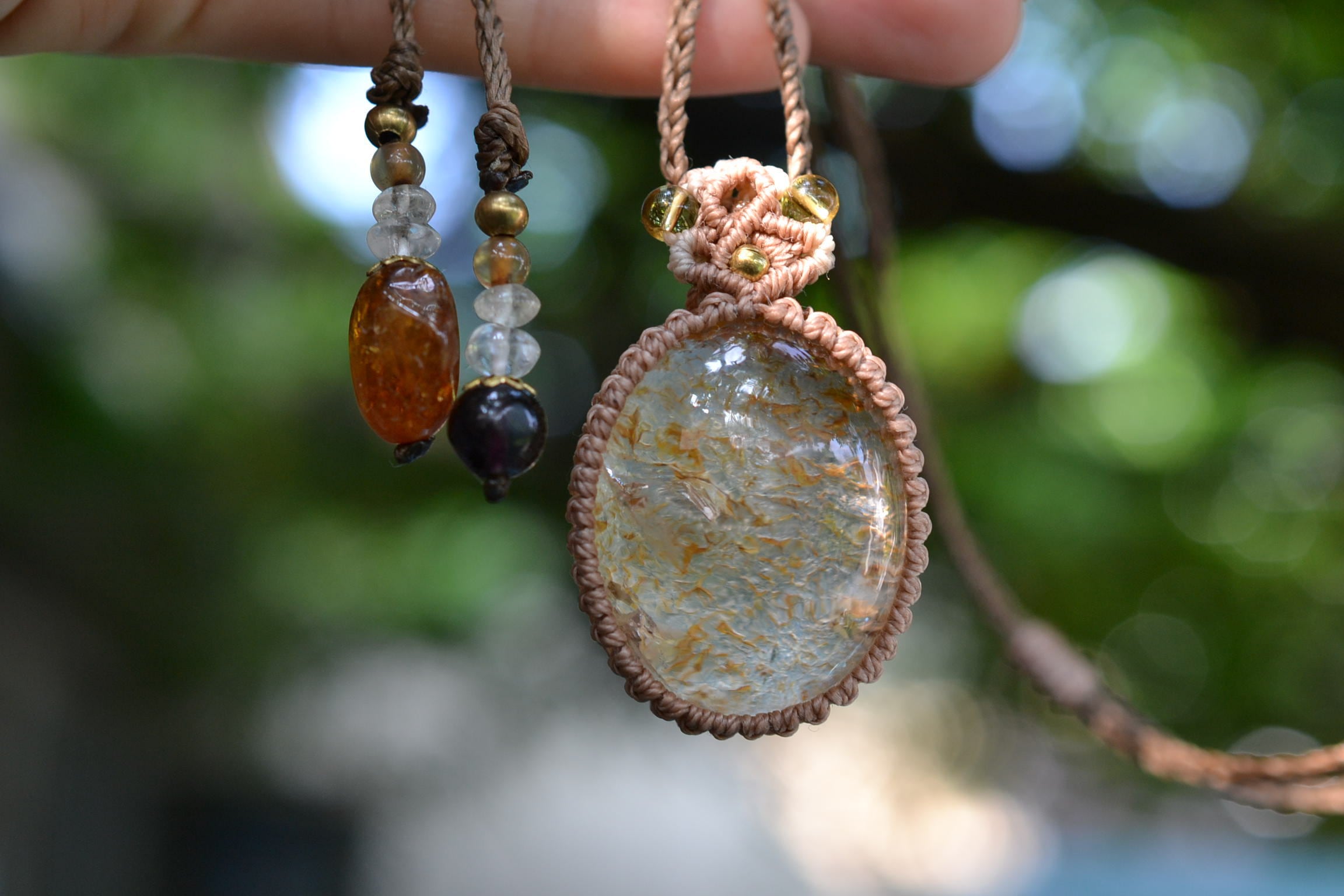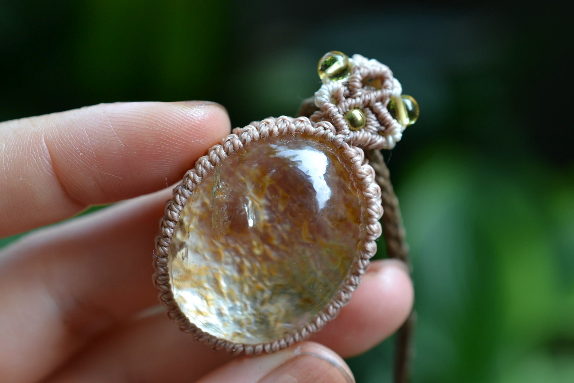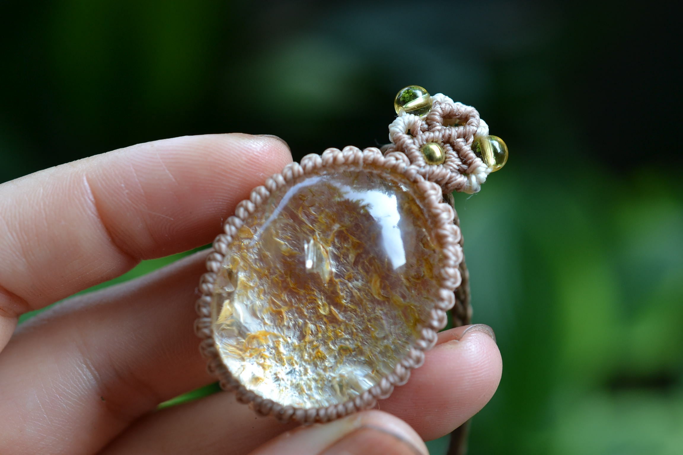 イエローピンク運河★ガーデンクォーツ マクラメペンダント