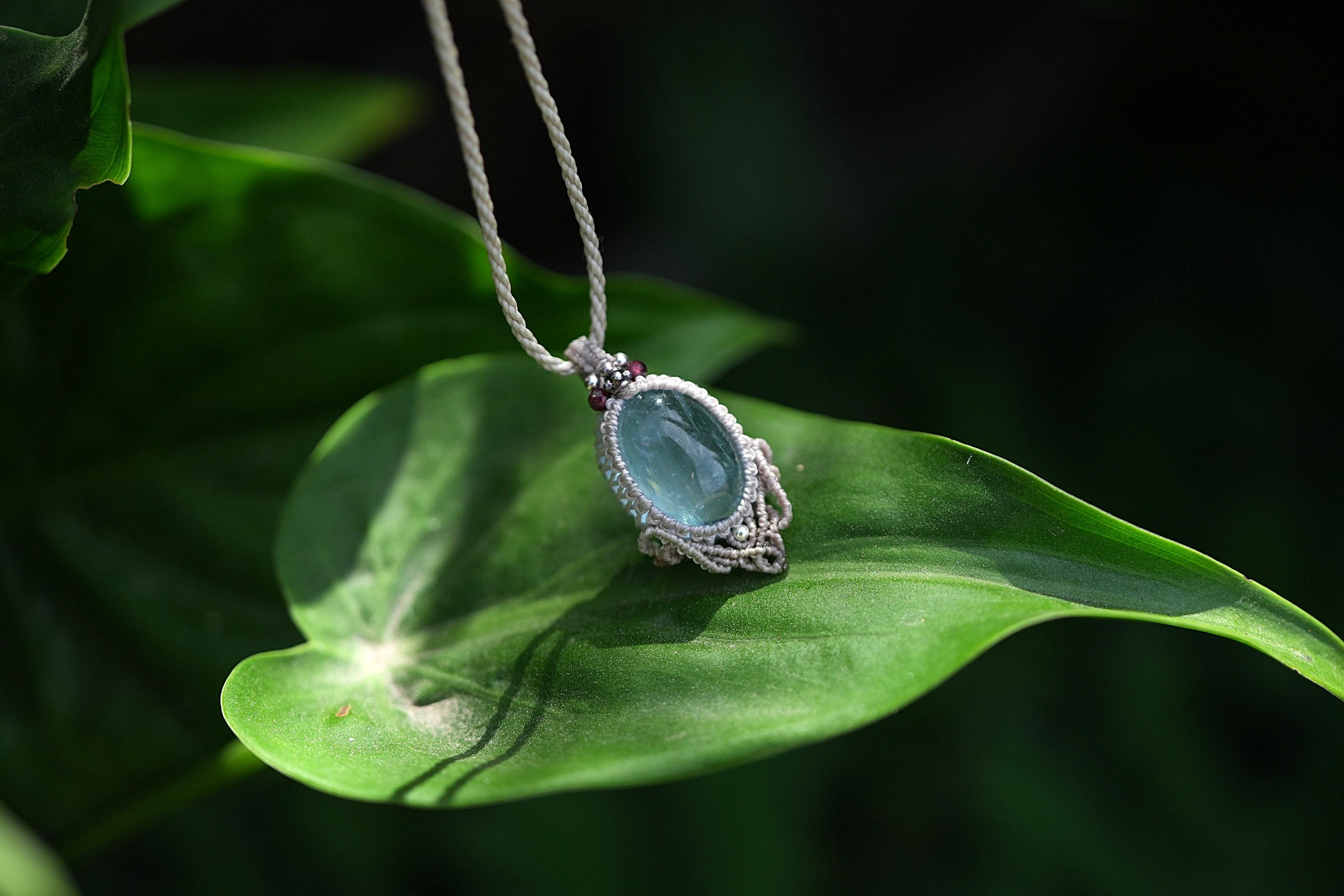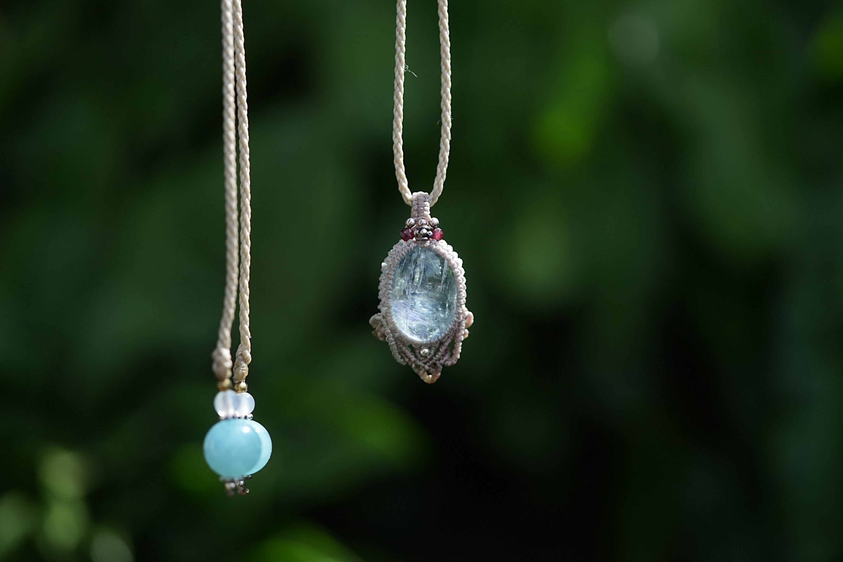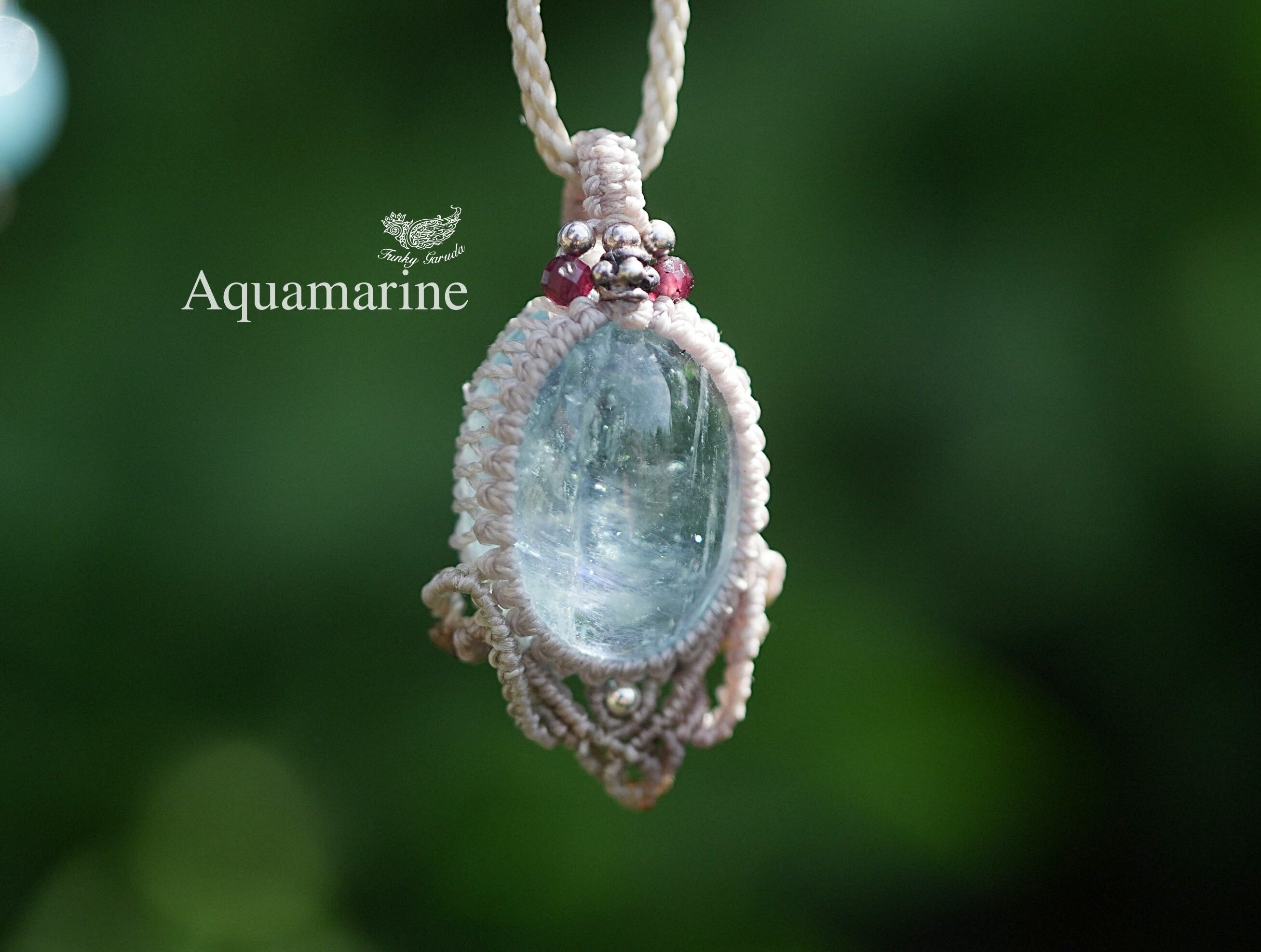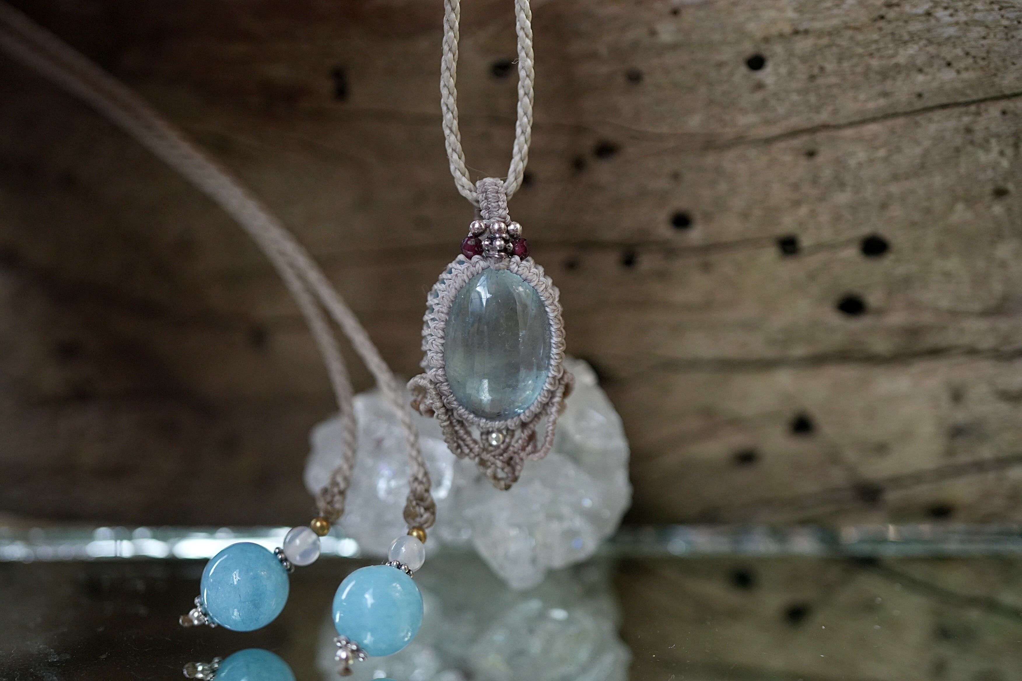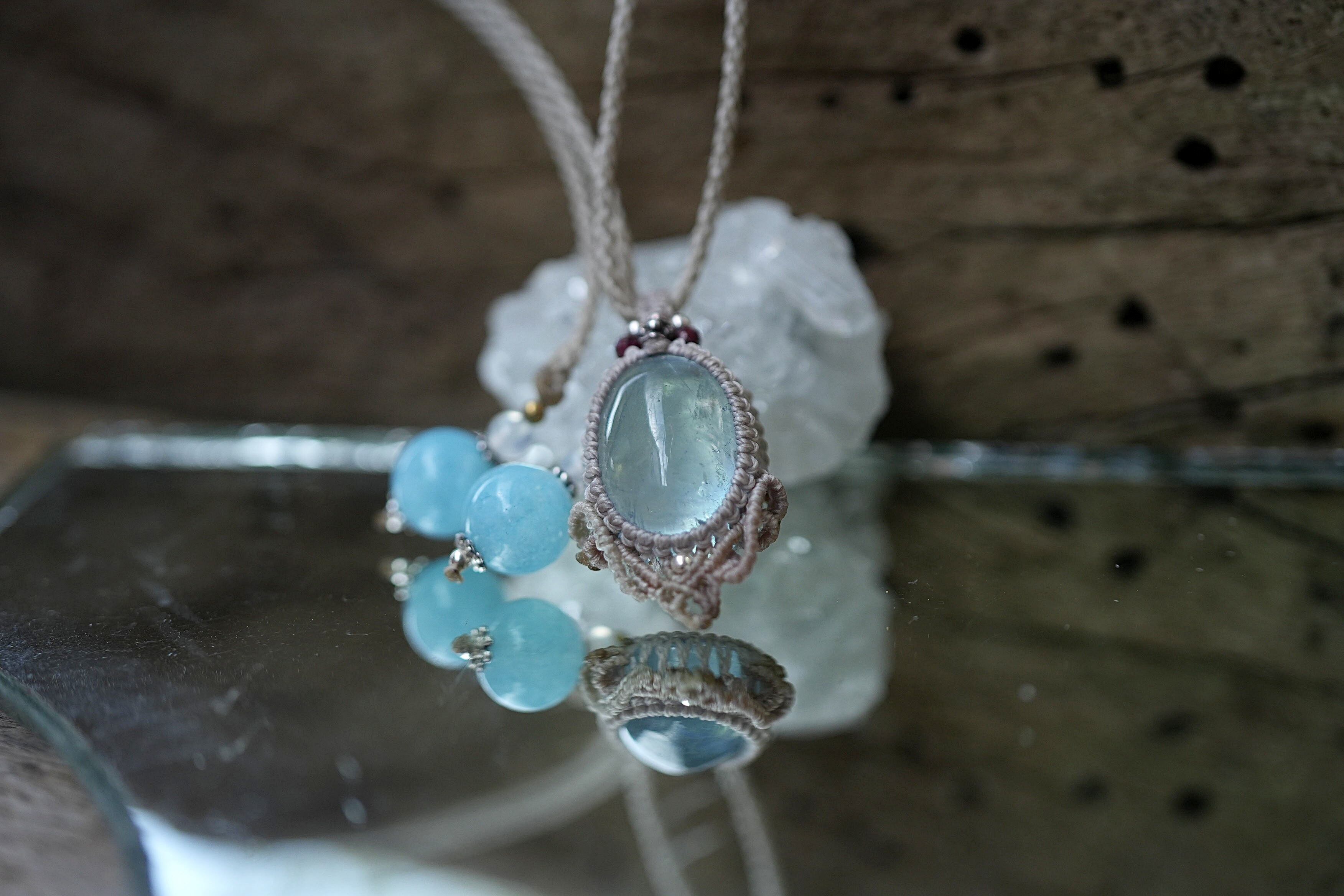 透明ブルー★ベリル高品質★アクアマリン マクラメネックレス1482