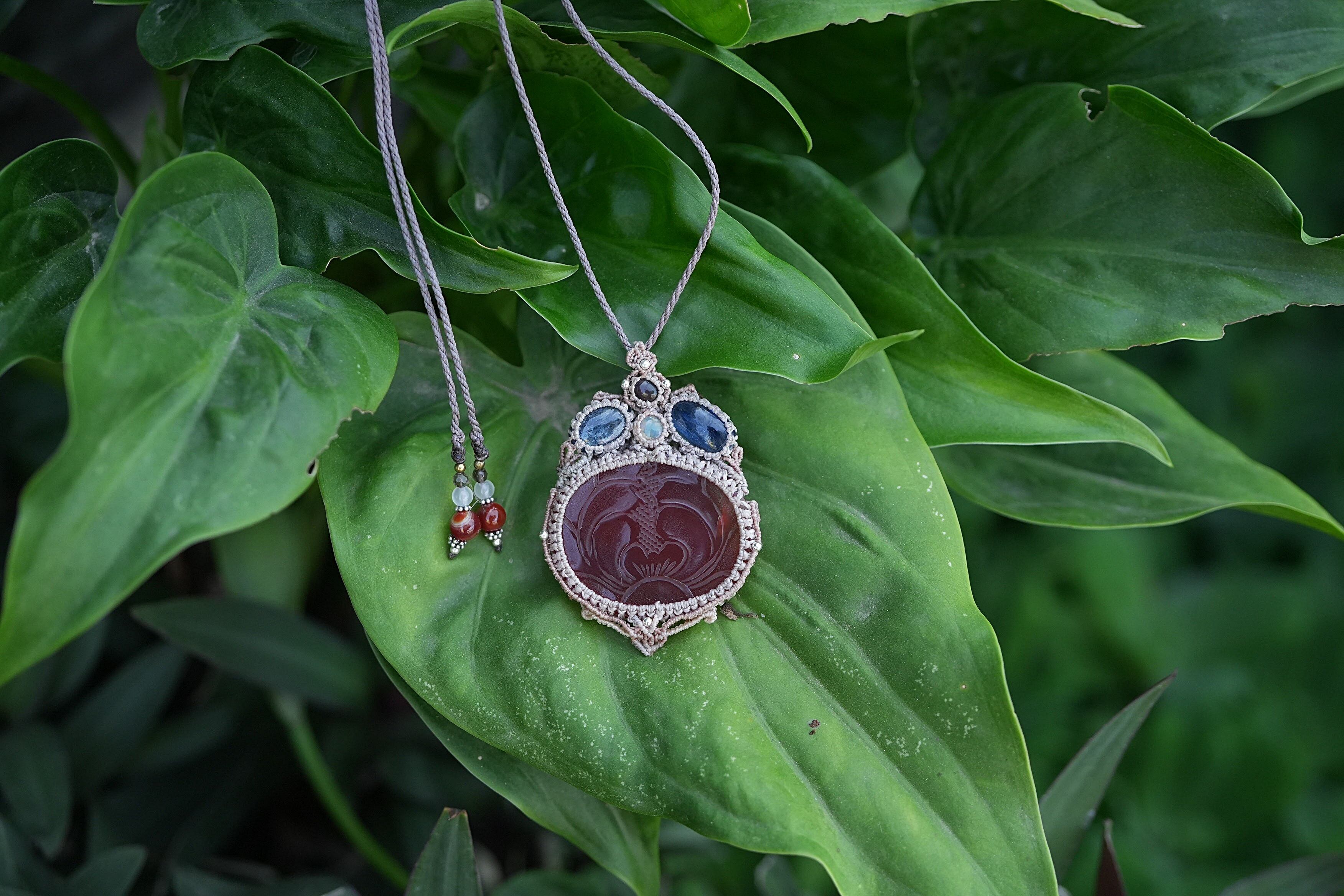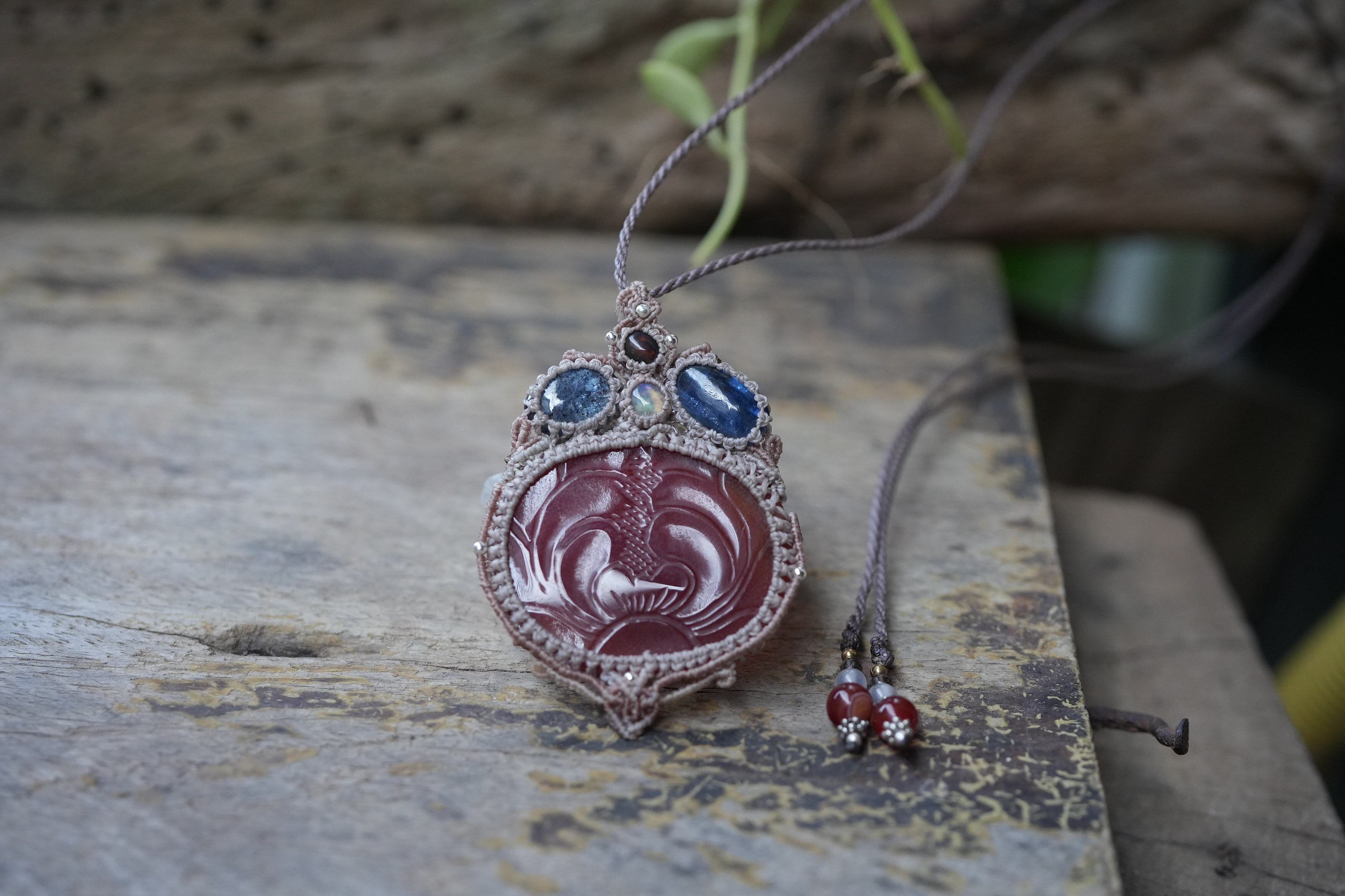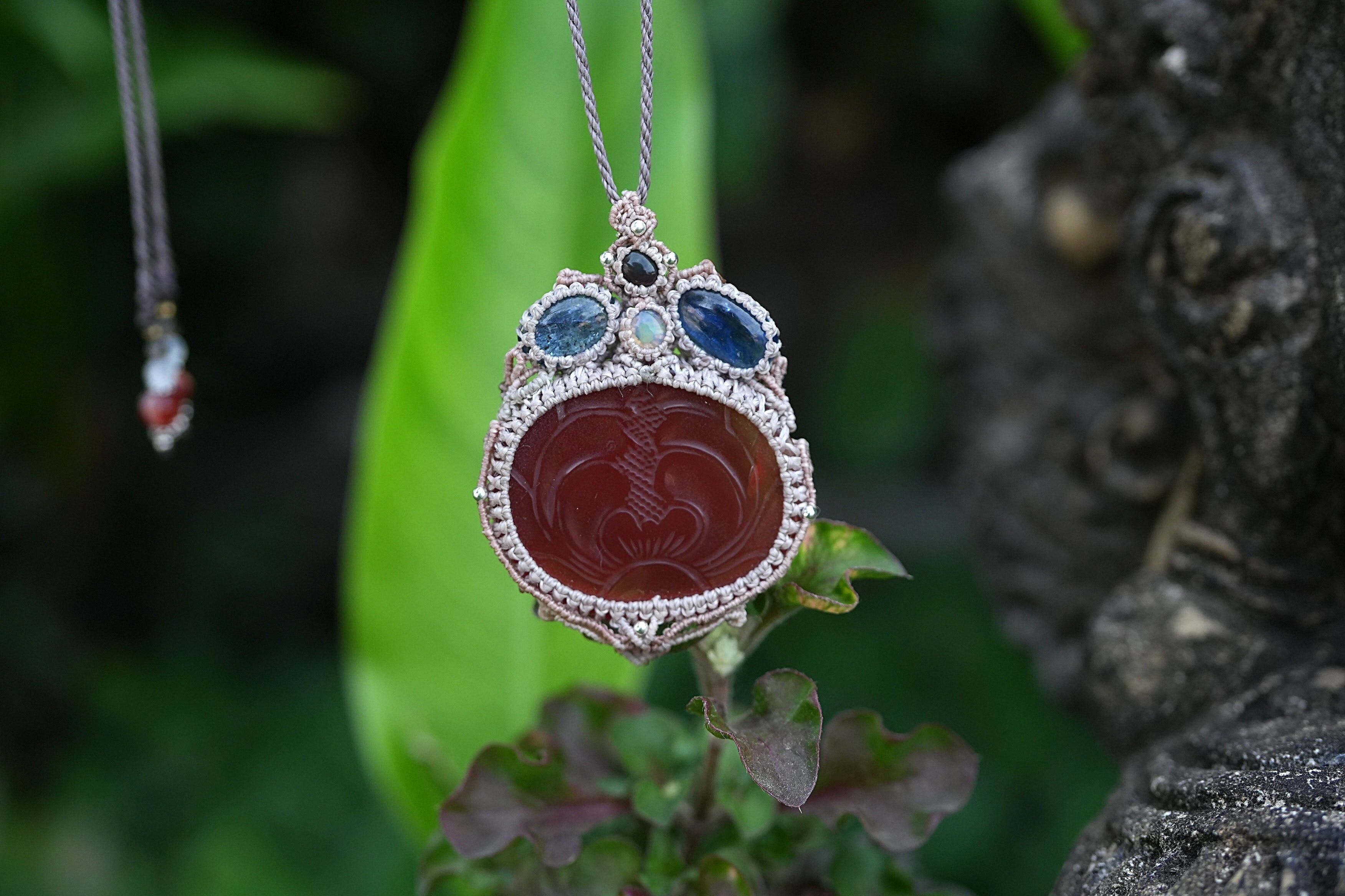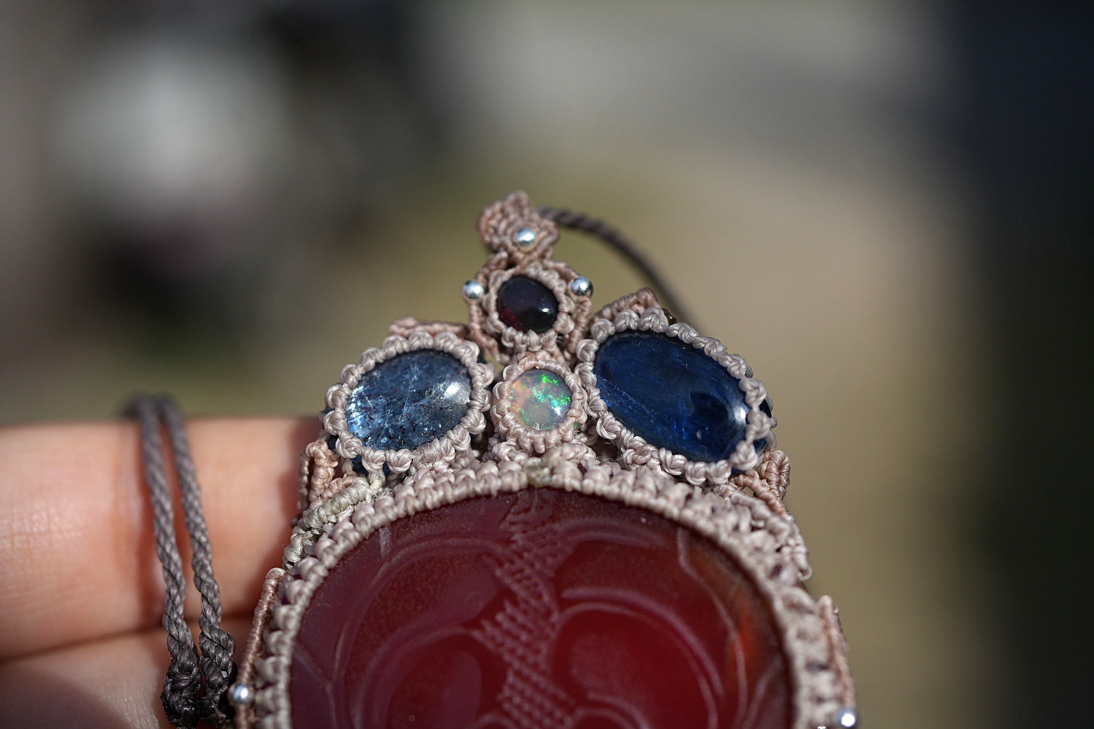 アジアの空Opal ★ロータス華★kyanite マクラメネックレス1477