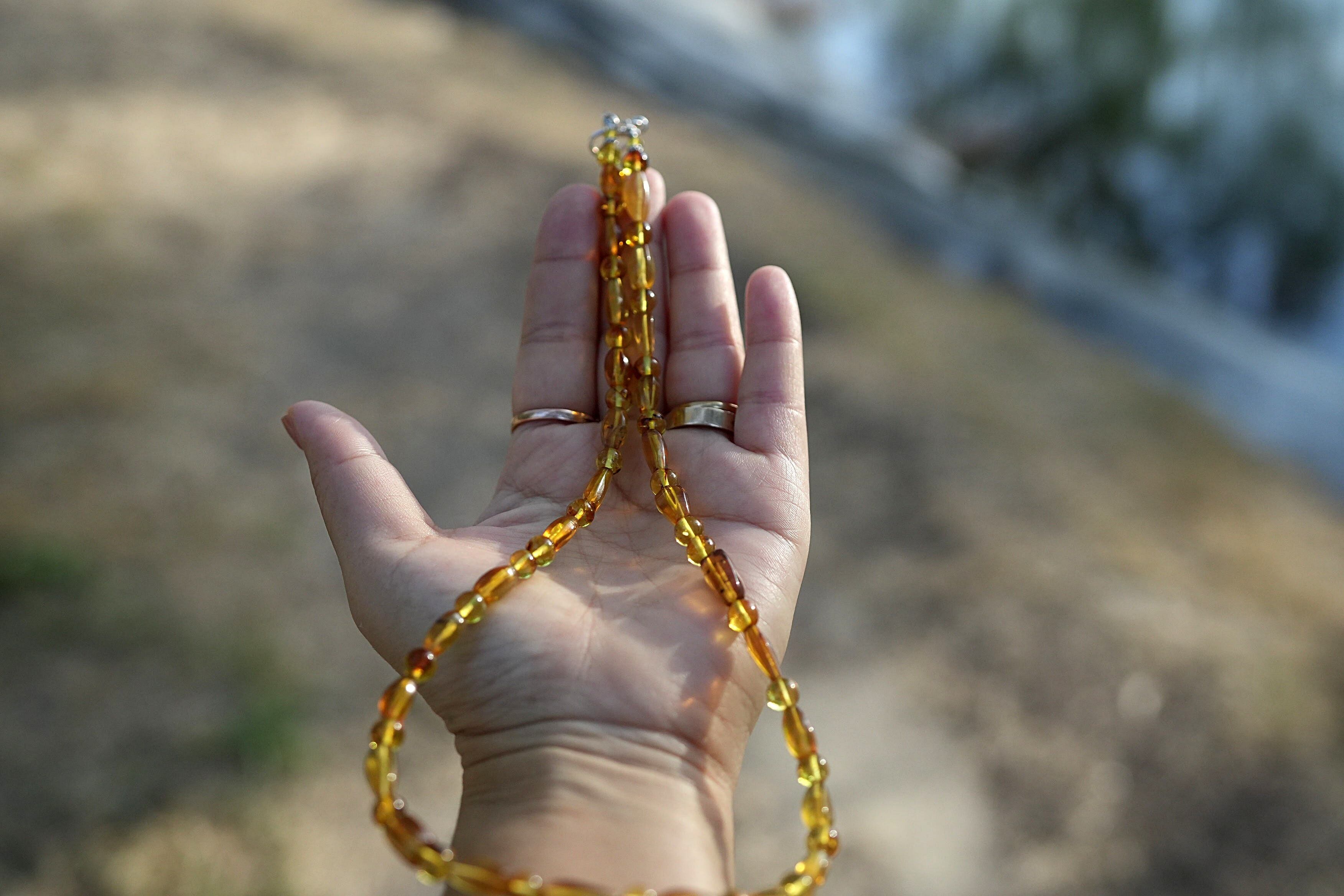 つるつるっとしたアンバー独特の手触りが心地よい