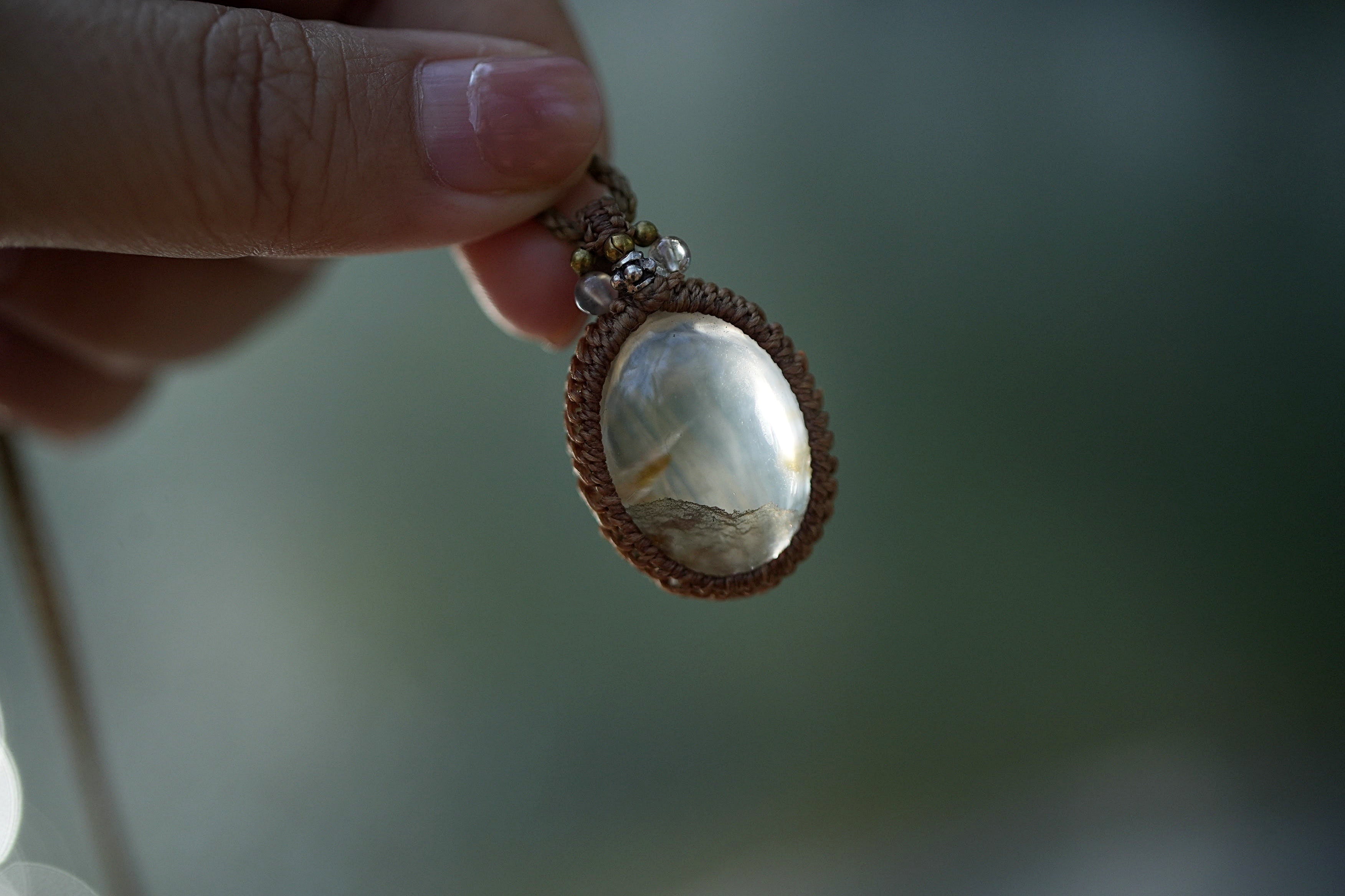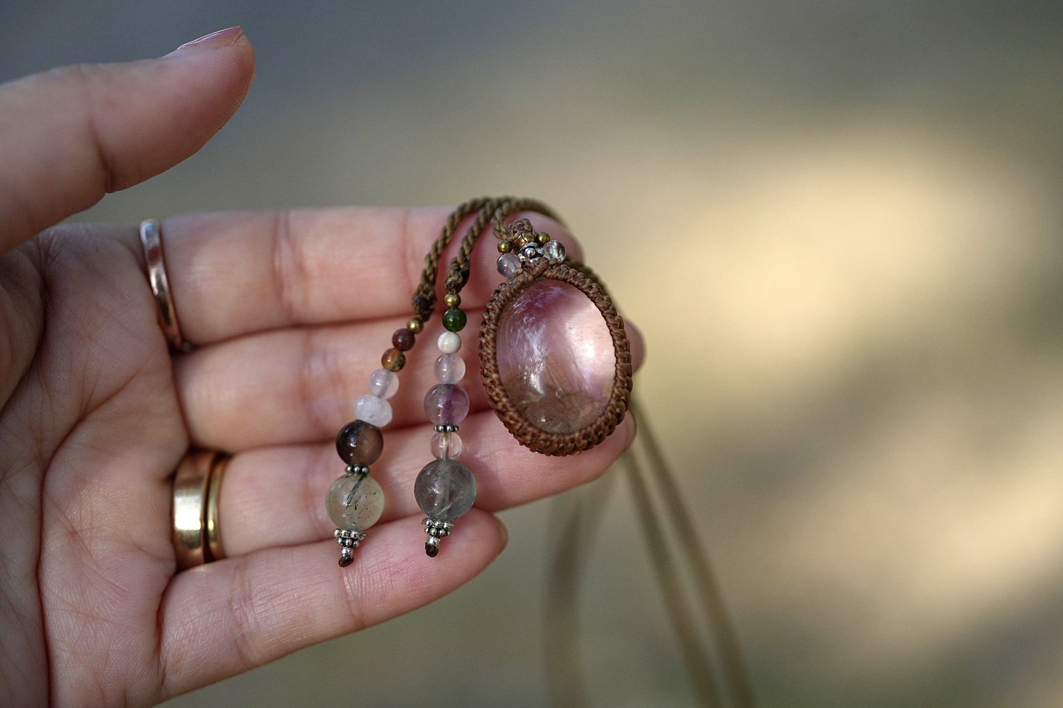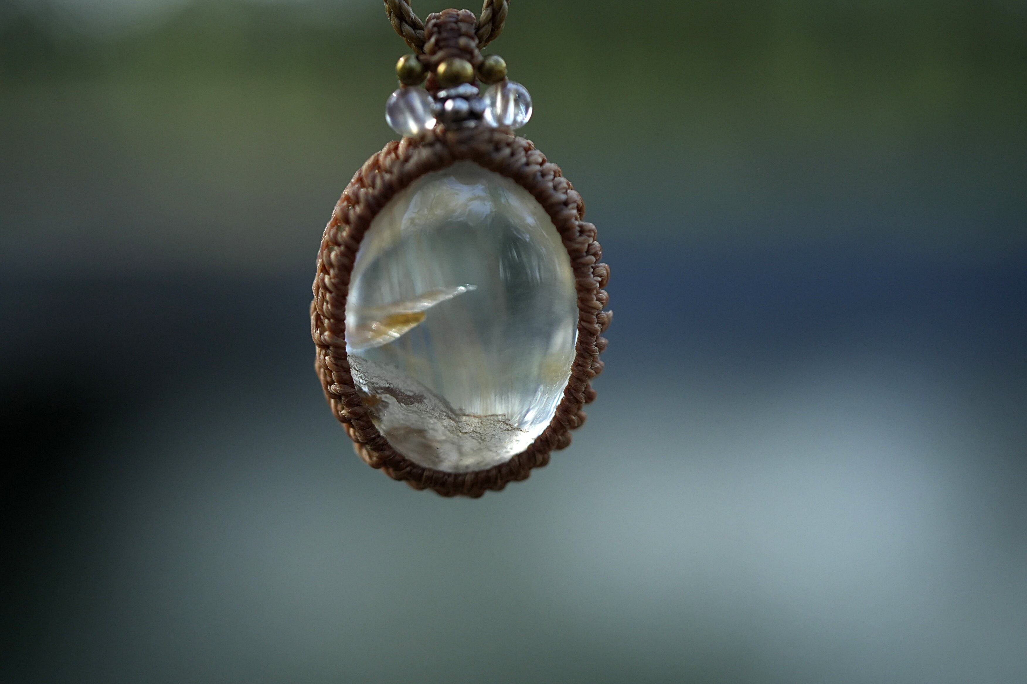 静かな水晶★ルチルインガーデンクォーツ マクラメネックレス1486