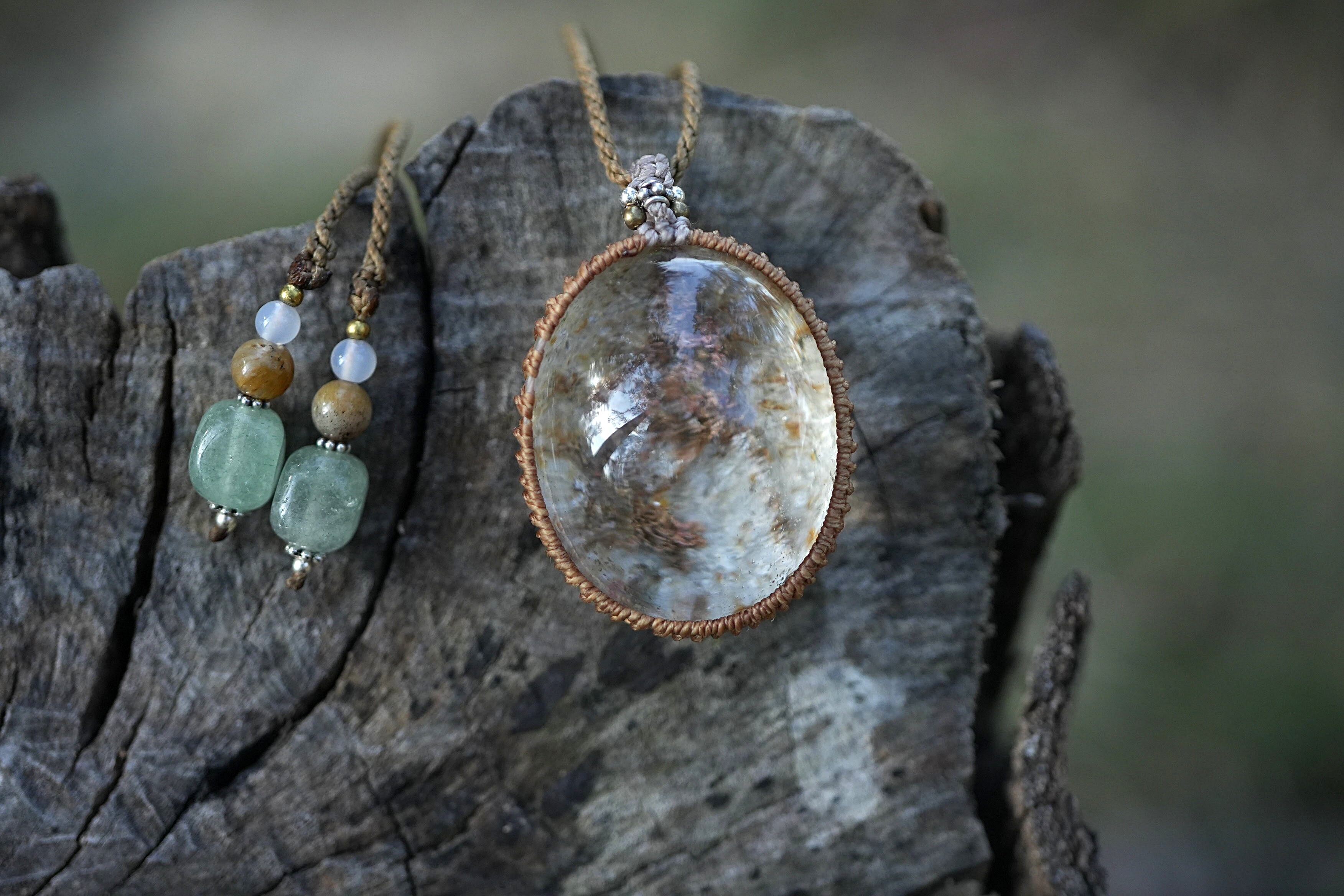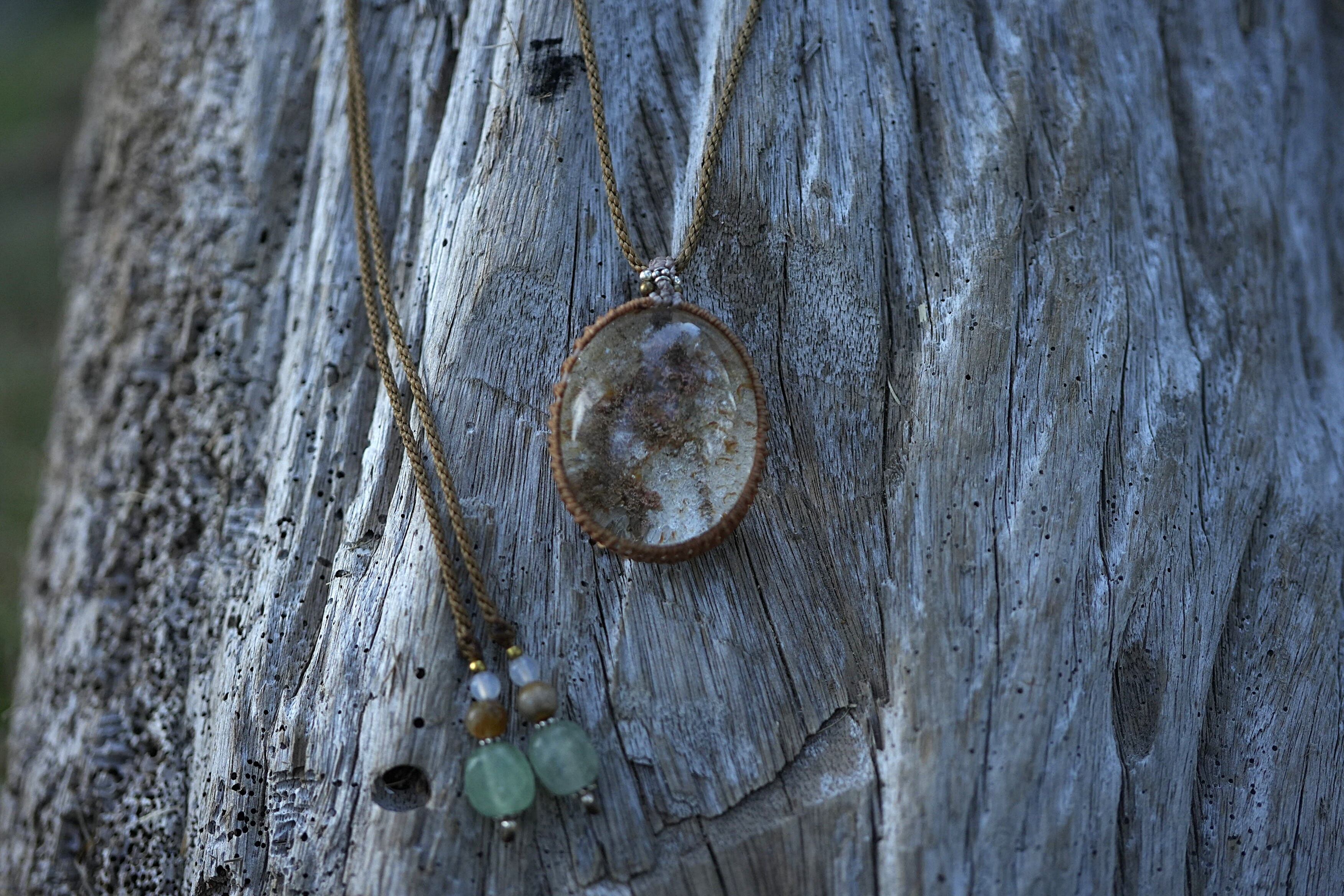 土と水★中粒★ガーデンクォーツ マクラメネックレス1487