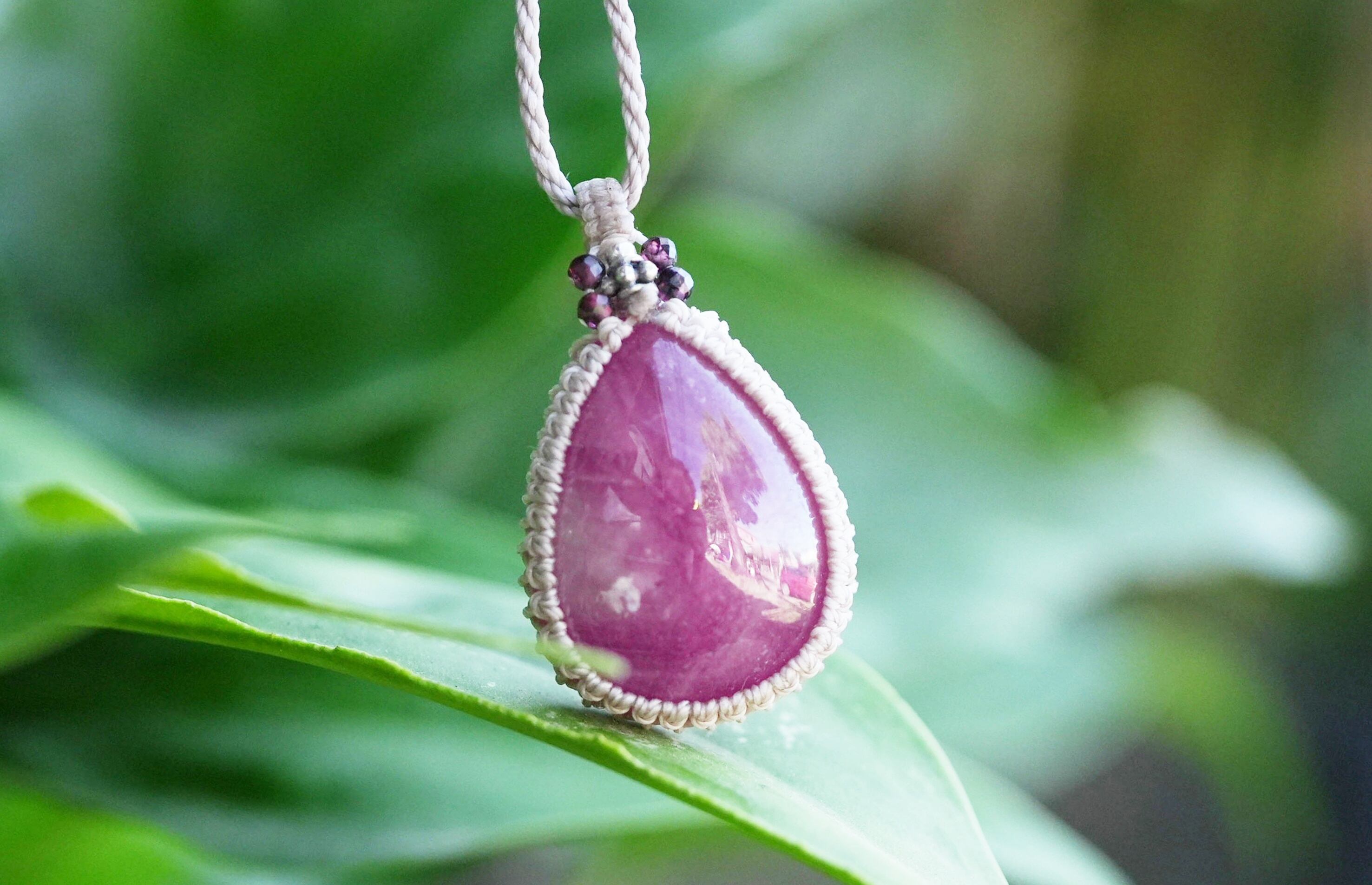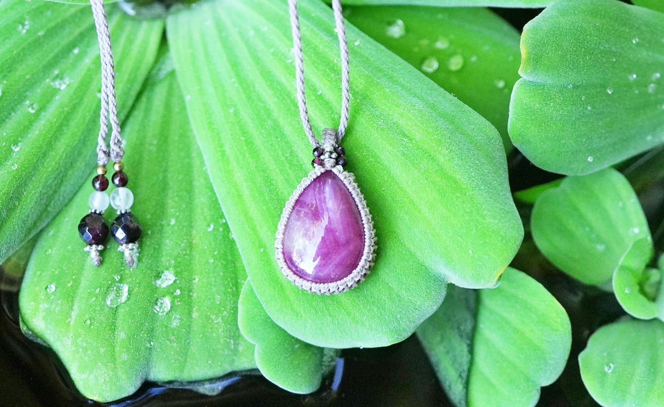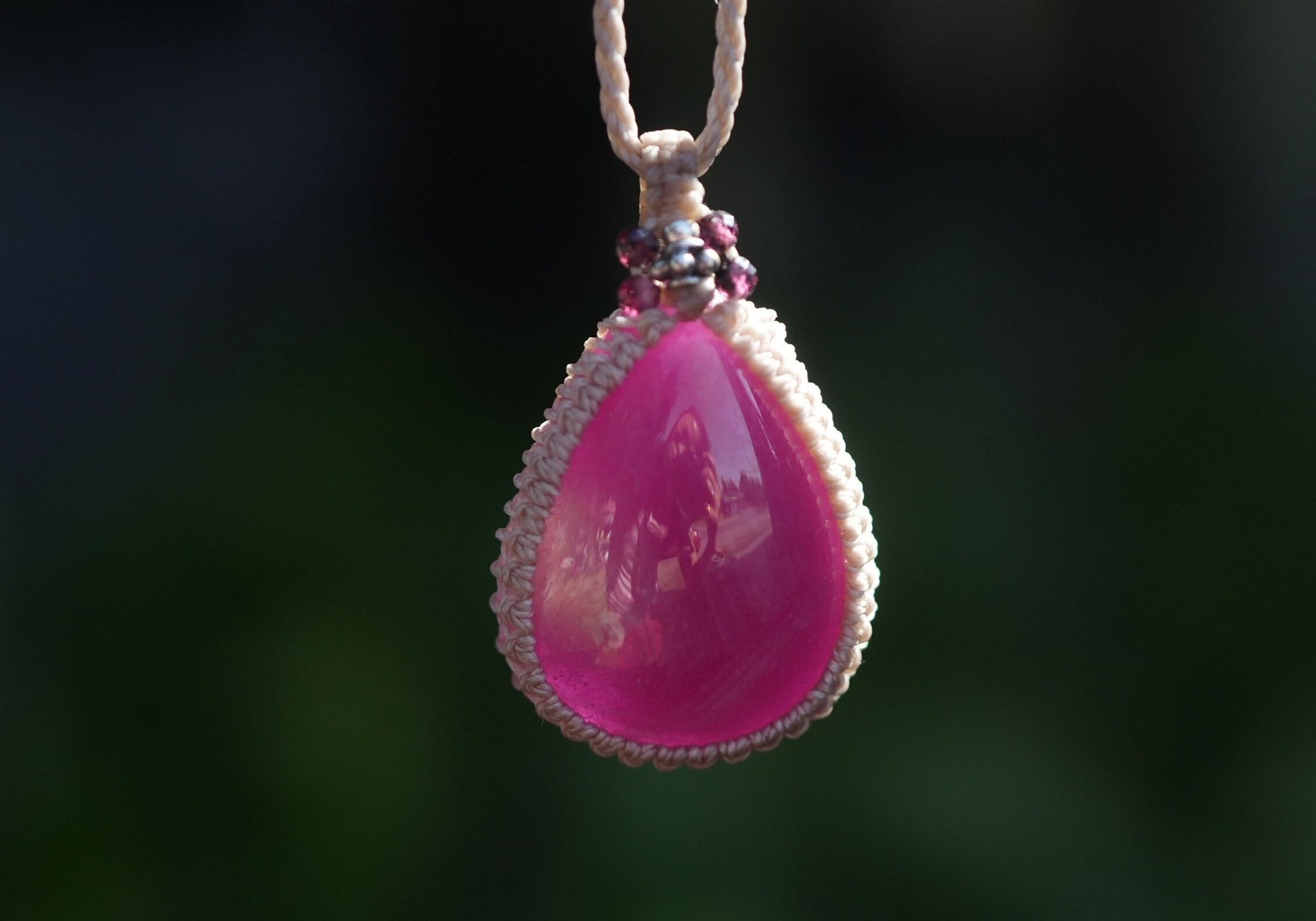 ぷっくり★ピンクサファイア★ マクラメネックレス1500