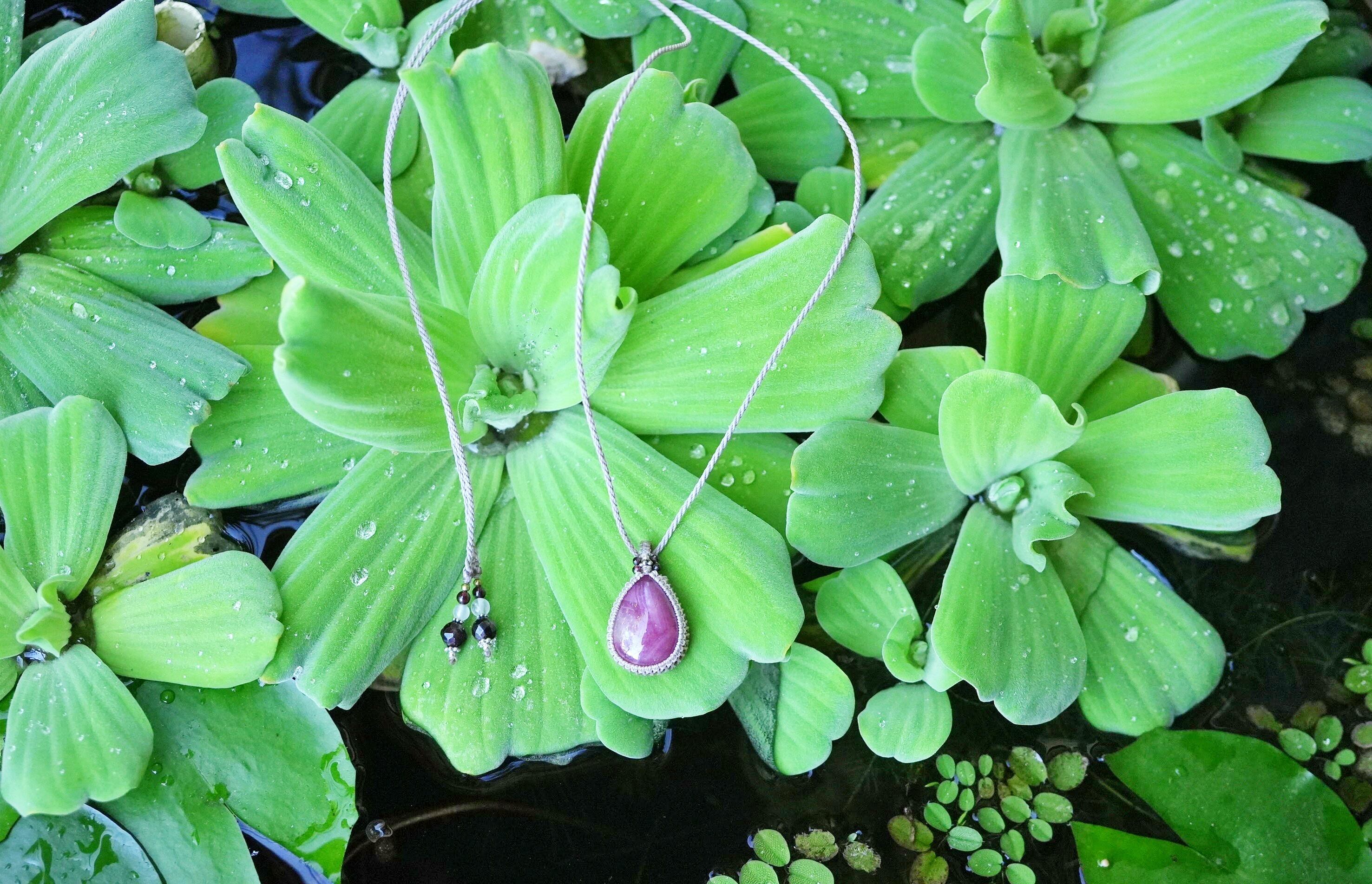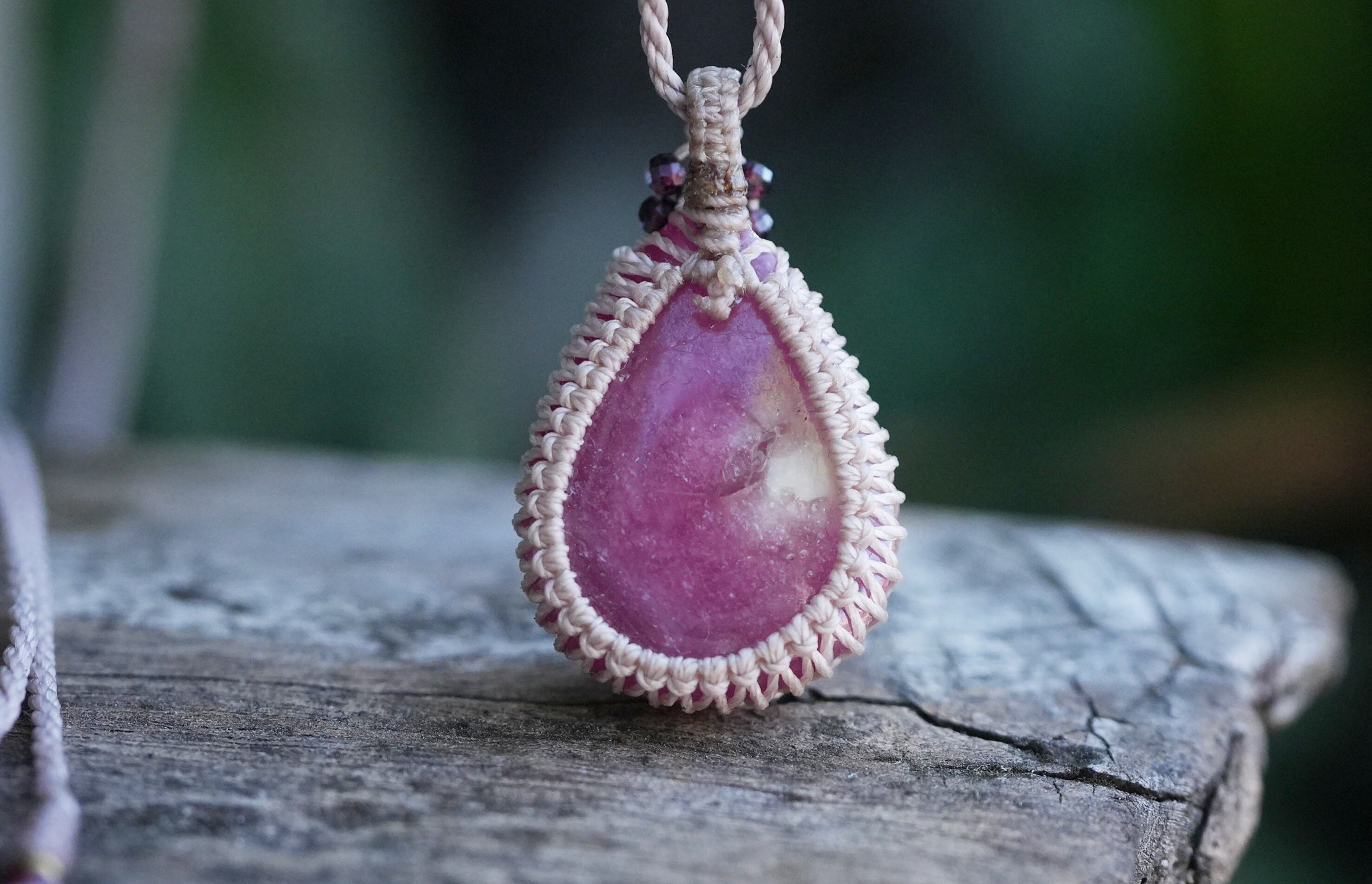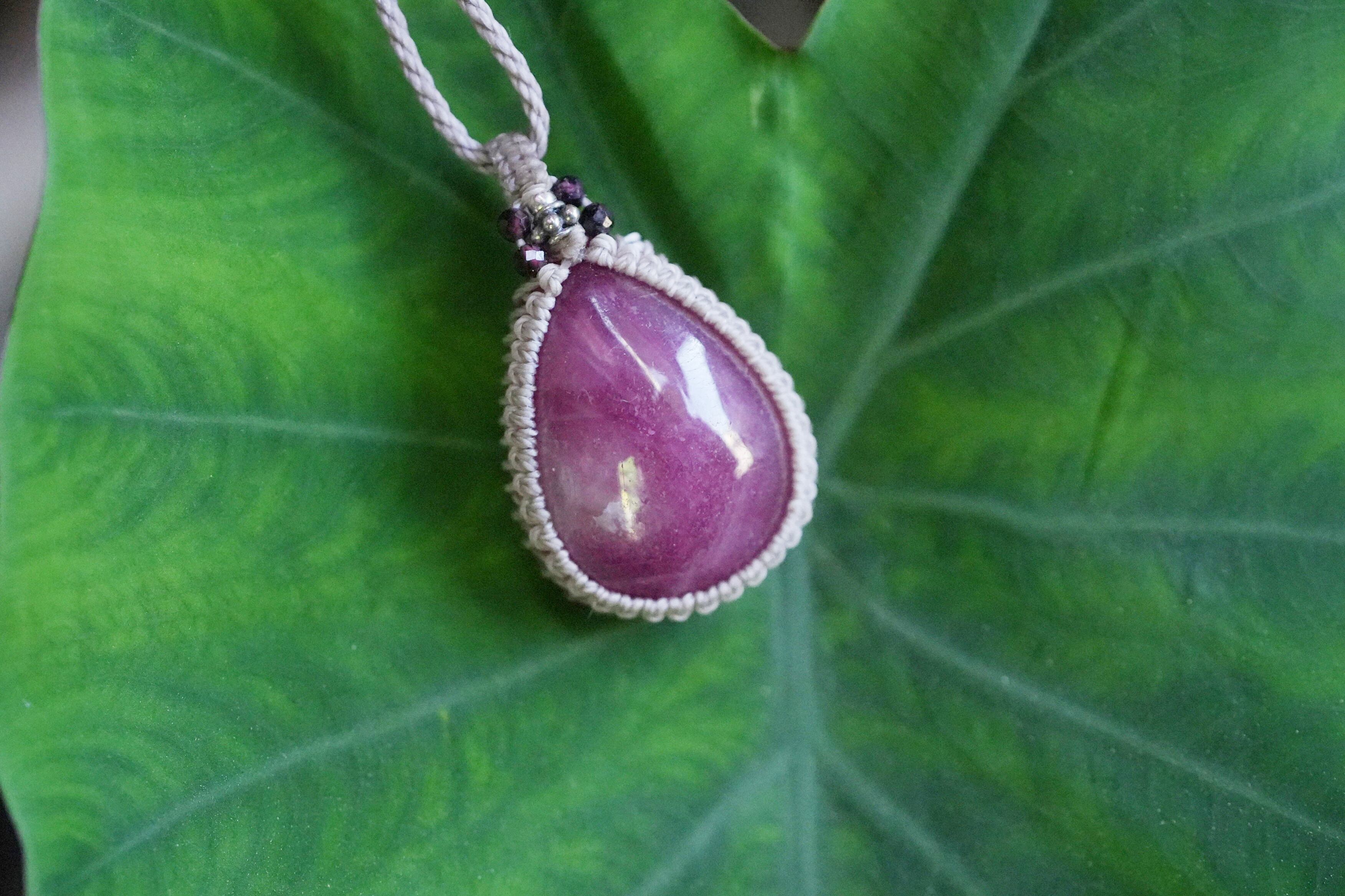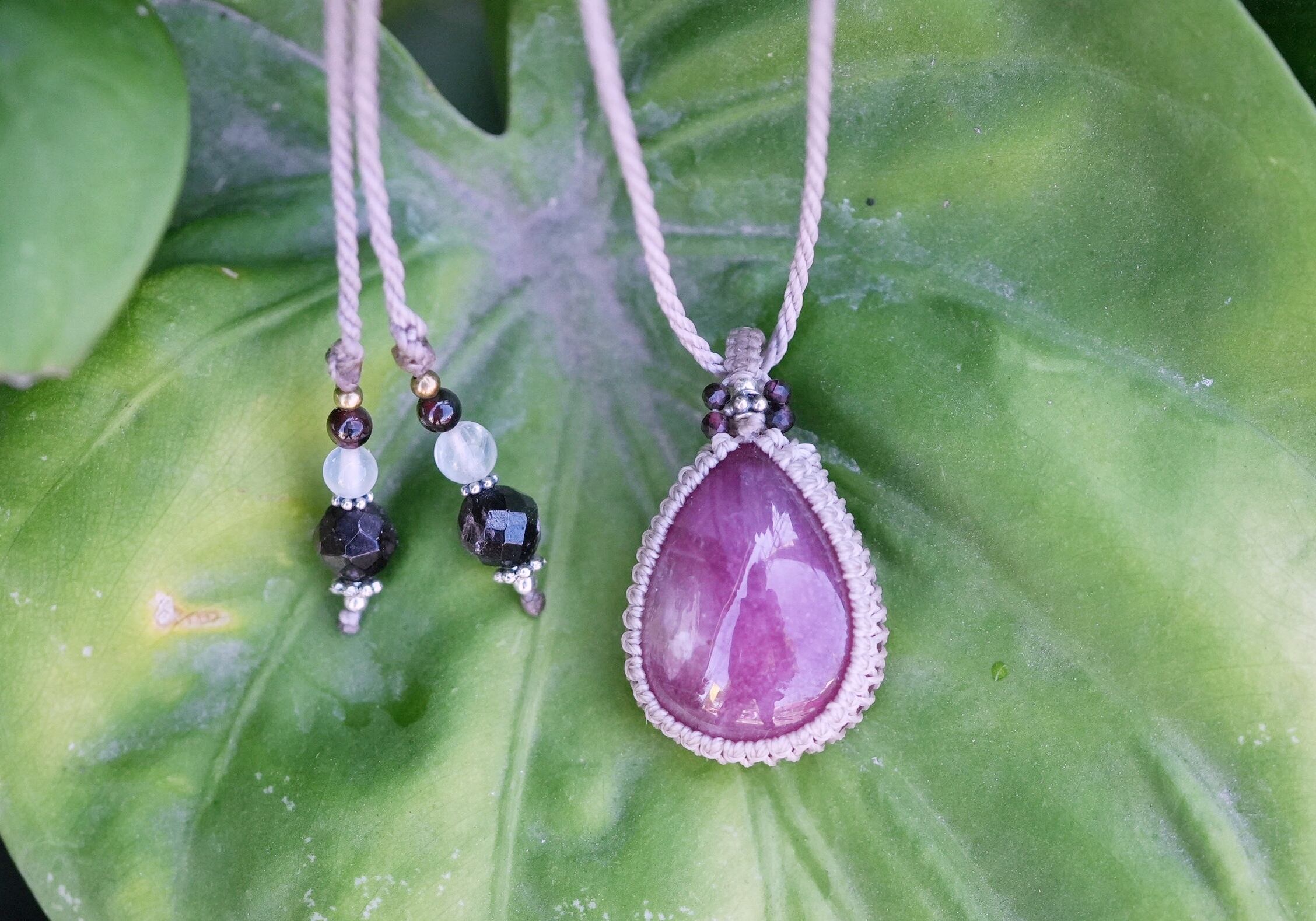 ぷっくり★ピンクサファイア★ マクラメネックレス1500