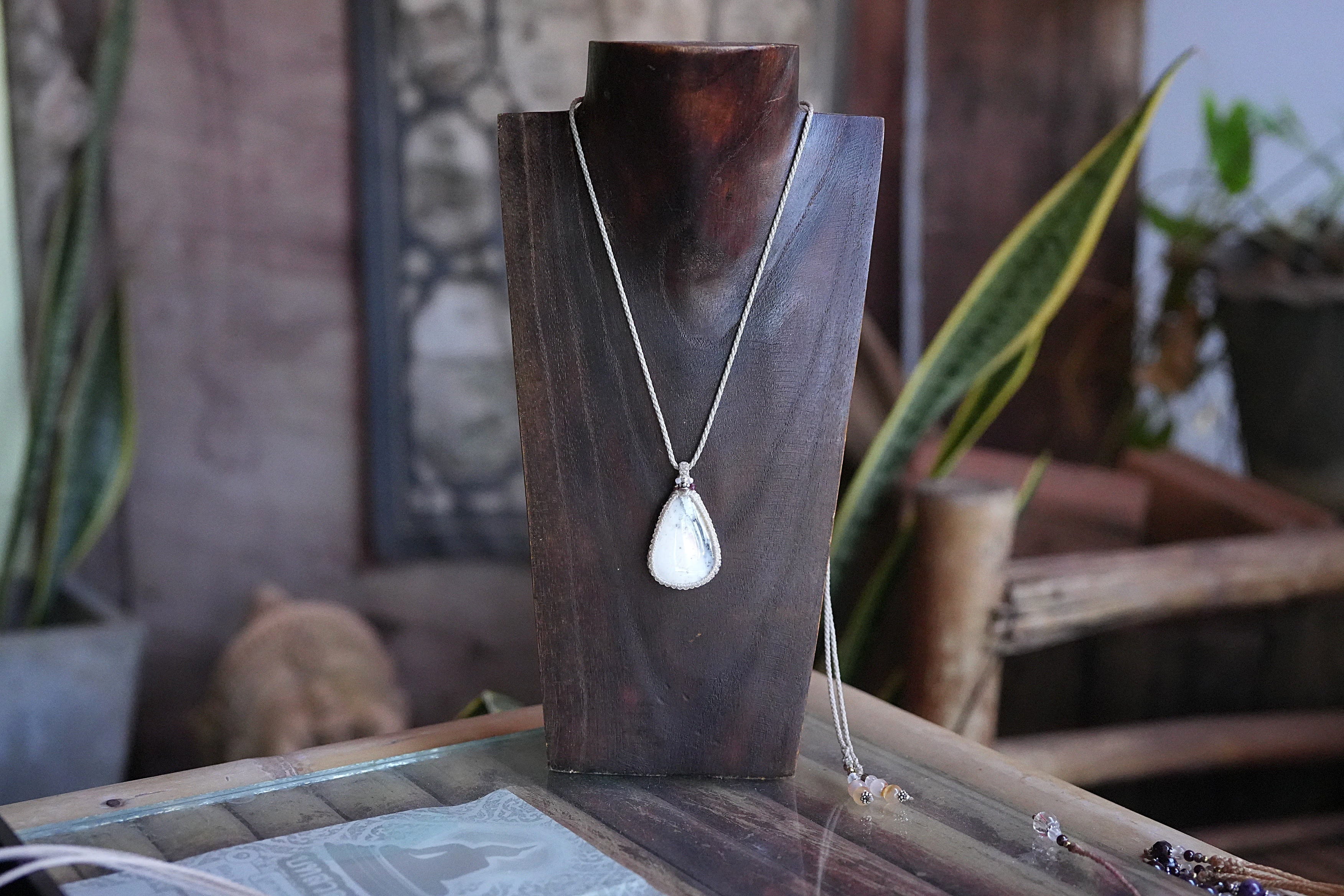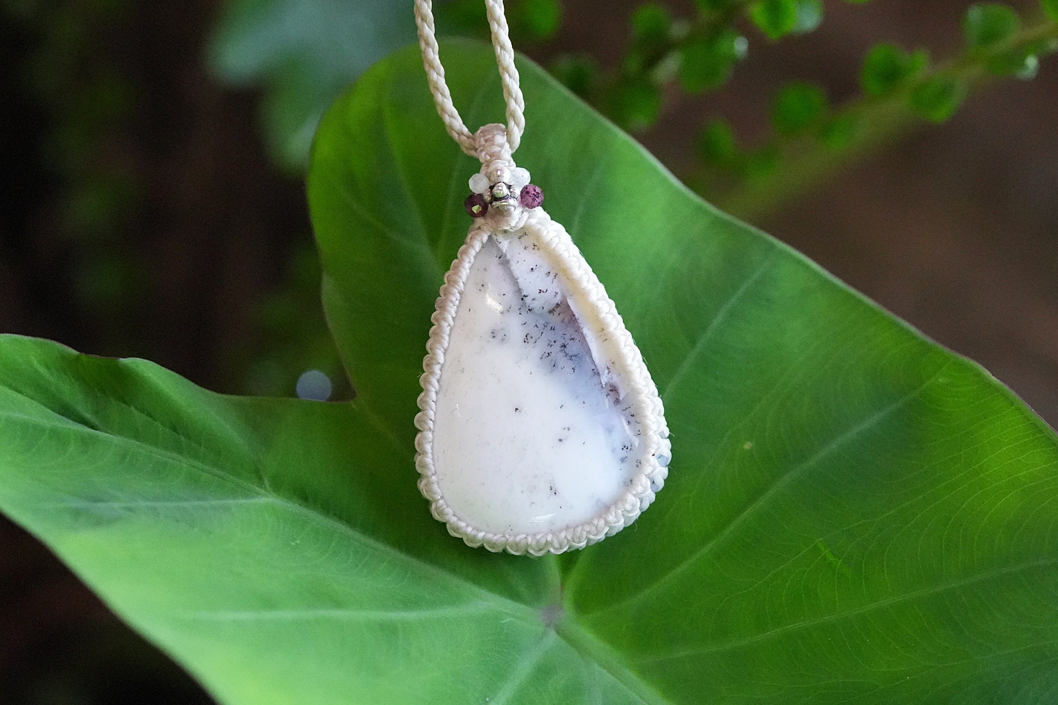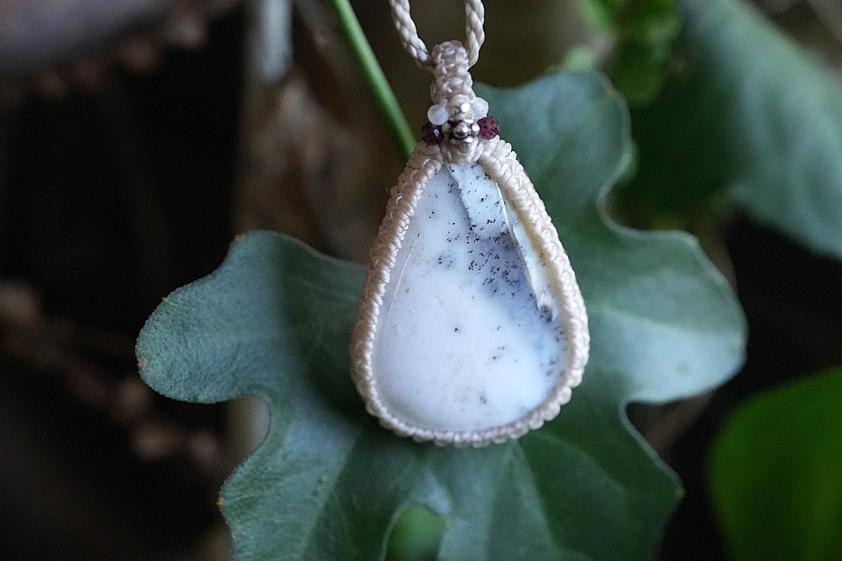 白い雪巨塔★デンドライトオパール マクラメネックレス1506