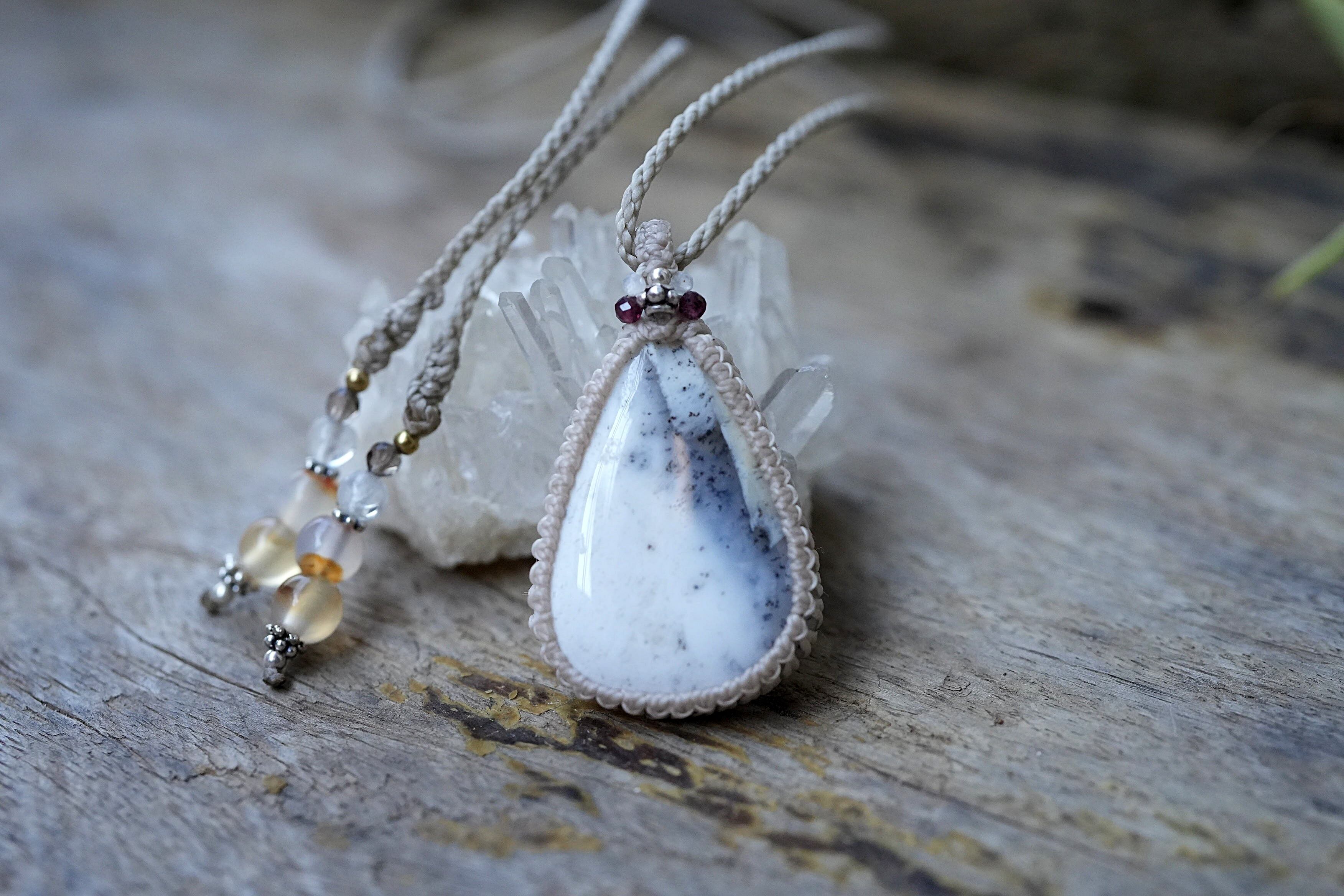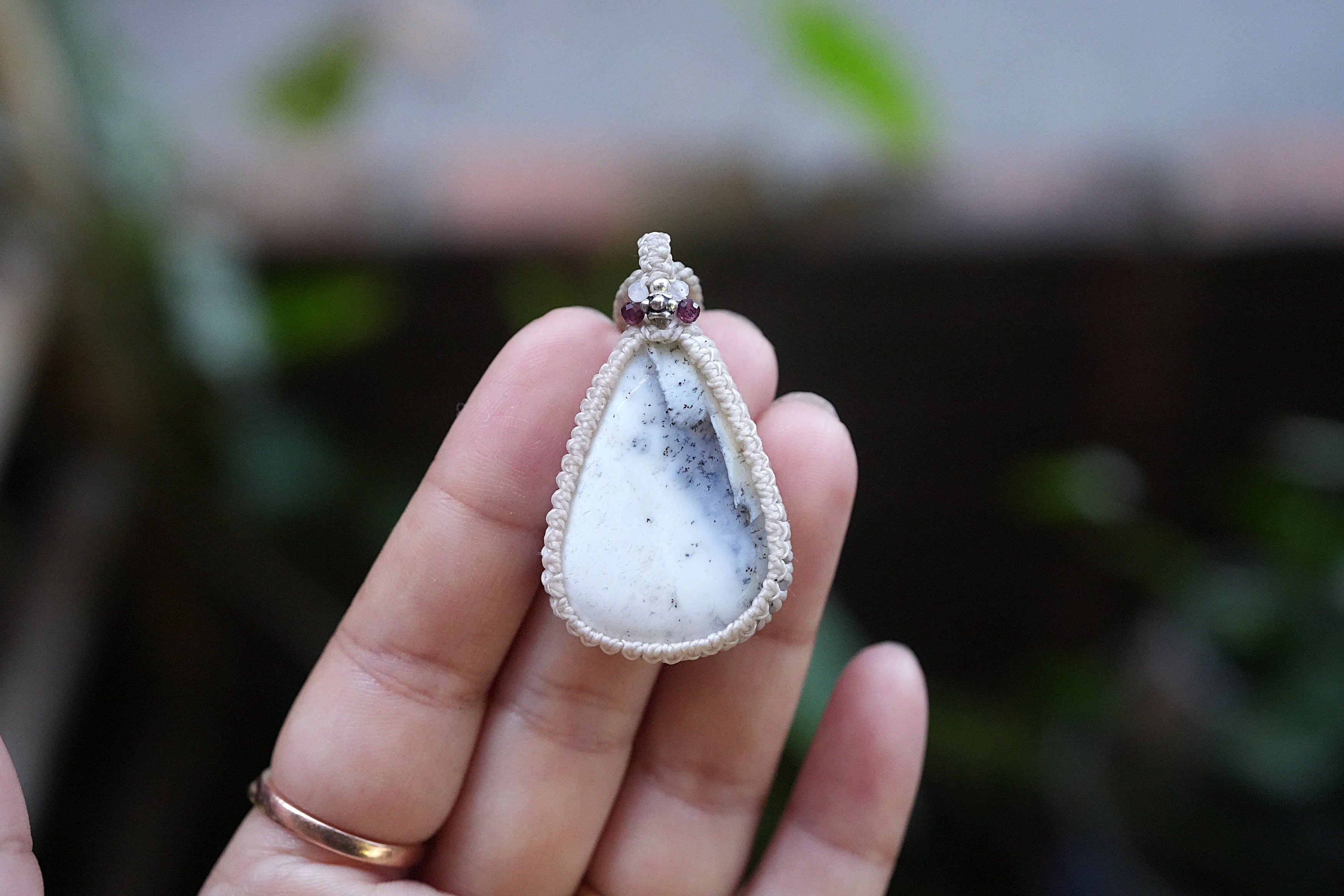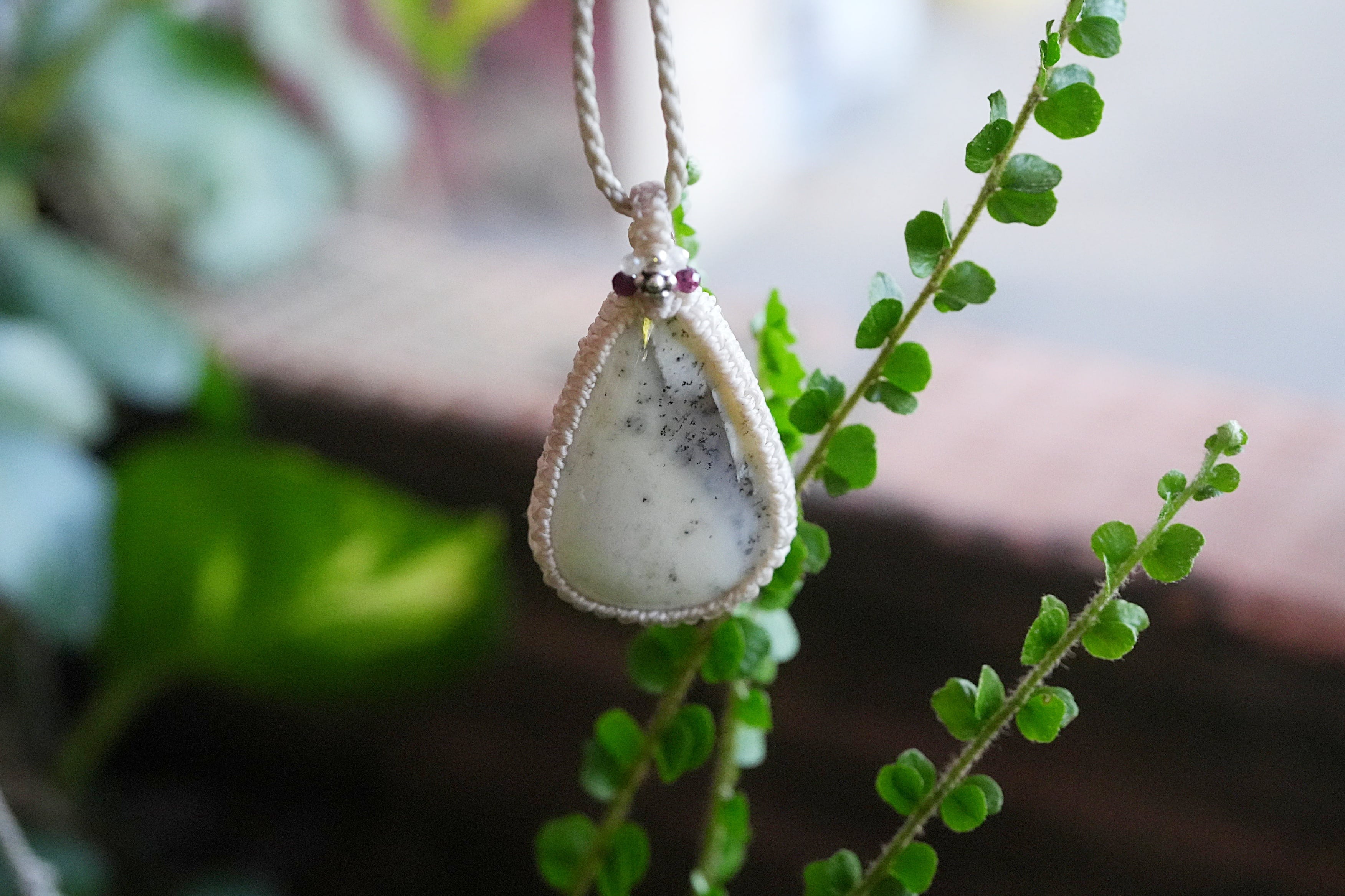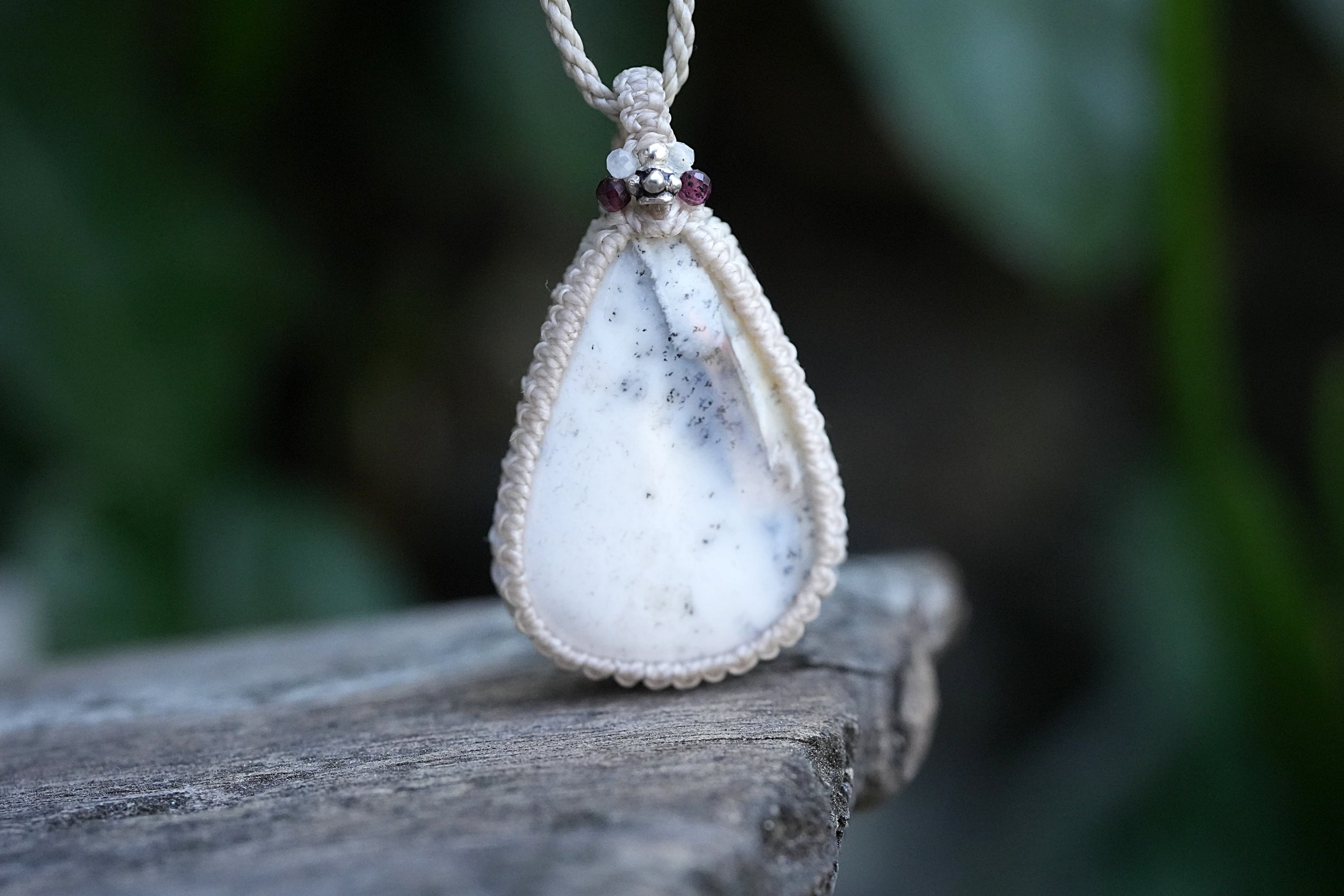 白い雪巨塔★デンドライトオパール マクラメネックレス1506