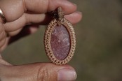 ◆このたびはキャラメル、ミルクココア色の蝋引き糸を使用しマクラメ編み装飾を施しました。