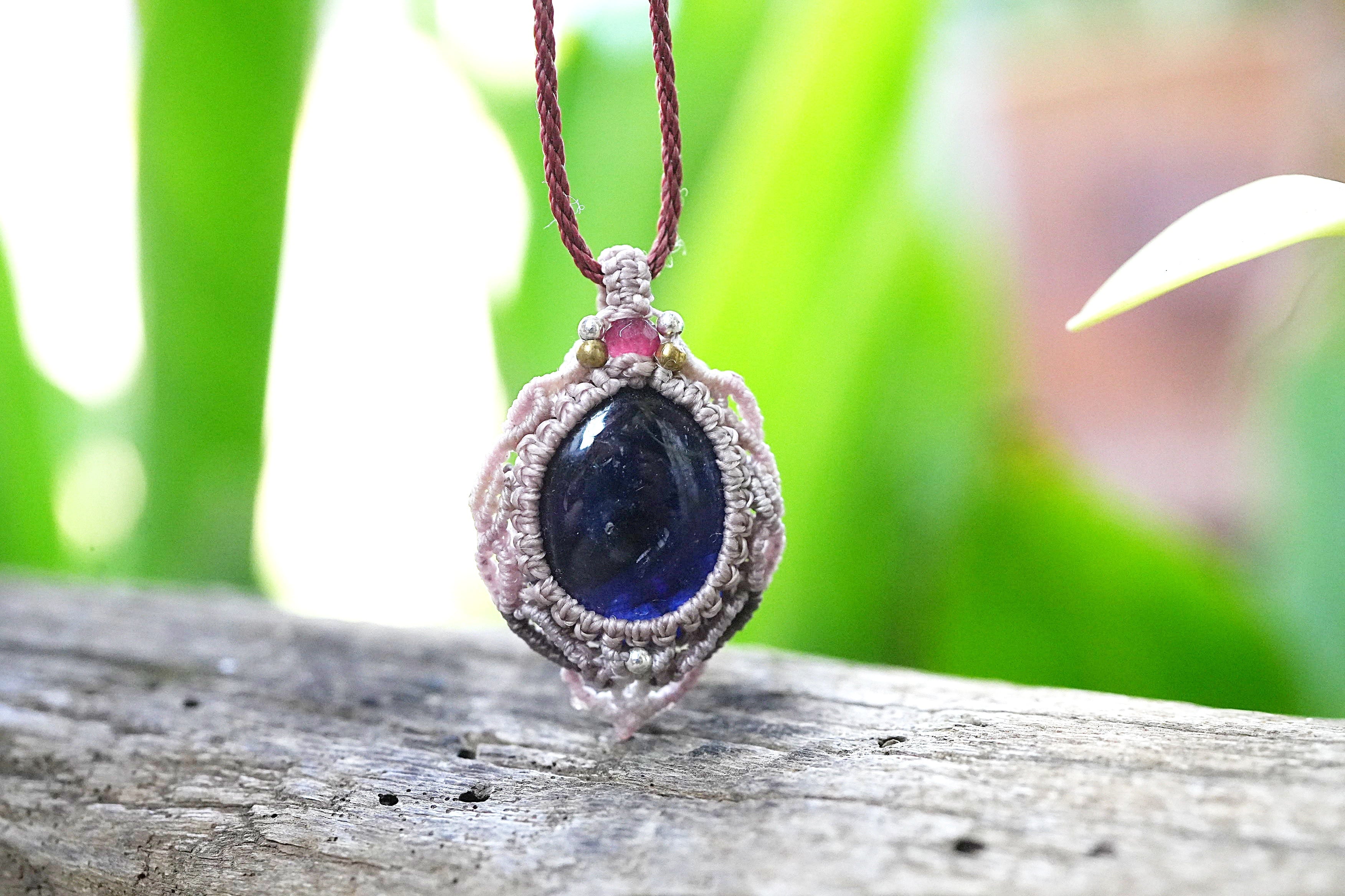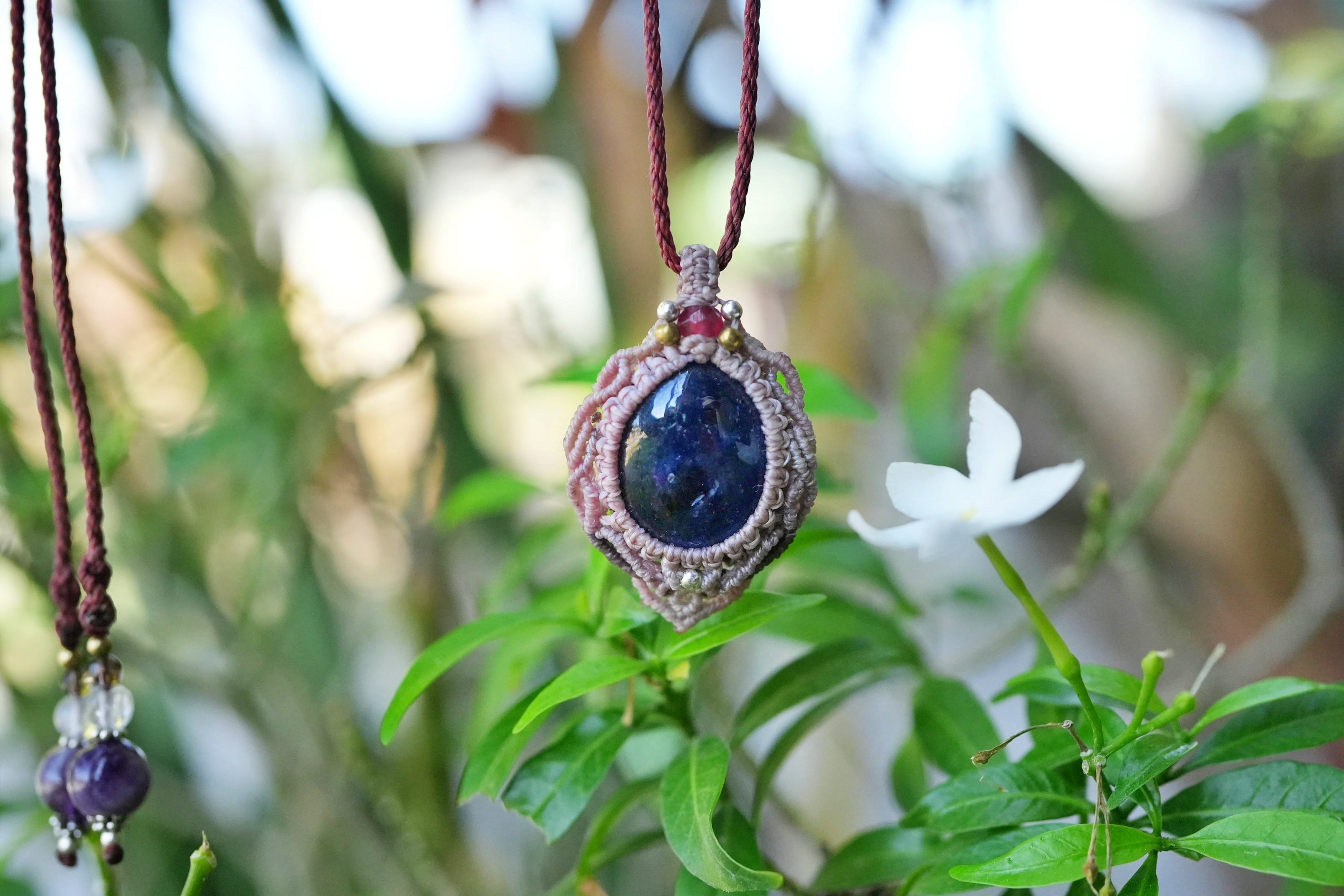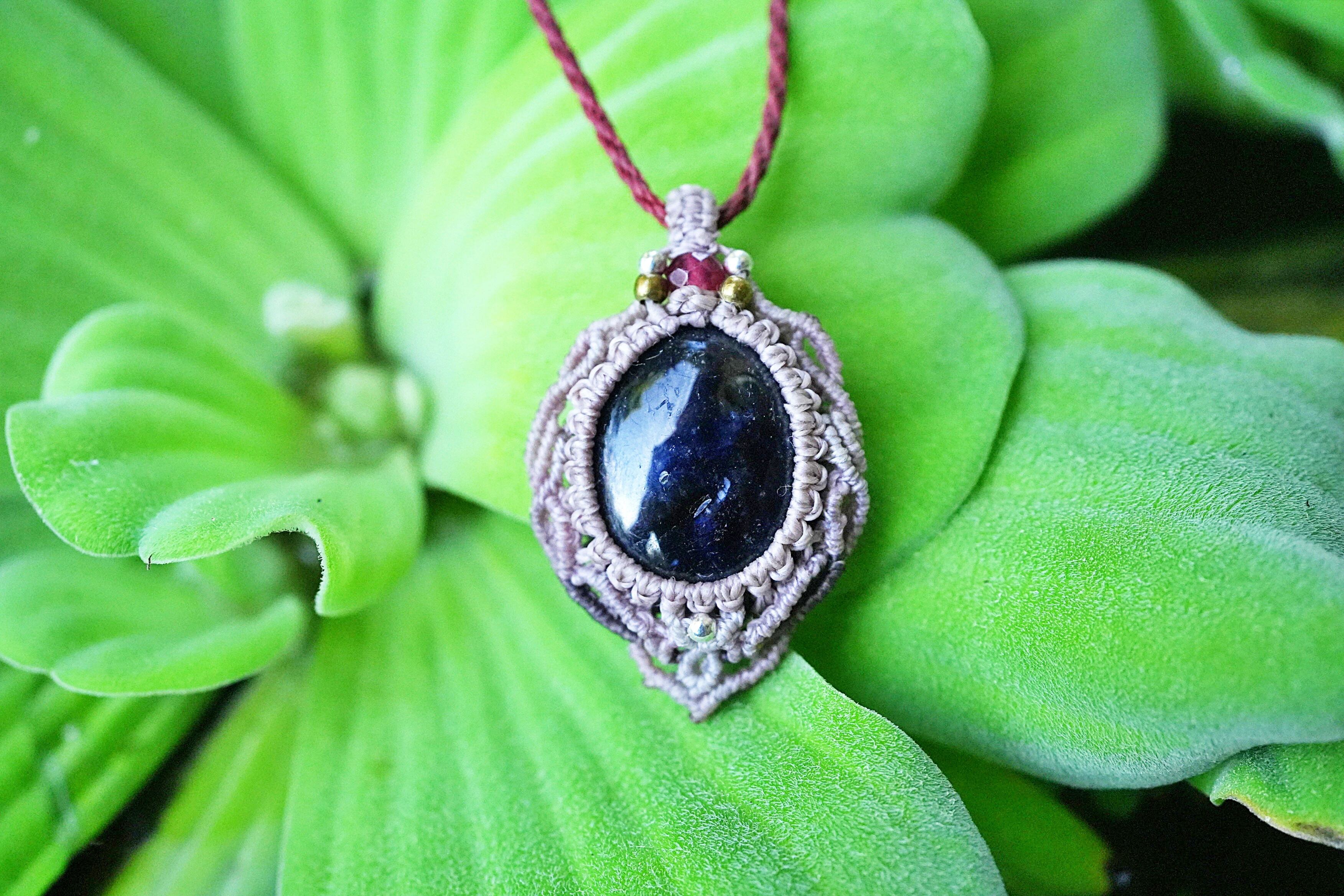 ダークブルー★ブルーサファイア★ マクラメネックレス1509