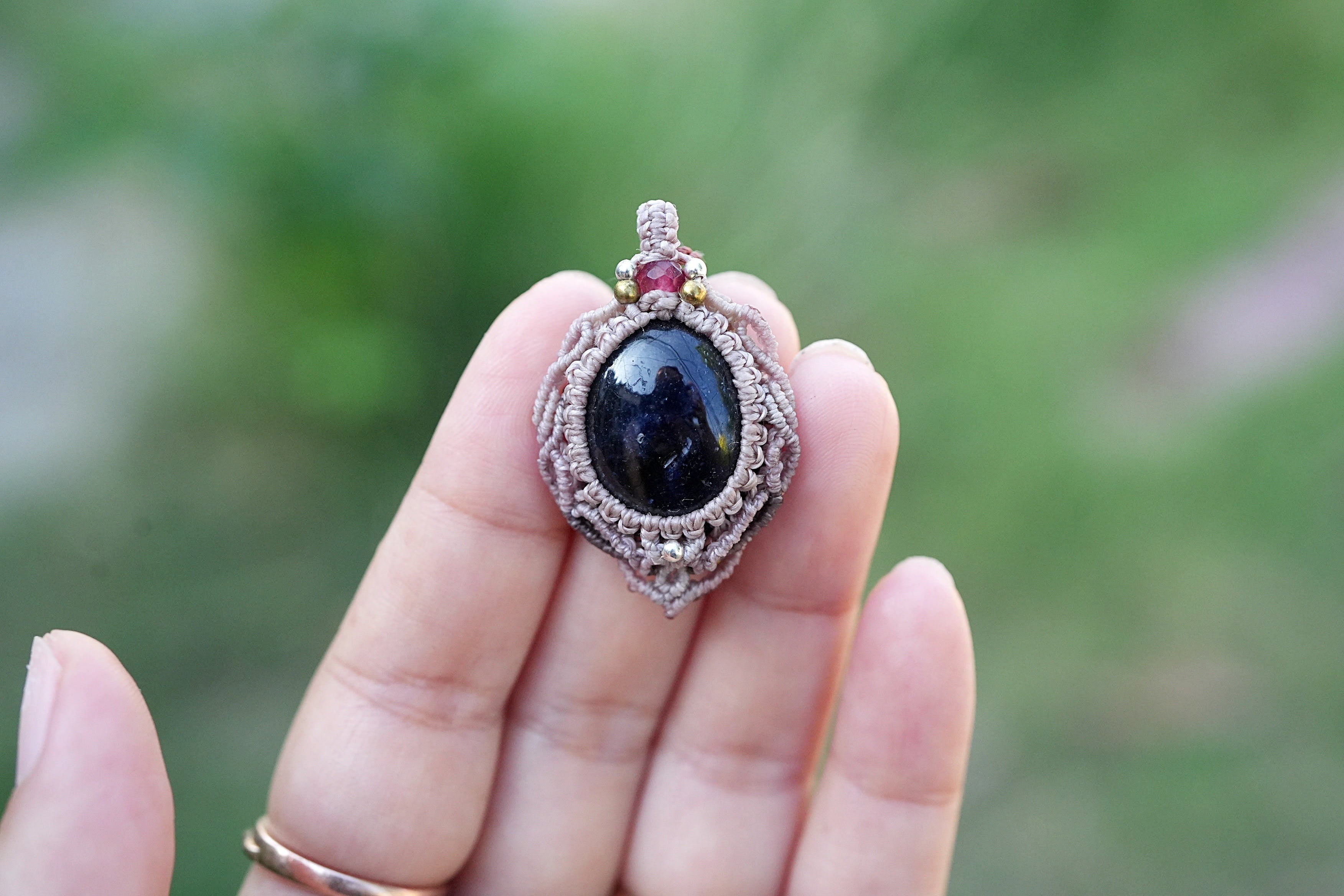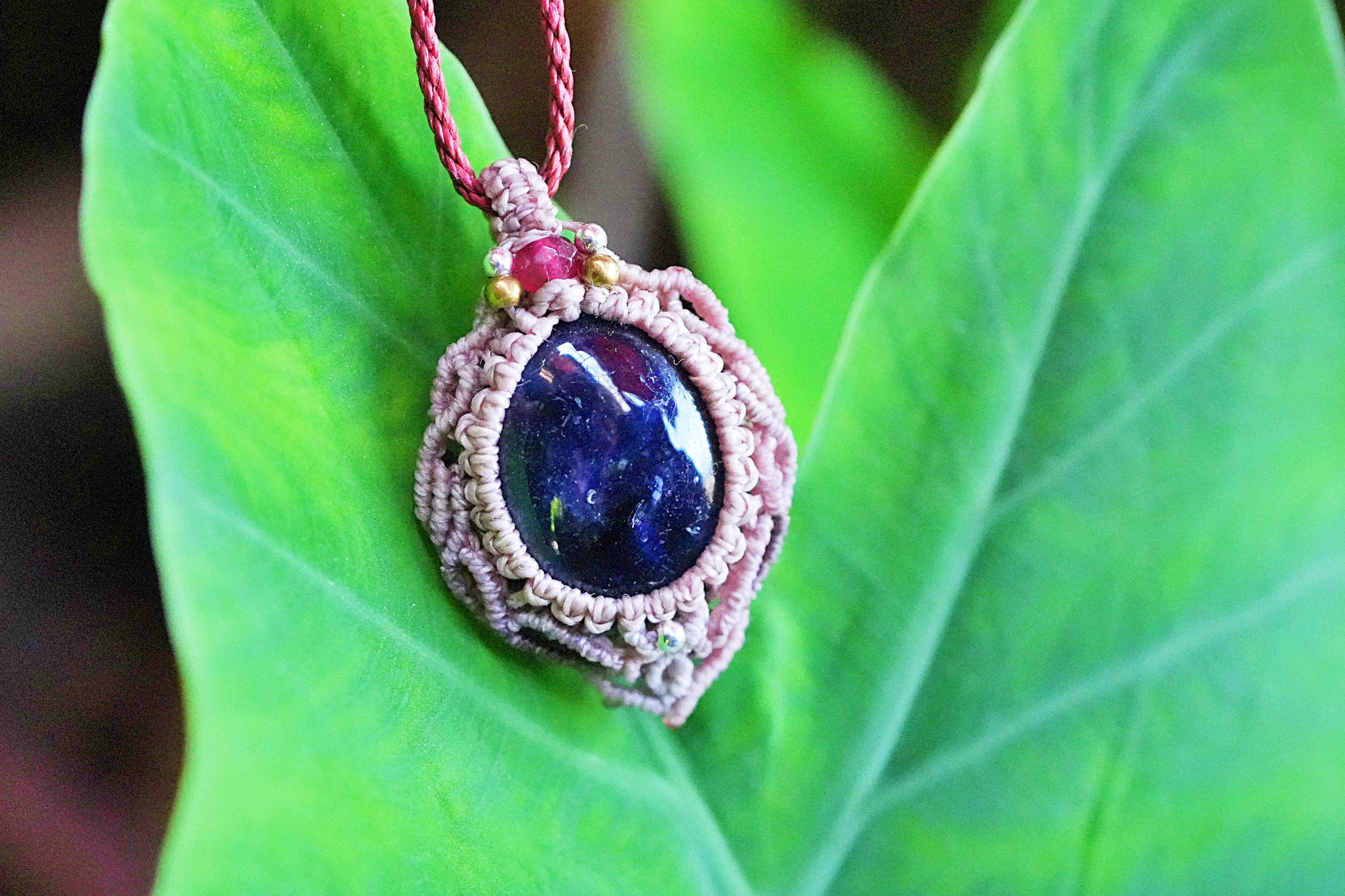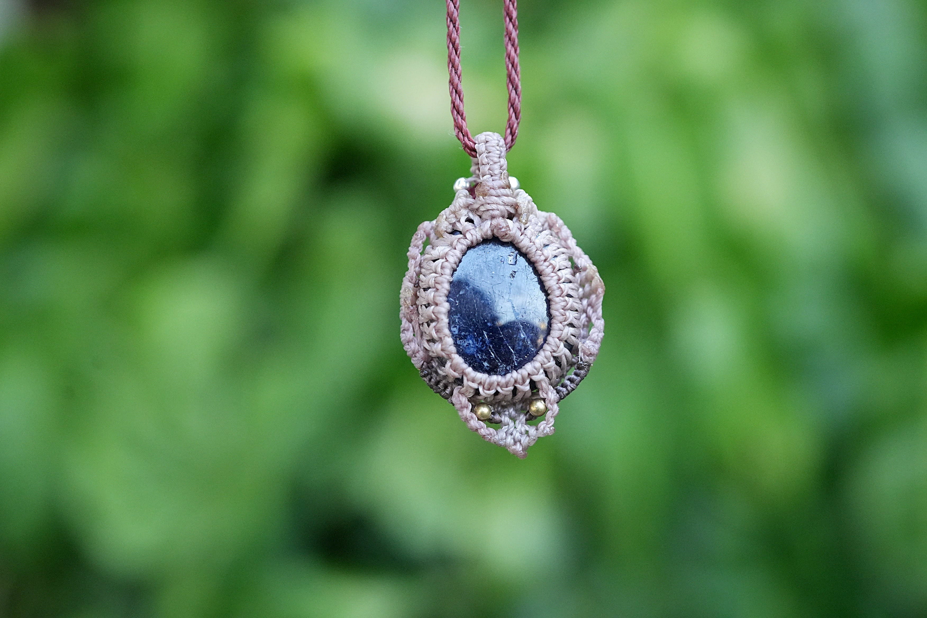 ダークブルー★ブルーサファイア★ マクラメネックレス1509