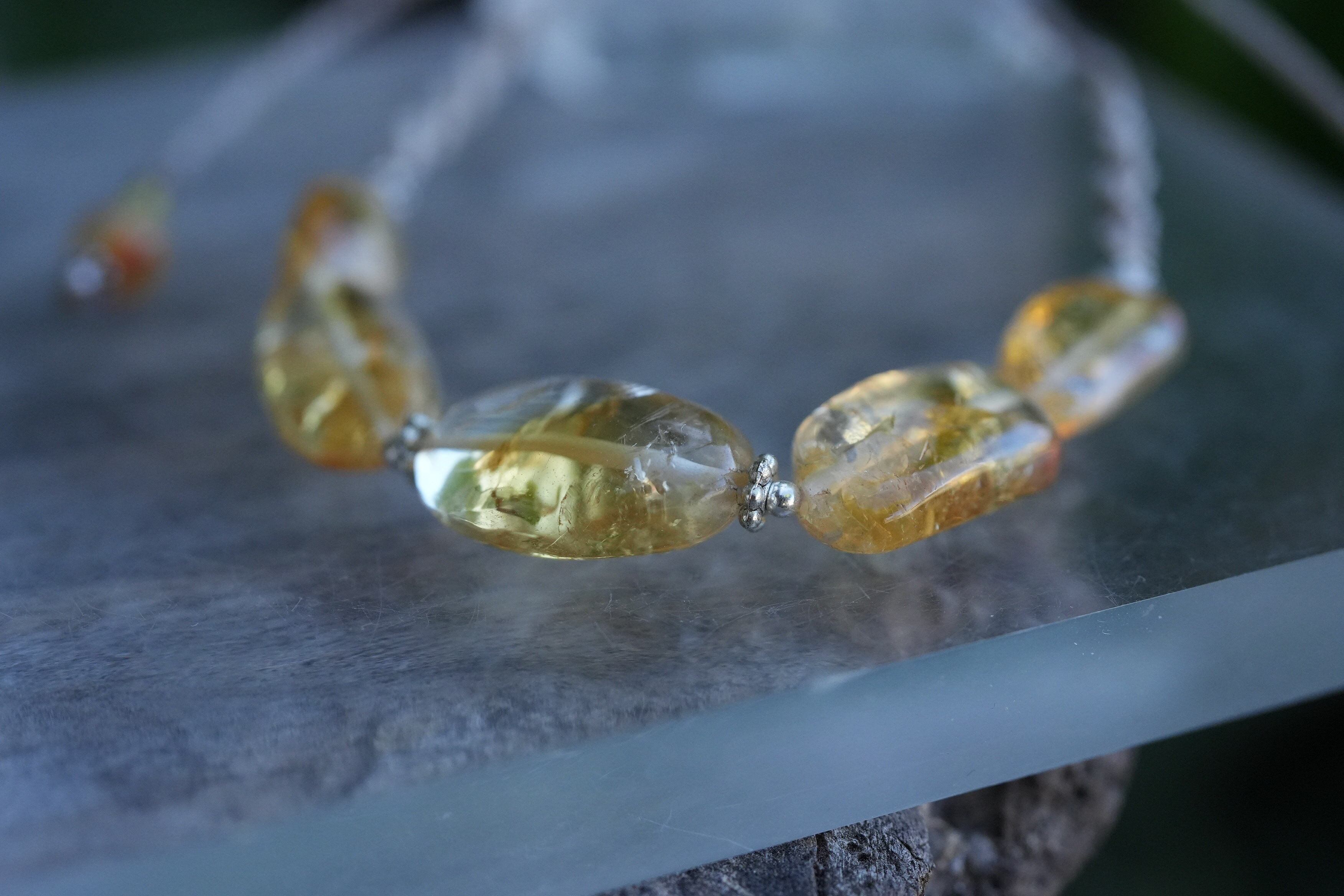大きなイエロー原石★シトリン★ビーズブレスレット1519