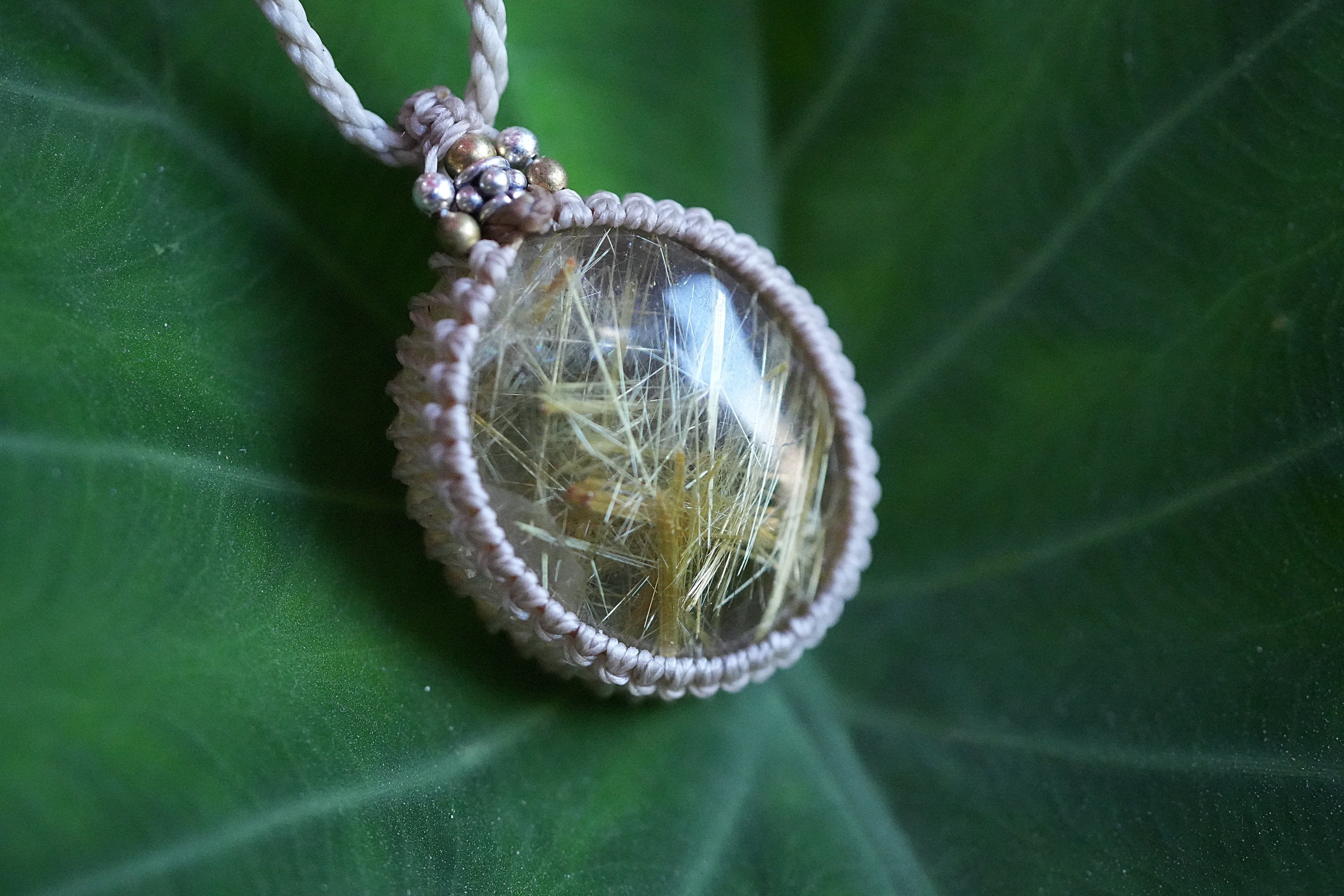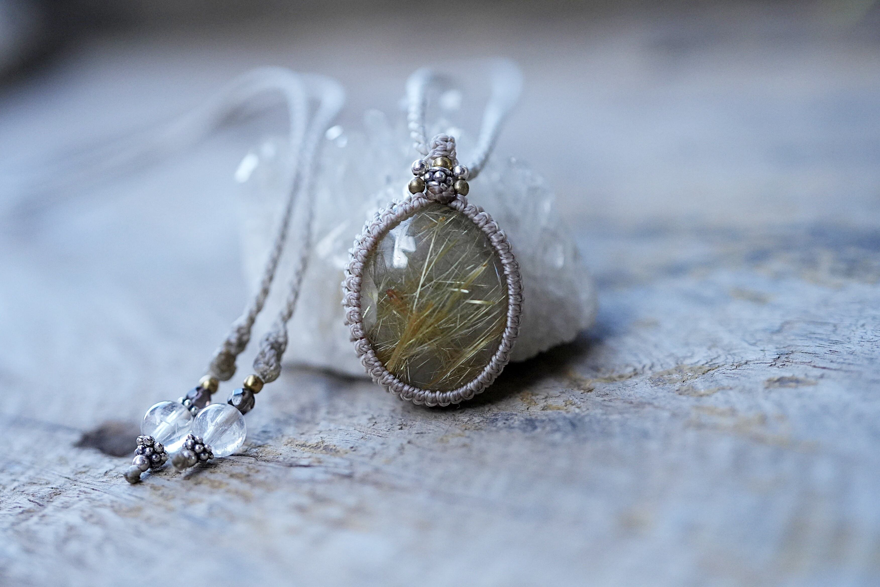 ルチルクォーツは、和名で「金紅石入り水晶」とよばれ、ラテン語の「黄金色に輝く」という意味から来ています。