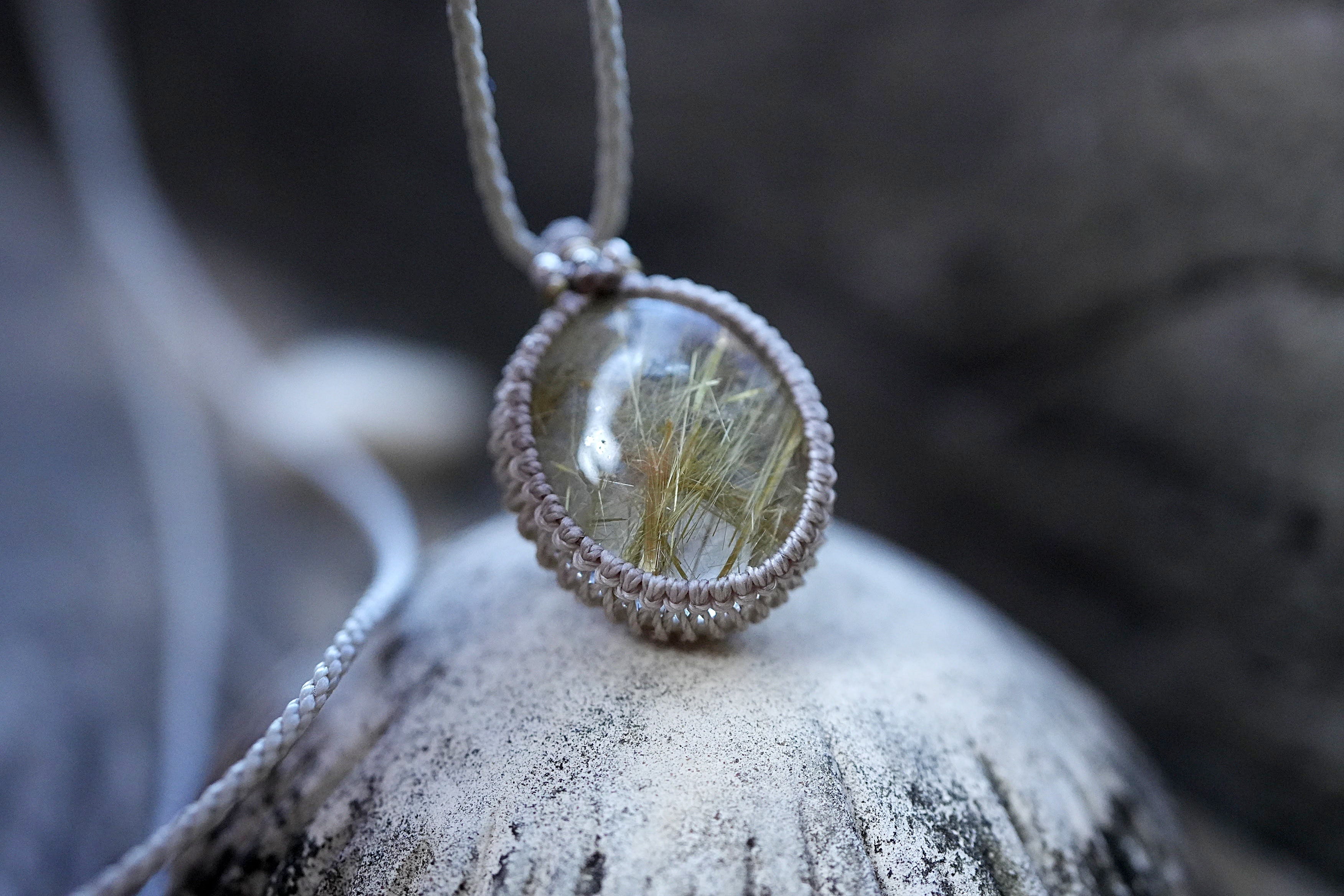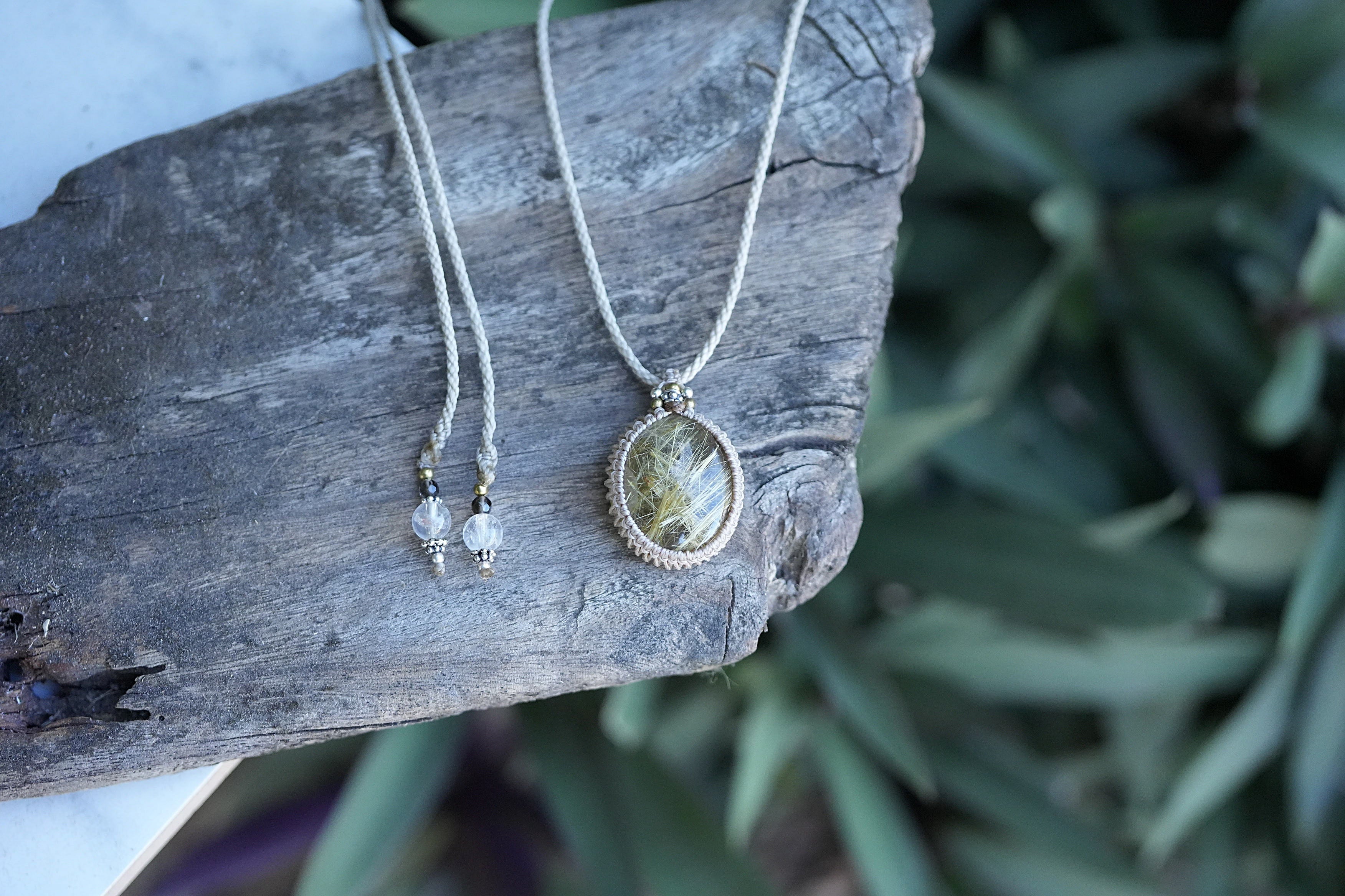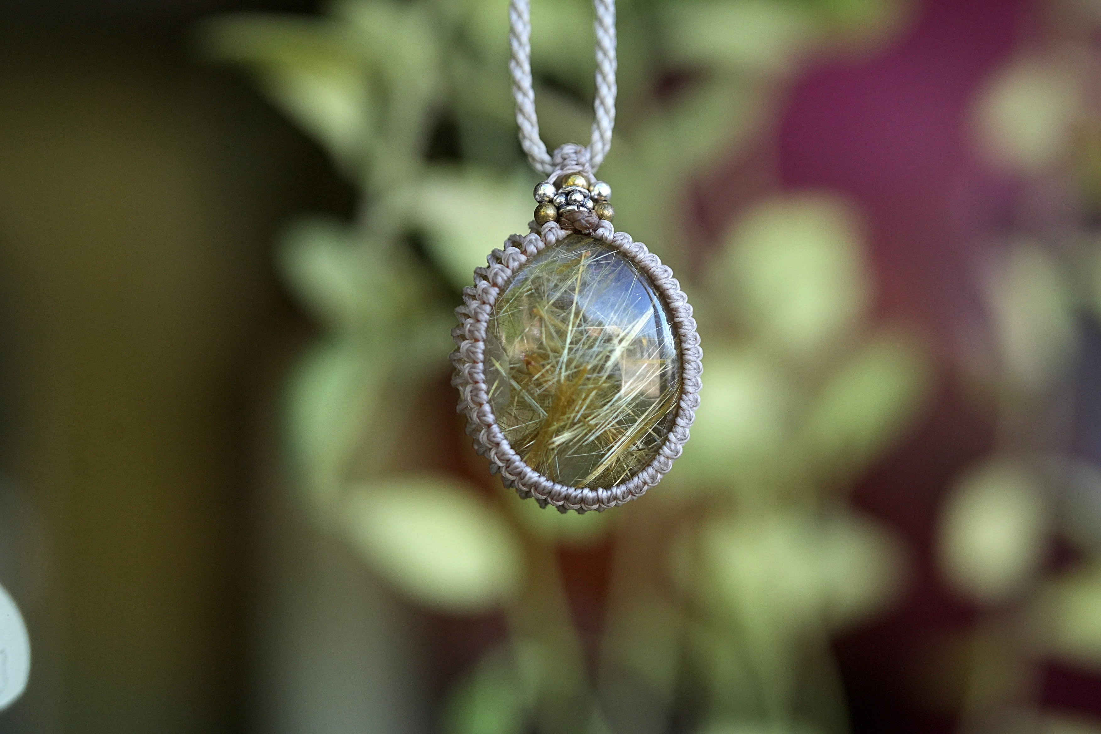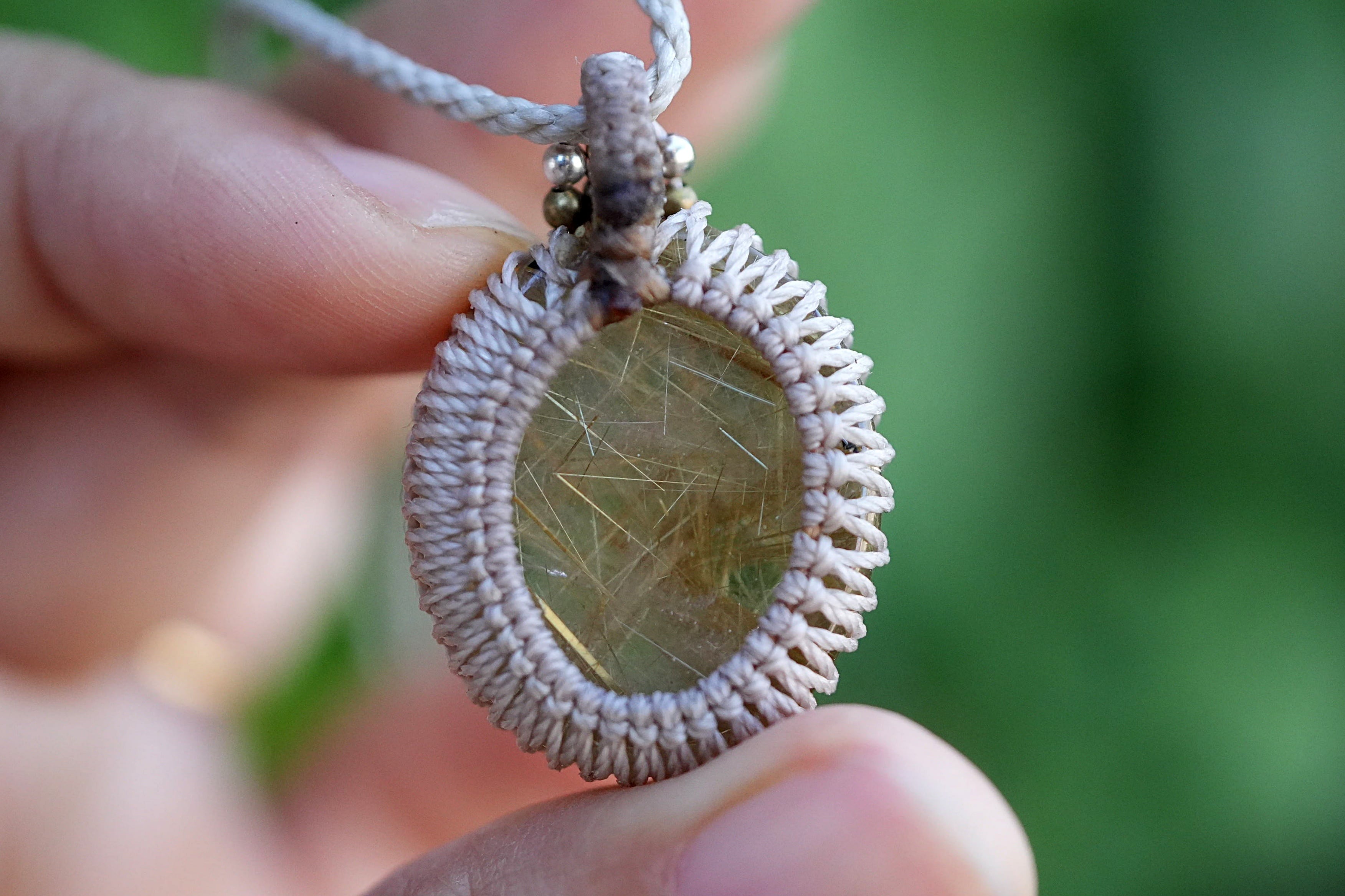 黄金ビッシリ★ゴールドルチルクォーツ マクラメネックレス1520