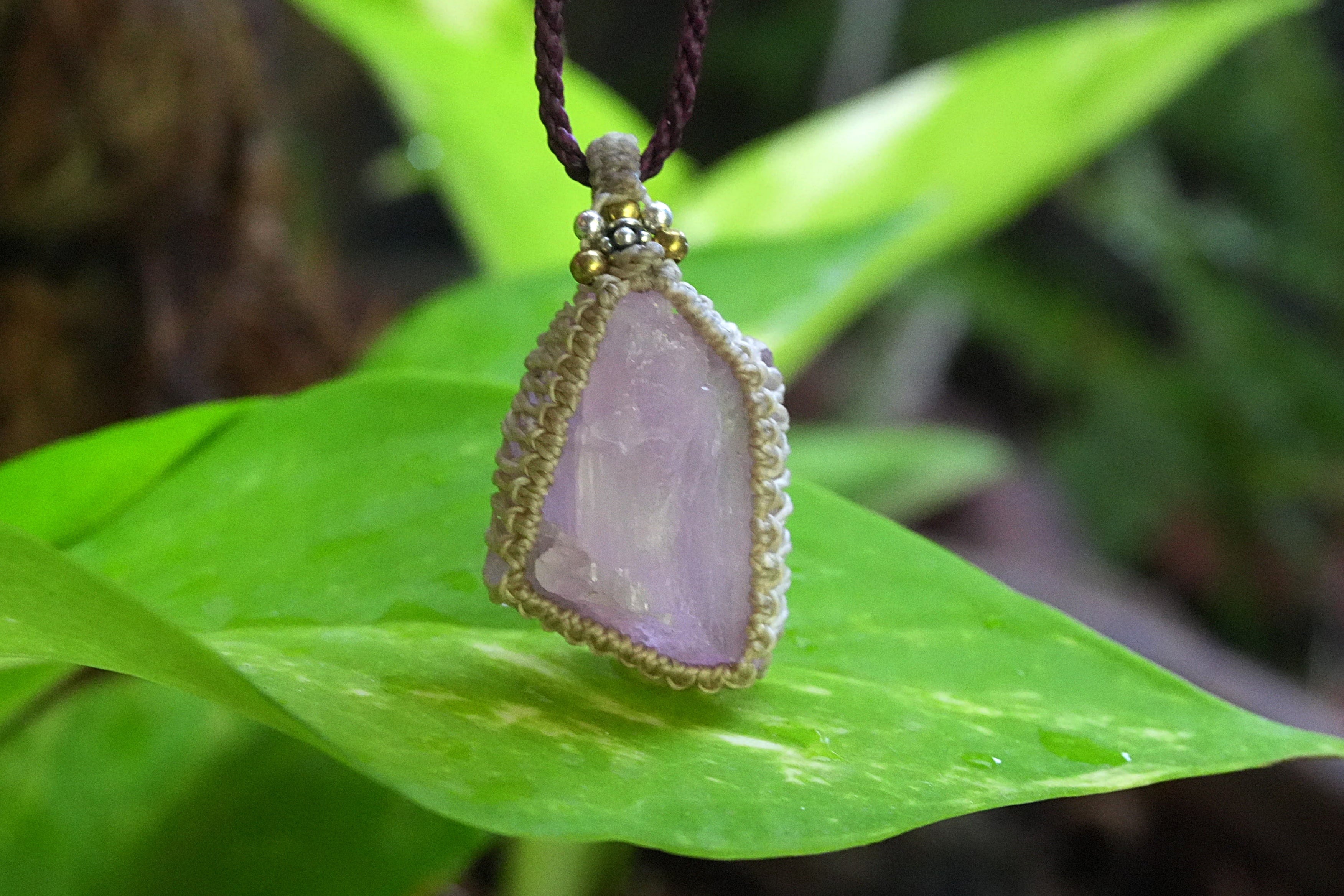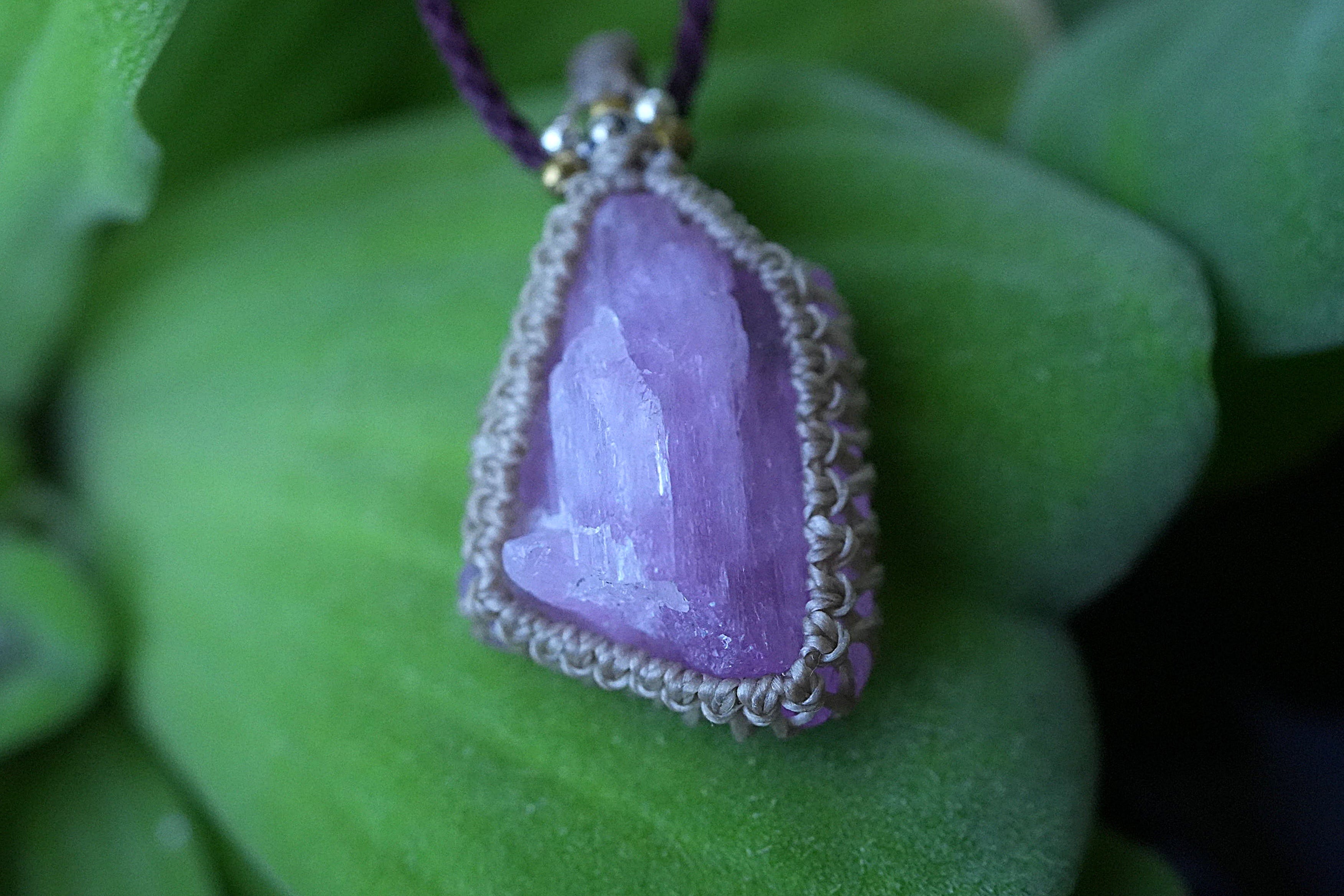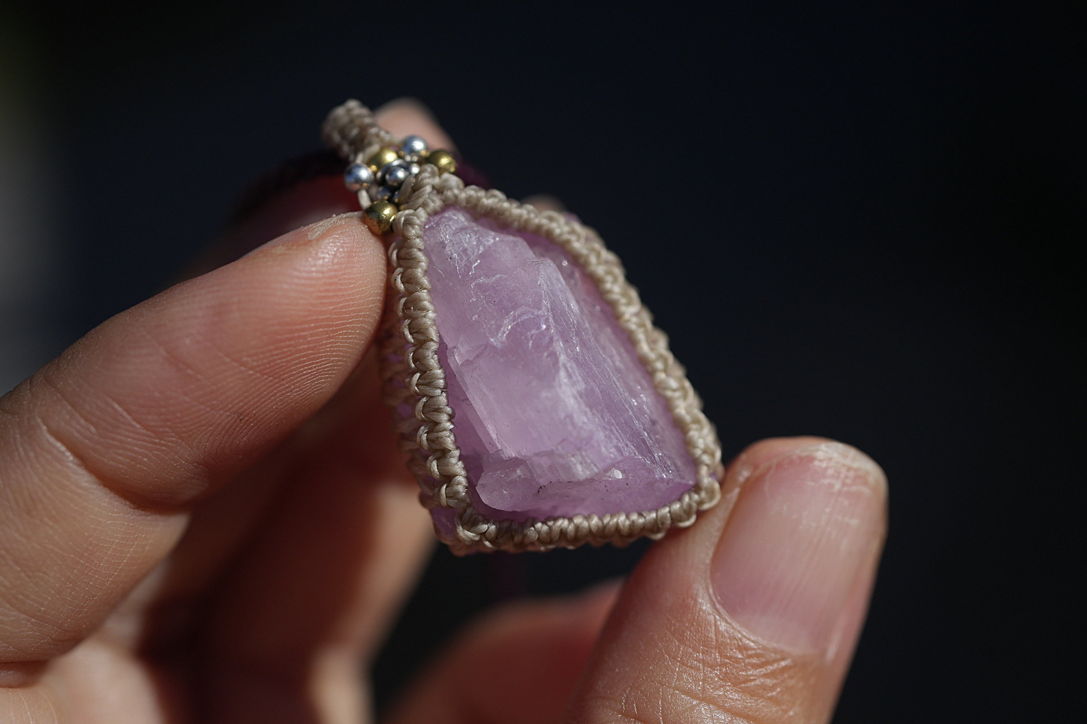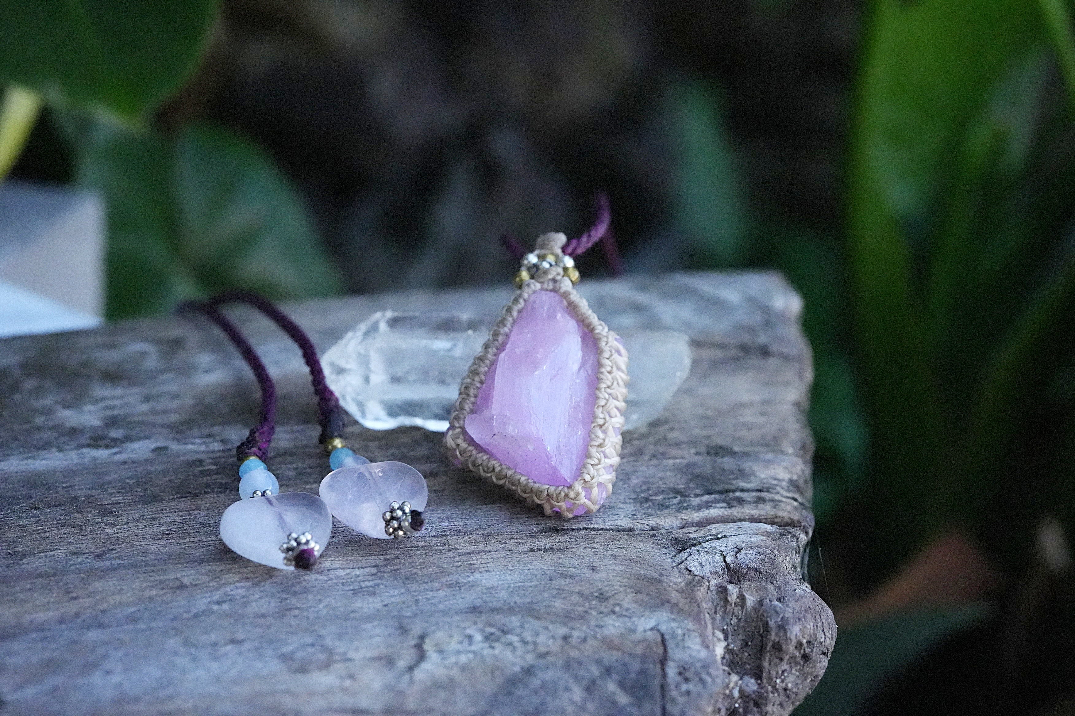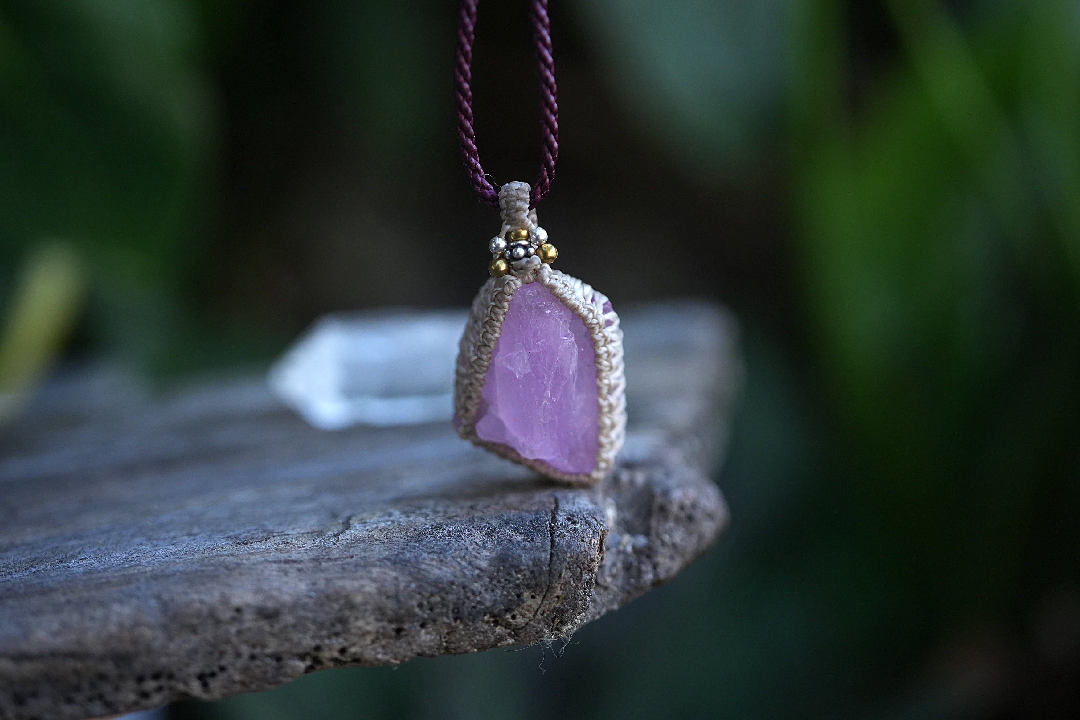 春の深いピンク★Kunzite原石 マクラメネックレス1521