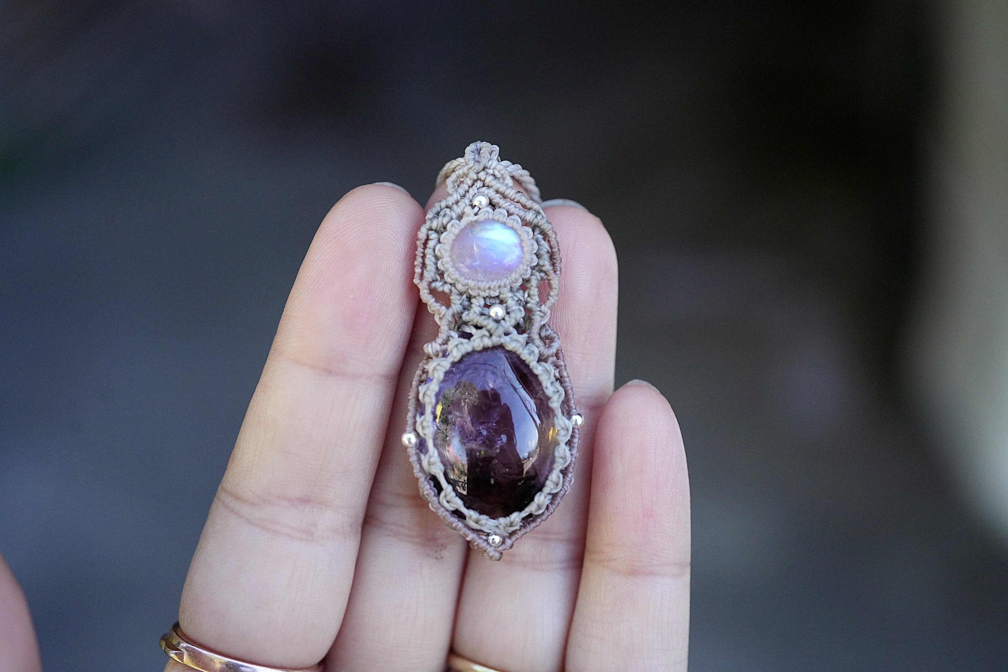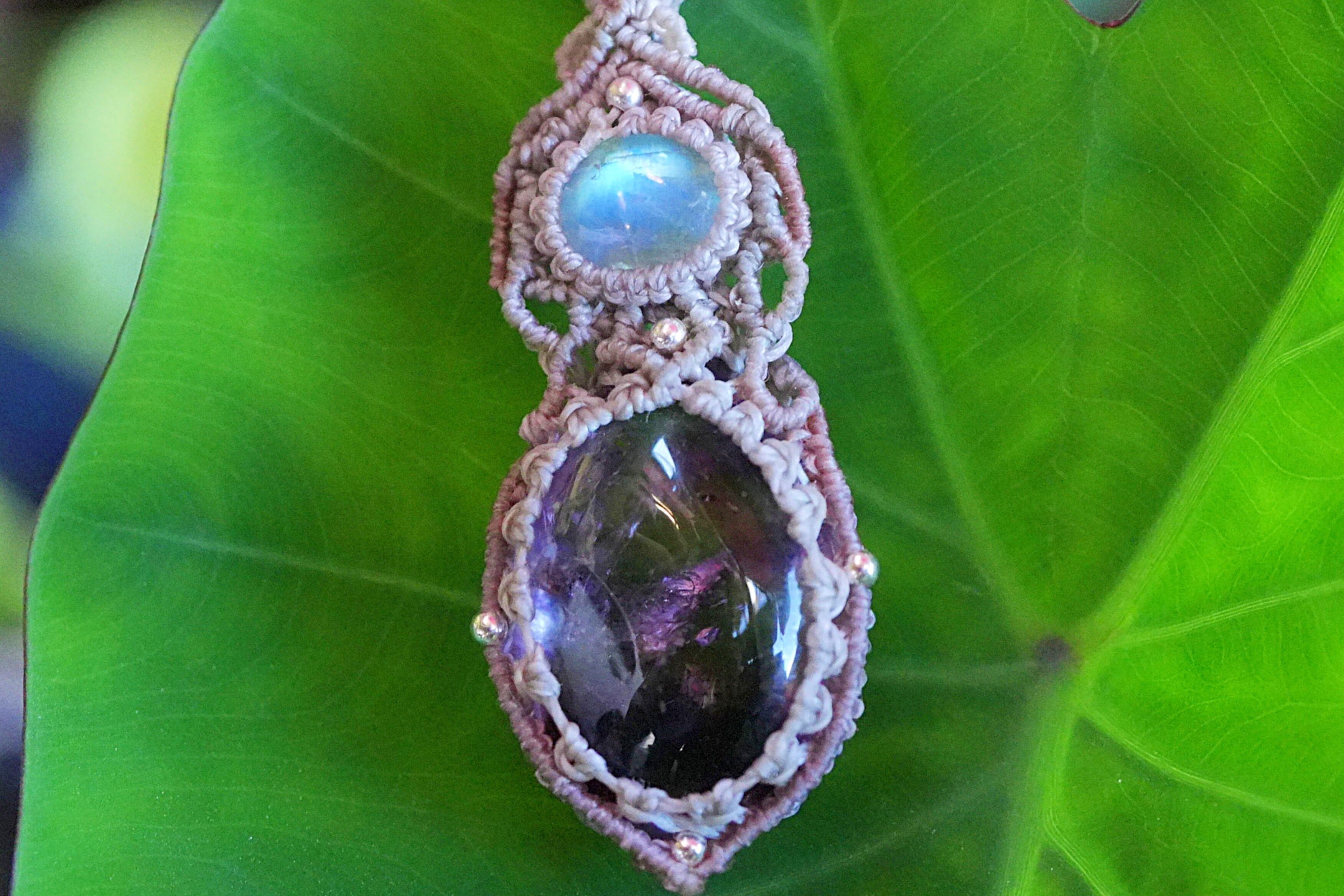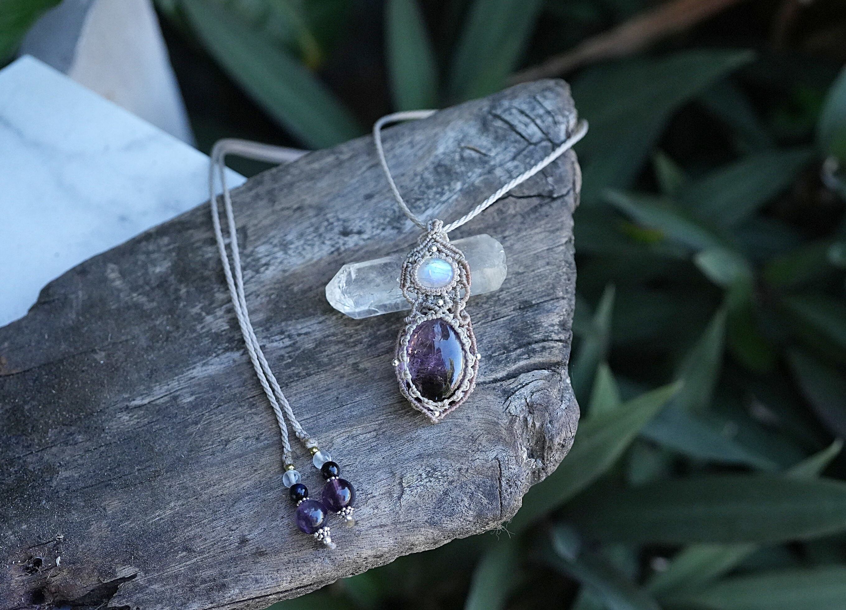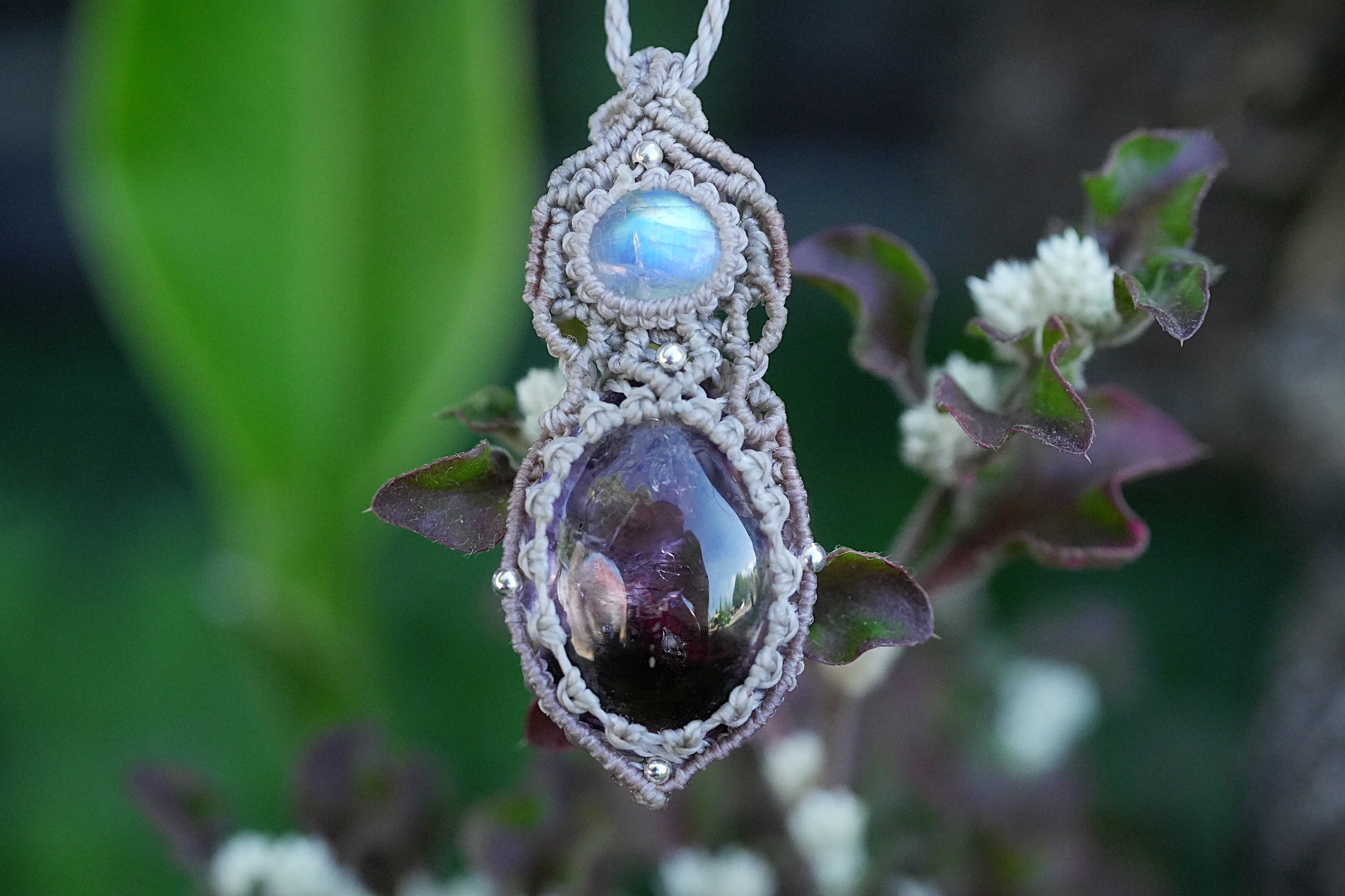 月と紫水の雫★古代の水入り★アメシスト水晶 マクラメネックレス1525