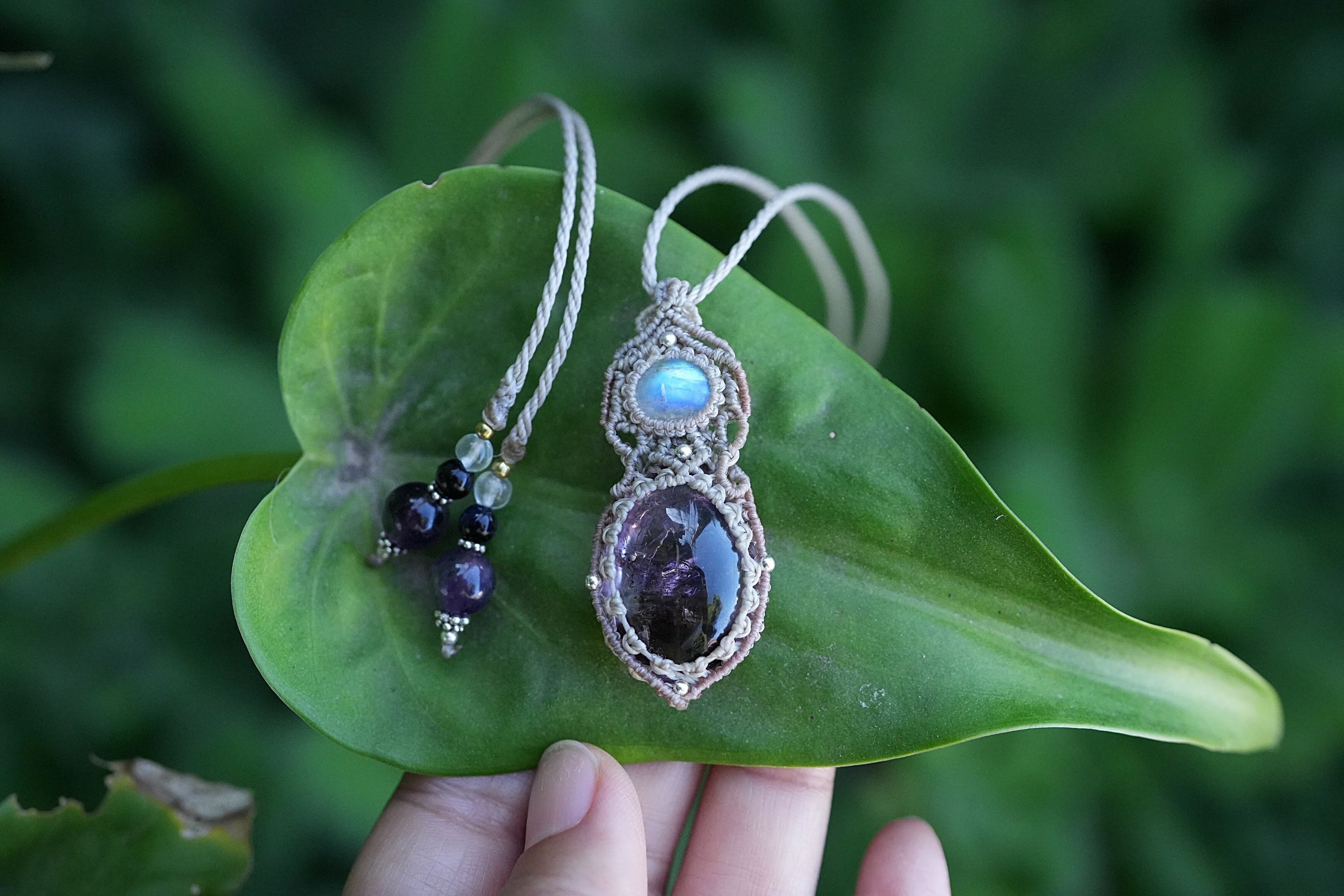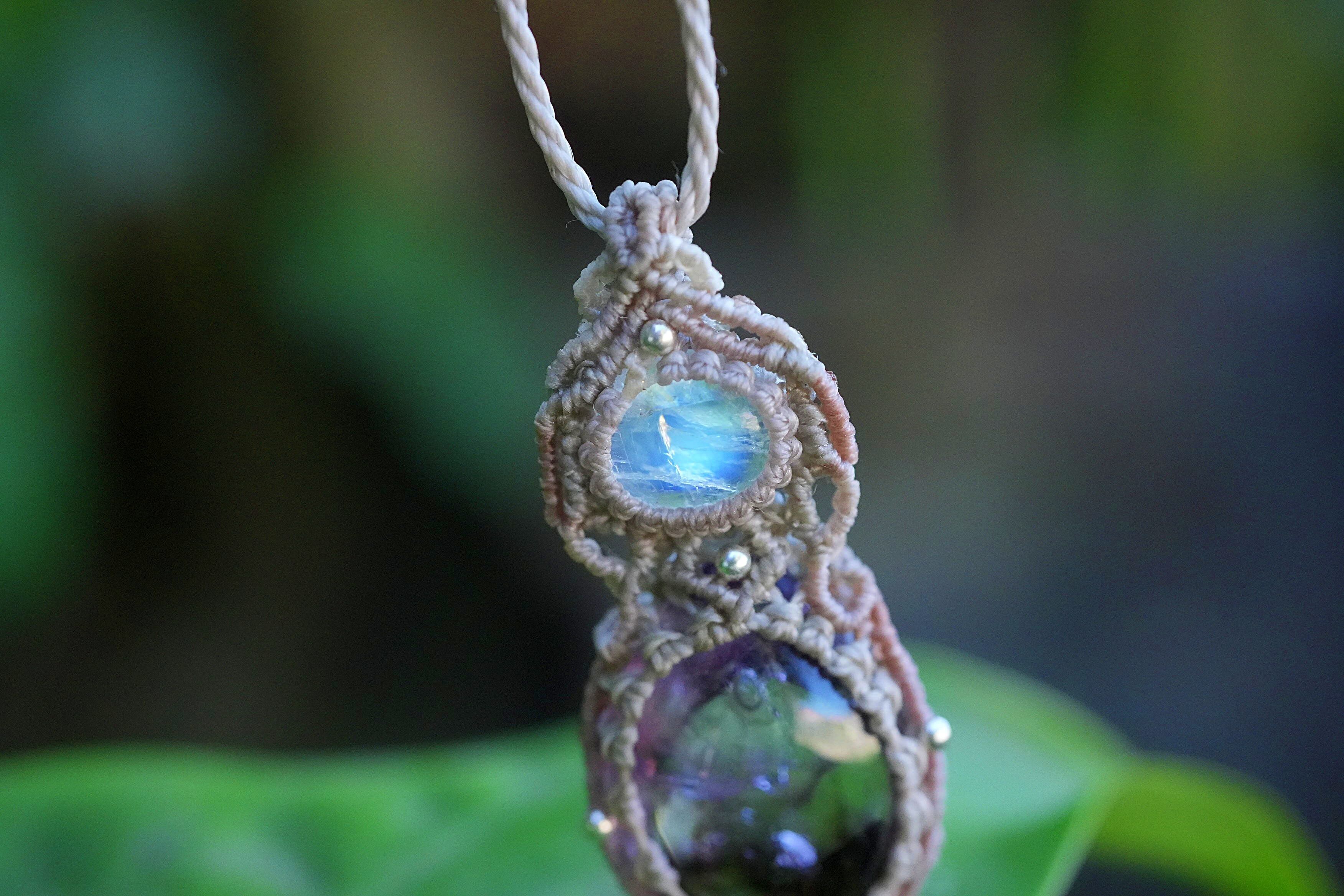 2石を大切に結びマクラメ編みネックレスに仕上げました。