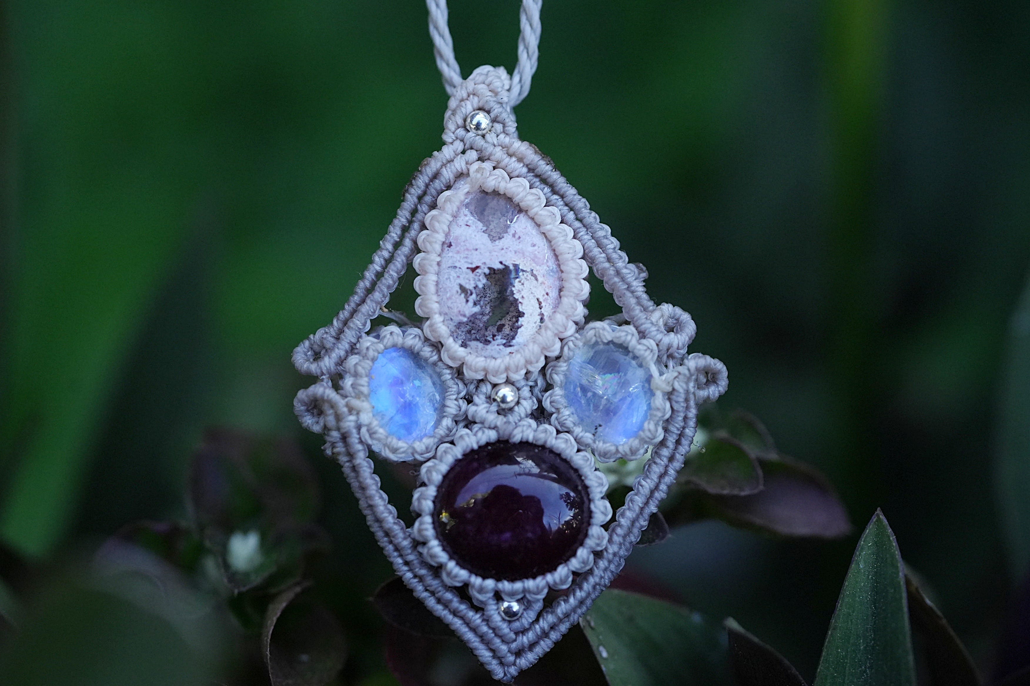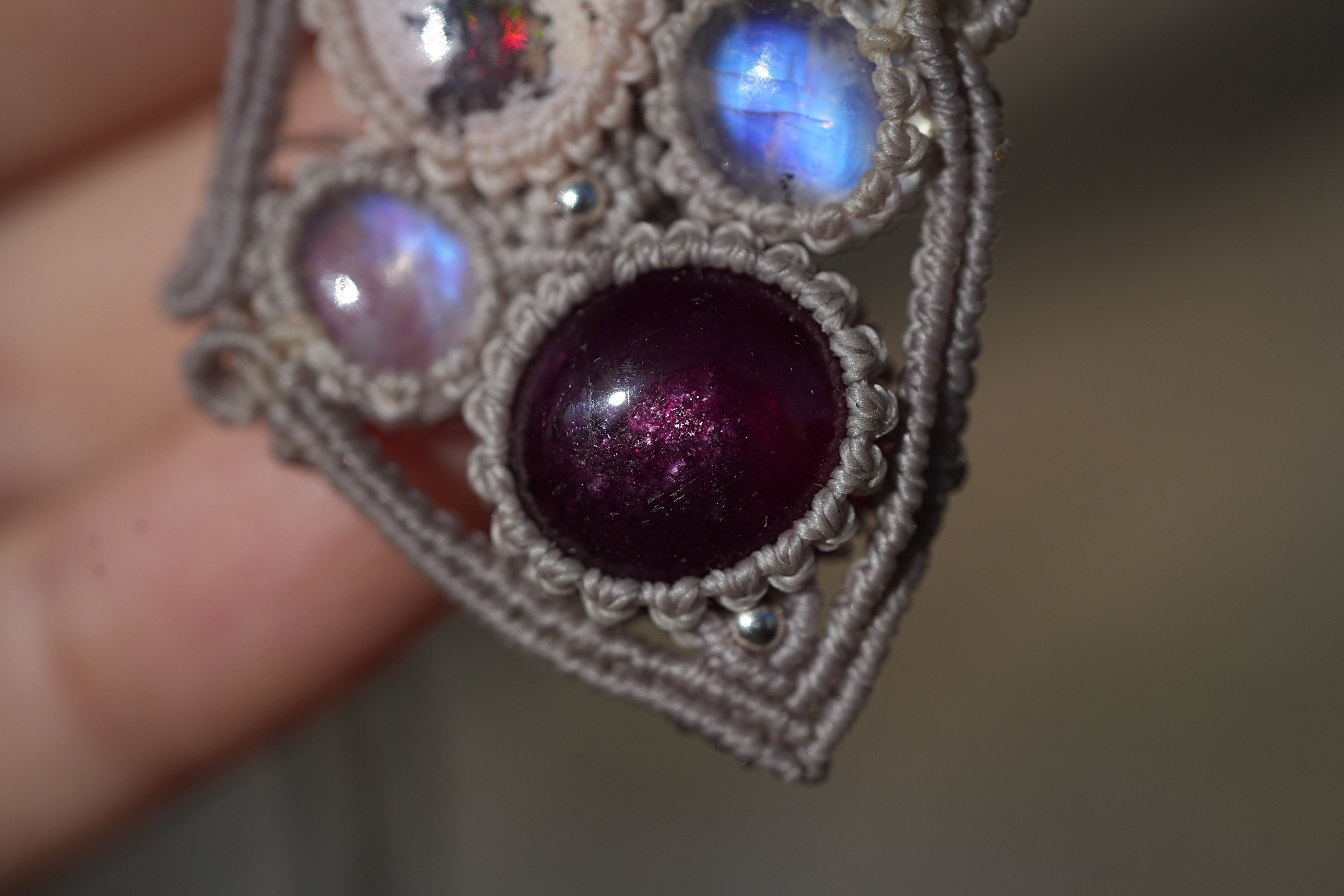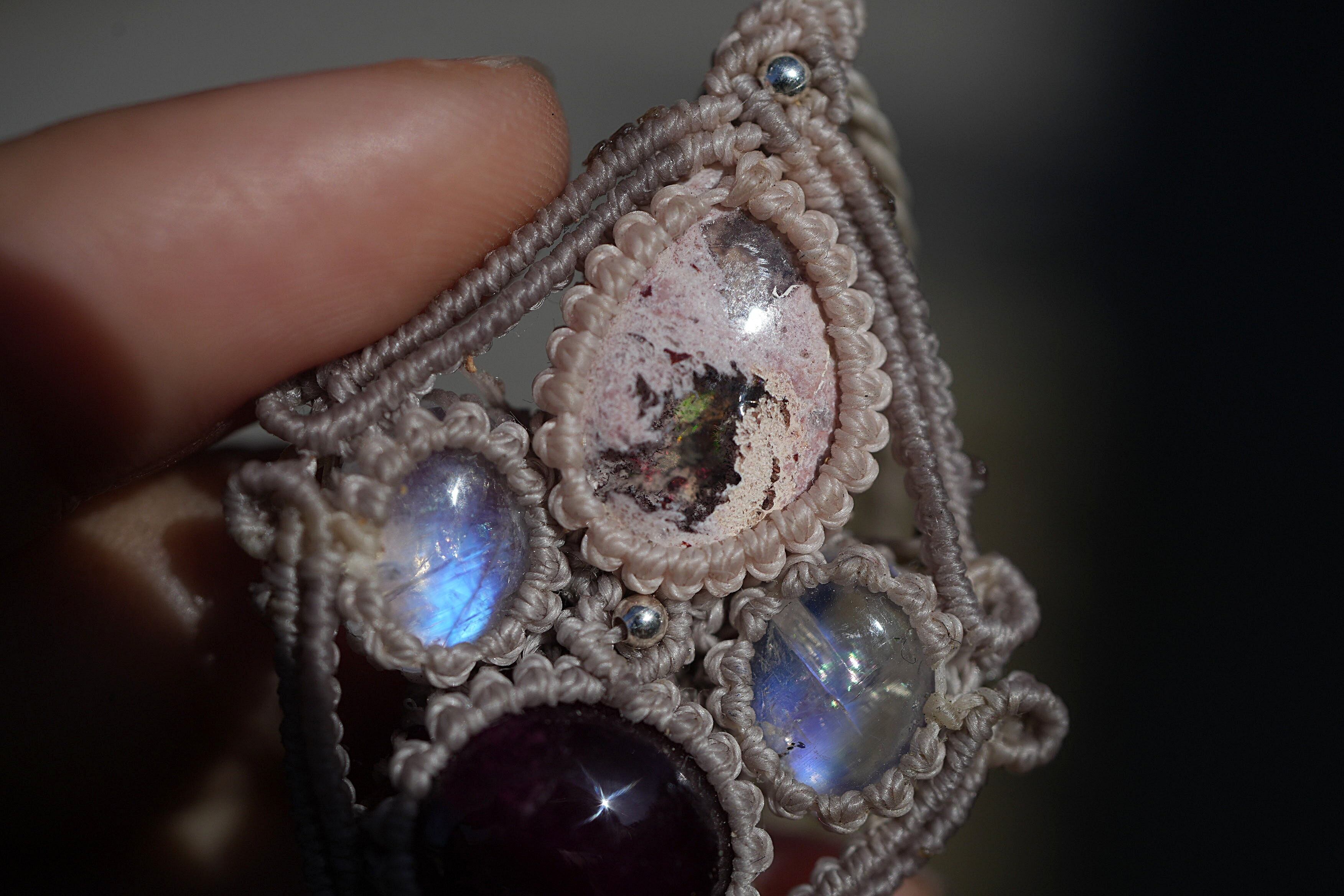 遊春の夢★moonstone★高品質★ルビー cantera opal マクラメネックレス1524