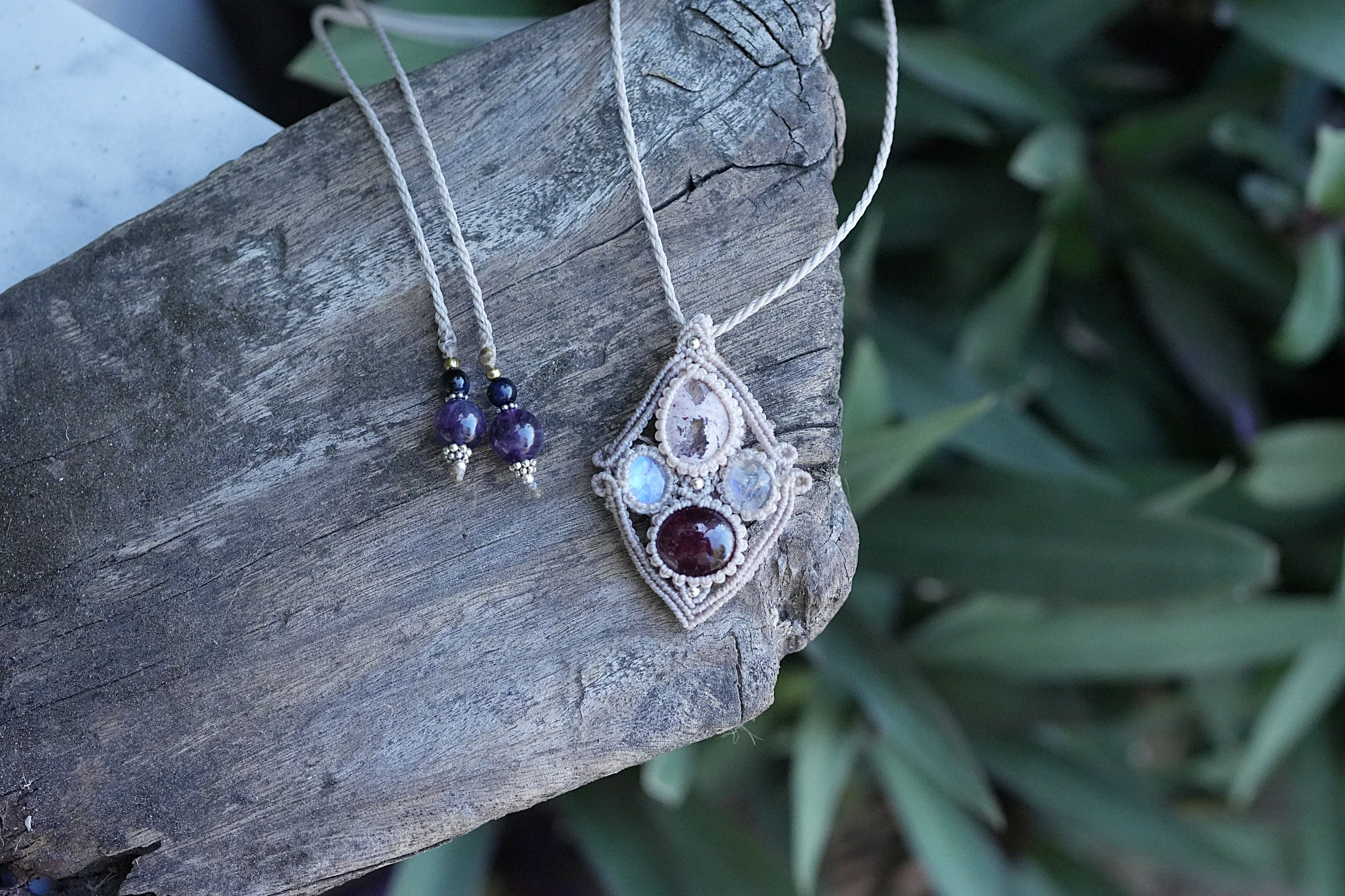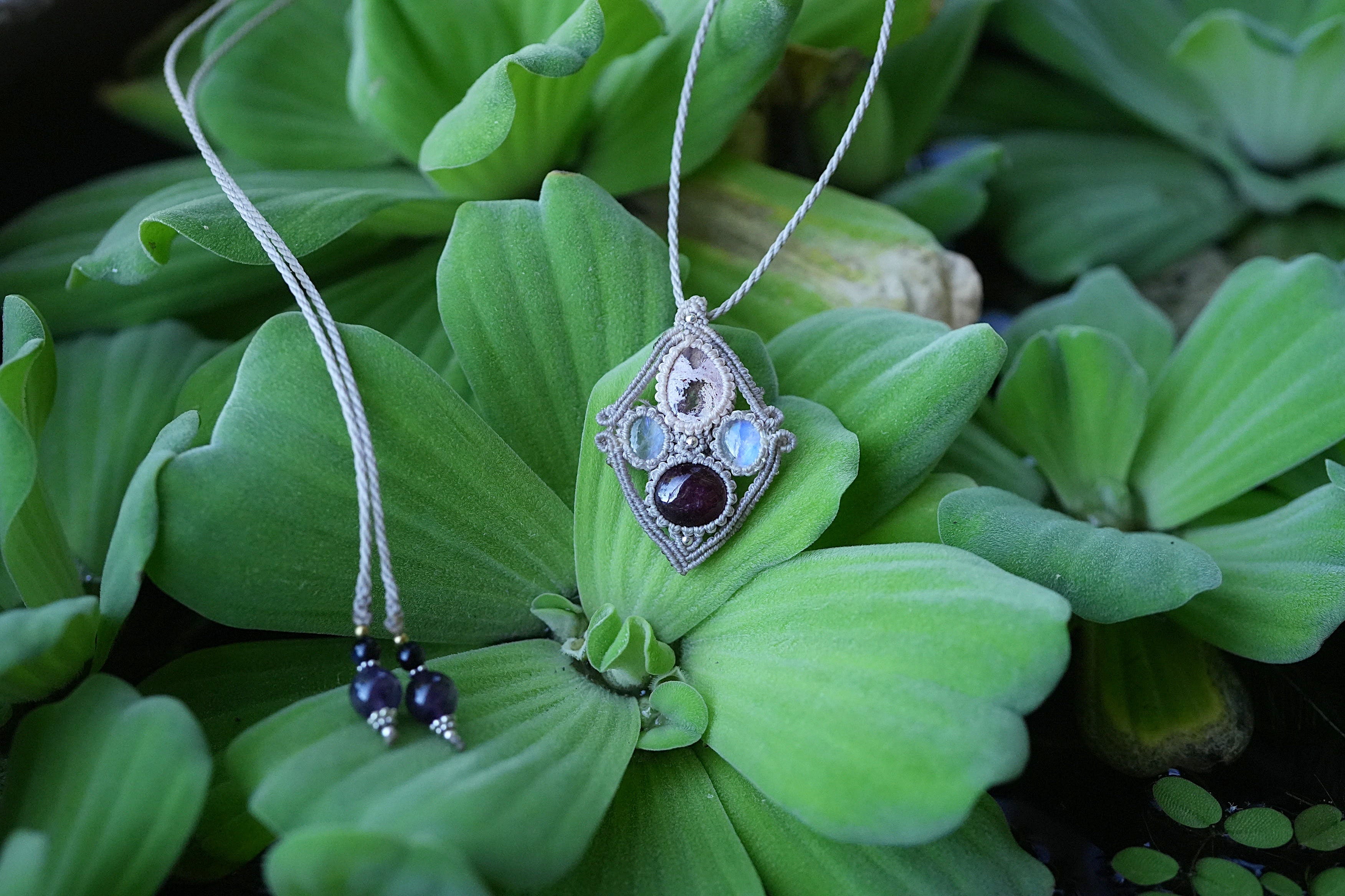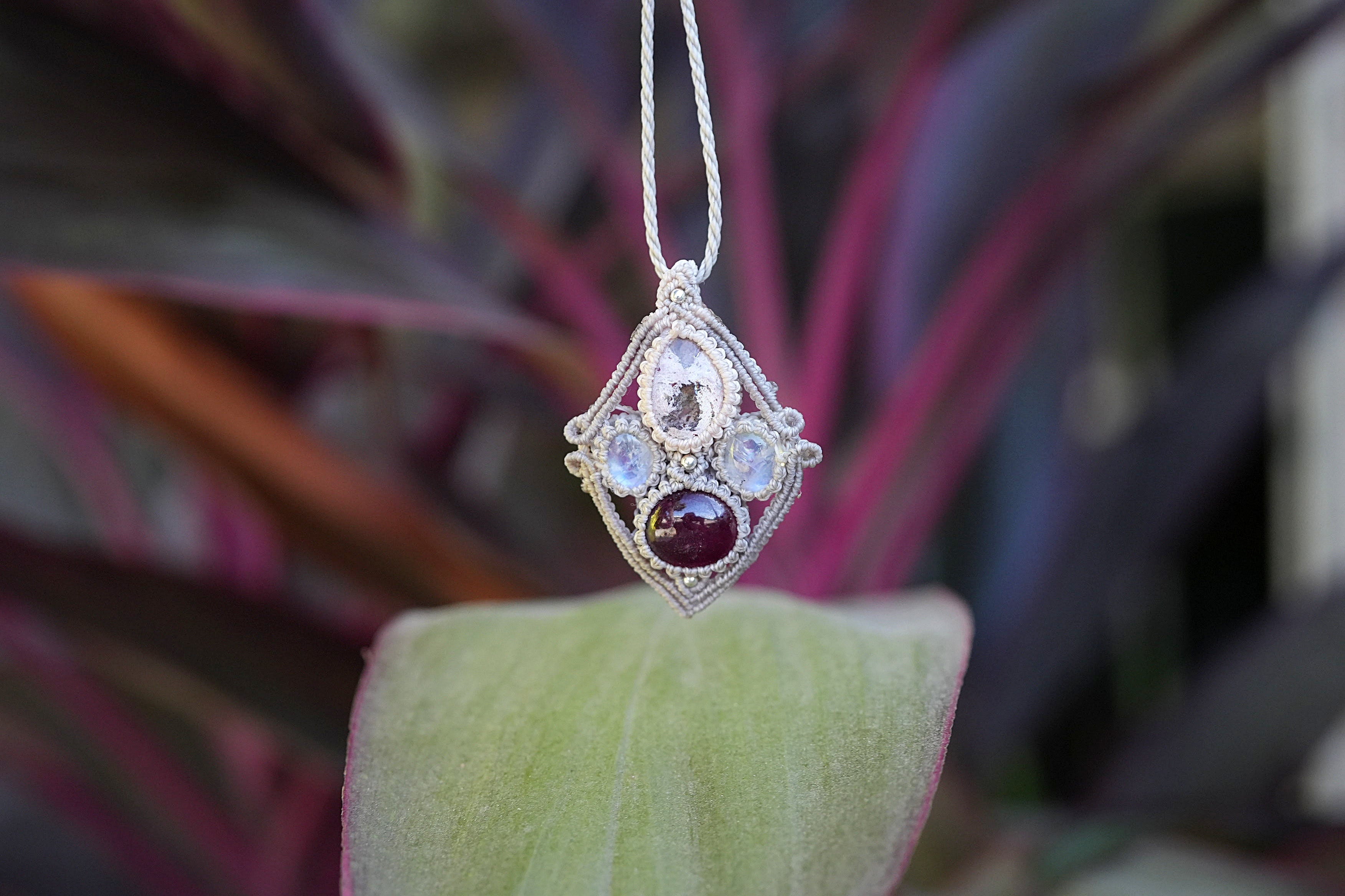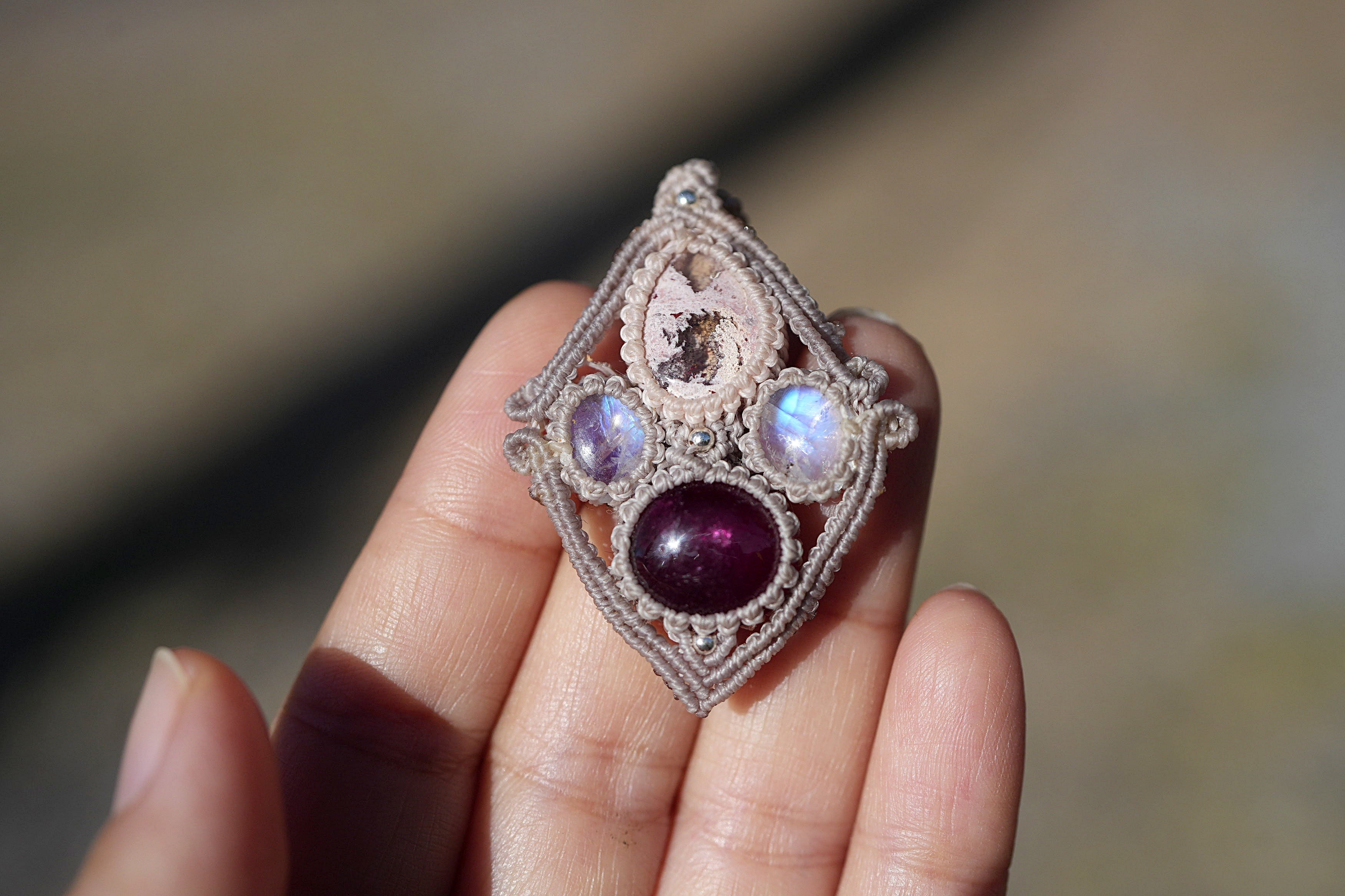 遊春の夢★moonstone★高品質★ルビー cantera opal マクラメネックレス1524