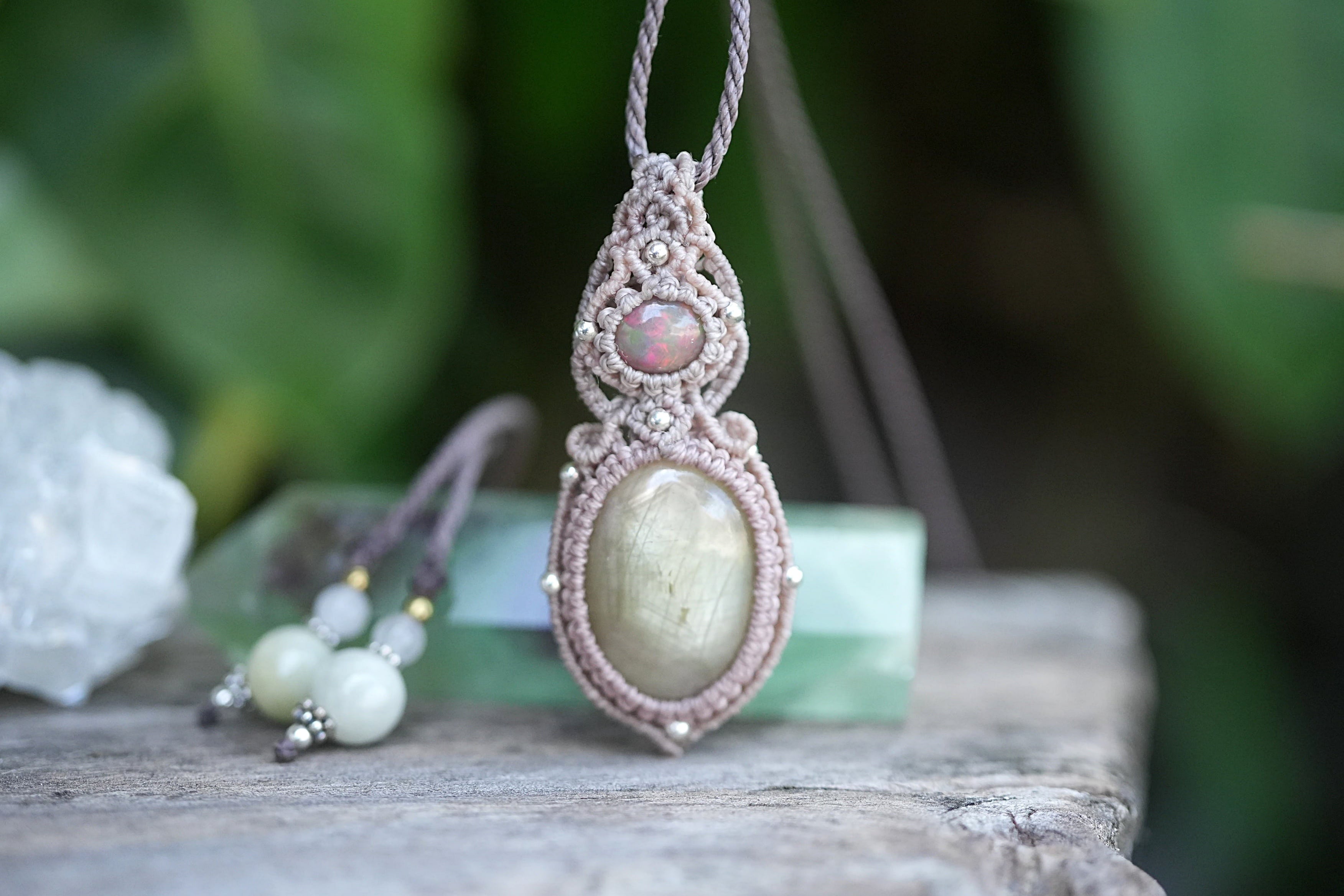 炎と黄金★オパール イエローサファイア マクラメネックレス1534