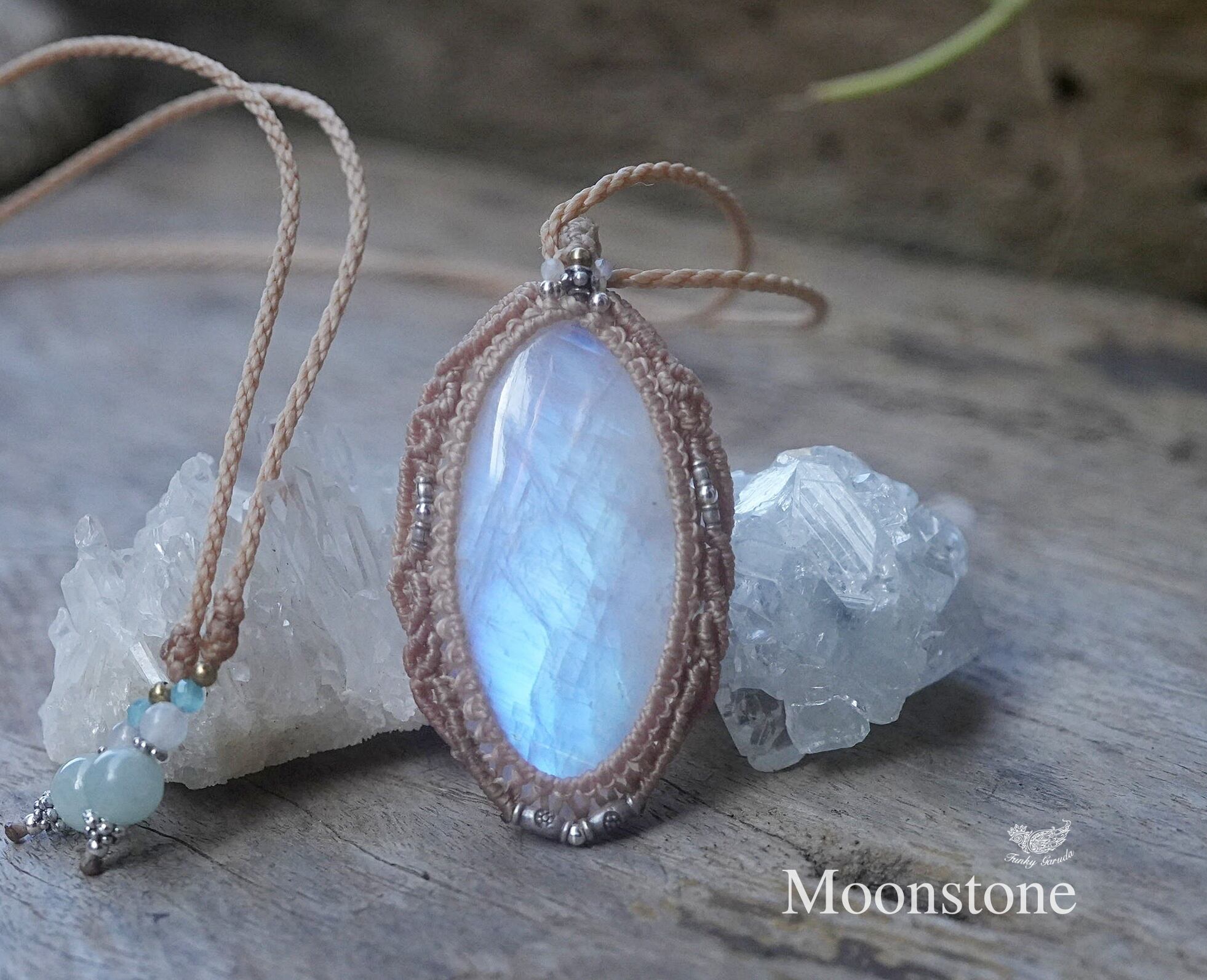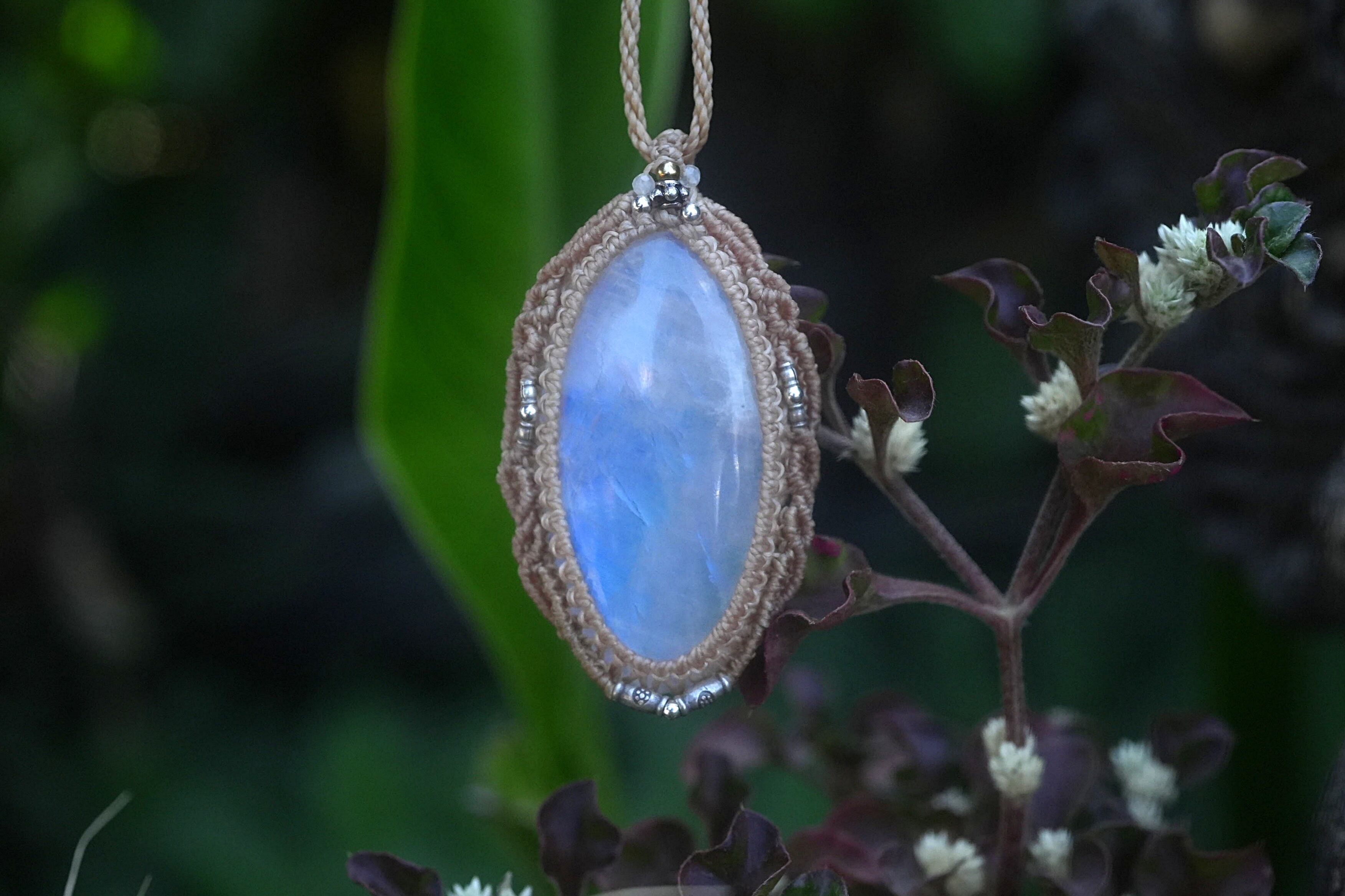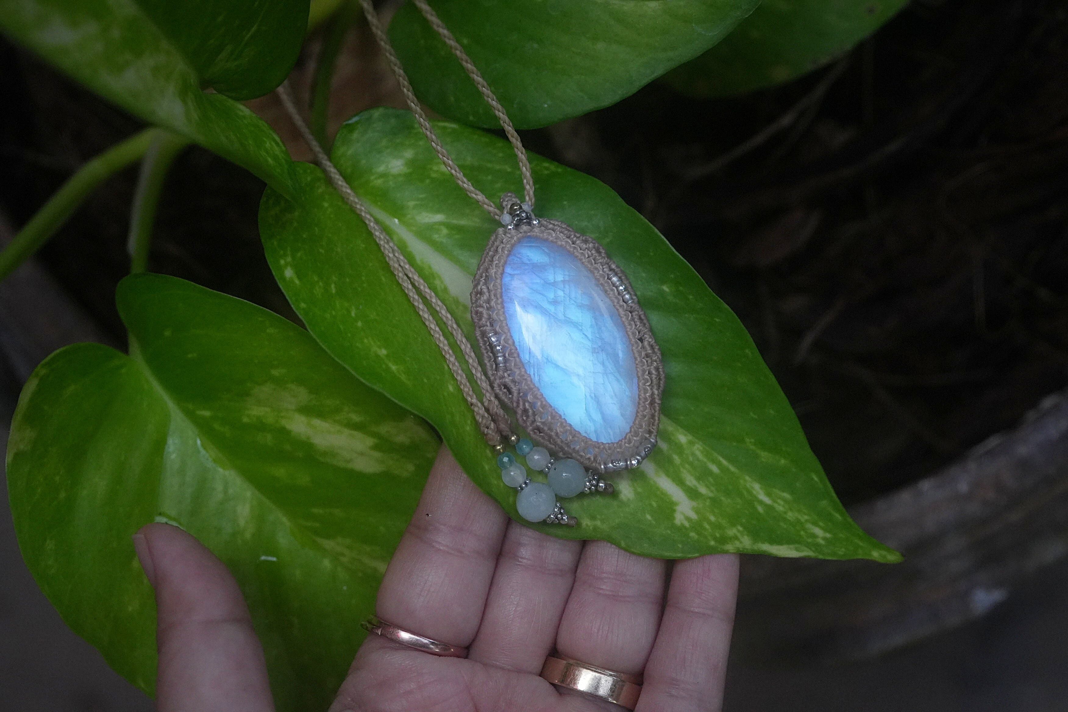 月と大空シラー★大粒★レインボームーンストーン マクラメネックレス1541