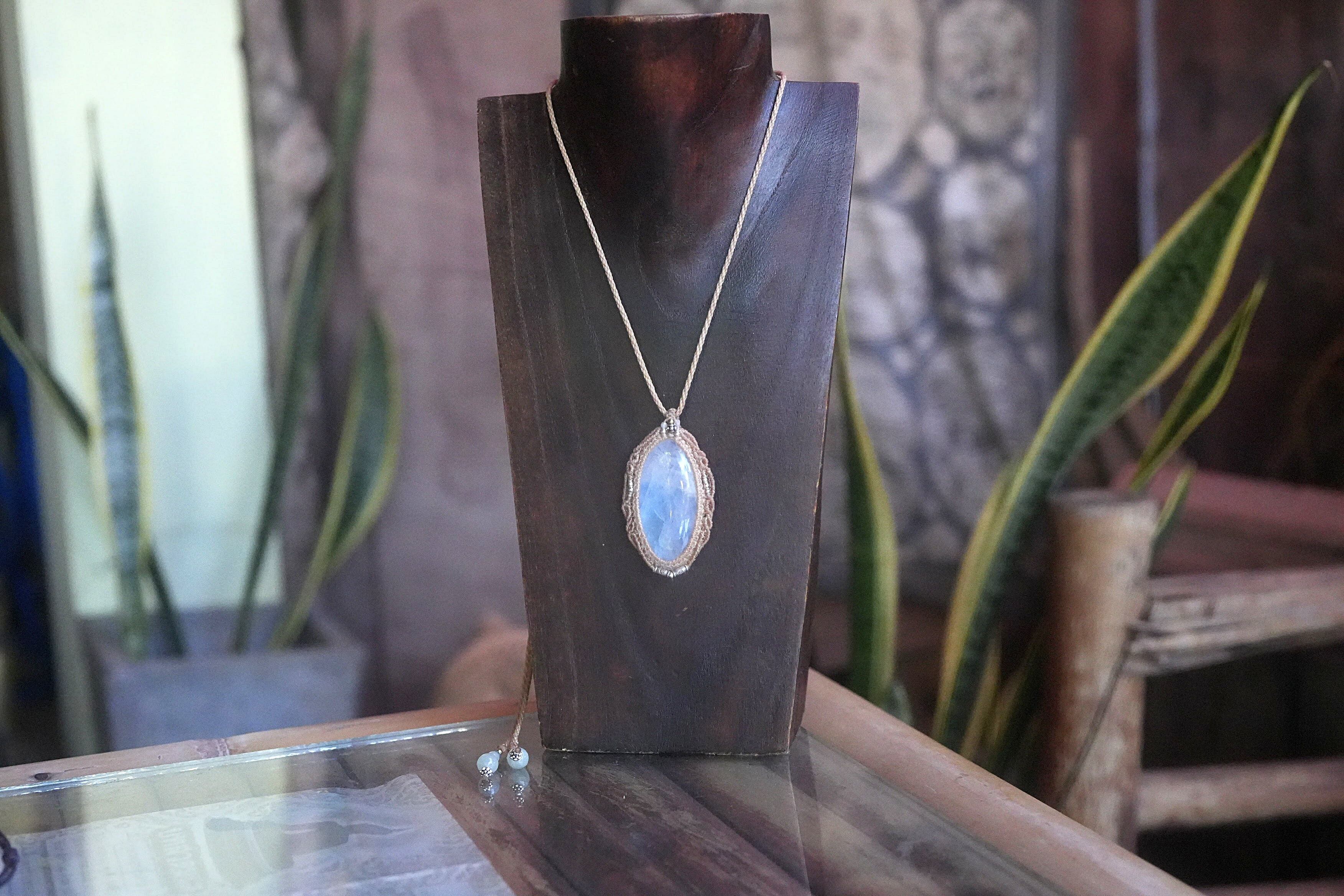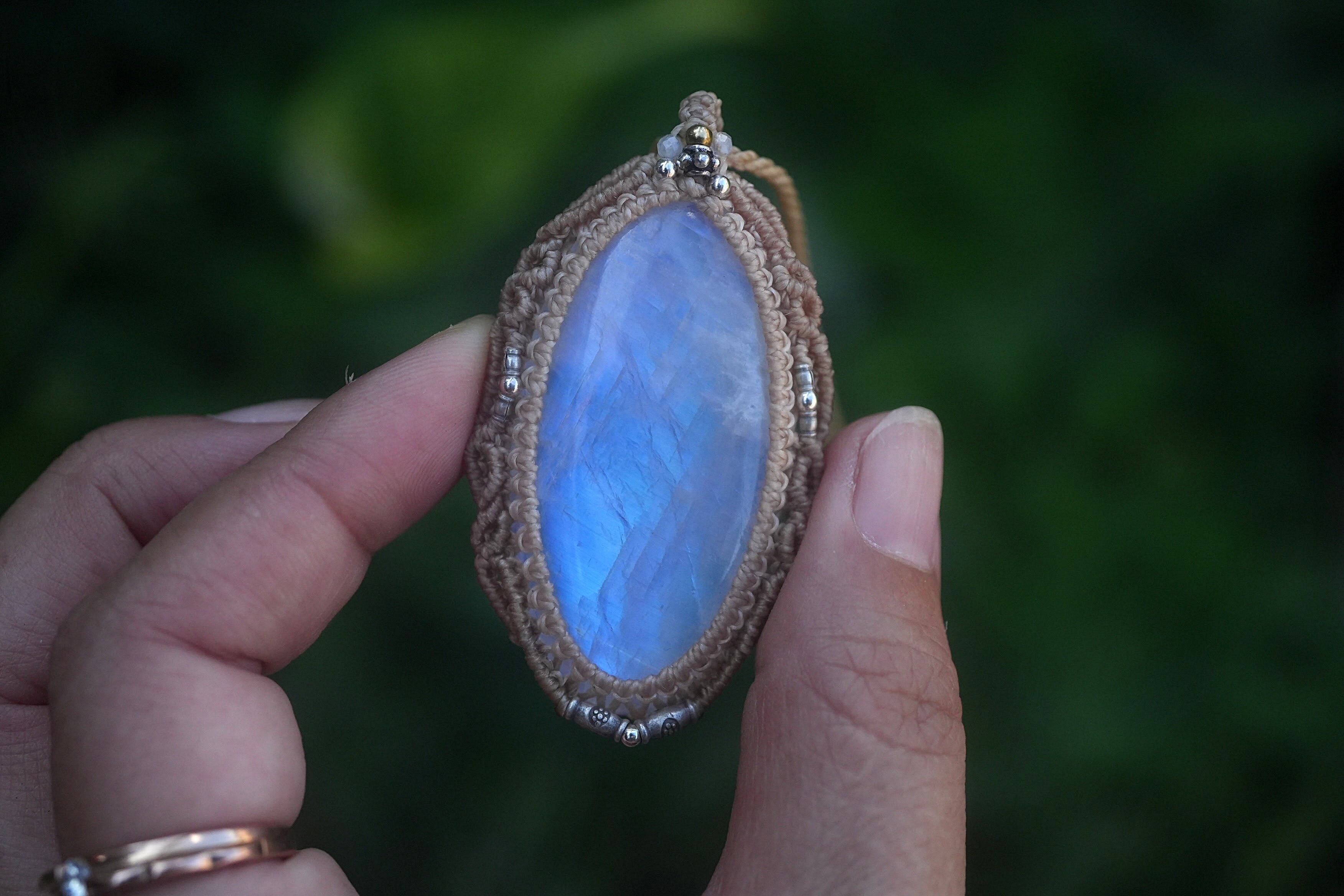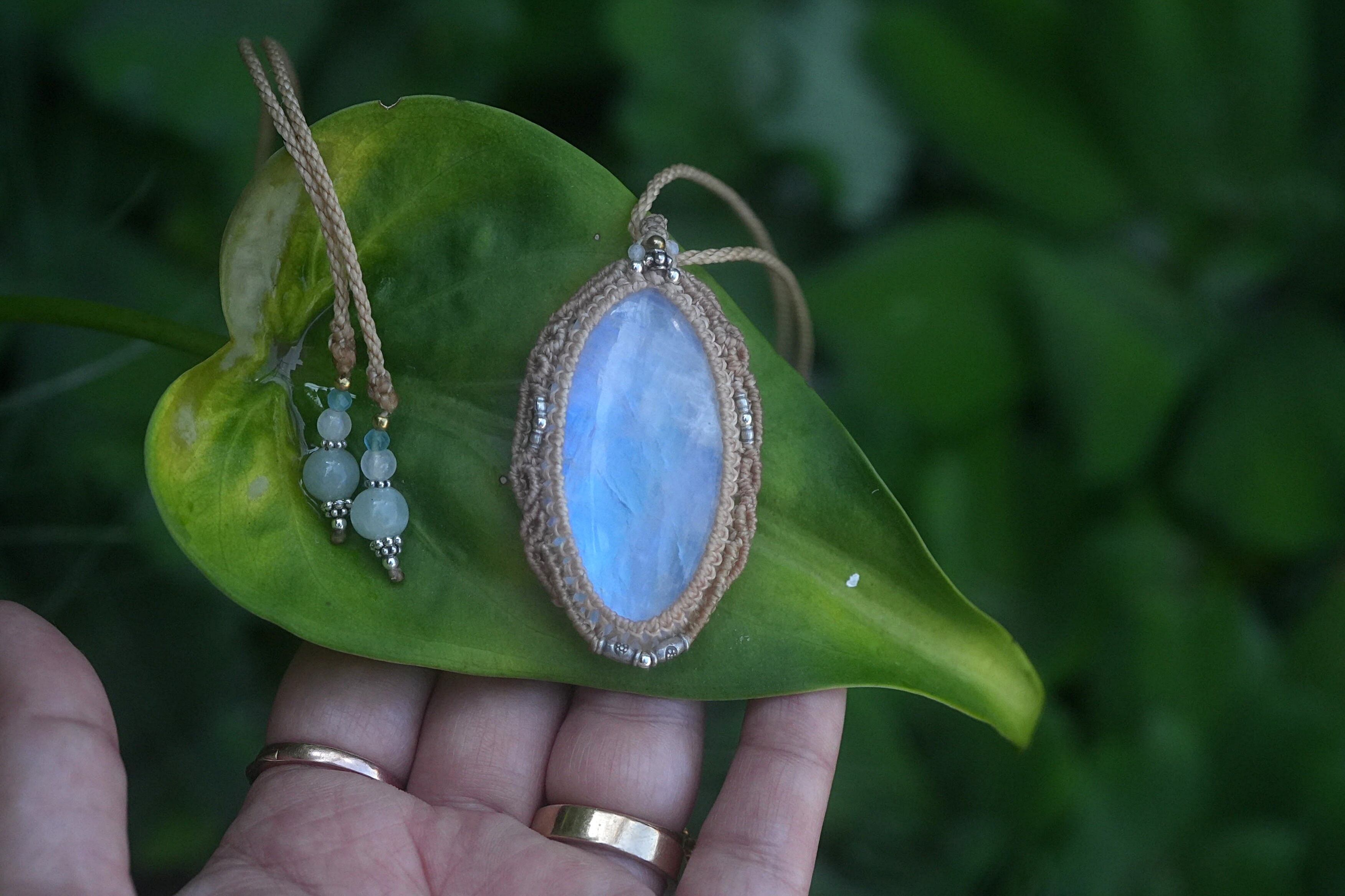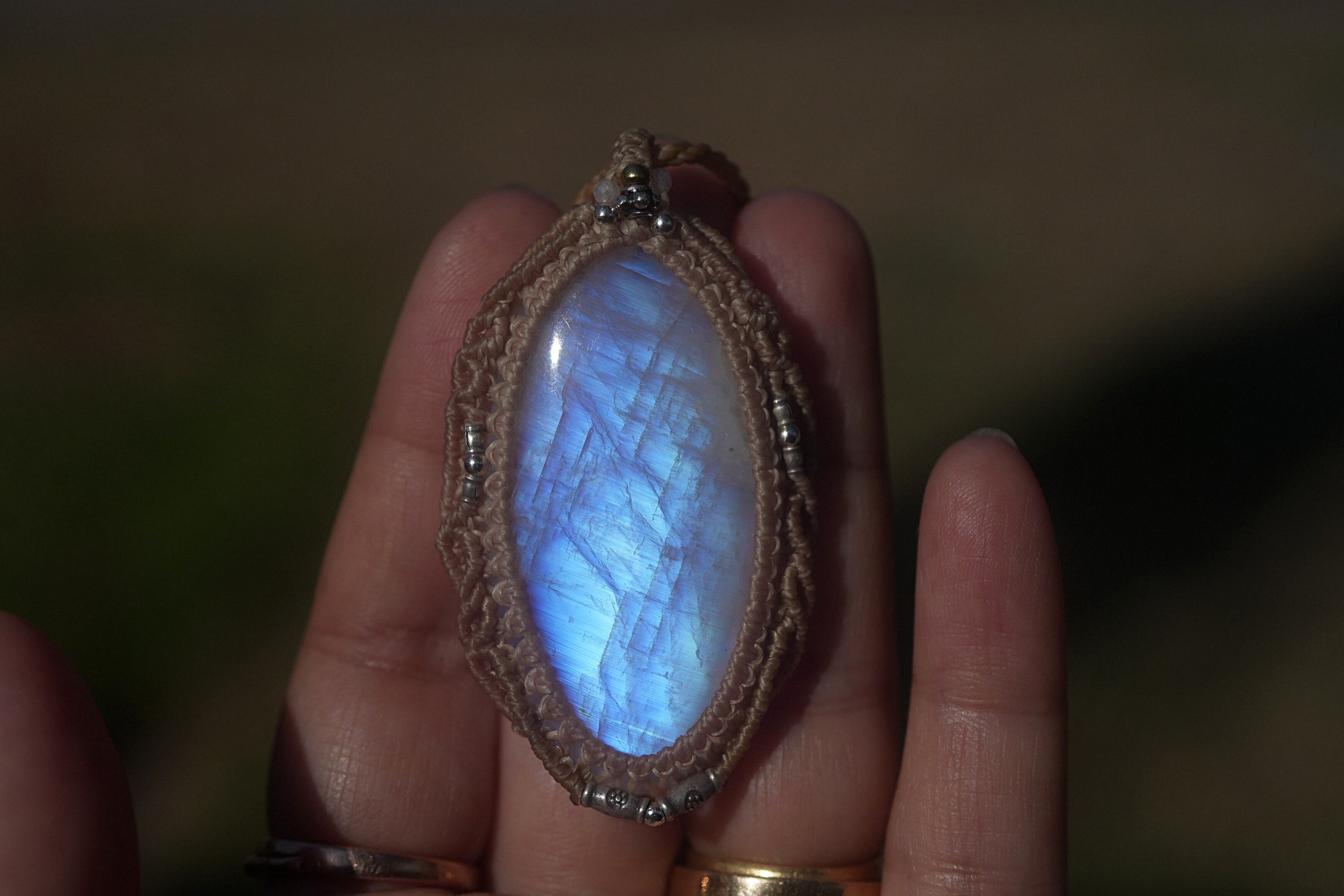 月と大空シラー★大粒★レインボームーンストーン マクラメネックレス1541