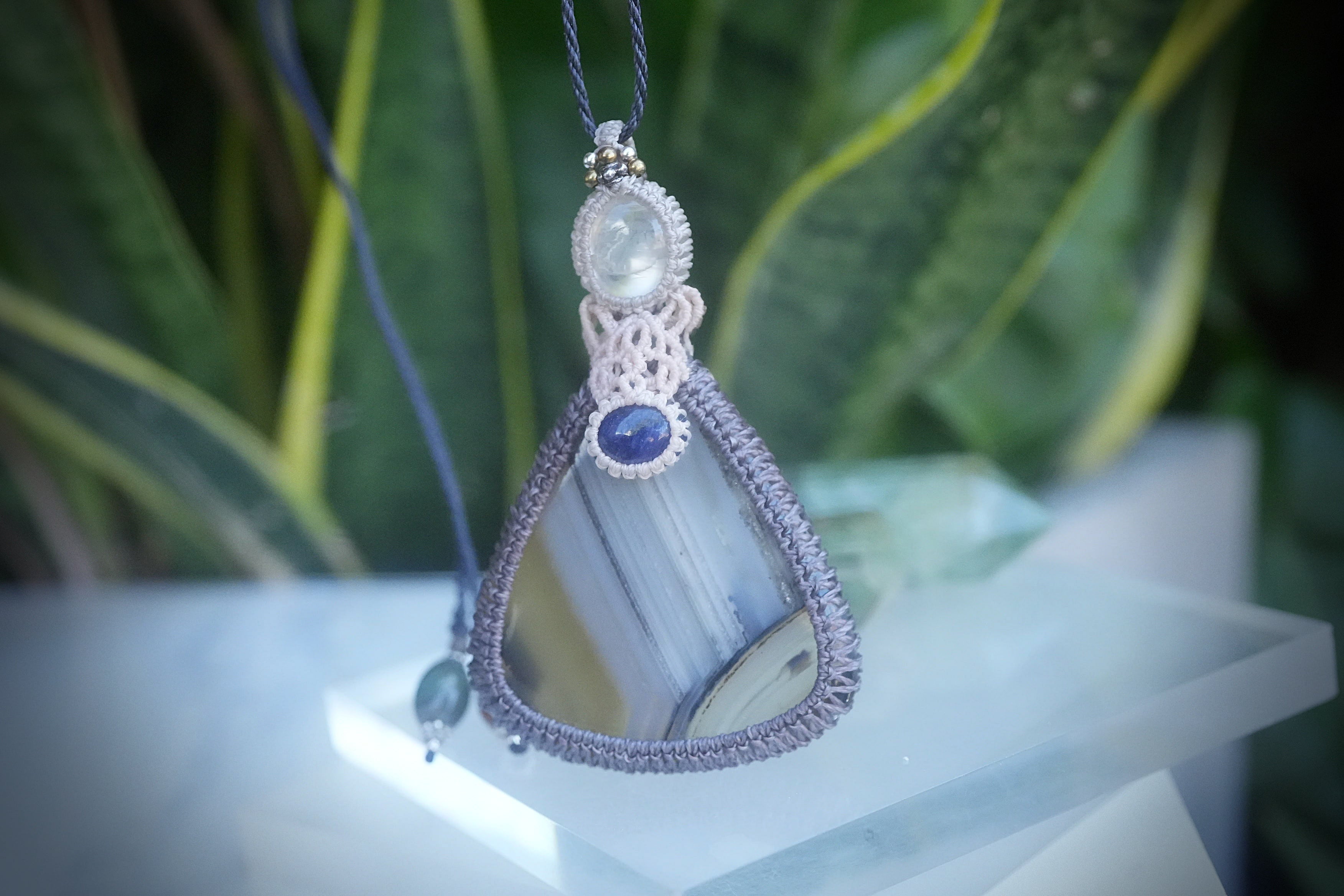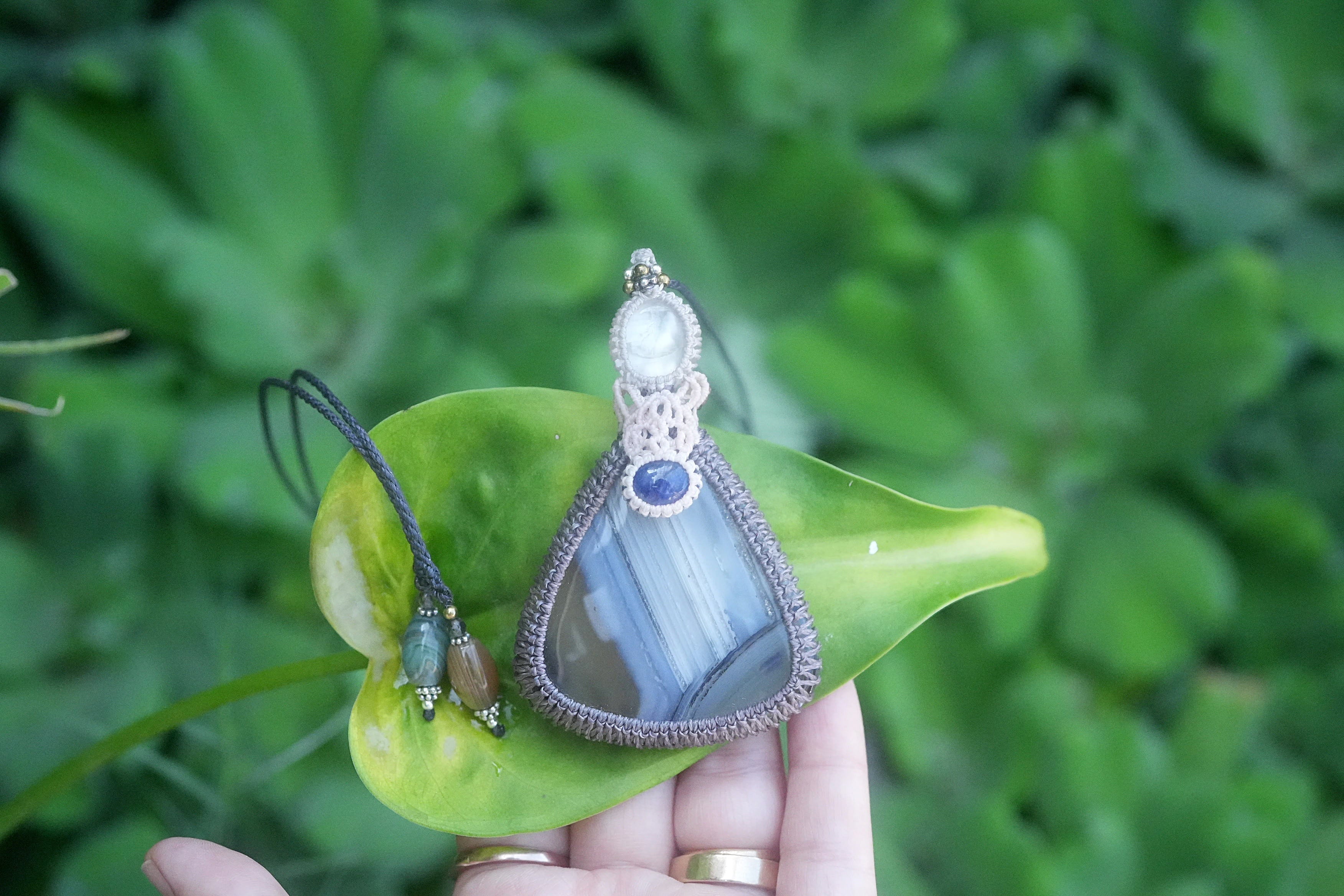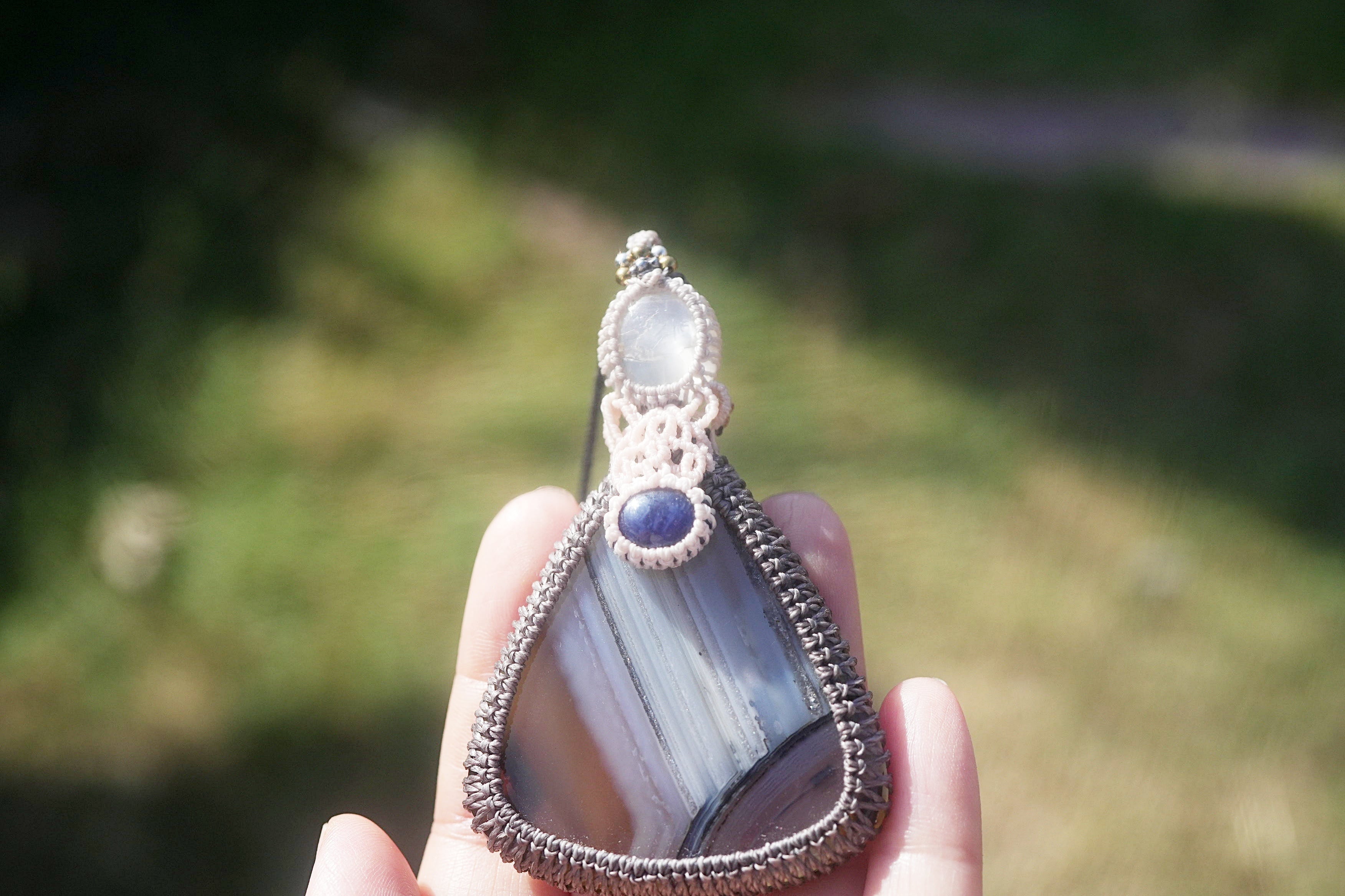 大地と宇宙と月★ムーンストーン★サファイア マクラメネックレス1542