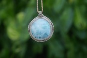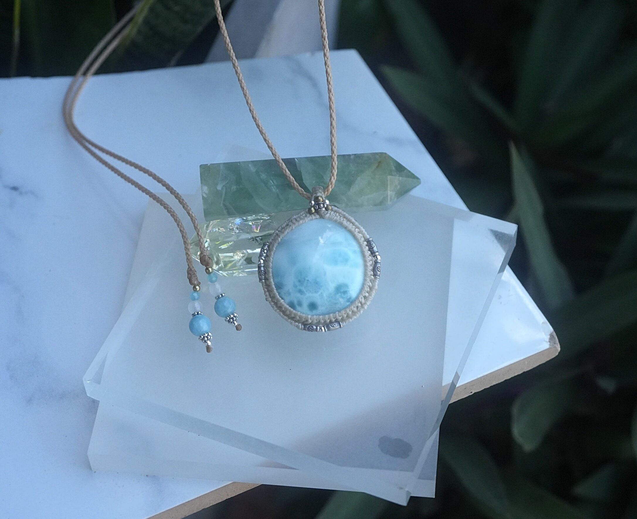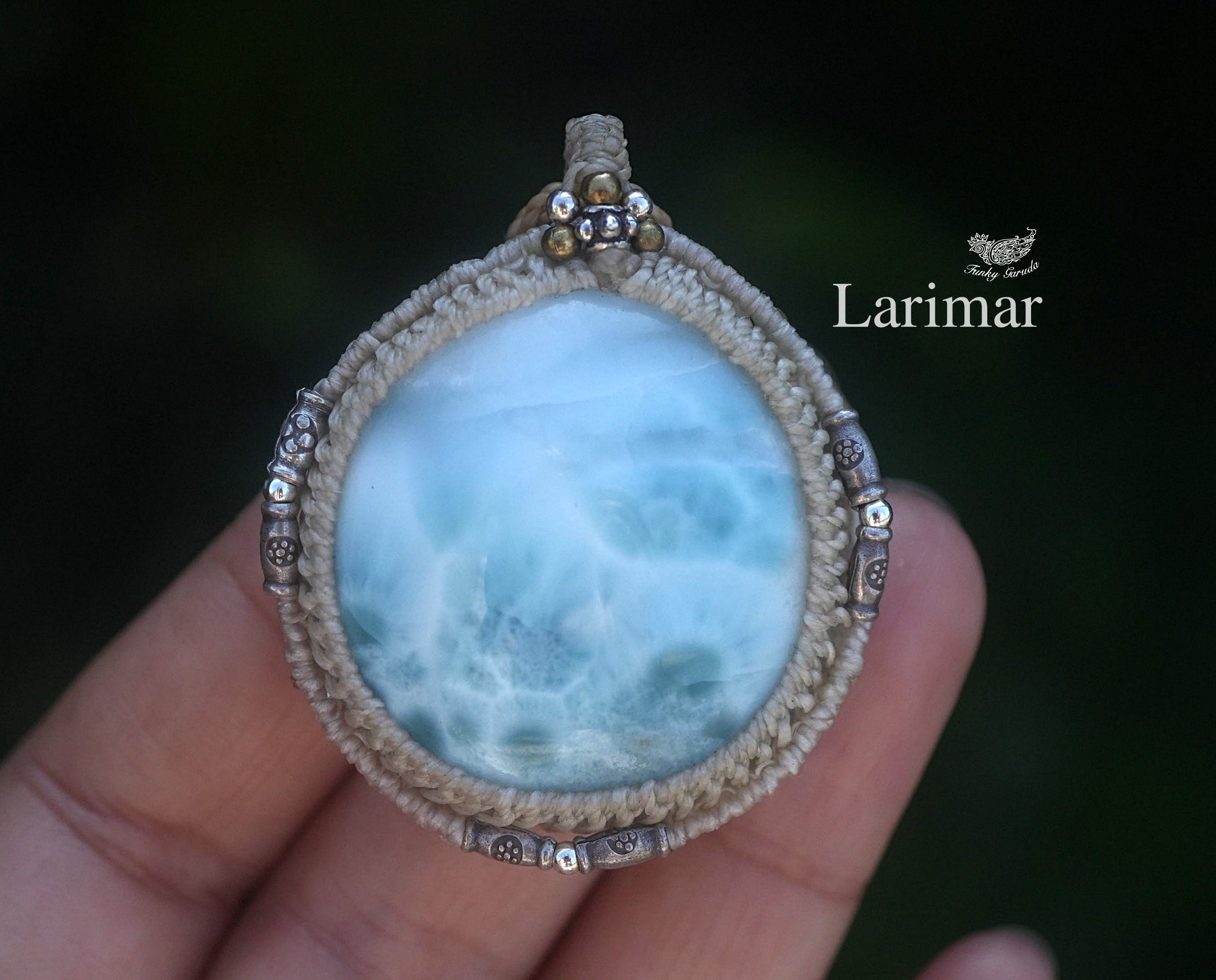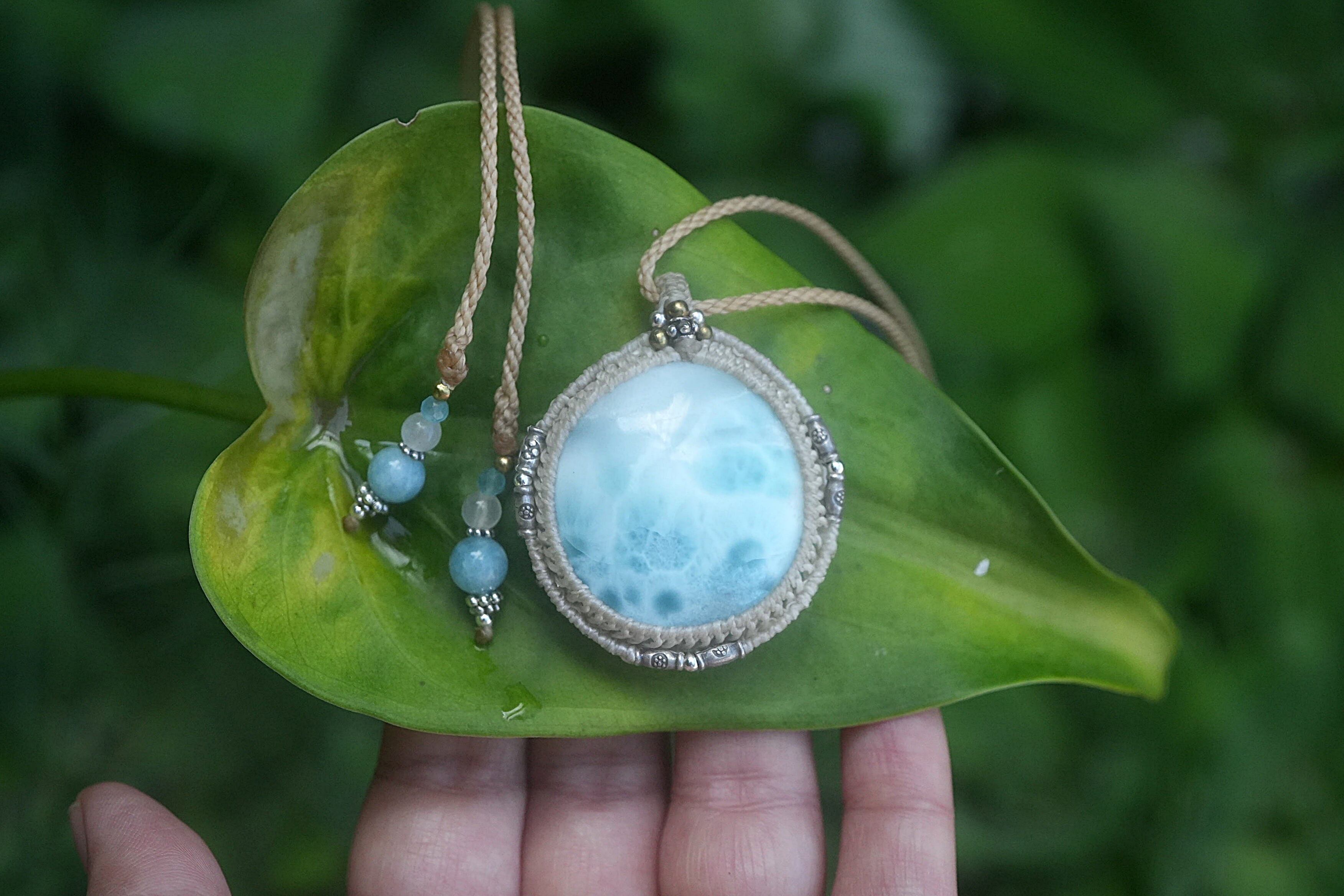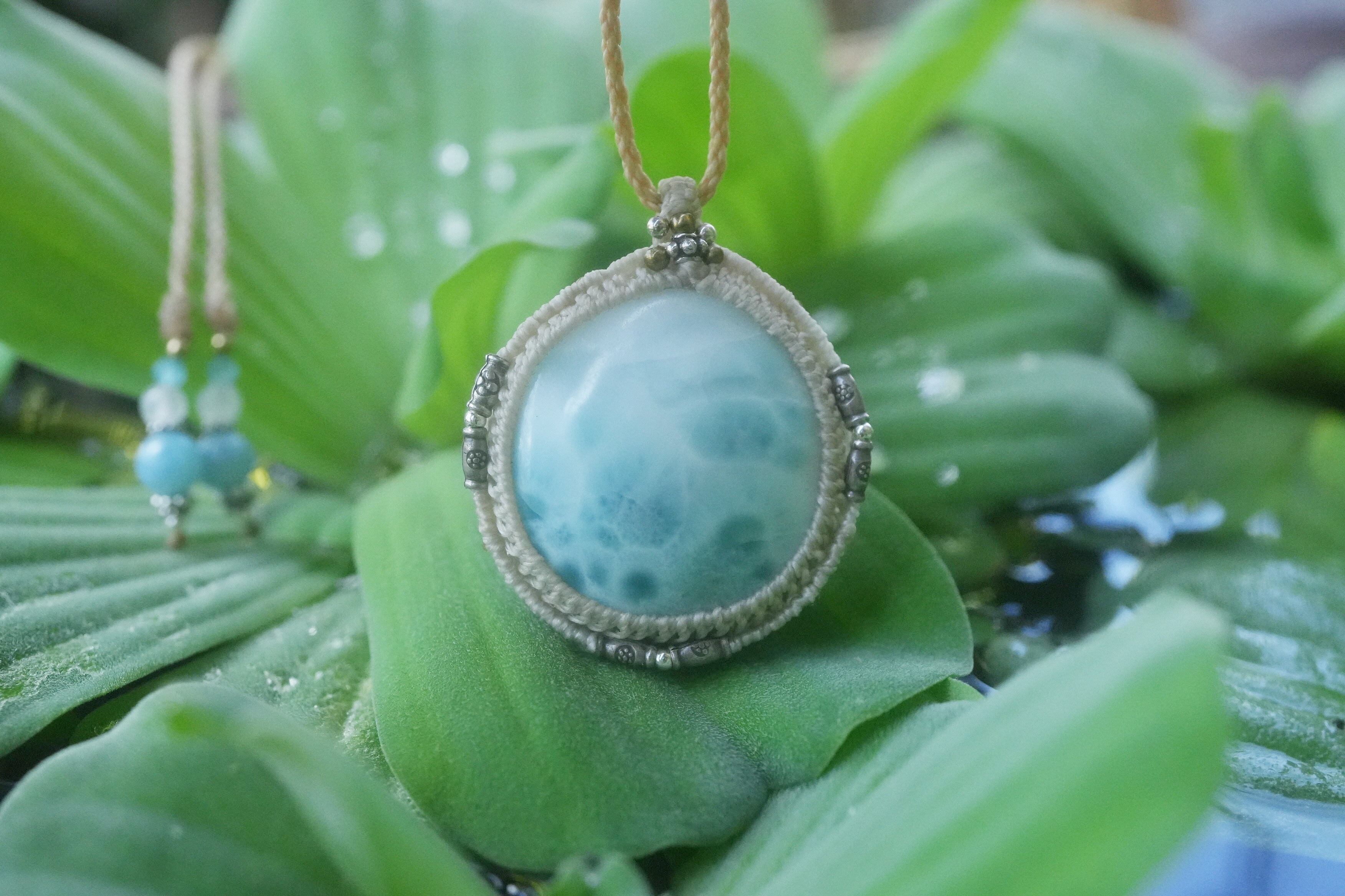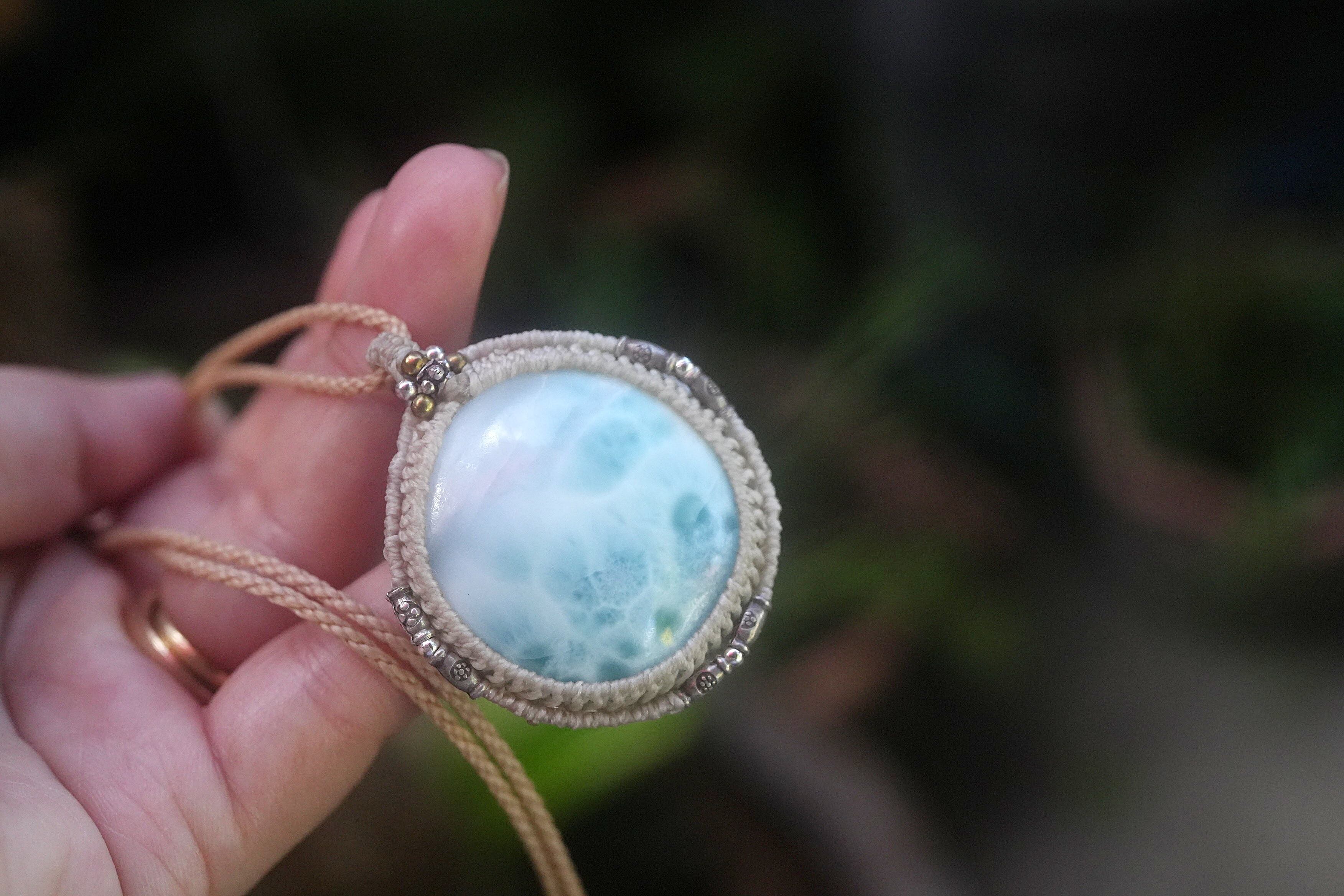 パワフルまんまるの波★高品質★Larimar マクラメペンダント1544