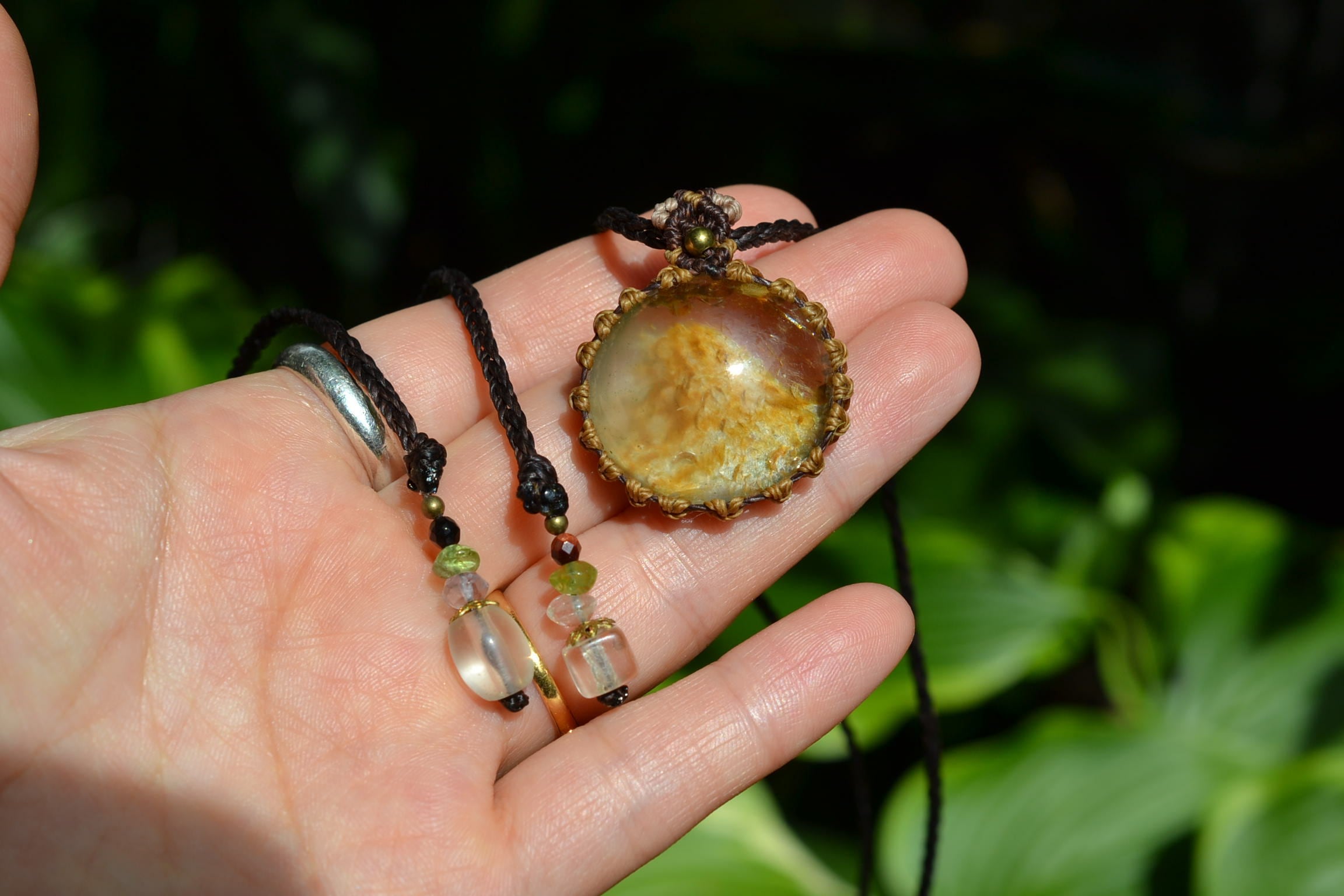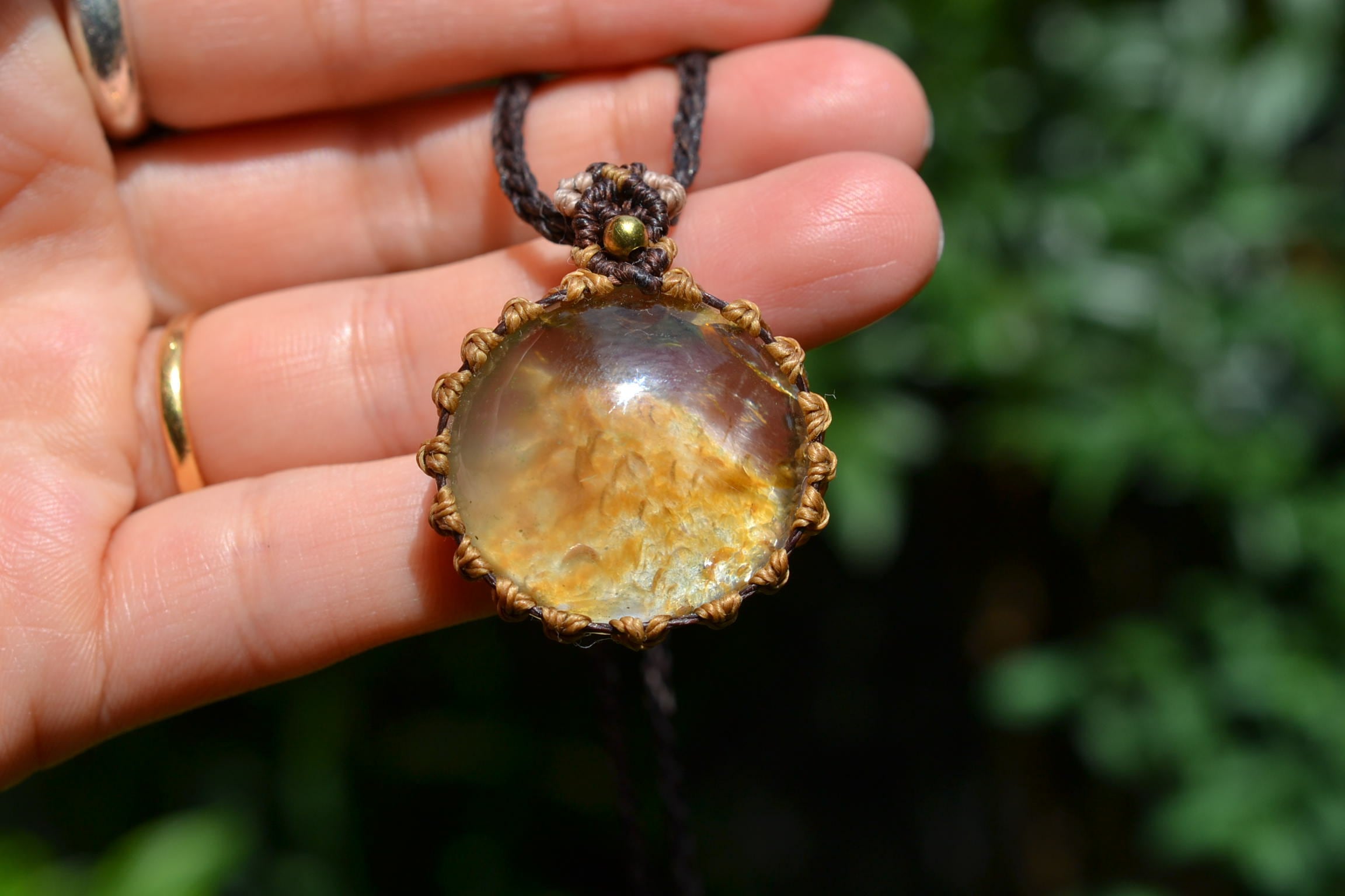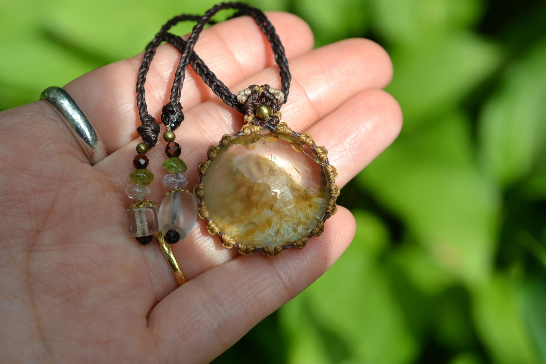 黄金ウロコ★ガーデンクォーツ マクラメペンダントgarm101